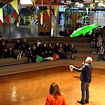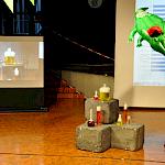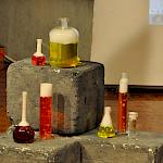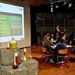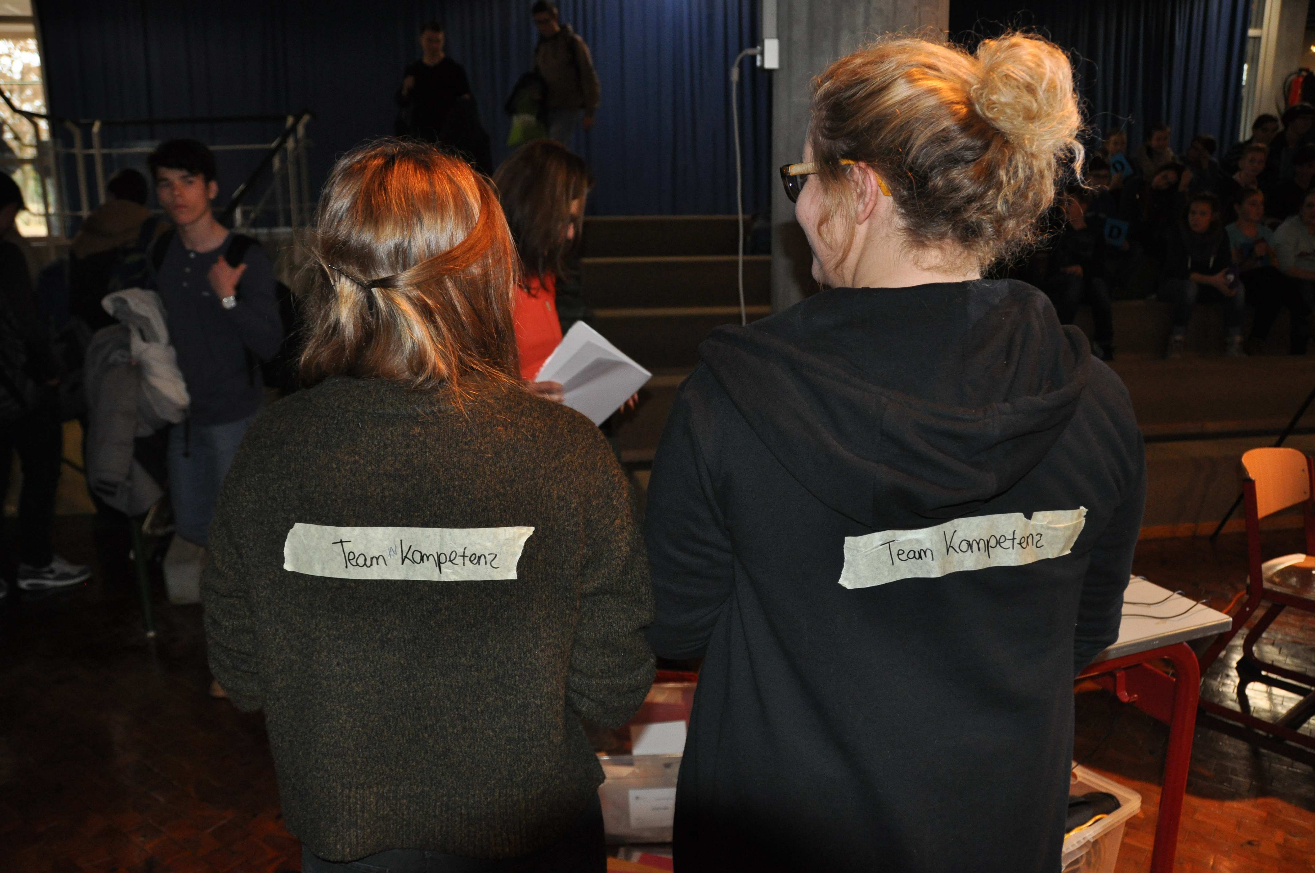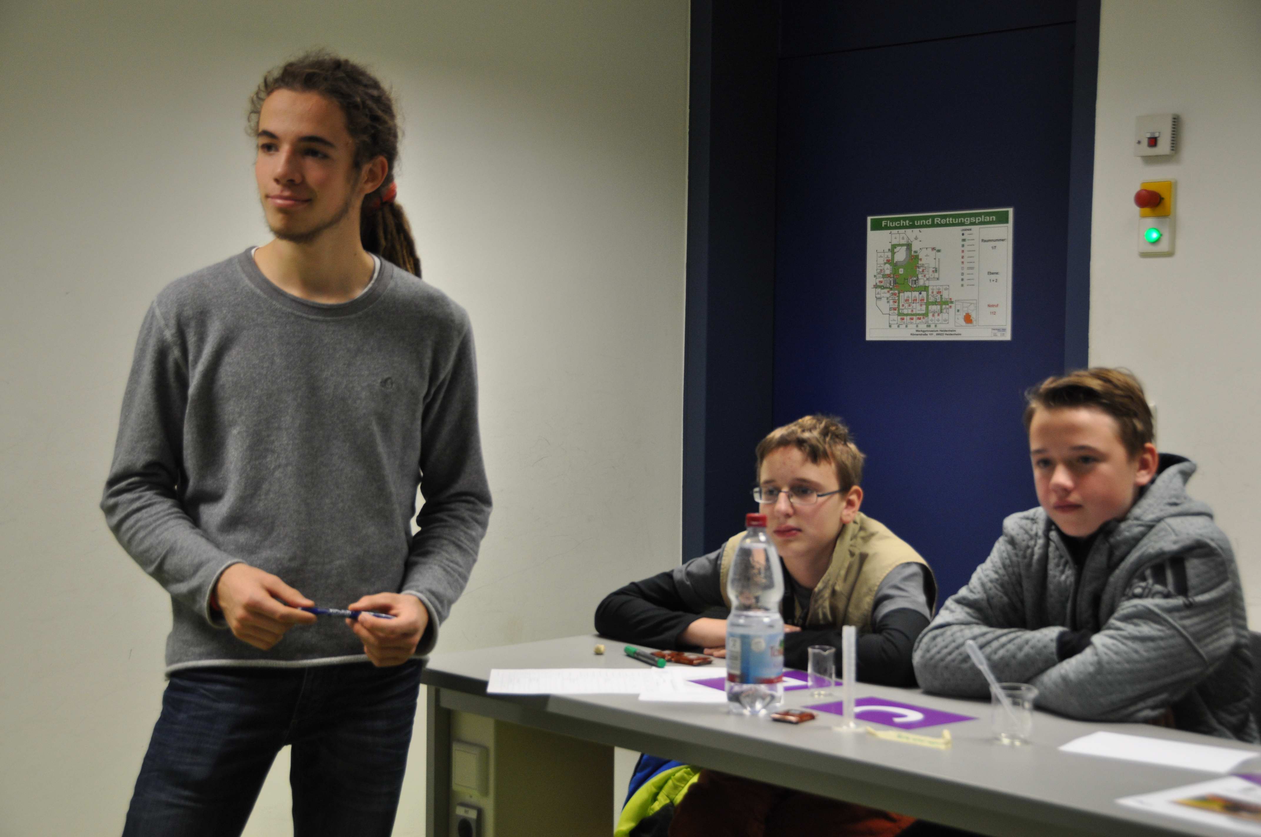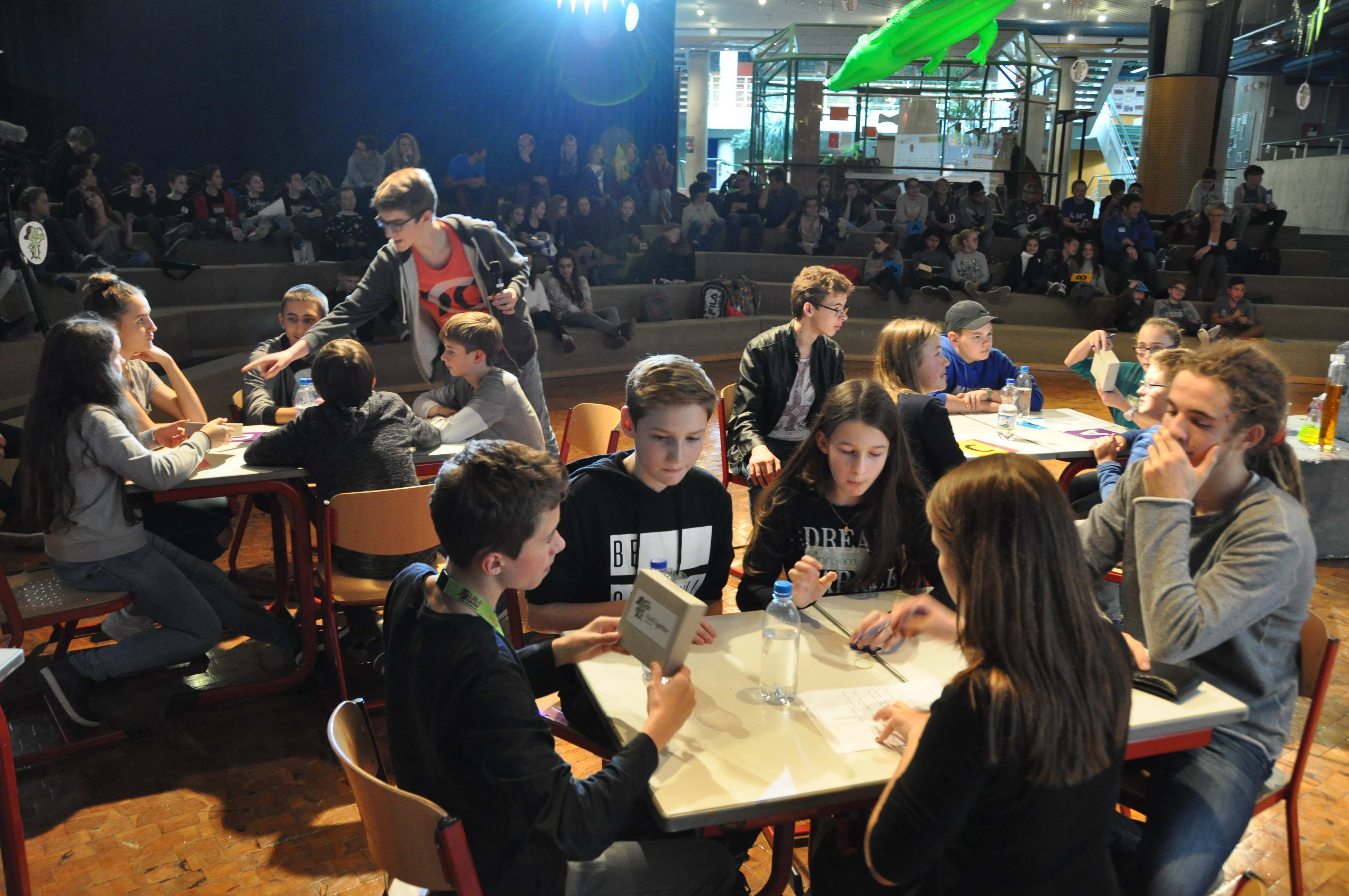 Bis zur Endrunde in der Kulturmulde wurde dann vom Organisationsteam nochmal ordentlich gewirbelt - die Ergebnisse des Klassenquiz und der Ralley wurden ausgewertet, die Teamtische aufgebaut, die Materialien für die Experimentieraufgaben gerichtet und Herr Kiesel überraschte die Schülerinnen und Schüler mit einer bunt leuchtenden und brodelnden "Chemie-Installation" als Bühnen-Deko.