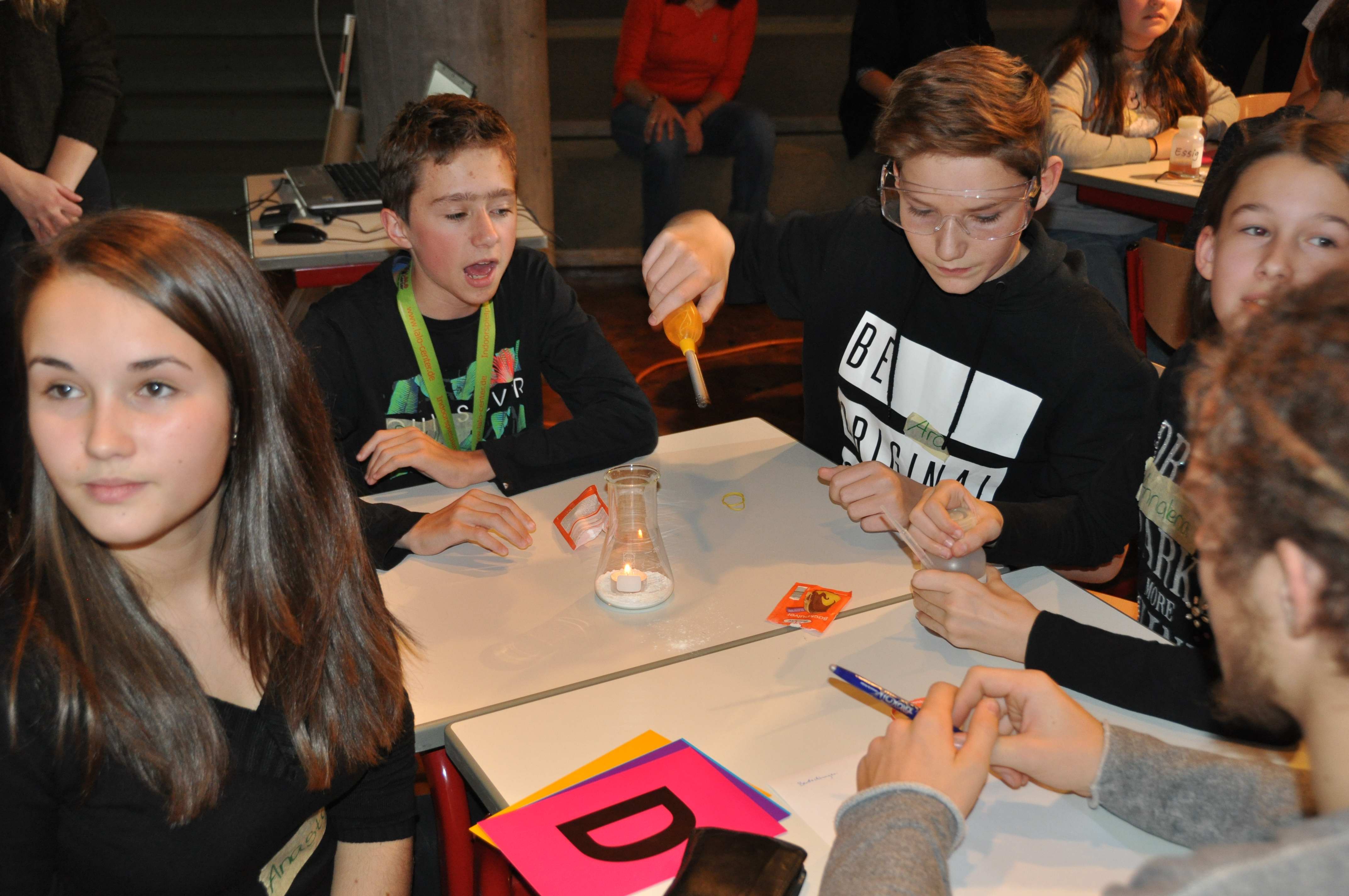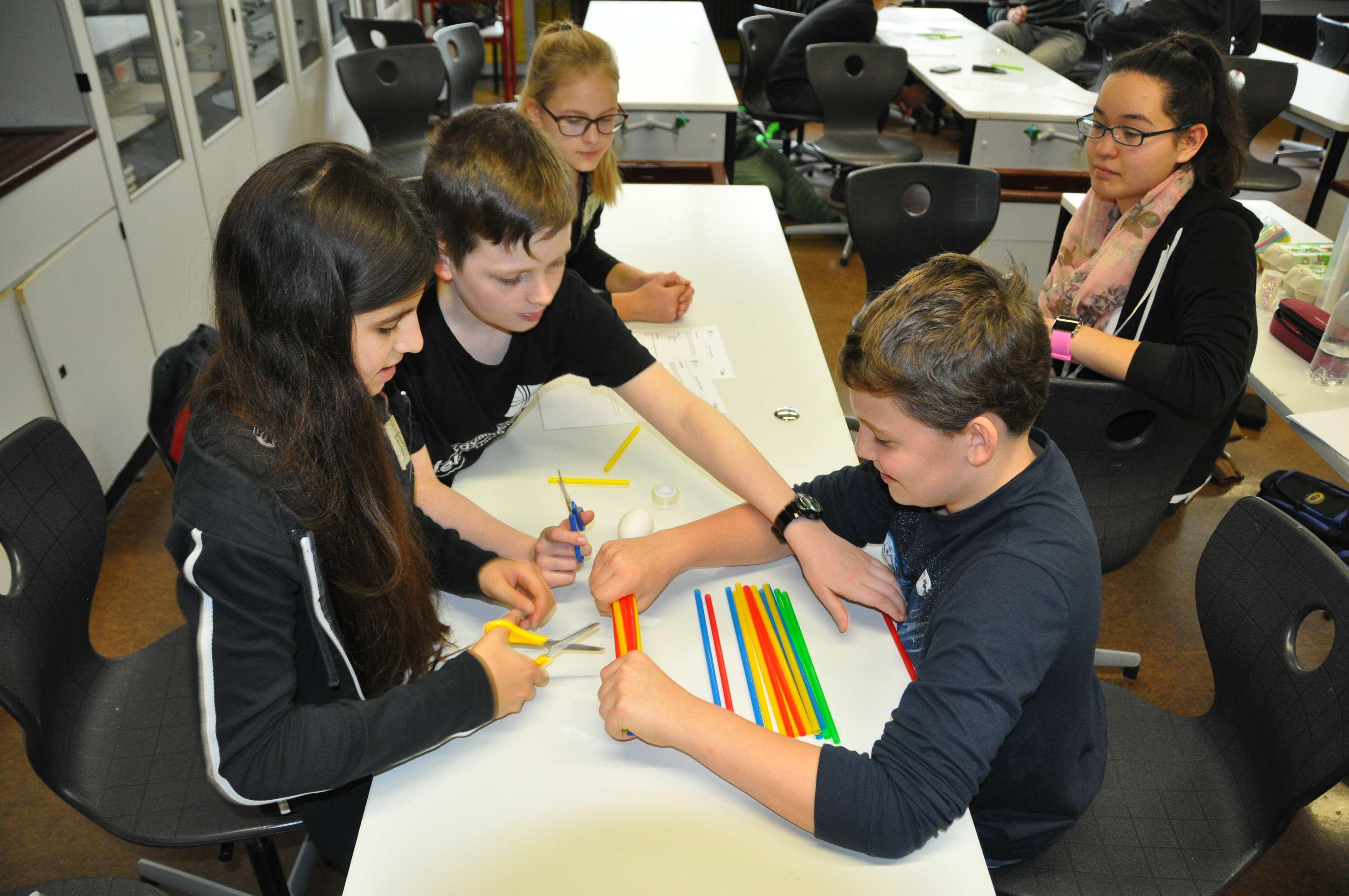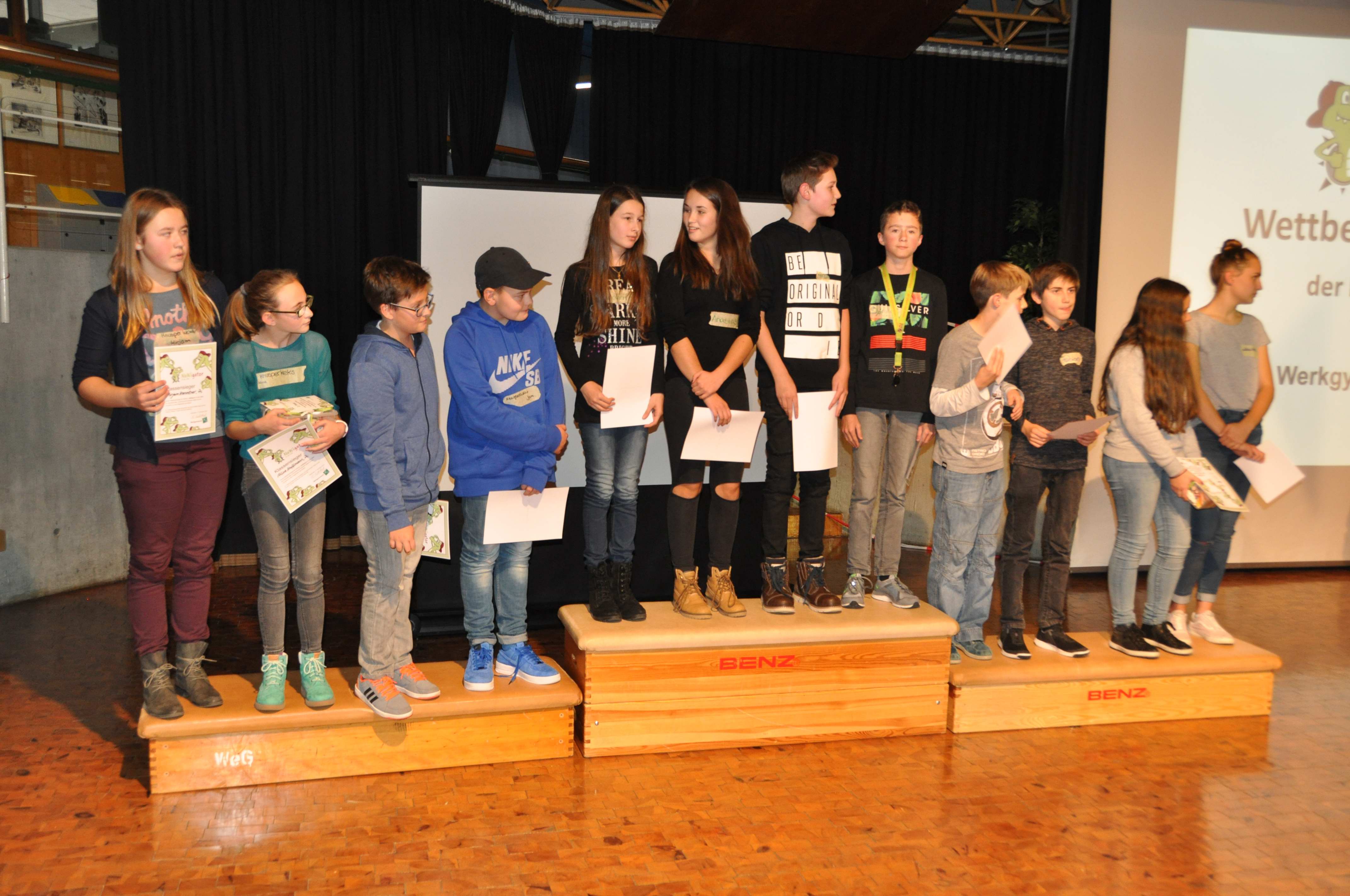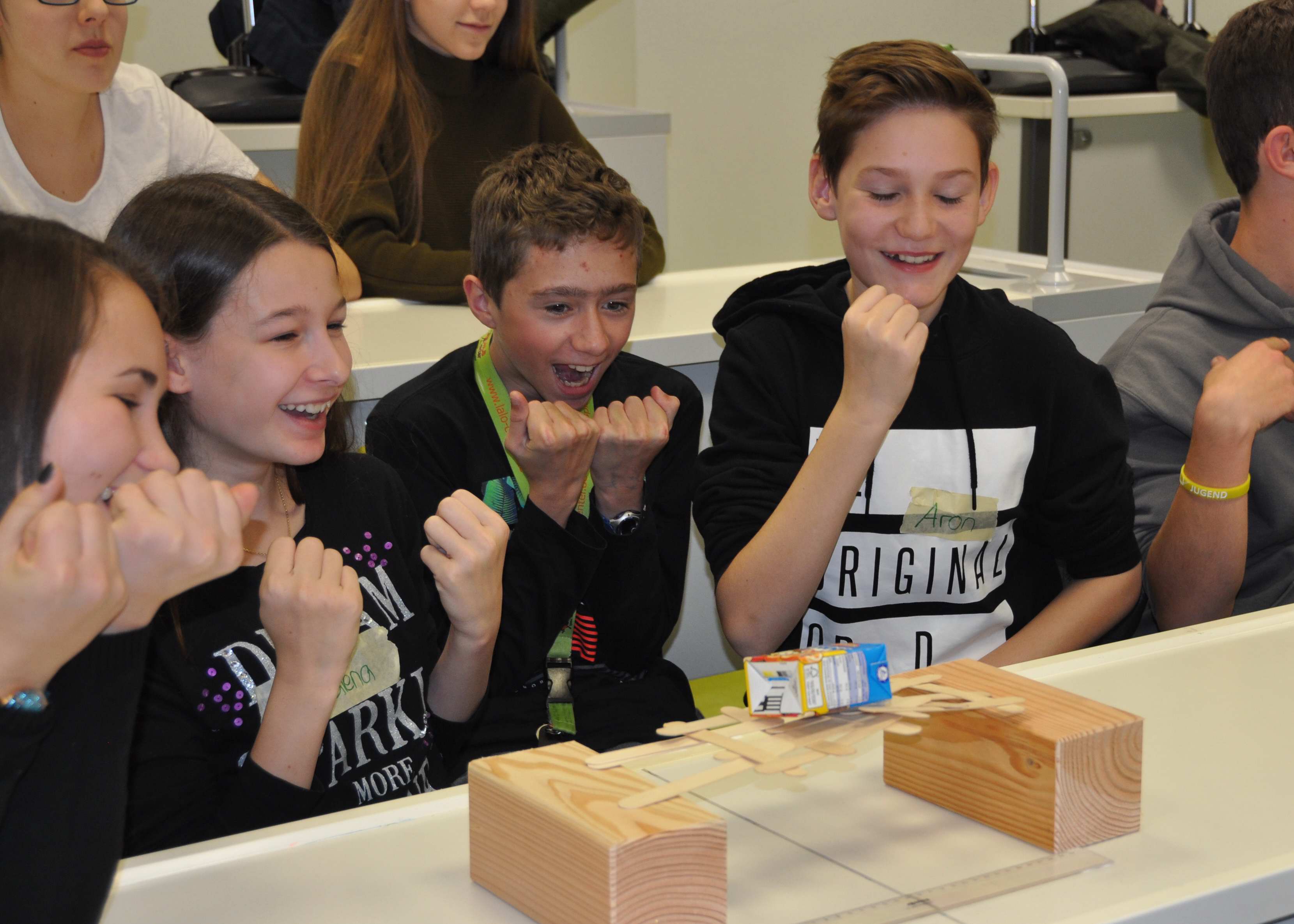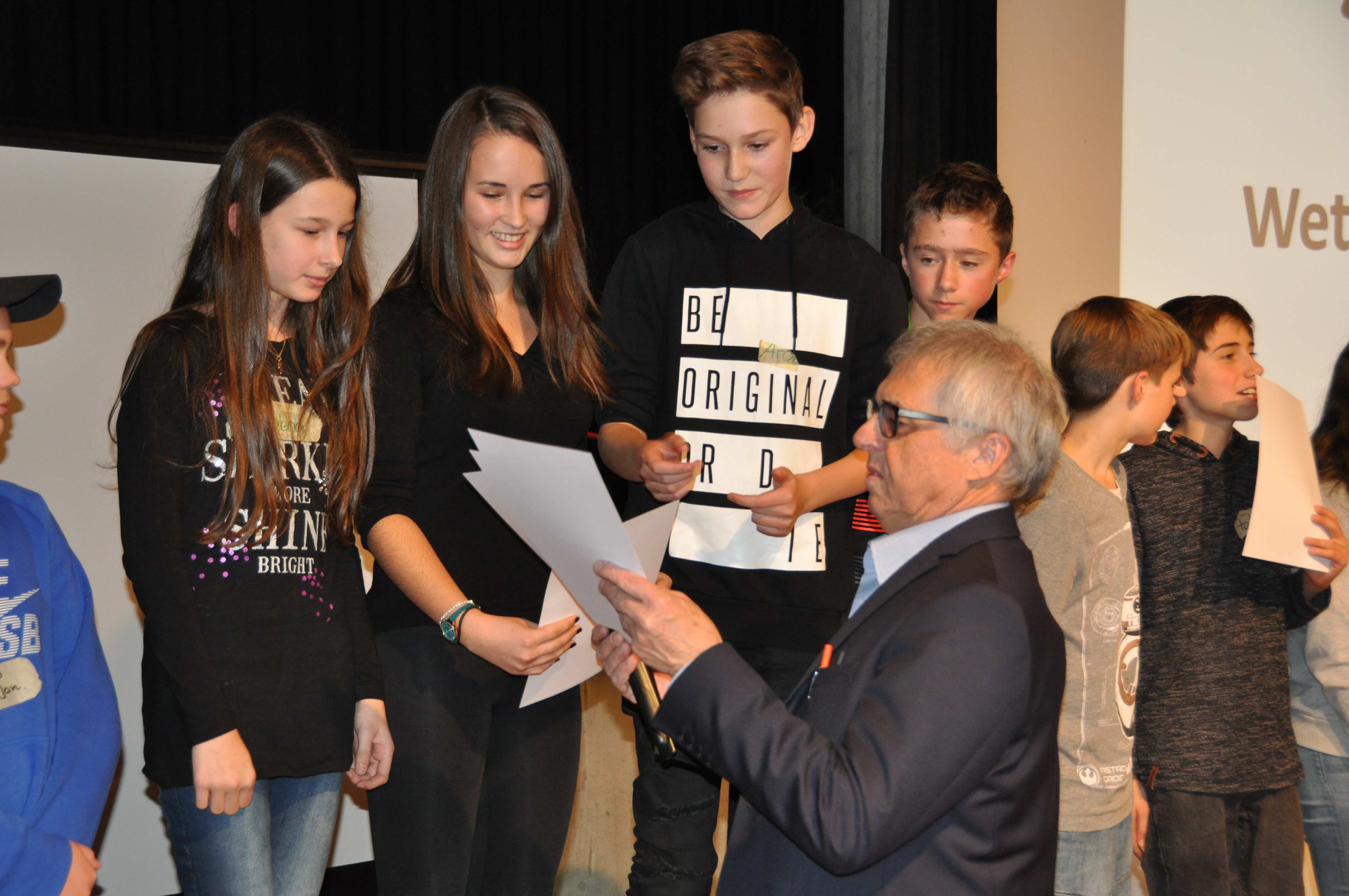 Die besten Teams der drei teilnehmenden Klassen - die "Rosa Erdbeeren", die "Knusperkekse" und die "Knusperflakes" traten dann noch einmal in einem Quiz gegeneinander an, bei dem wieder naturwissenschaftliche Wissen- und Knobelfragen gelöst und Experimente durchgeführt werden mussten. Dabei wurden sie bei einigen "Aufgaben an alle" kräftig von ihren Mitschülerinnen und Mitschülern unterstützt. Am Ende stand dann das Siegerteam schnell fest: Die "Rosa Erdbeeren" der 7b holten sich den Gesamtsieg für ihre Klasse und dürfen sich nun auf einen Besuch der "Experimenta" in Heilbronn als Preis freuen, der ihnen vom Förderverein des Werkgymnasiums spendiert wurde.