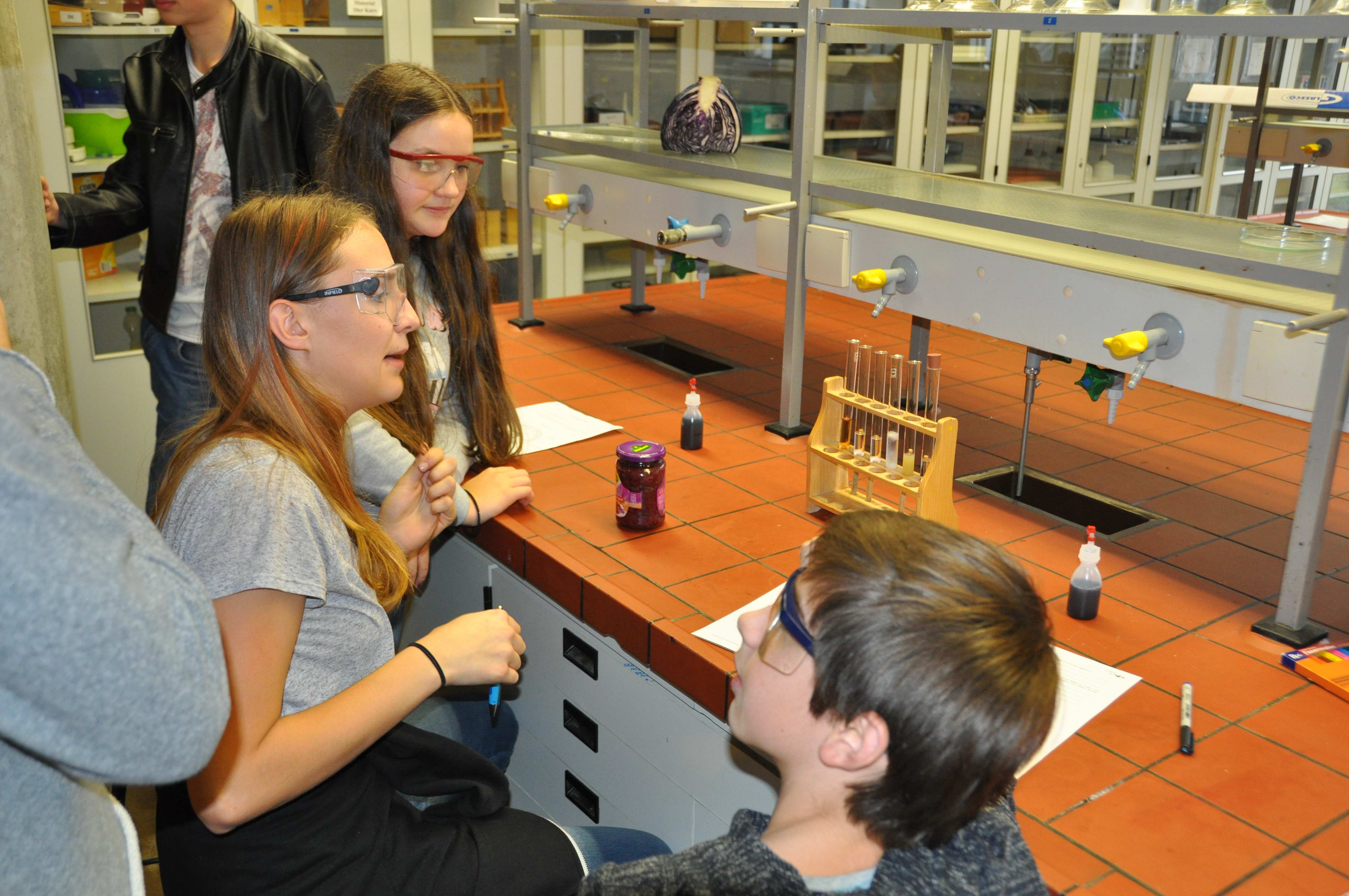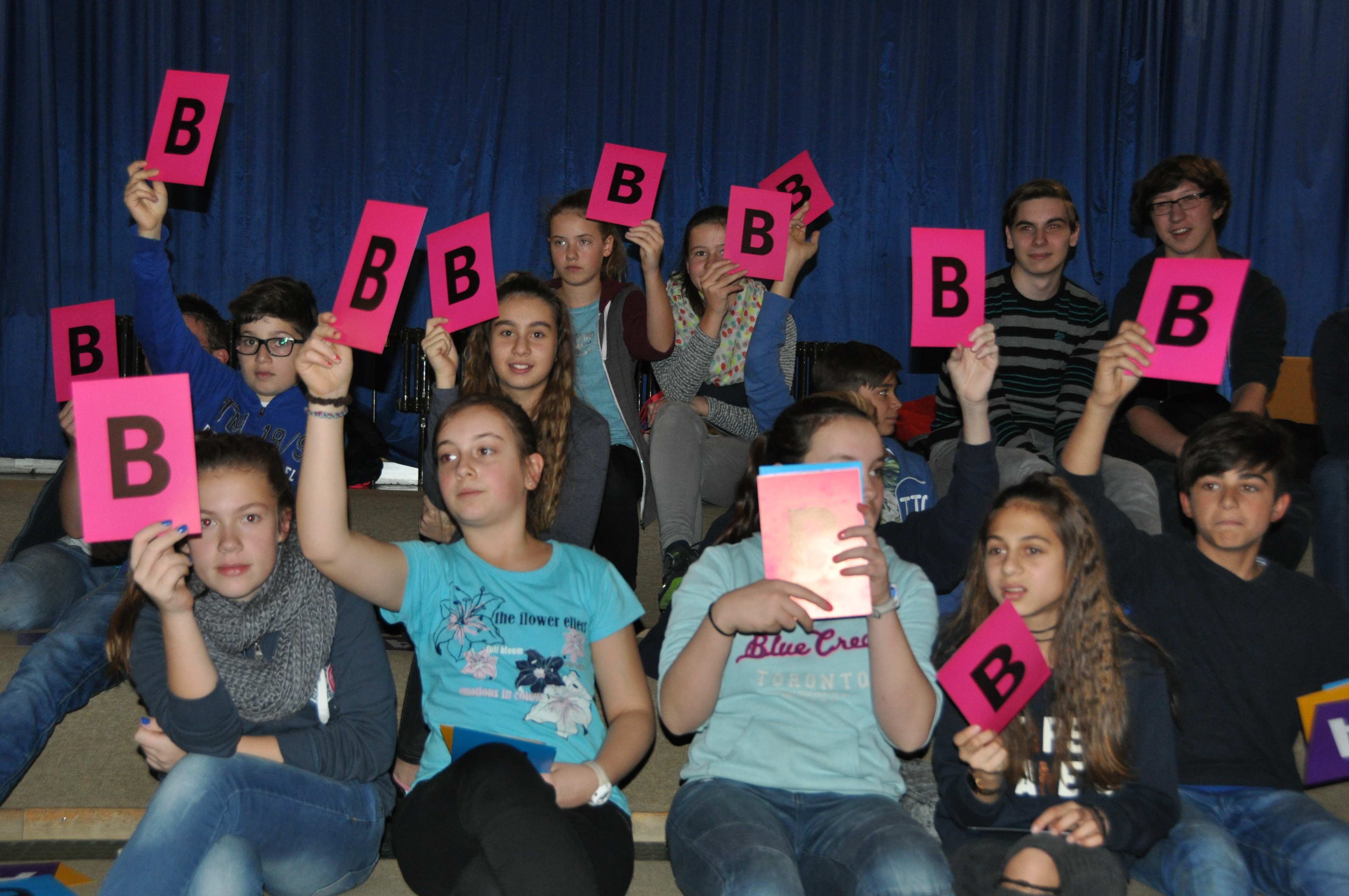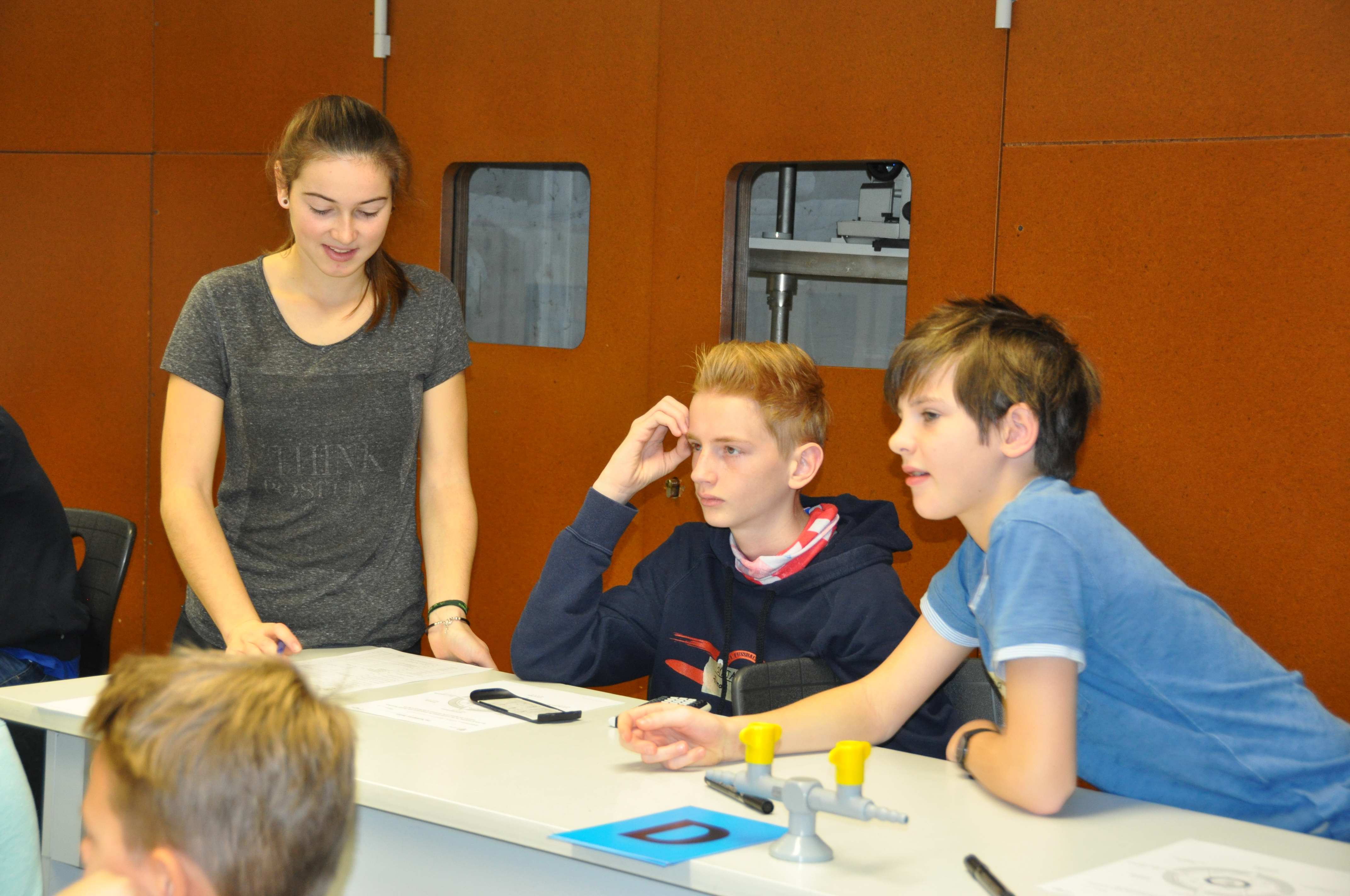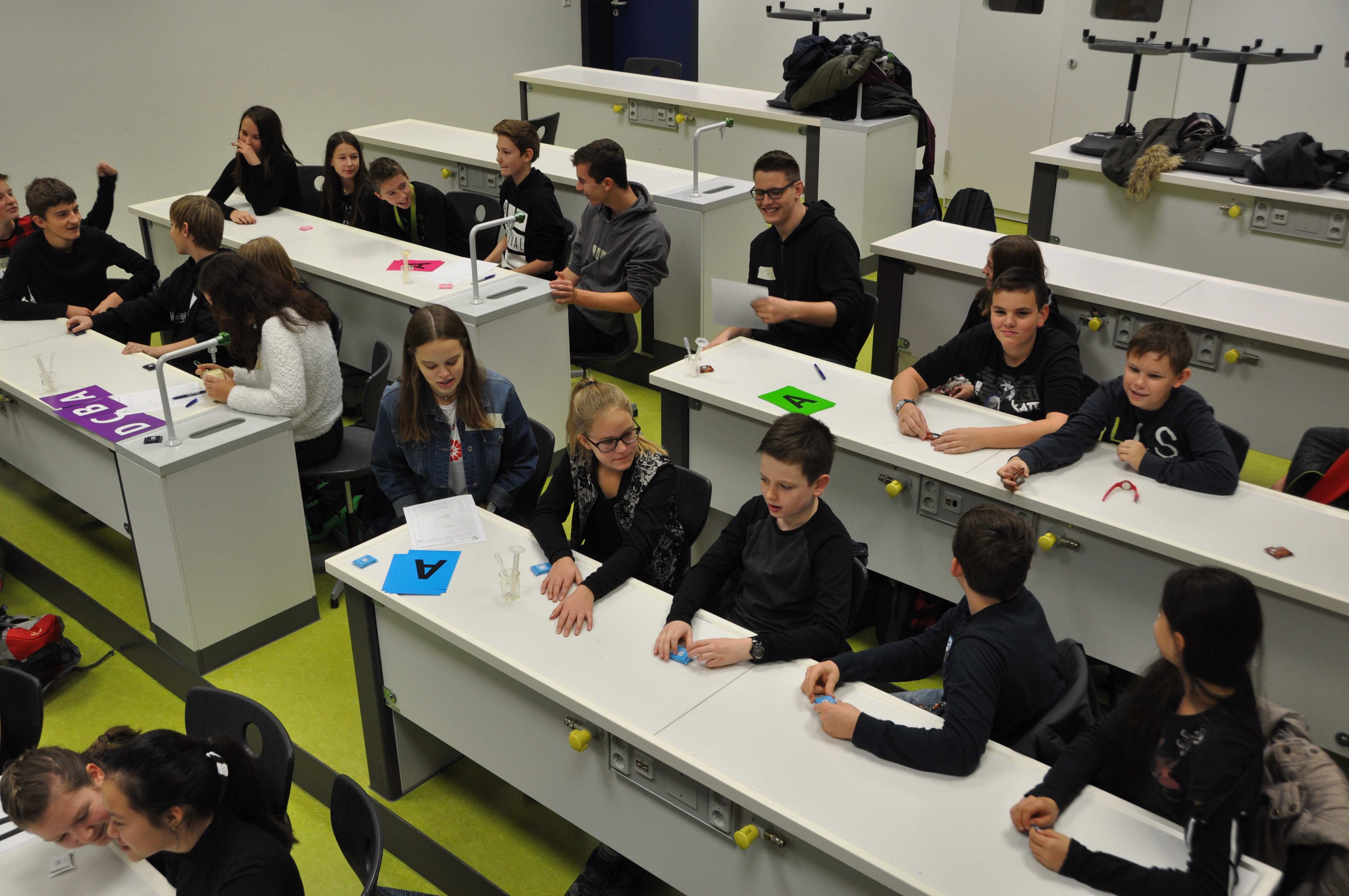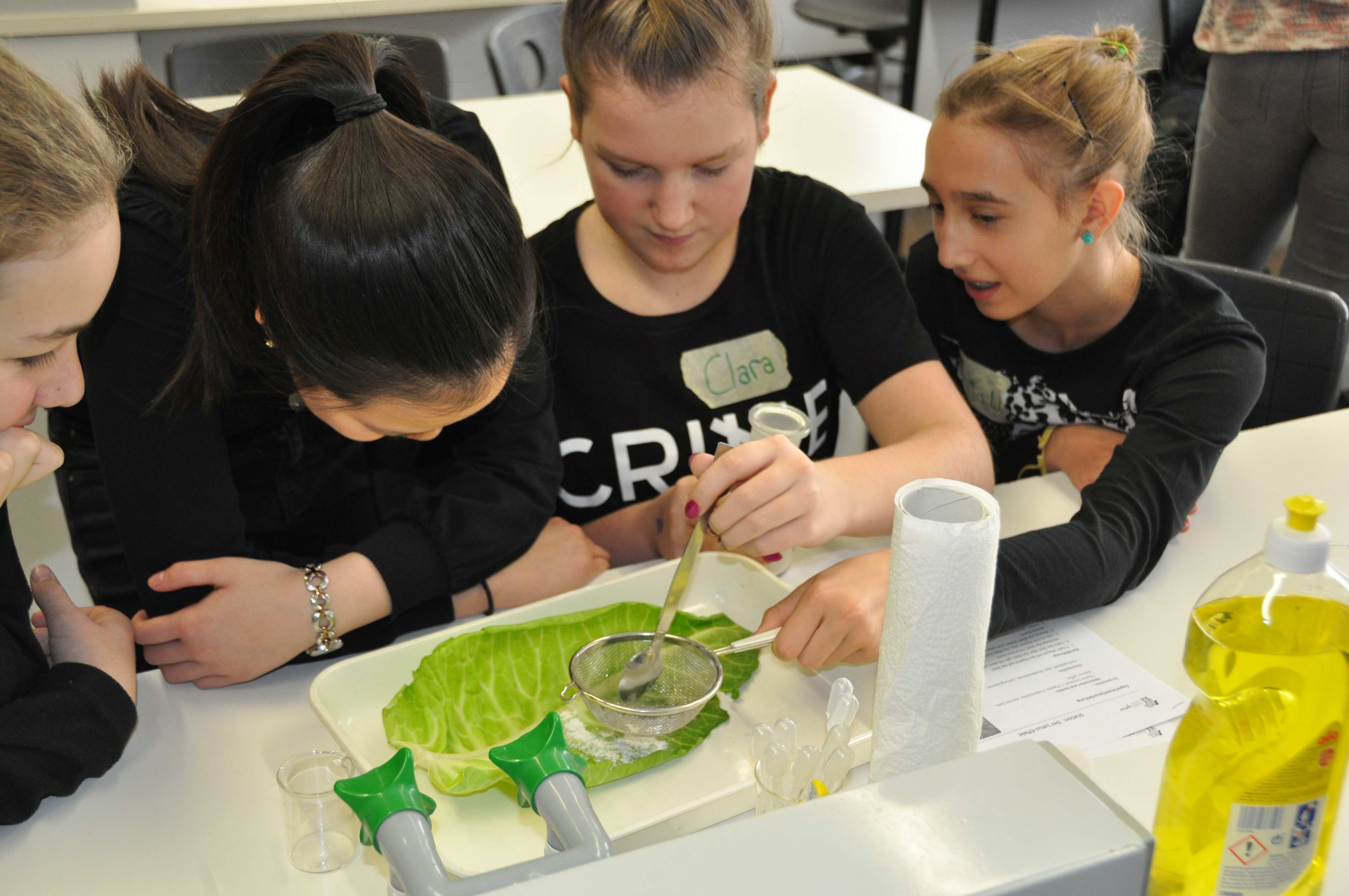Die besten Teams der drei teilnehmenden Klassen - die "Rosa Erdbeeren", die "Knusperkekse" und die "Knusperflakes" traten dann noch einmal in einem Quiz gegeneinander an, bei dem wieder naturwissenschaftliche Wissen- und Knobelfragen gelöst und Experimente durchgeführt werden mussten. Dabei wurden sie bei einigen "Aufgaben an alle" kräftig von ihren Mitschülerinnen und Mitschülern unterstützt. Am Ende stand dann das Siegerteam schnell fest: Die "Rosa Erdbeeren" der 7b holten sich den Gesamtsieg für ihre Klasse und dürfen sich nun auf einen Besuch der "Experimenta" in Heilbronn als Preis freuen, der ihnen vom Förderverein des Werkgymnasiums spendiert wurde.