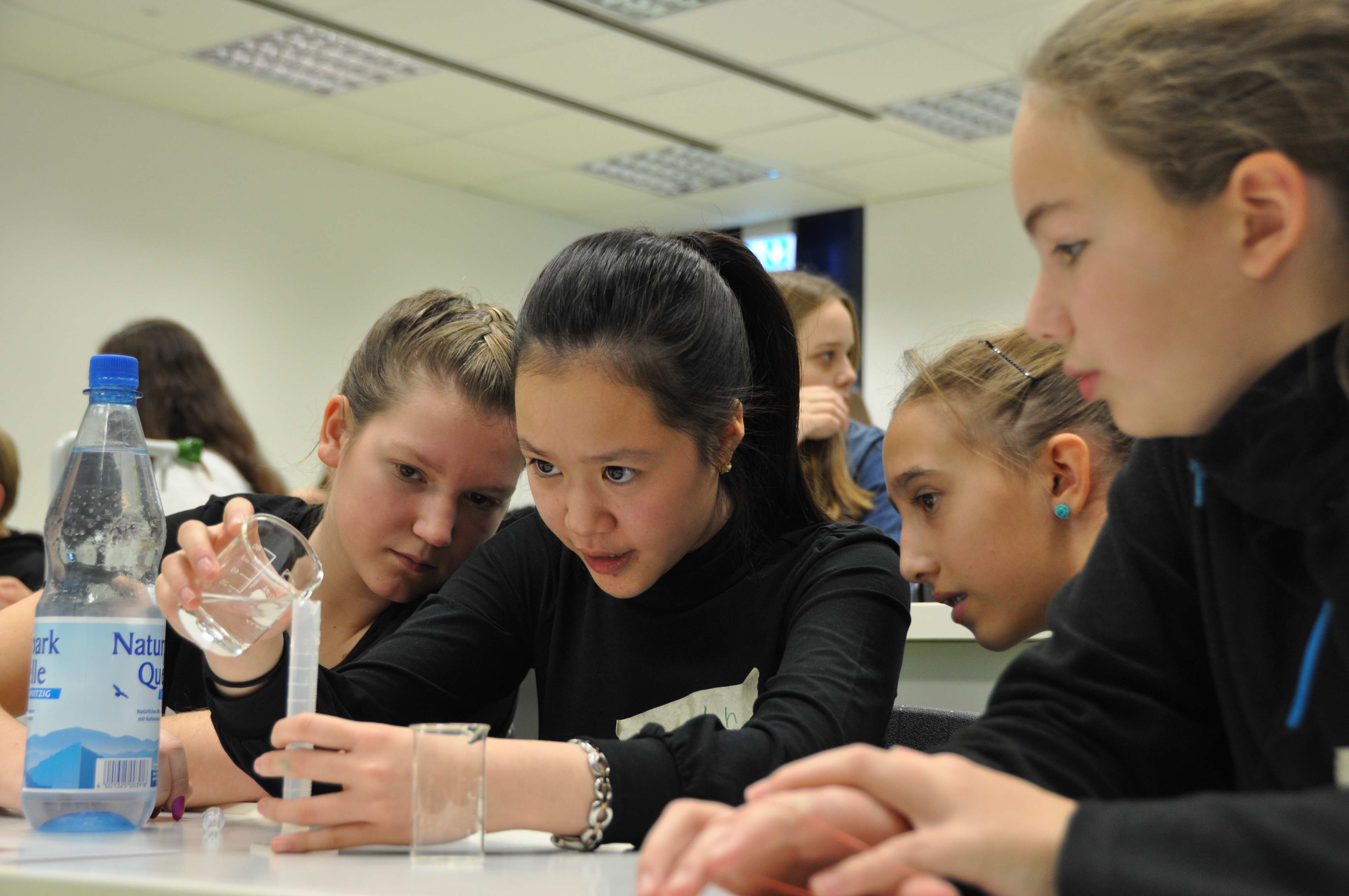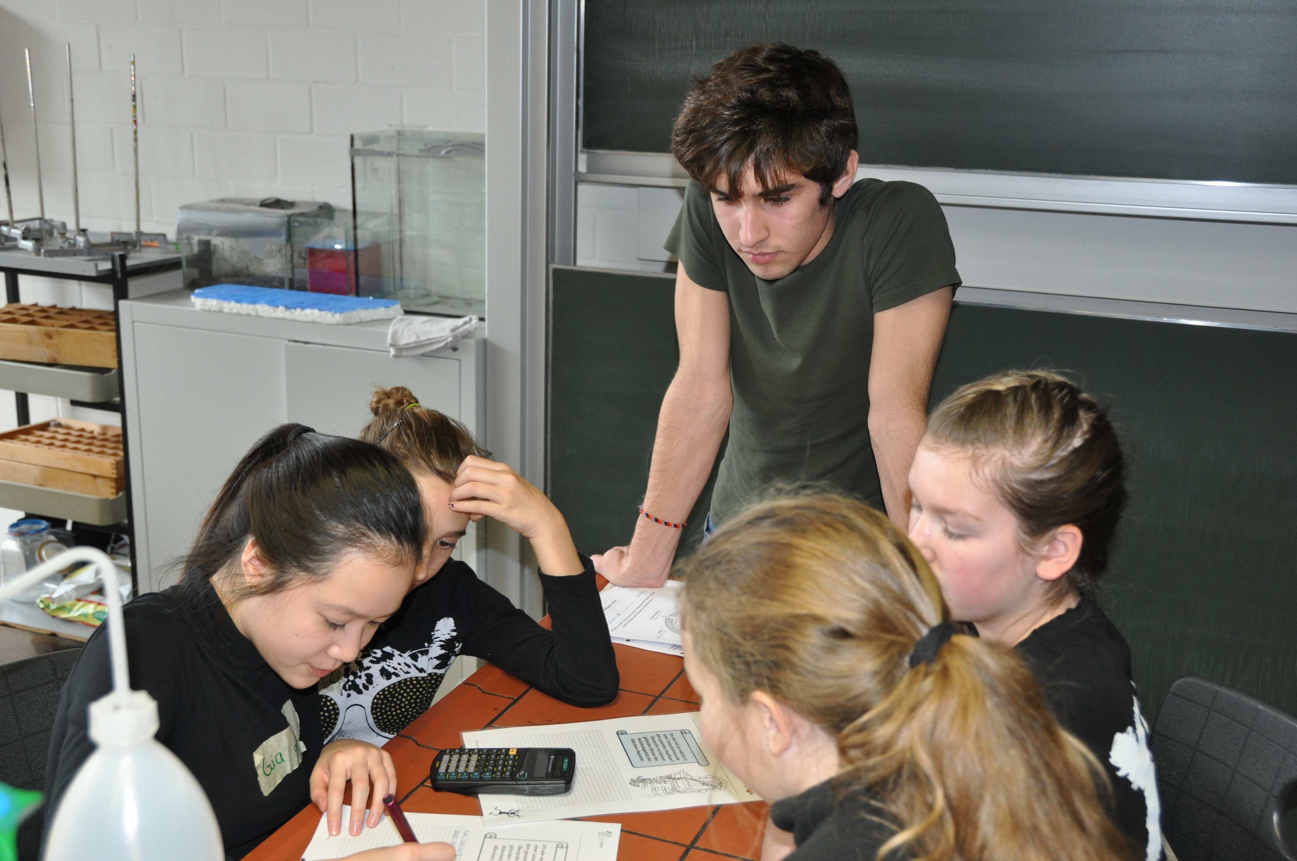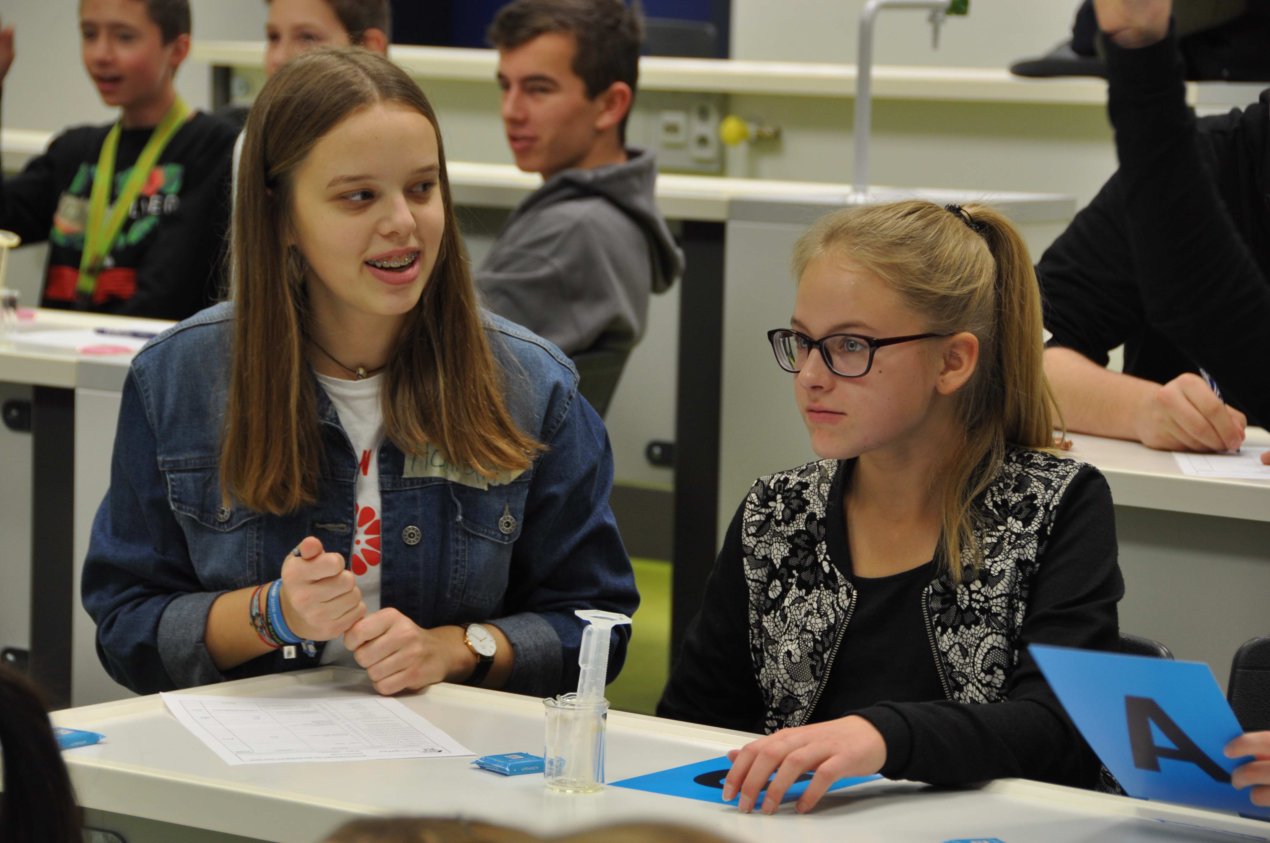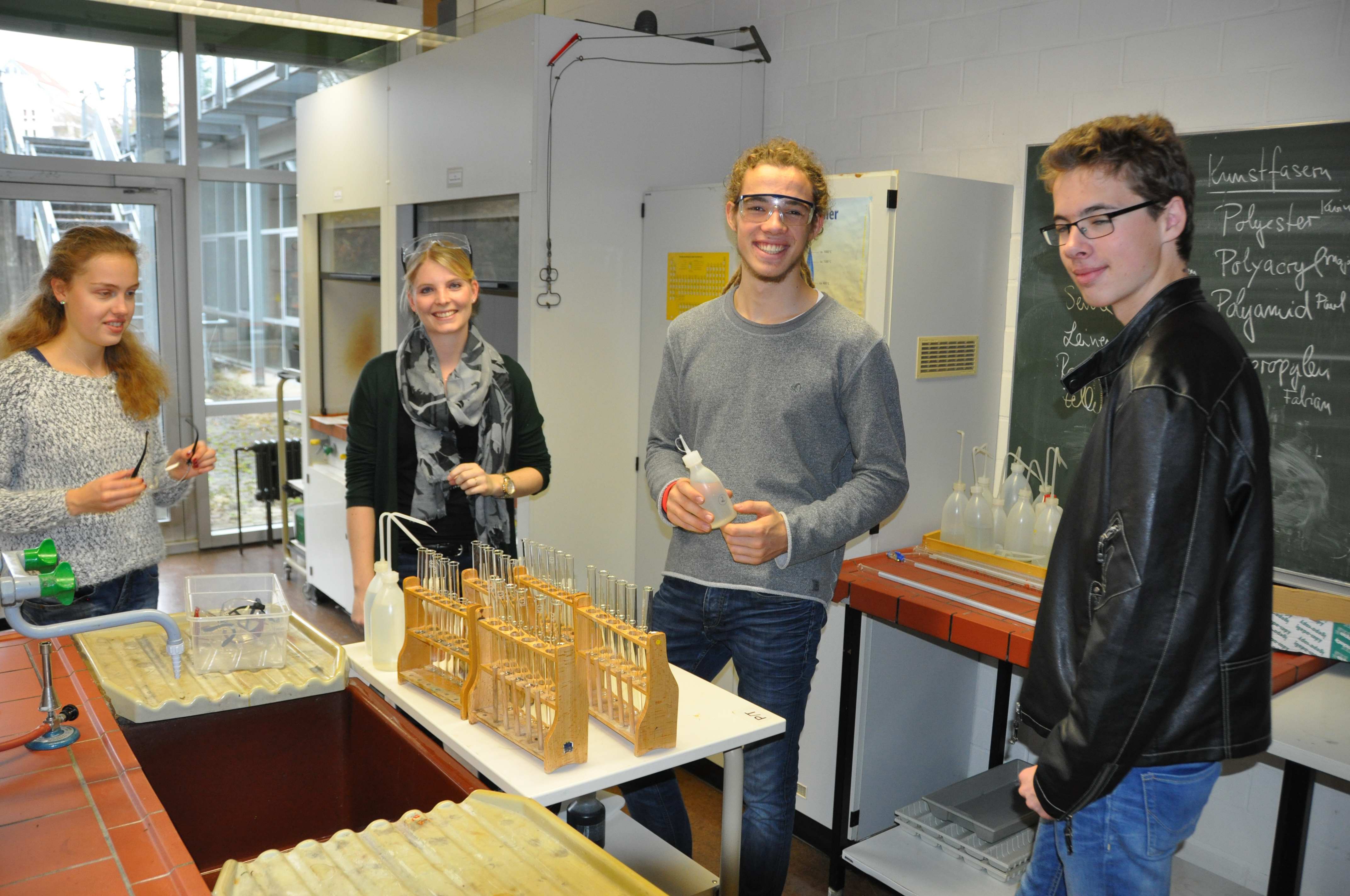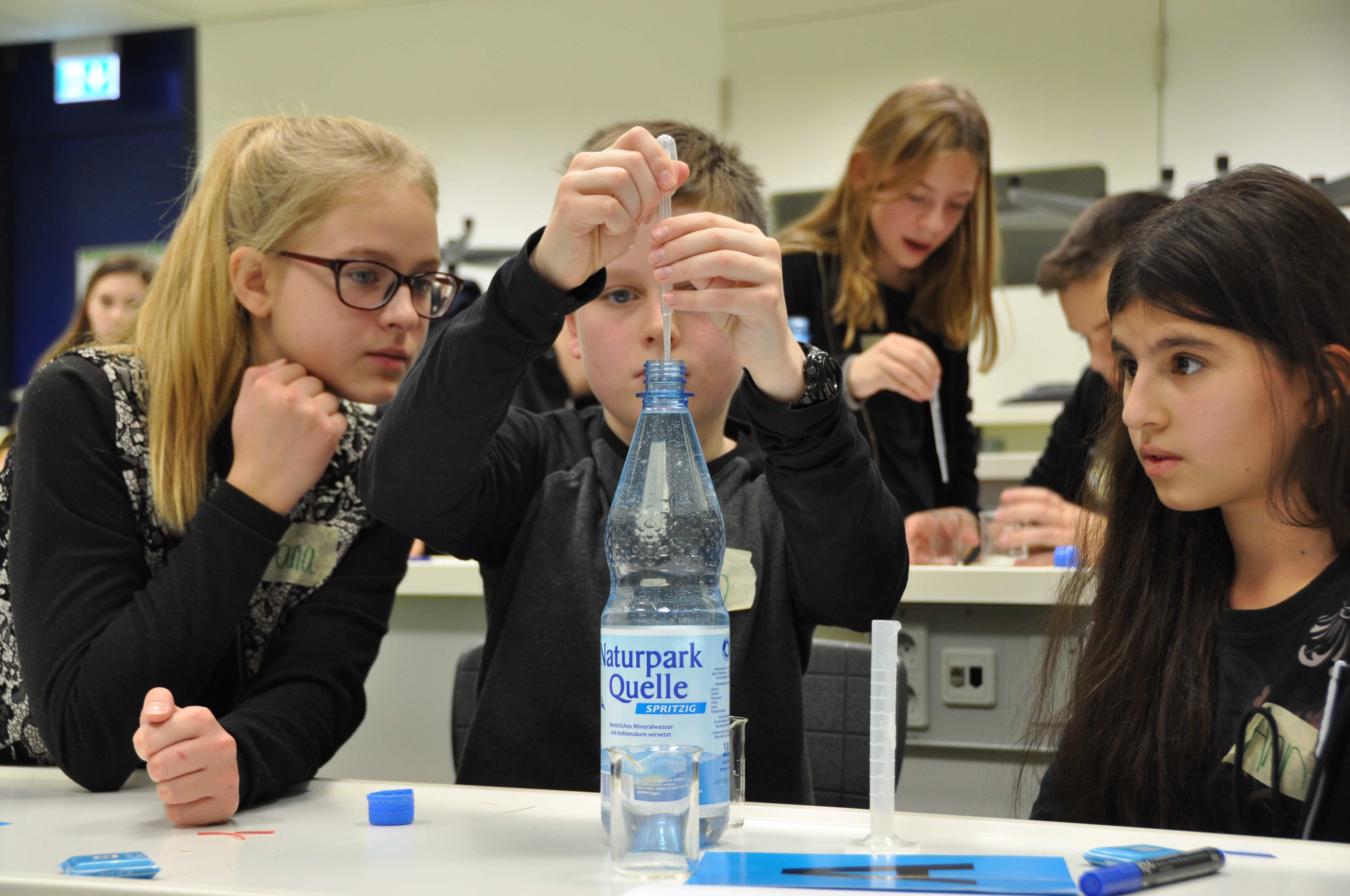 Die besten Teams der drei teilnehmenden Klassen - die "Rosa Erdbeeren", die "Knusperkekse" und die "Knusperflakes" traten dann noch einmal in einem Quiz gegeneinander an, bei dem wieder naturwissenschaftliche Wissen- und Knobelfragen gelöst und Experimente durchgeführt werden mussten. Dabei wurden sie bei einigen "Aufgaben an alle" kräftig von ihren Mitschülerinnen und Mitschülern unterstützt. Am Ende stand dann das Siegerteam schnell fest: Die "Rosa Erdbeeren" der 7b holten sich den Gesamtsieg für ihre Klasse und dürfen sich nun auf einen Besuch der "Experimenta" in Heilbronn als Preis freuen, der ihnen vom Förderverein des Werkgymnasiums spendiert wurde.