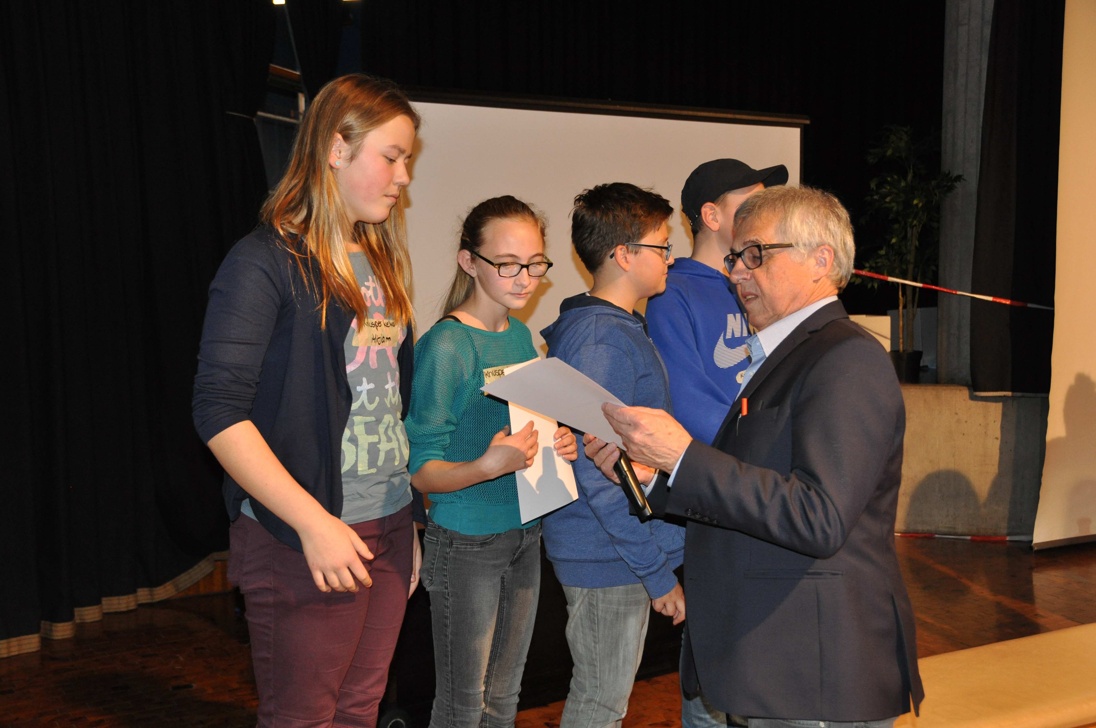 Auch die 7a und die 7c gingen nicht ganz leer aus. Jedes Team bekam vom Schulleiter Herrn Schölzel Urkunden für die erfolgreiche Teilnahme und als Trostpreis für die Klasse eine große Kiste Fruchtgummikrokodile überreicht.