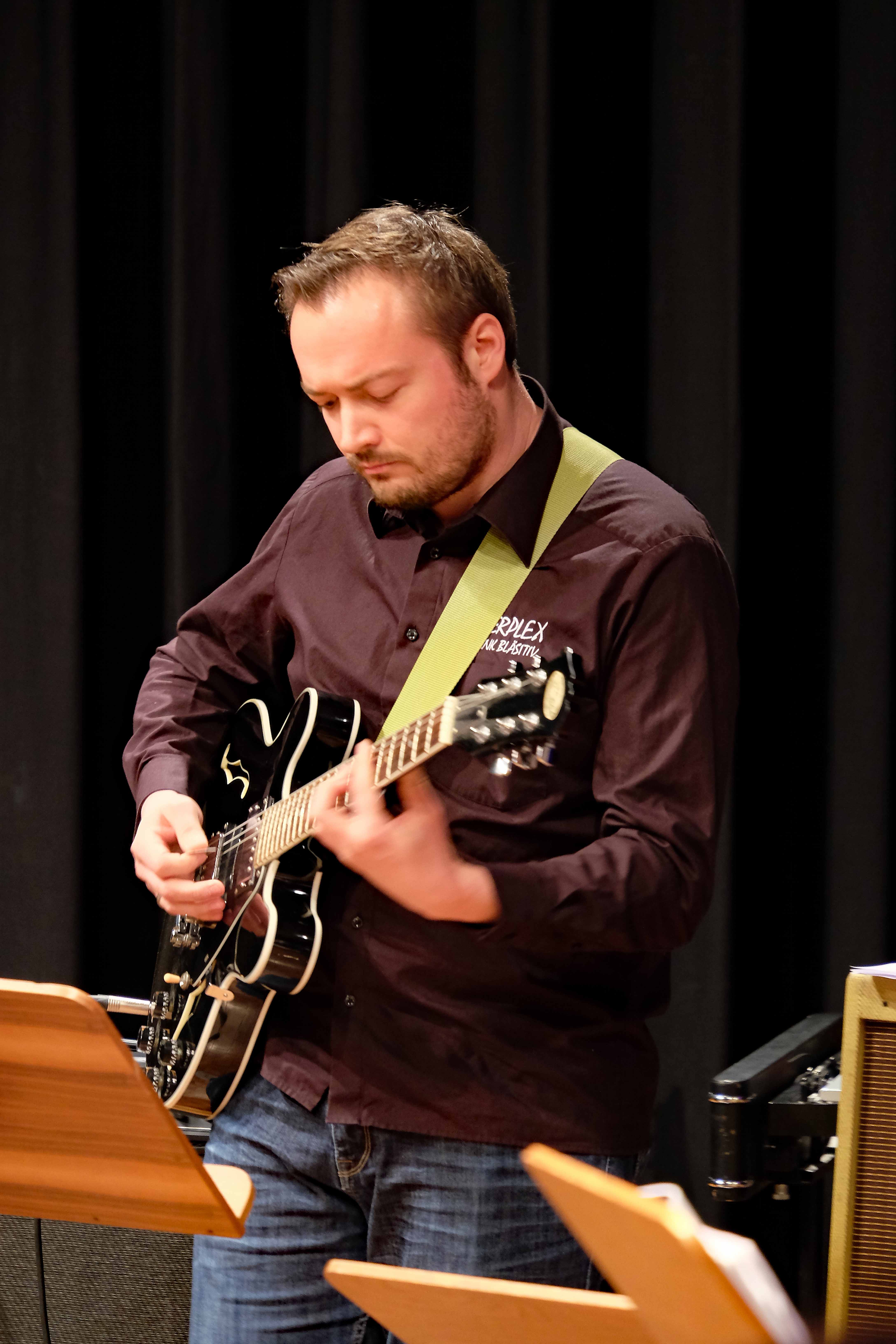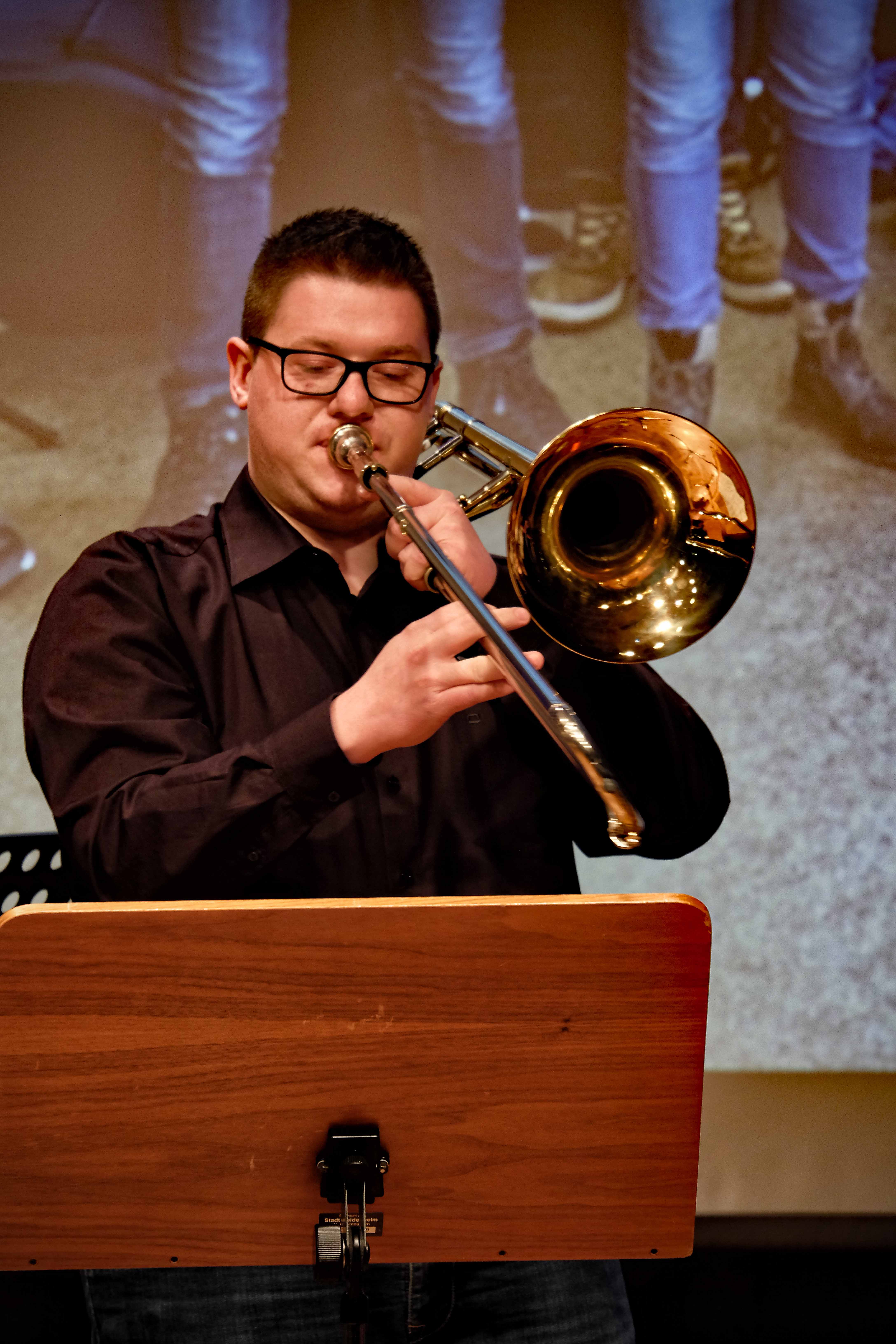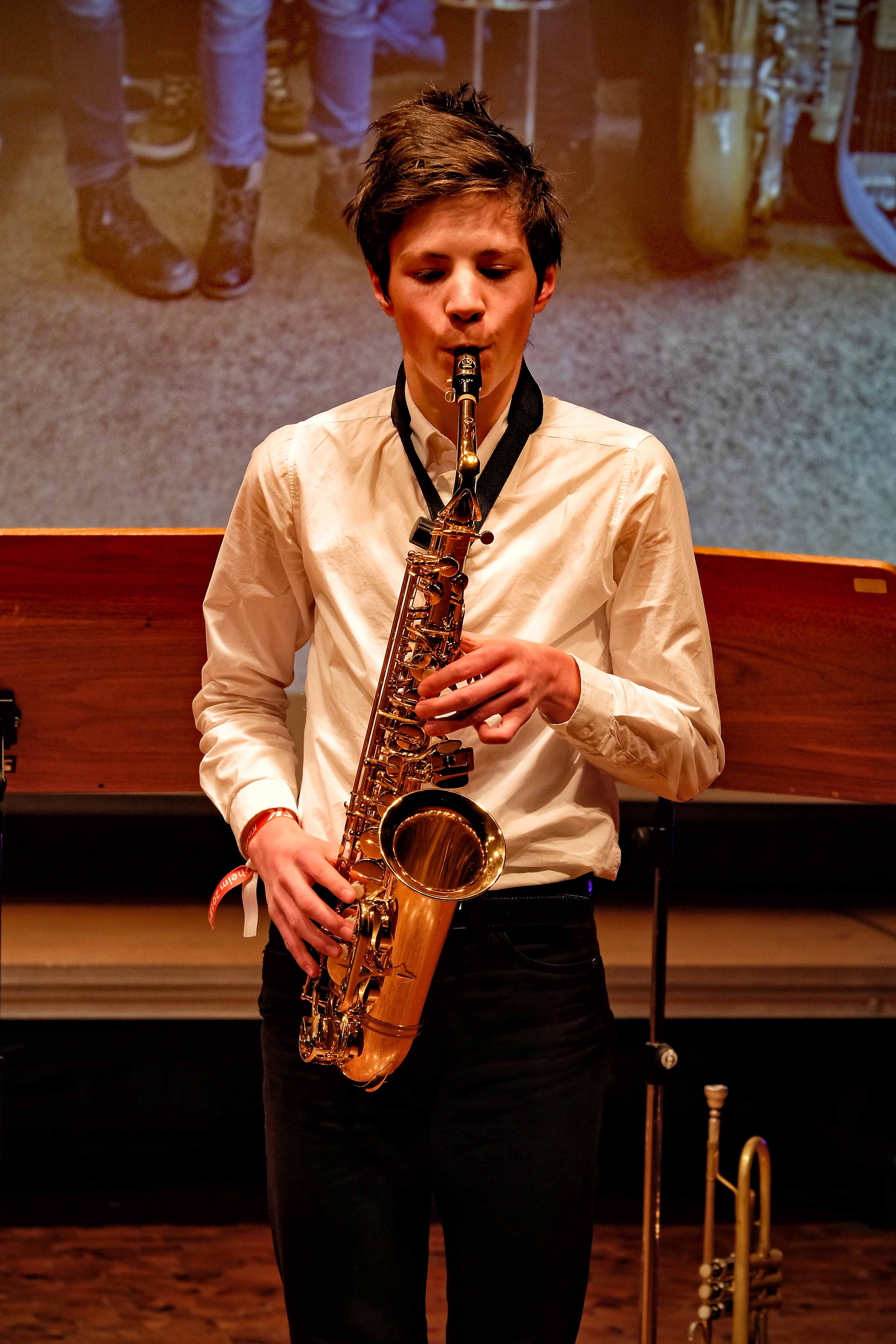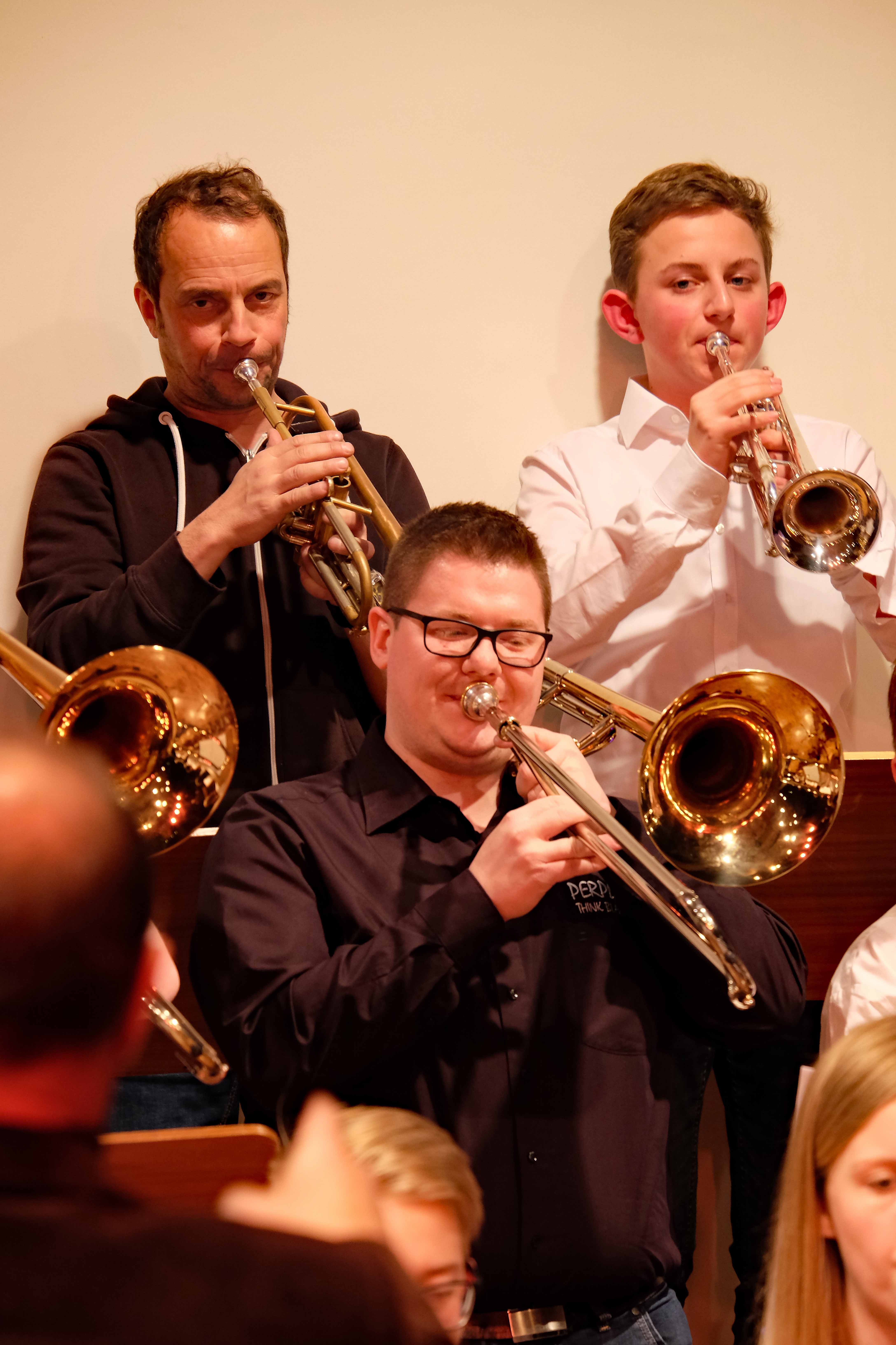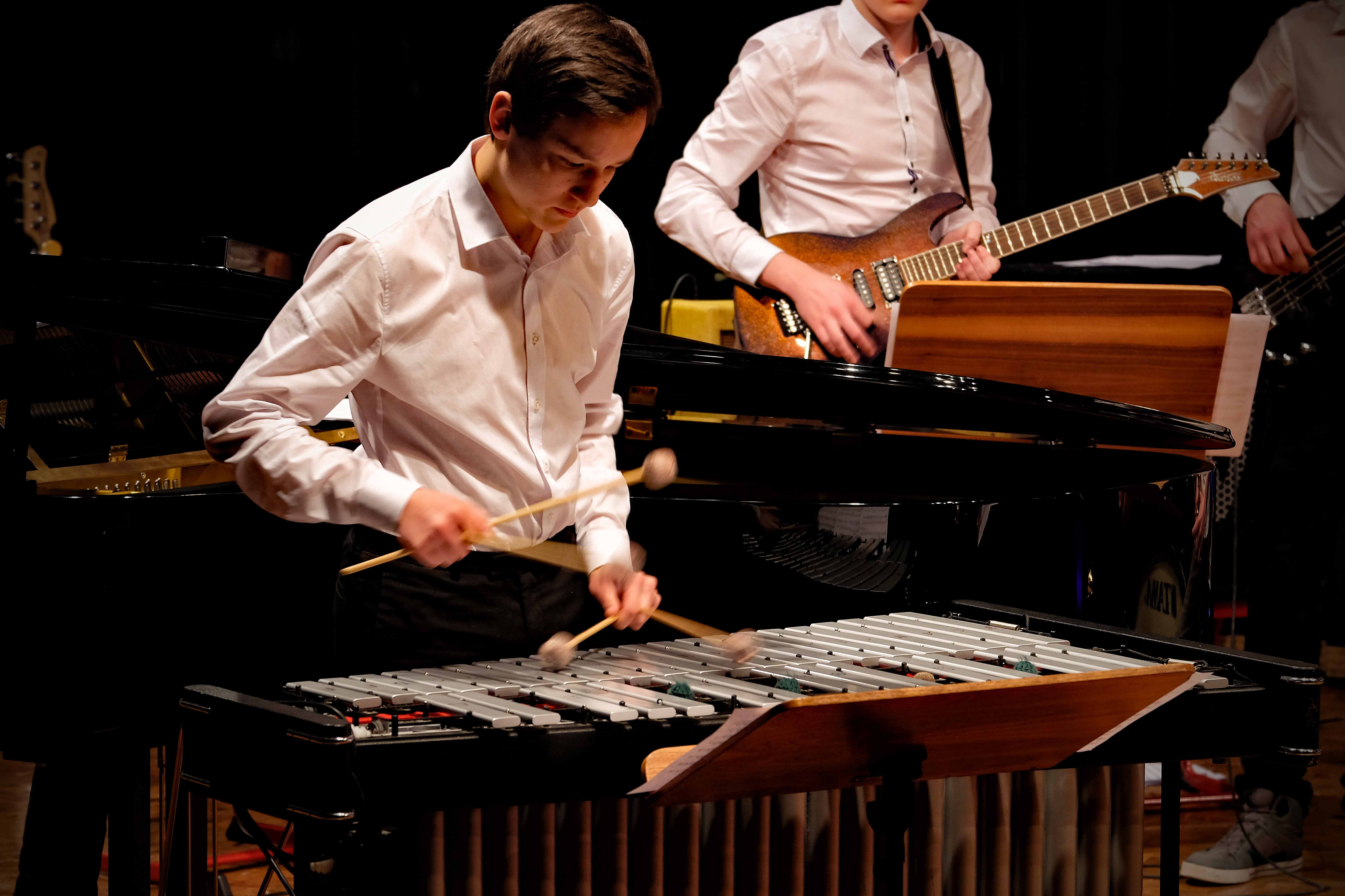 Und weil all diese Talente sich in besonderer Weise mit ihren Instrumenten hervorgetan und teilweise geradezu brilliert haben, möchten wir sie an dieser Stelle namentlich und bildlich würdigen (an dieser Stelle ein herzliches Dankeschön an Frank Keller, der diesen Abend wunderbar eingefangen hat). So spielten auf den Altsaxophonen Timon Frey, Nina Grether, Anja Necker, Jakob Krauss, Andrea Stickel, Florian Schuchter, Gabriel Ahl, Julia Junginger, Nadja Köberle und Verena Weichert. Die Tenorsaxophone ließen Martina und Jule Heisele, Samuel Junginger sowie Manuela Ittner ertönen. An der Trompete begeisterten Benjamin Vollbrecht, Attila Holczer, Ralf Müller und Alina Bantle-Müller sowie Marvin Nagel. Die Posaunen erklangen durch Lea Grether, Jonathan und Tobias Schied, Aaron Rau, Oliver Engling, Erik und Fabian Sucher sowie Andreas Köpf. Ihr Können am Piano bzw. Flügel zeigten Lukas Ignatzi, Klara Schmid und Emely Brehm. Die Gitarristen an diesem Abend waren Tim Buttkus, Stefan Eltgen, Max Maier Christian Bahls, Joshua Dittes und Oliver Germani. Für die tieferen Töne sorgten Alex Rösch, Jakob Kälble, Jakob Schmid und Peter Sucher am Bass sowie Tobias Schied mit der Tuba. Den anderen Teil der Rhythmus-Sektion am Schlagzeug übernahmen in souveräner Manier Julius Rinke, Benedict Schmid, Luis und Valentin Maier, Peter Sucher und Samuel Haffter. Last but not least glänzten Dominik Wiedemann und Aaron Rau am Vibraphon.