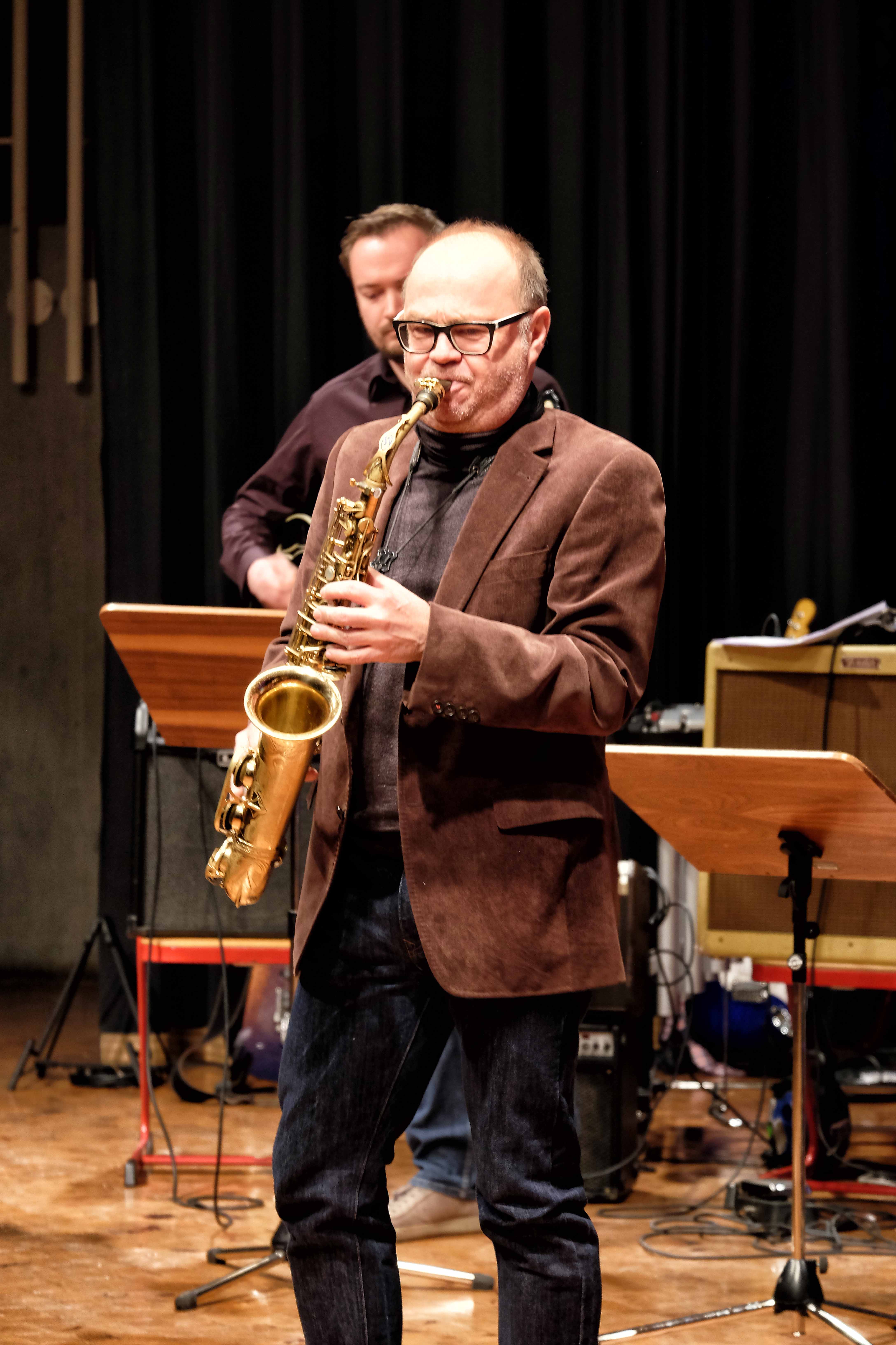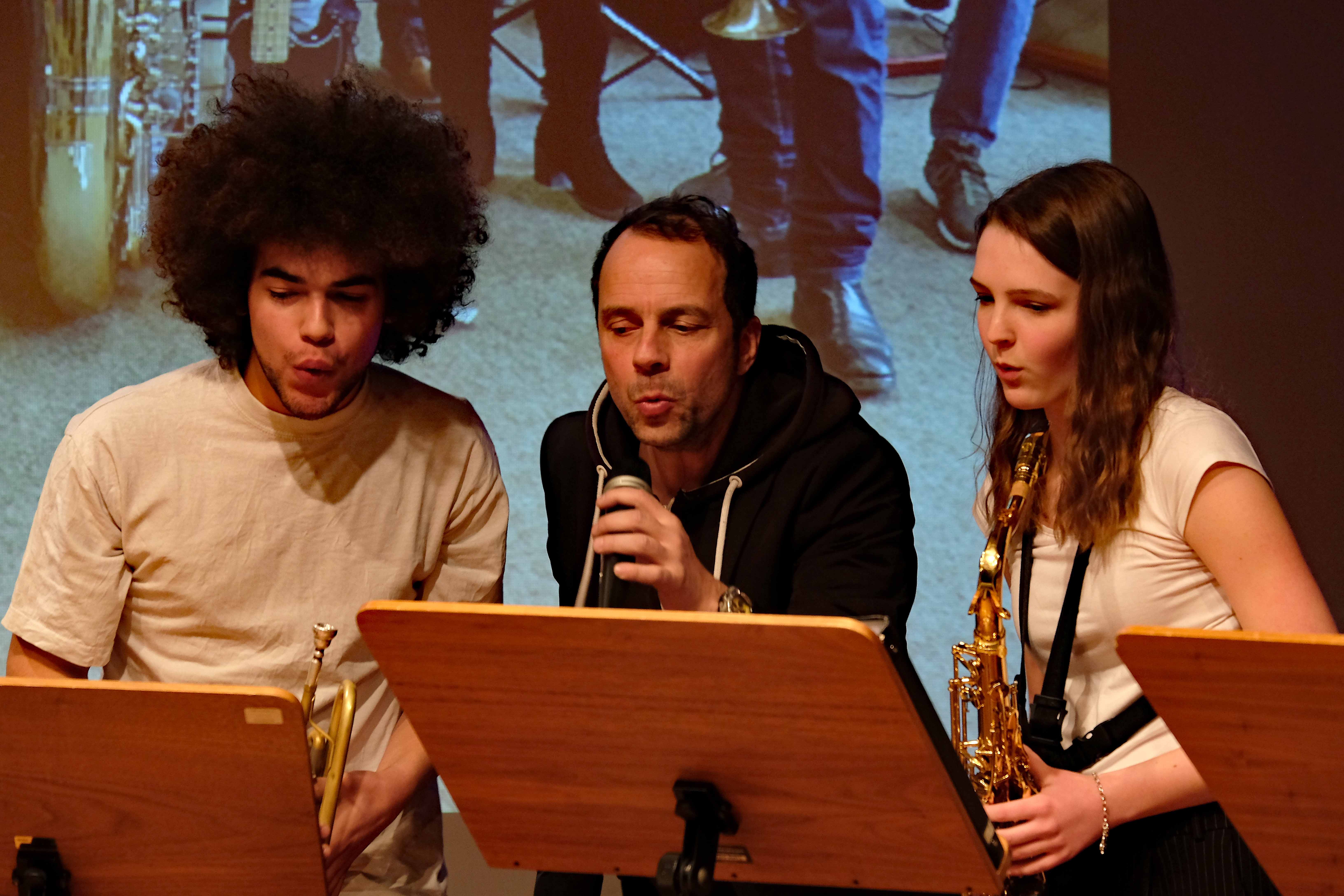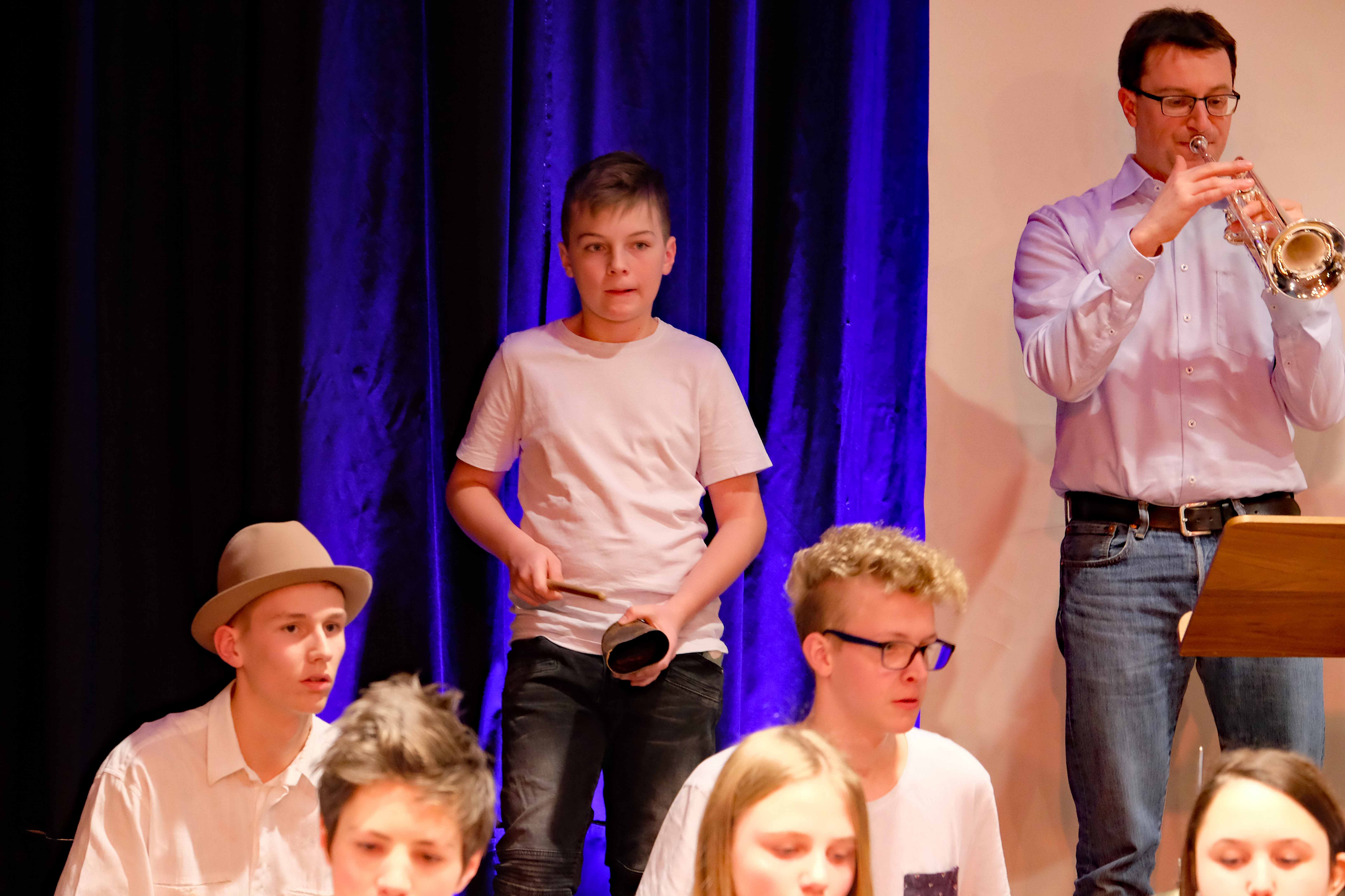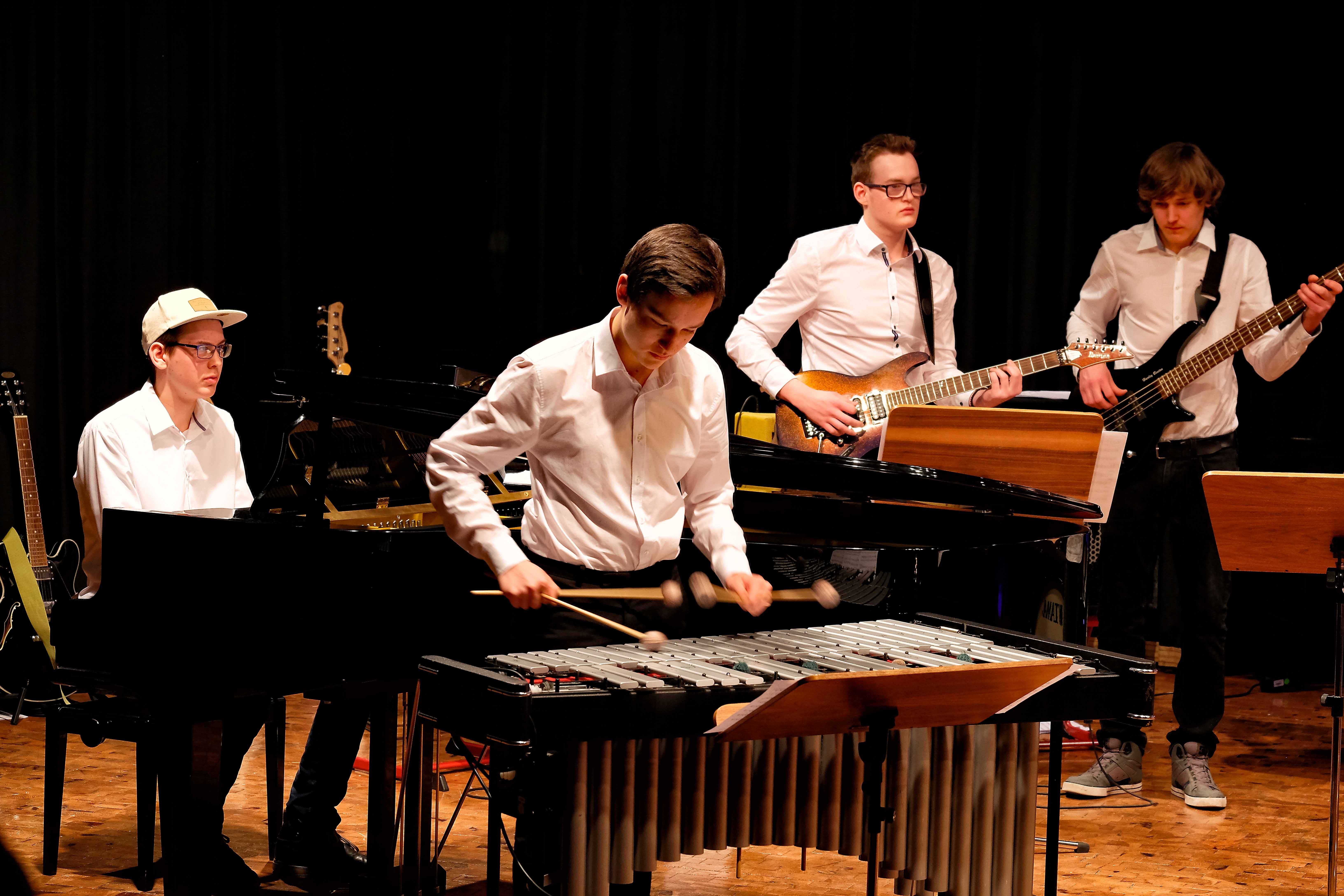 Es lag ein Knistern in der Luft der Kulturmulde des Werkgymnasiums, als sich am Samstagabend die Ränge füllten und sich das Auditorium bereit machte, um sich das Abschlusskonzert des 20. Jazzworkshops anzuhören. Seit dem Freitagmorgen probten hierfür viele Schülerinnen und Schüler von WeG, HG, des MSG, SG, HeT sowie externe Musiker und natürlich die renomierten Jazzdozenten Eberhard Budziat (Posaune), Martin Schrack (Piano), Klaus Graf (Saxophon) und Joo Kraus (Trompete). Im Anschluss an einen erfolgreichen ersten Probetag (2.03.2018) gaben in der Dualen Hochschule in Kooperation mit „Jazz Heidenheim e.V.“ besagte Dozenten ein Konzert als „Martin Schrack Sextett“ (zusätzlich Axel Kühn am Bass und Felix Schrack am Schlagzeug) und verzauberten den vollbesetzten Saal, nur um am nächsten Tag gleich weiter zu proben und erneut ein Konzert zu geben. Eine Liebe zur Musik, die jeder Hörer spüren kann. So auch am Samstagabend im Werkgymnasium.