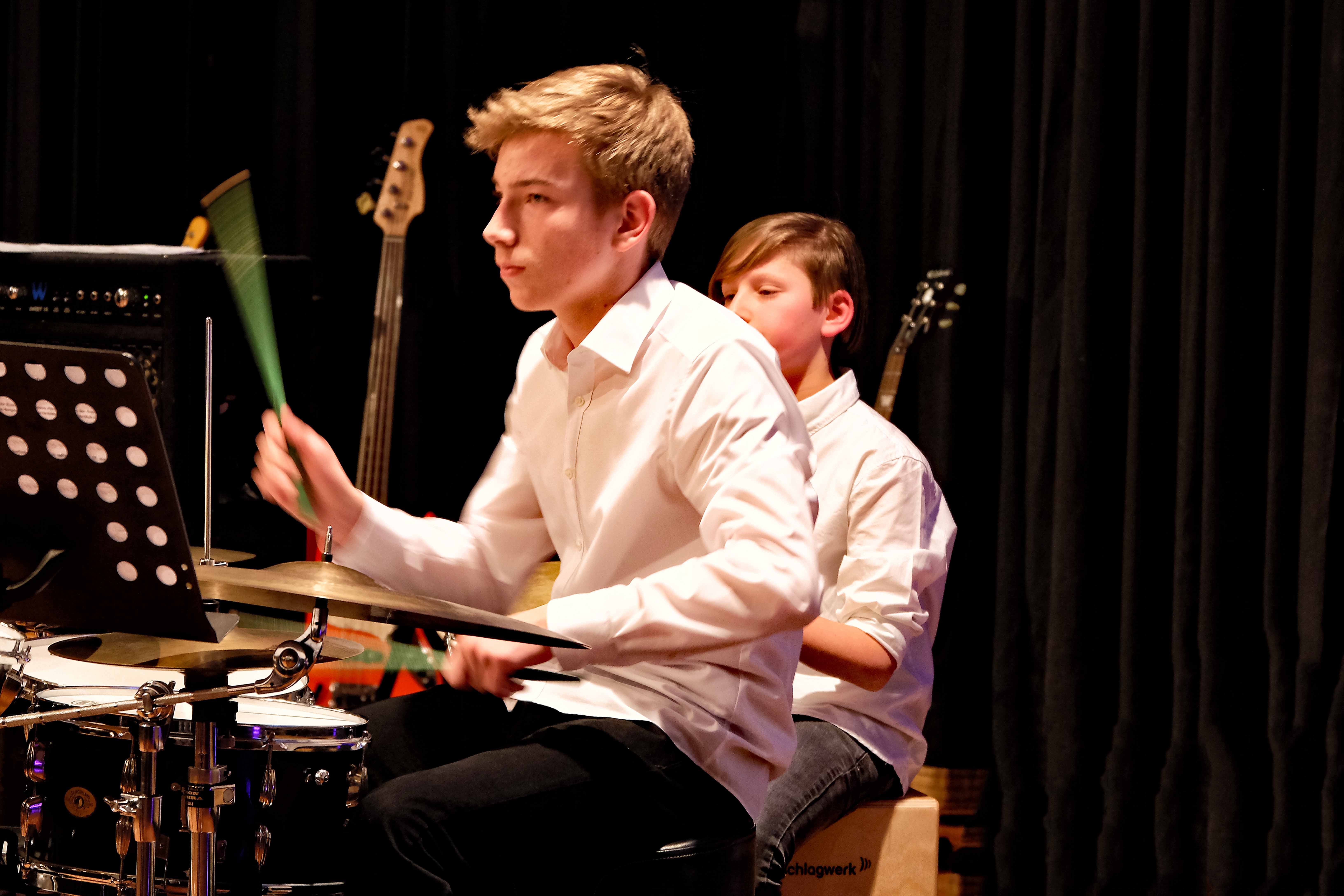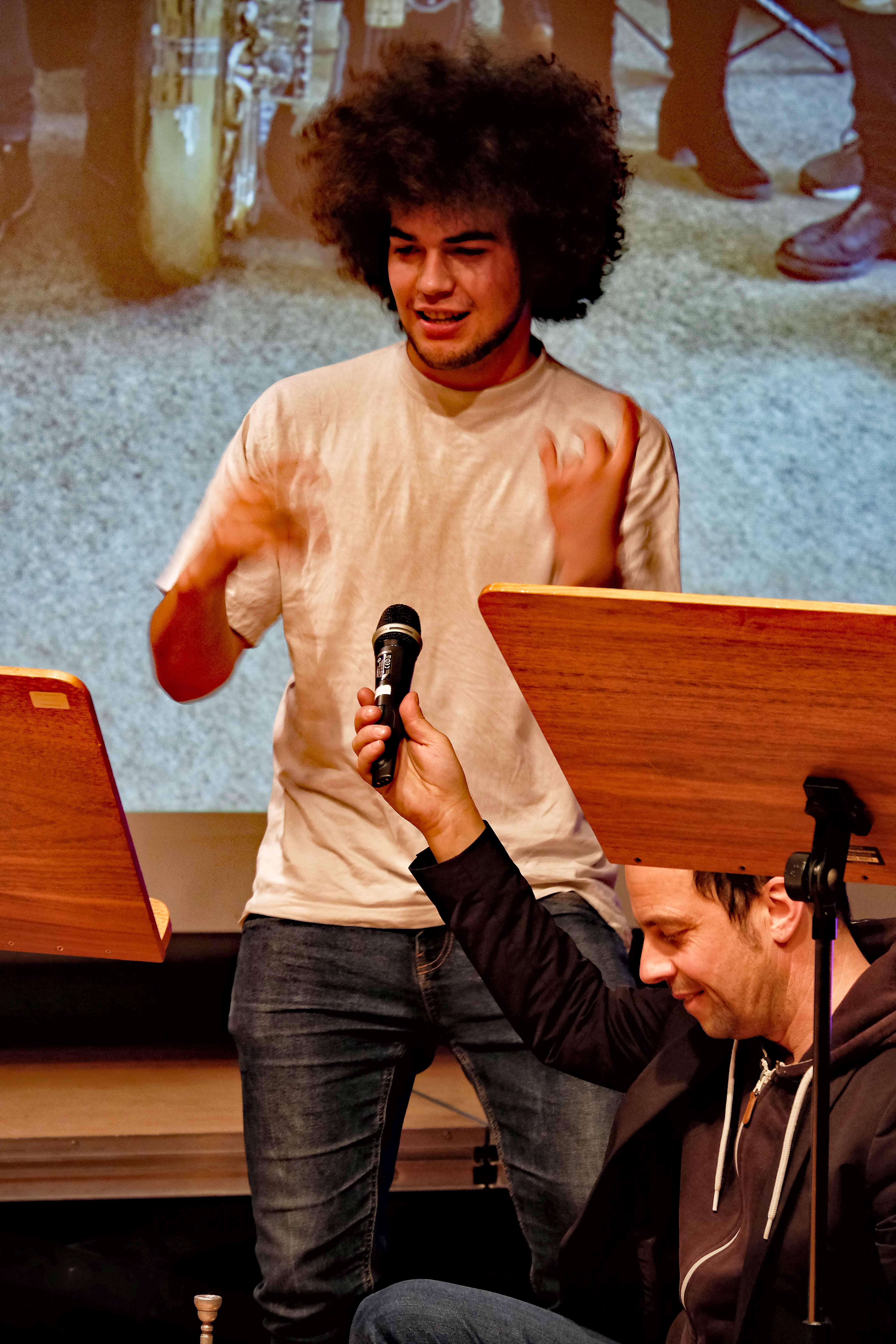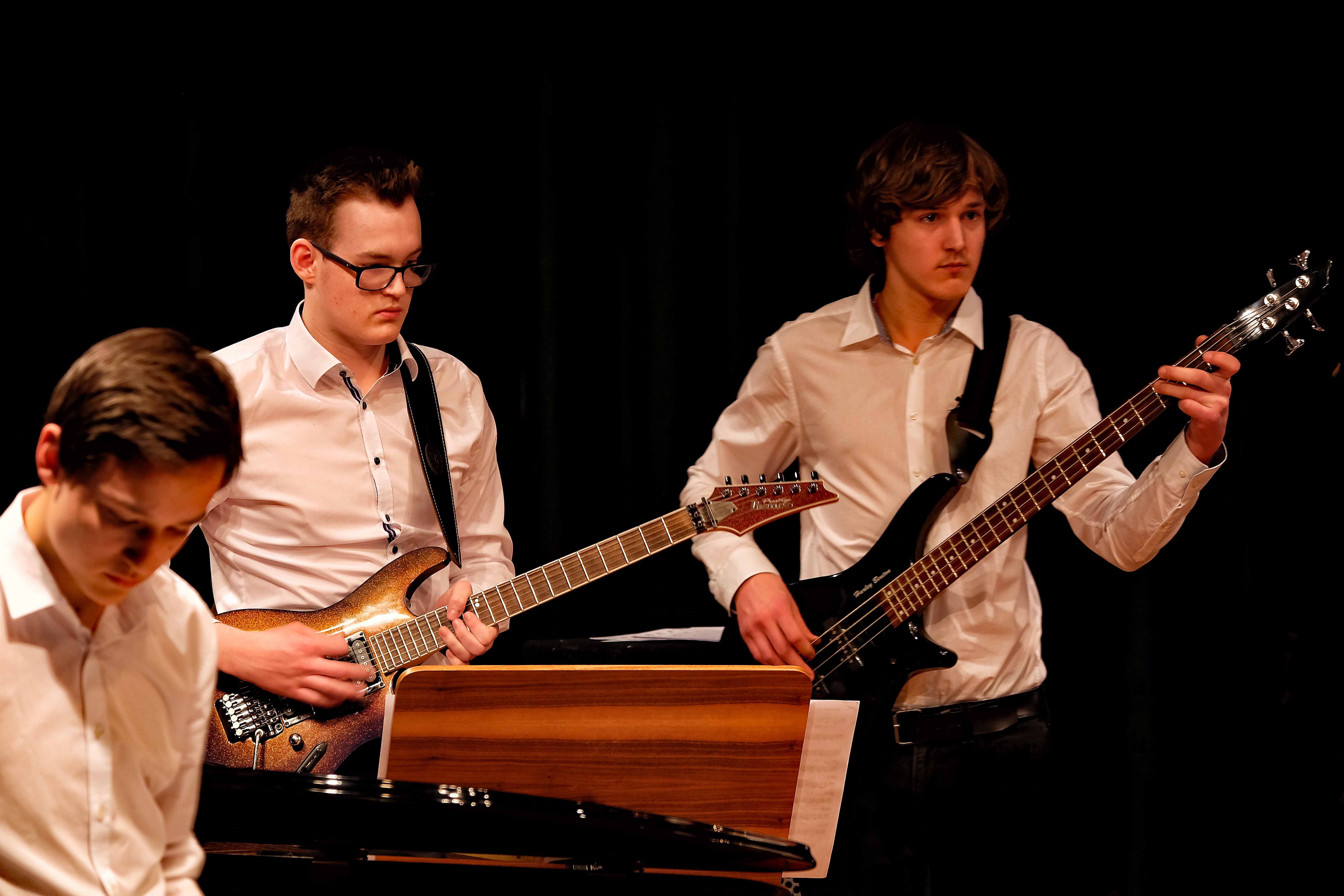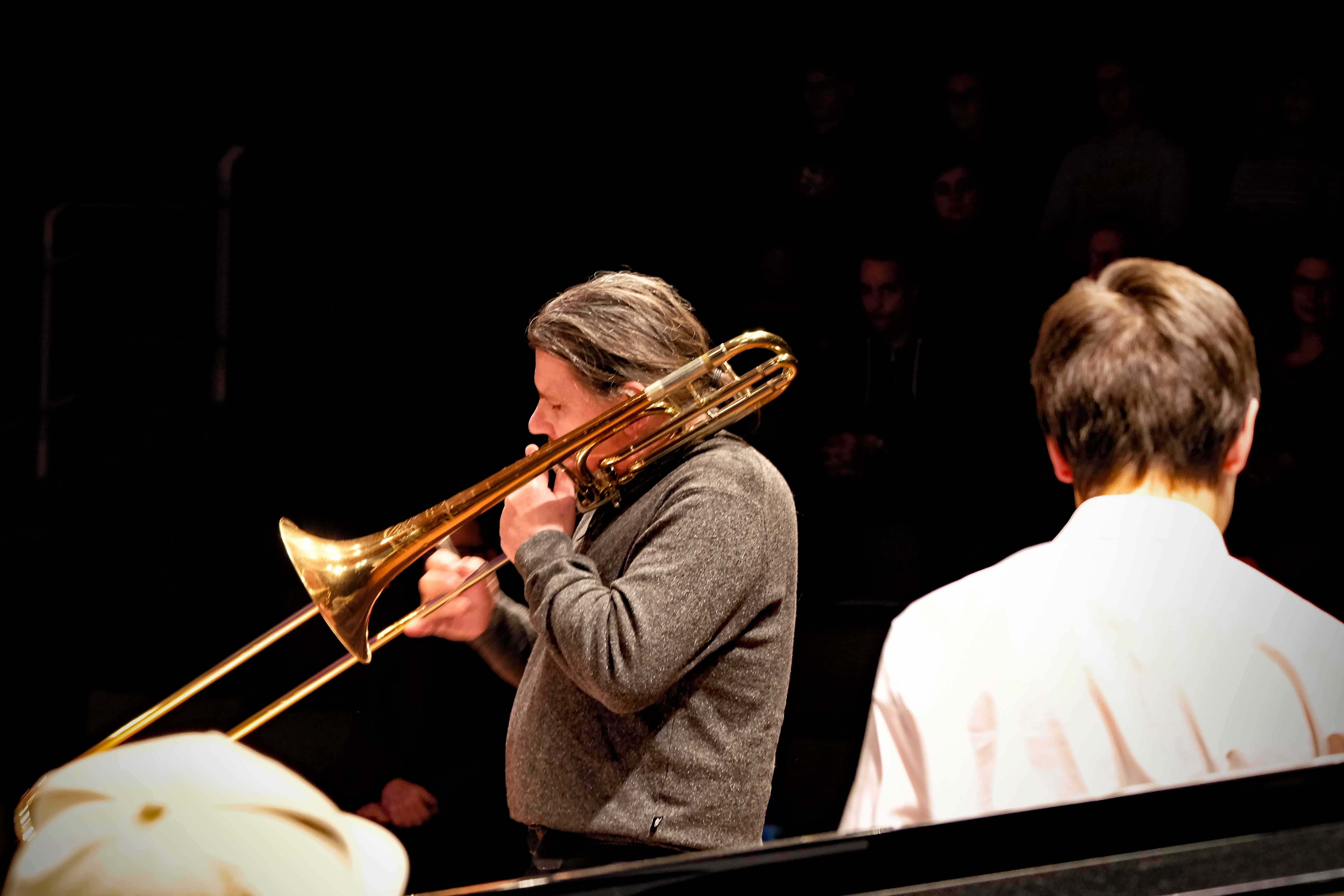 Es lag ein Knistern in der Luft der Kulturmulde des Werkgymnasiums, als sich am Samstagabend die Ränge füllten und sich das Auditorium bereit machte, um sich das Abschlusskonzert des 20. Jazzworkshops anzuhören. Seit dem Freitagmorgen probten hierfür viele Schülerinnen und Schüler von WeG, HG, des MSG, SG, HeT sowie externe Musiker und natürlich die renomierten Jazzdozenten Eberhard Budziat (Posaune), Martin Schrack (Piano), Klaus Graf (Saxophon) und Joo Kraus (Trompete). Im Anschluss an einen erfolgreichen ersten Probetag (2.03.2018) gaben in der Dualen Hochschule in Kooperation mit „Jazz Heidenheim e.V.“ besagte Dozenten ein Konzert als „Martin Schrack Sextett“ (zusätzlich Axel Kühn am Bass und Felix Schrack am Schlagzeug) und verzauberten den vollbesetzten Saal, nur um am nächsten Tag gleich weiter zu proben und erneut ein Konzert zu geben. Eine Liebe zur Musik, die jeder Hörer spüren kann. So auch am Samstagabend im Werkgymnasium.