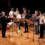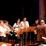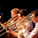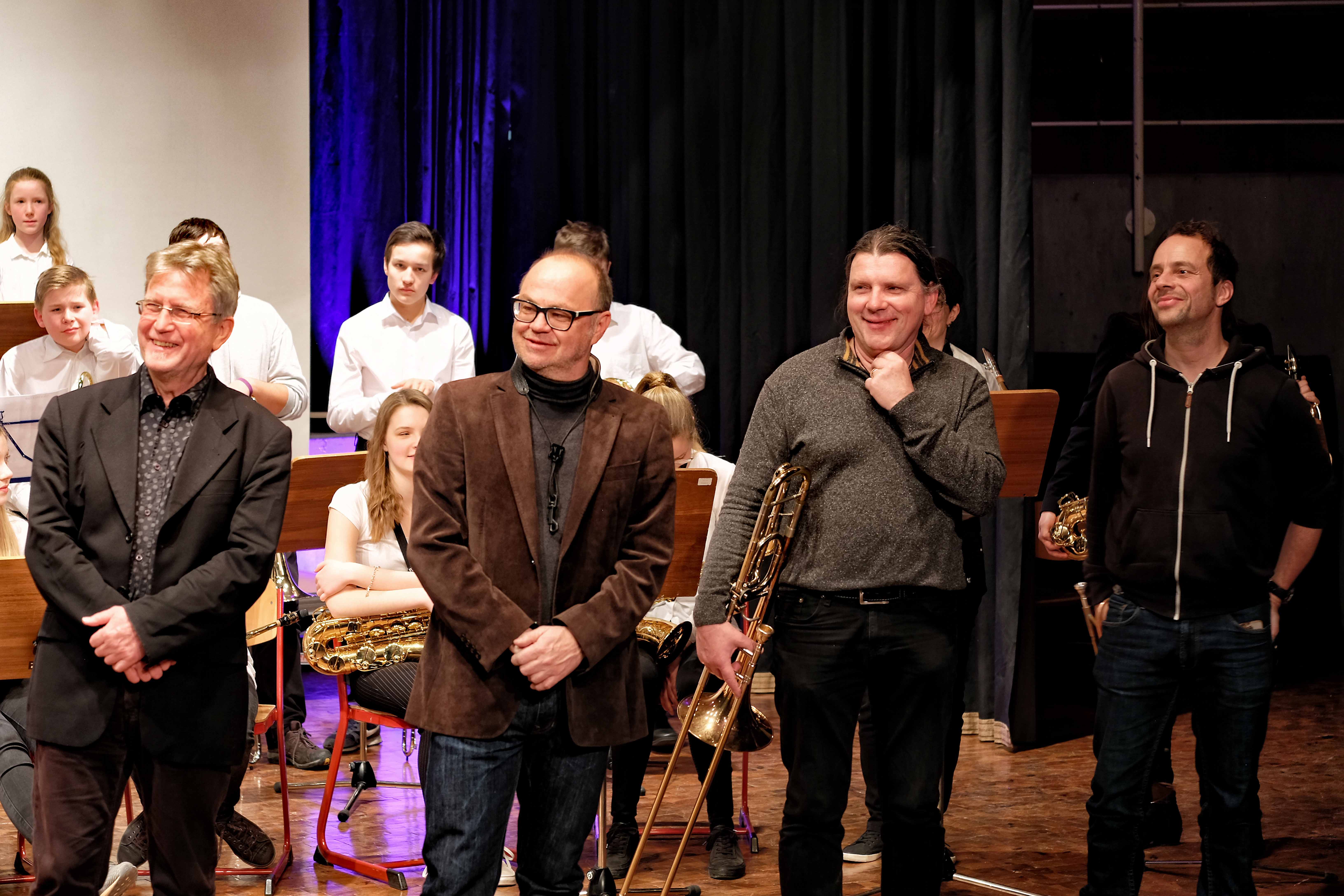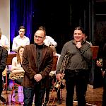Zum Abschluss des Konzerts fanden sich nochmals alle Musiker als Bigband auf der Bühne ein, um zwei großartig interpretierte Klassiker zum Besten zu geben: „Cold Duck Time“ von Eddie Harris und als großes Finale: Louis Primas Hit „Sing Sing Sing“ (weltweit bekannt geworden durch Benny Goodmans Arrangement, dem auch an diesem Abend gefolgt wurde). Das Publikum war begeistert und verlangte qua Dauerapplaus eine Zugabe, die dann auch prompt kam. WeG-Schulleiter Werner Schölzel, stellvertretender Schulleiter Ralf Kiesel und Workshopleiter Joachim Kocsis gratulierten den Nachwuchstalenten und allen im Hintergrund Beteiligten zu einer herausragenden musikalischen Leistung. Ein rundum gelungenes, abwechslungsreiches und vielseitiges 20. Jubiläum, bei dem nicht nur die Workshopteilnehmer und Dozenten viele tolle Erfahrungen sammeln konnten, sondern auch das Publikum mit dem Jazz regelrecht angesteckt wurde. Man darf sich, nachdem was hier geboten wurde, auf die 21. Auflage freuen. Denn die Symbiose aus Weltklassemusikern und jungen, extrem motivierten Nachwuchsleuten funktionierte nicht nur heuer, sondern scheint alle fürs nächste Wiedersehen angestachelt zu haben.