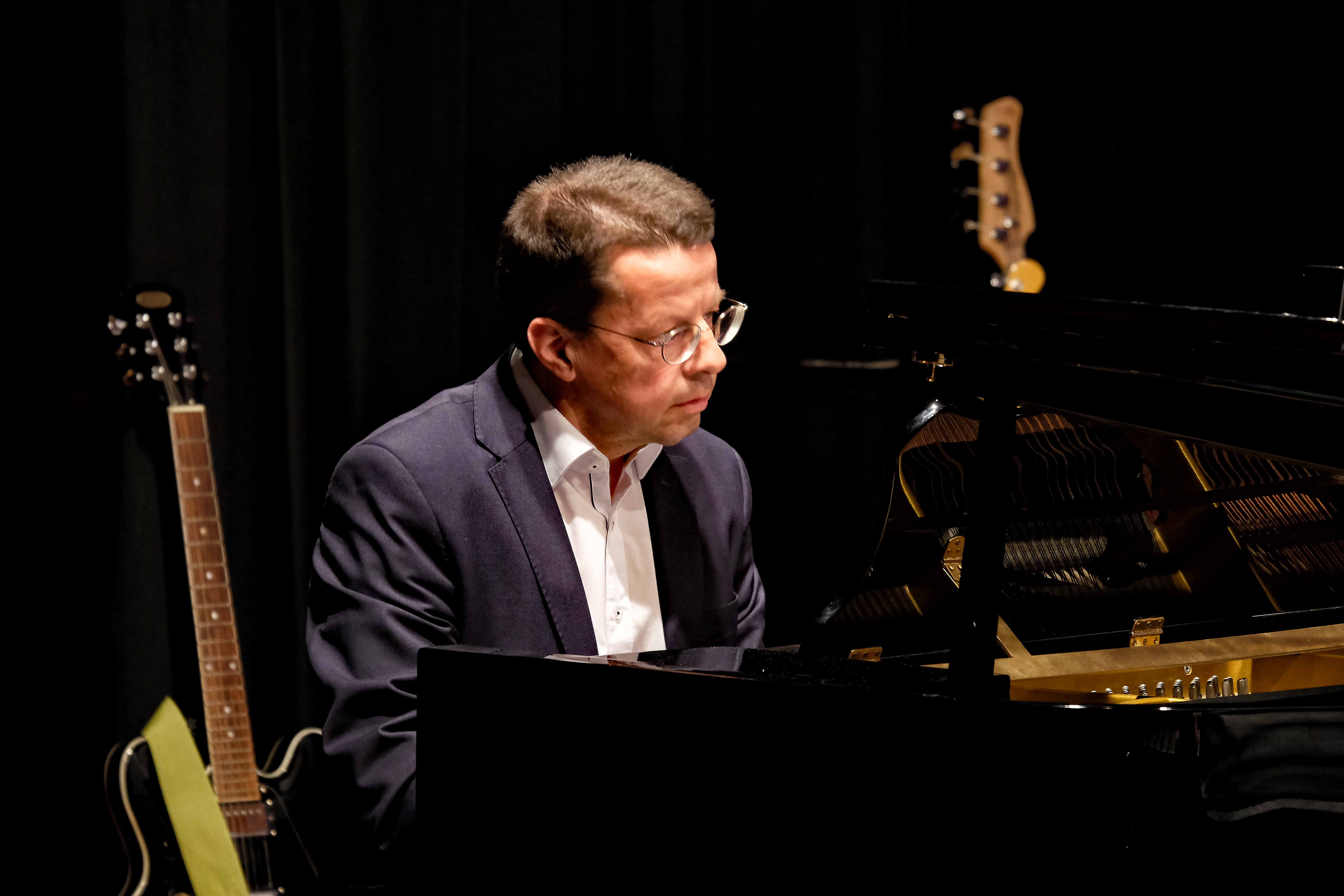 Danach gab Martin Schracks Combo den Auftakt mit dem großartig interpretierten Bebop-Klassiker „Killer Joe“ von Benny Golson. Der Namensgeber des Songs spielte auch gleich mit, nämlich am Klavier: Joachim Kocsis, der wohl fortan den Beinamen „Killer Joe Kocsis“ tragen wird.