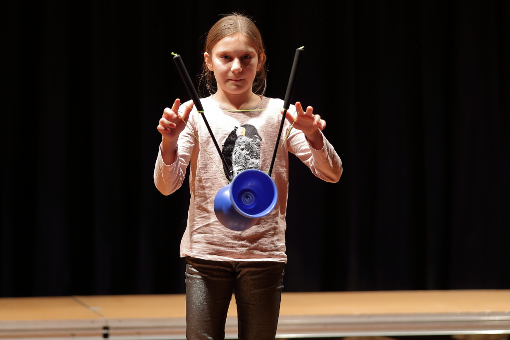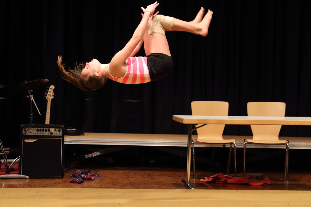 Das Publikum wurde aber nicht nur musikalisch verwöhnt. Schülerinnen der fünften Klassen lieferten zwei tolle Shows aus dem Bereich der Jazzgymnastik. Auch eine Zaubertrickeinlage und eine Diabolo-Show im Dunkeln gehörten dazu. Dem Publikum wurde also ein rundum abwechslungsreiches Programm geboten.