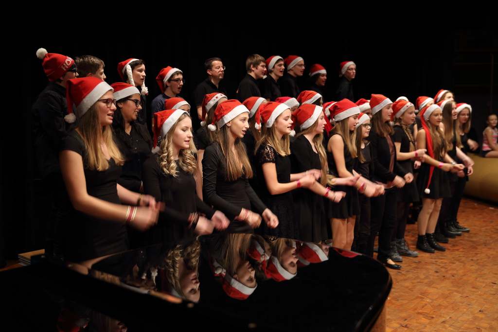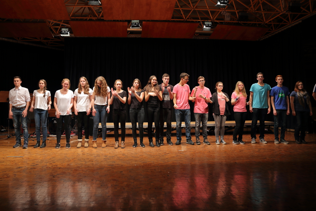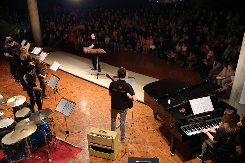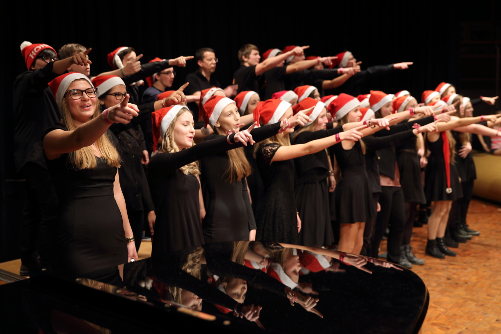 Besinnlich, lustig, abwechslungsreich, überraschend, unterhaltsam – dies alles zeichnete den diesjährigen Abend der kleinen Stücke am WeG in der Kulturmulde aus. Eröffnet wurde das kurzweilige Programm durch den Unterstufenchor, der gleich für die richtige Stimmung sorgte. Es folgte eine bunte Mischung aus Akrobatik, Auftritten der Jazzband und des großen Chores sowie anderen musikalisch-rhythmischen und künstlerischen Darbietungen – zum Teil angeleitet von den Musiklehrern Julia Strasser, Helga Weber und Joachim Kocsis, zum Teil von den Schülerinnen und Schülern selbst einstudiert und geprobt.