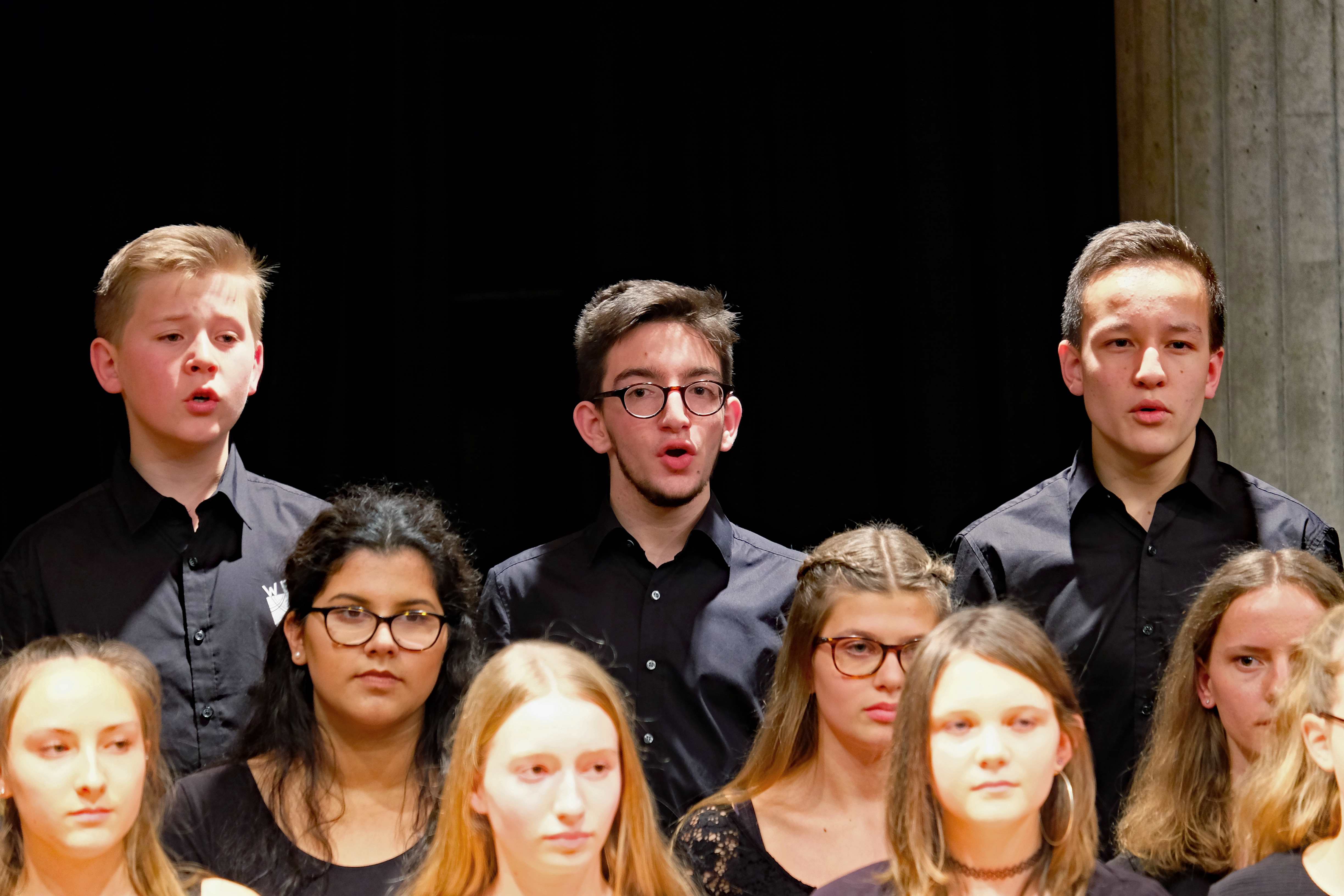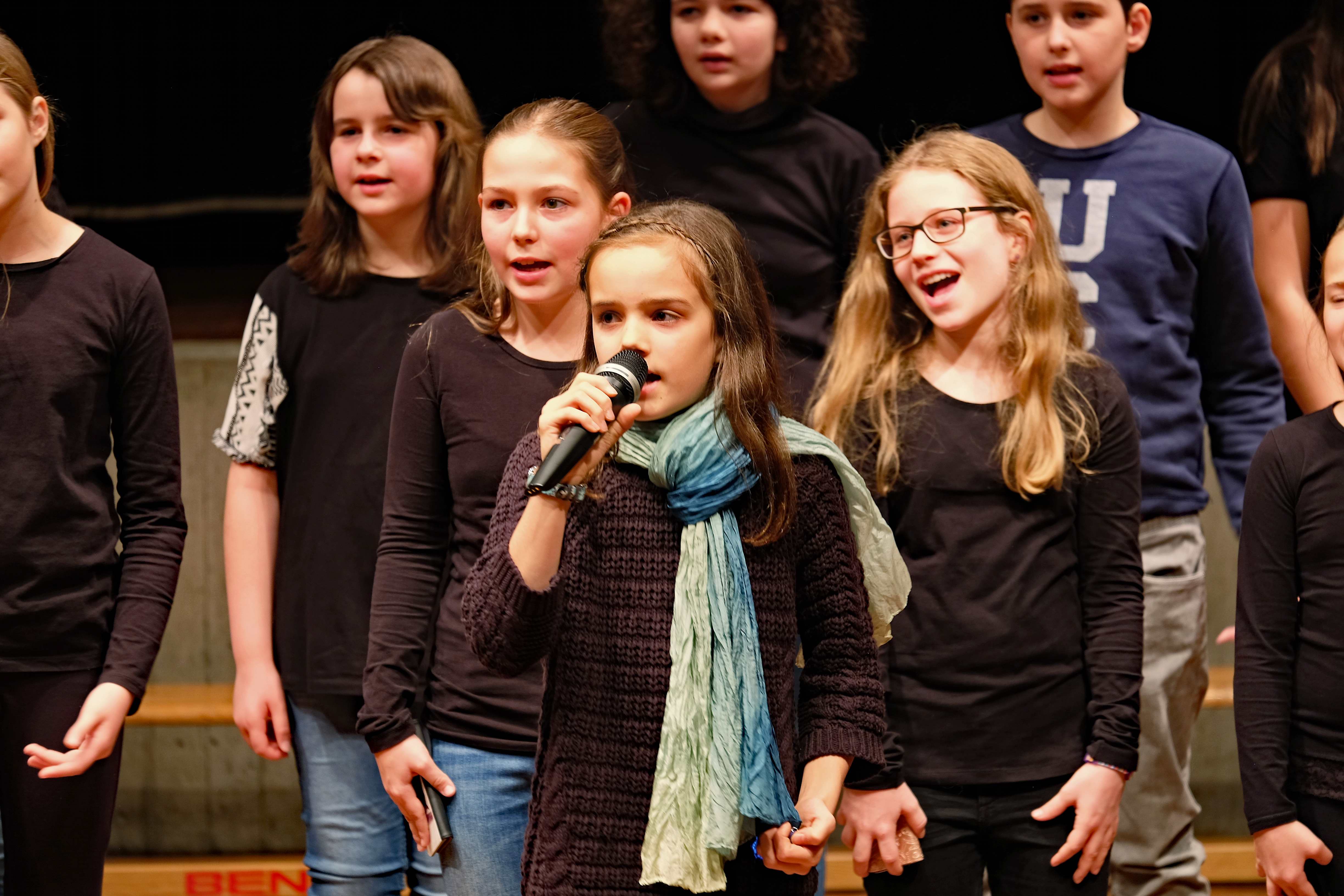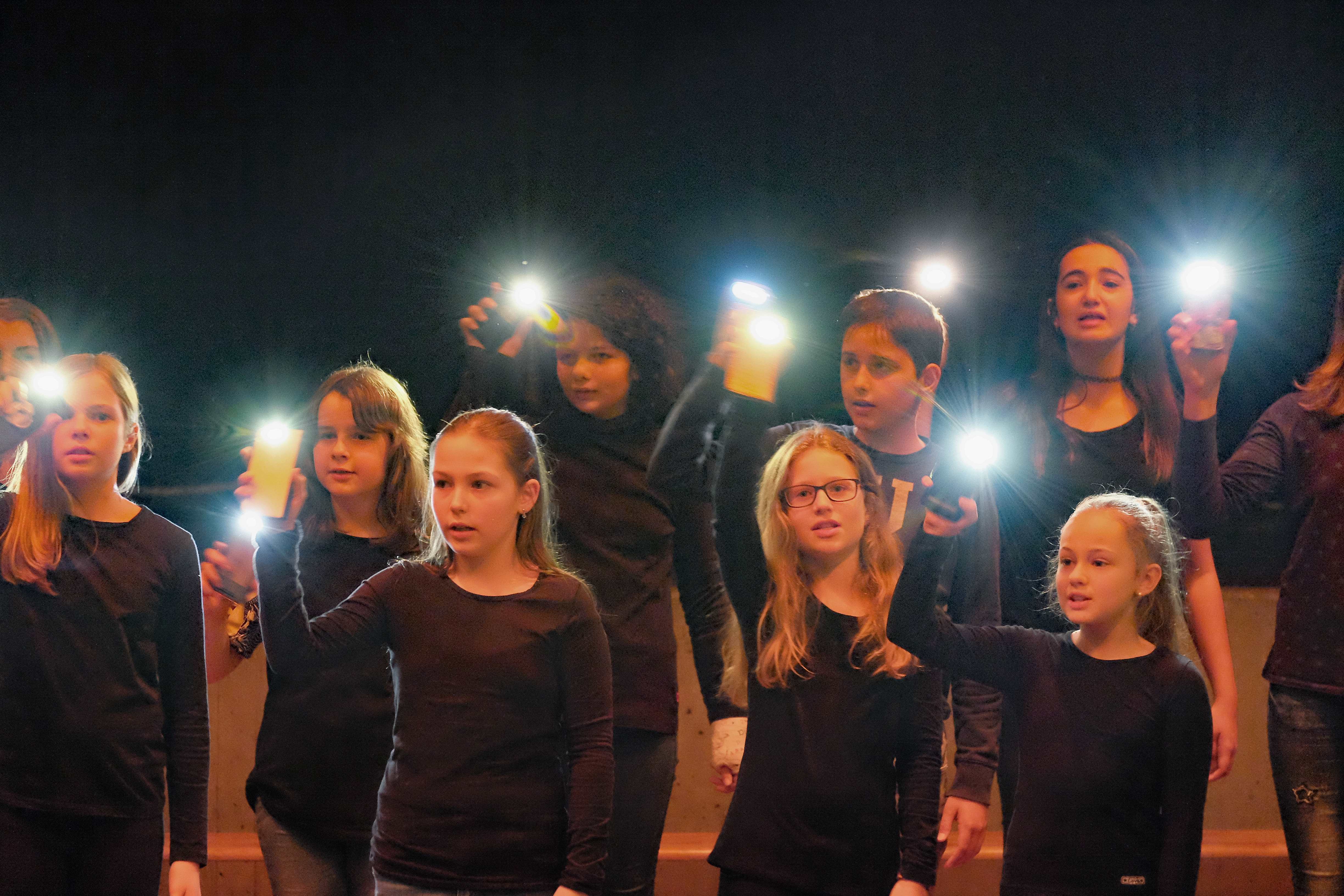 Danach ging es ebenso munter weiter mit diversen Bläserensembles, beeindruckenden Solo-Einlagen (Gesang und Flügel) sowie einer Boomwhackers-Vorführung. Den krönenden Abschluss bildete der Große Chor, der angeleitet von Julia Strasser die Titel „You´ll be in my heart“ und „Angels watching over me“ feierlich vortrug.