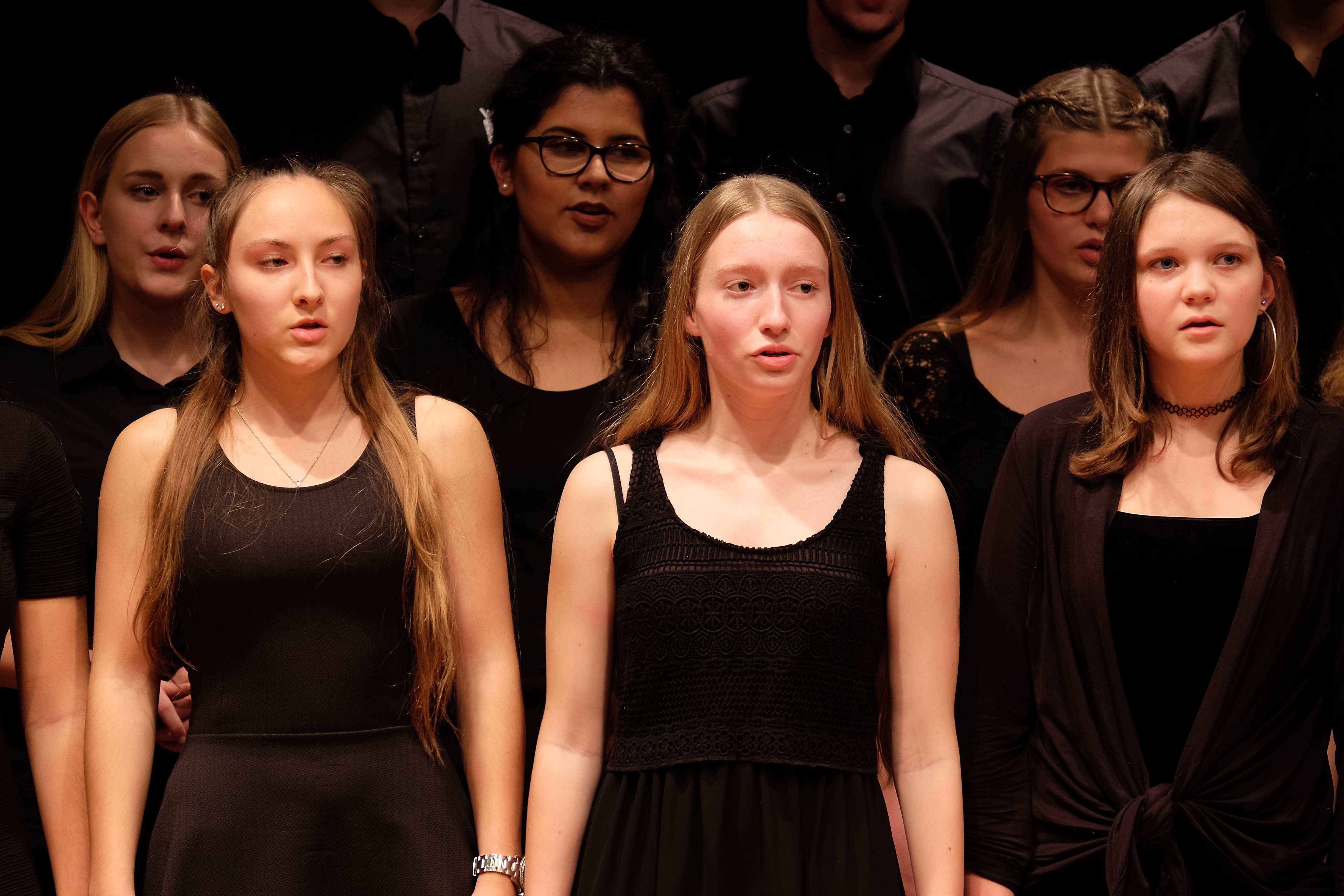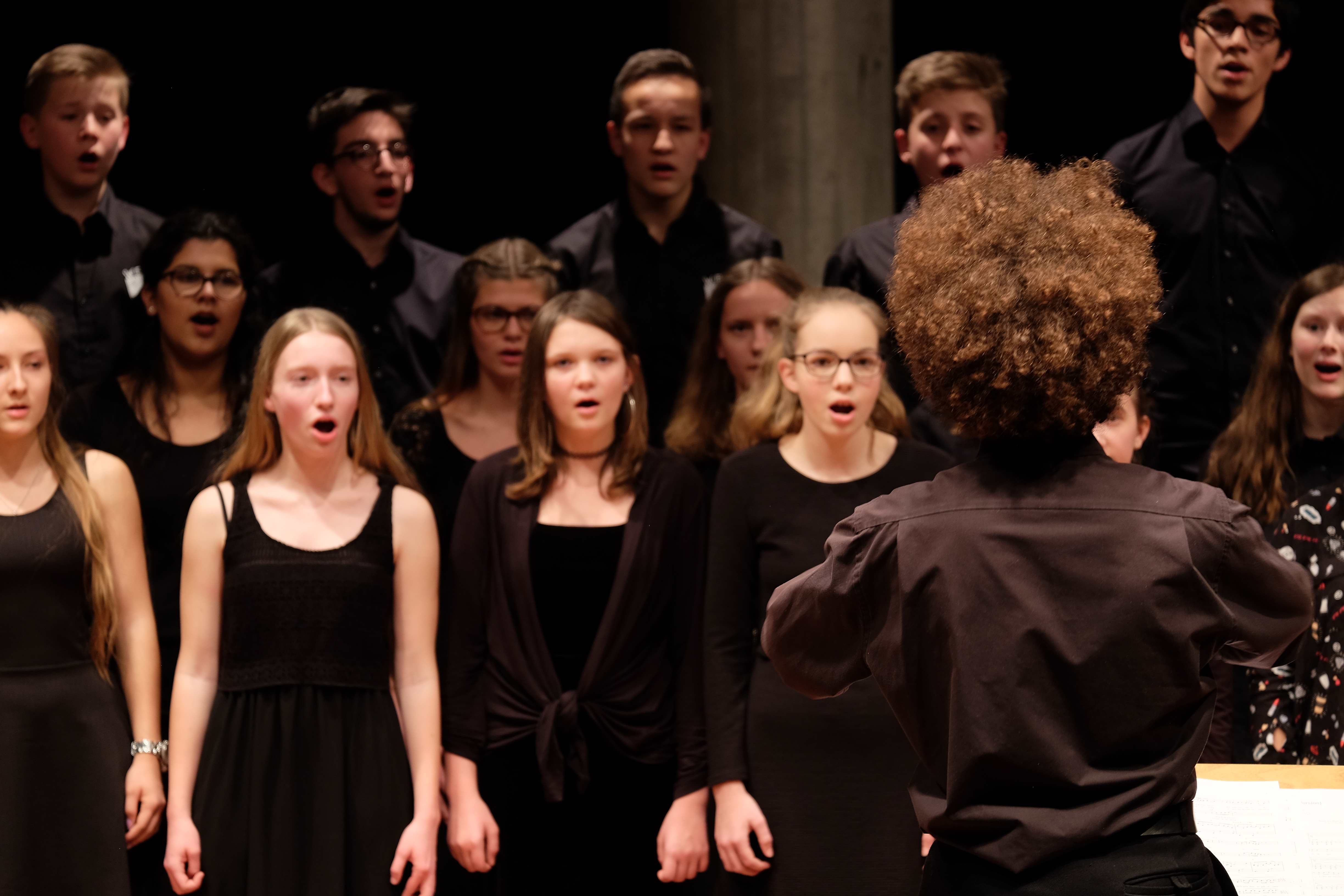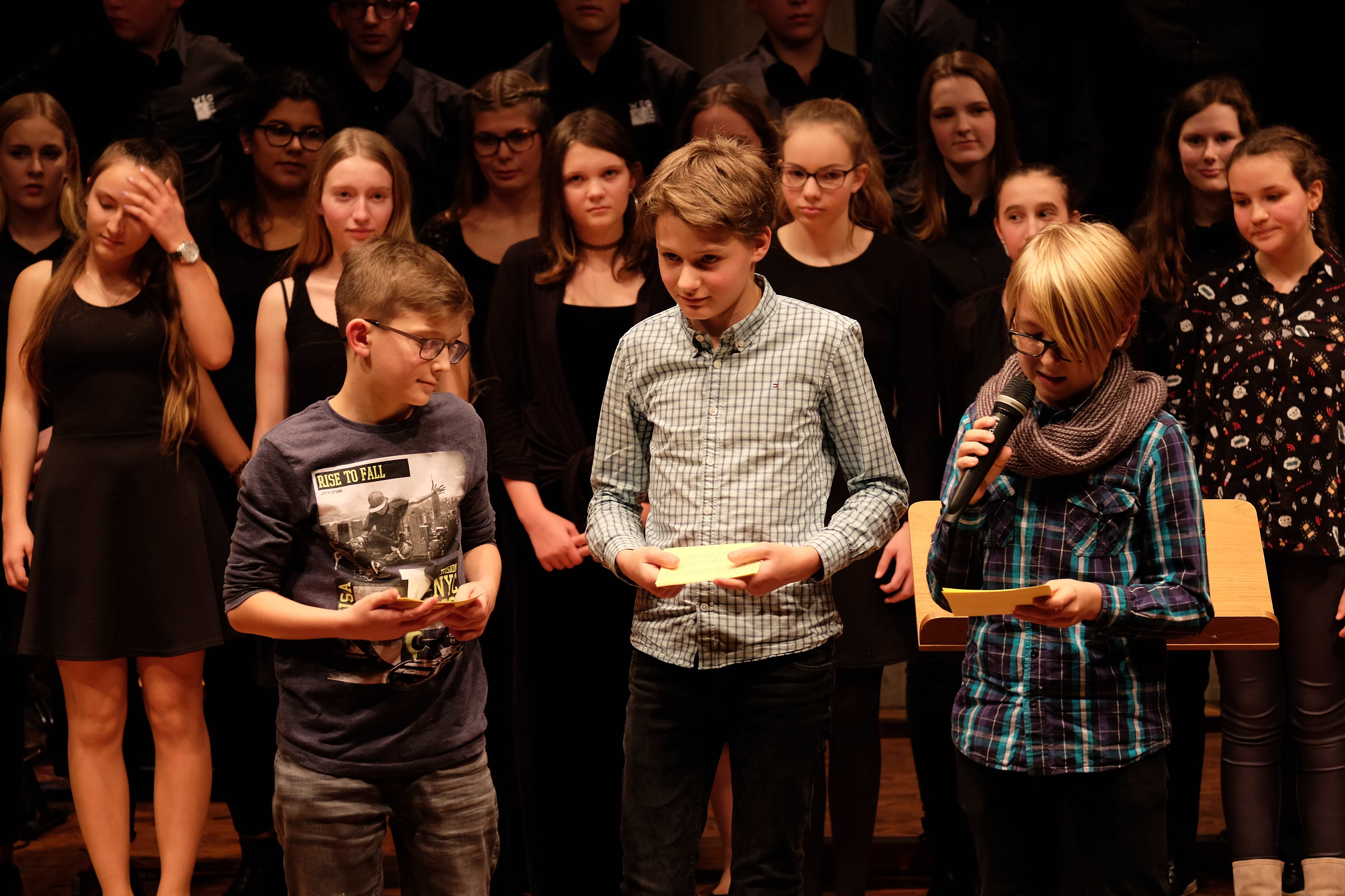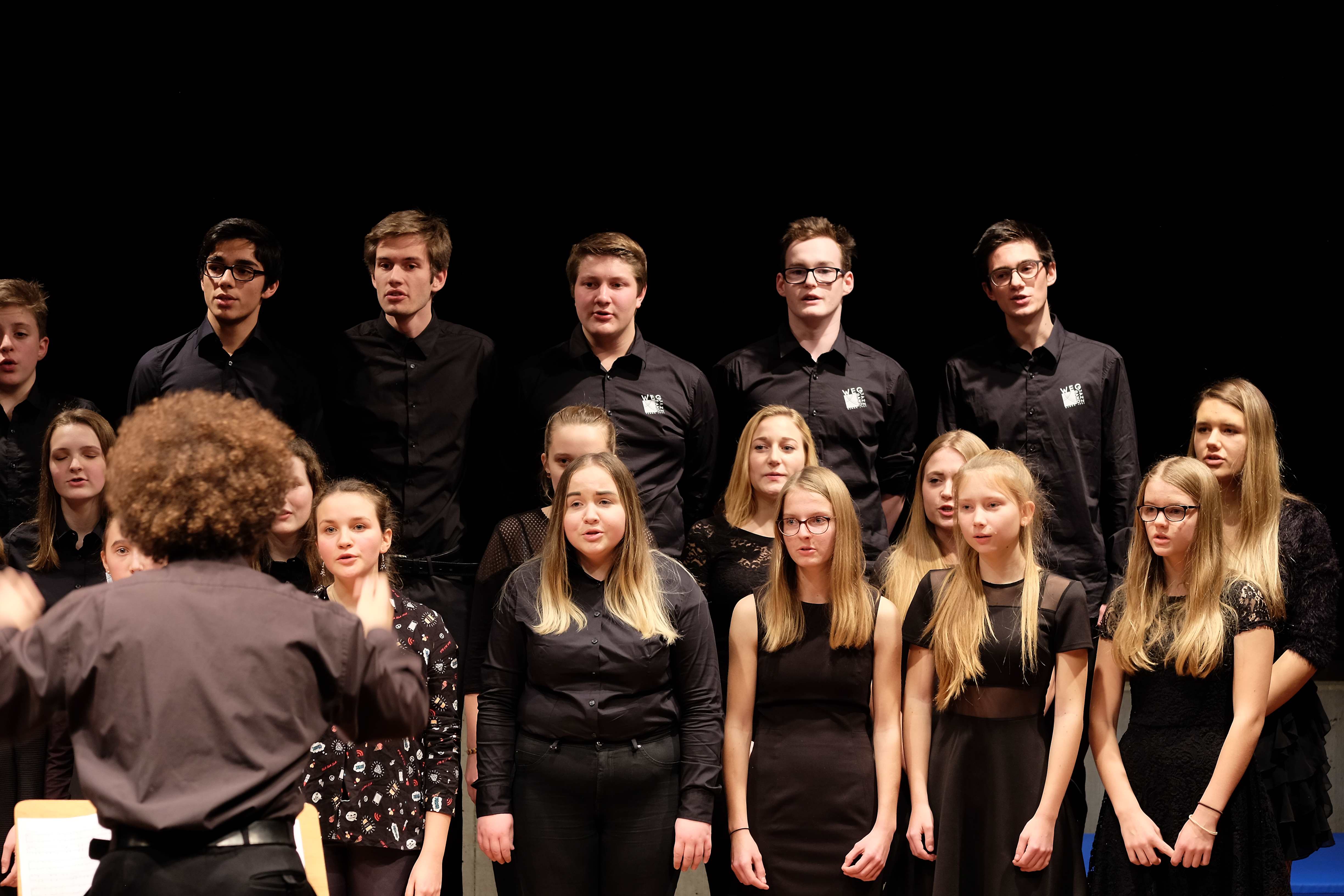 Danach ging es ebenso munter weiter mit diversen Bläserensembles, beeindruckenden Solo-Einlagen (Gesang und Flügel) sowie einer Boomwhackers-Vorführung. Den krönenden Abschluss bildete der Große Chor, der angeleitet von Julia Strasser die Titel „You´ll be in my heart“ und „Angels watching over me“ feierlich vortrug.