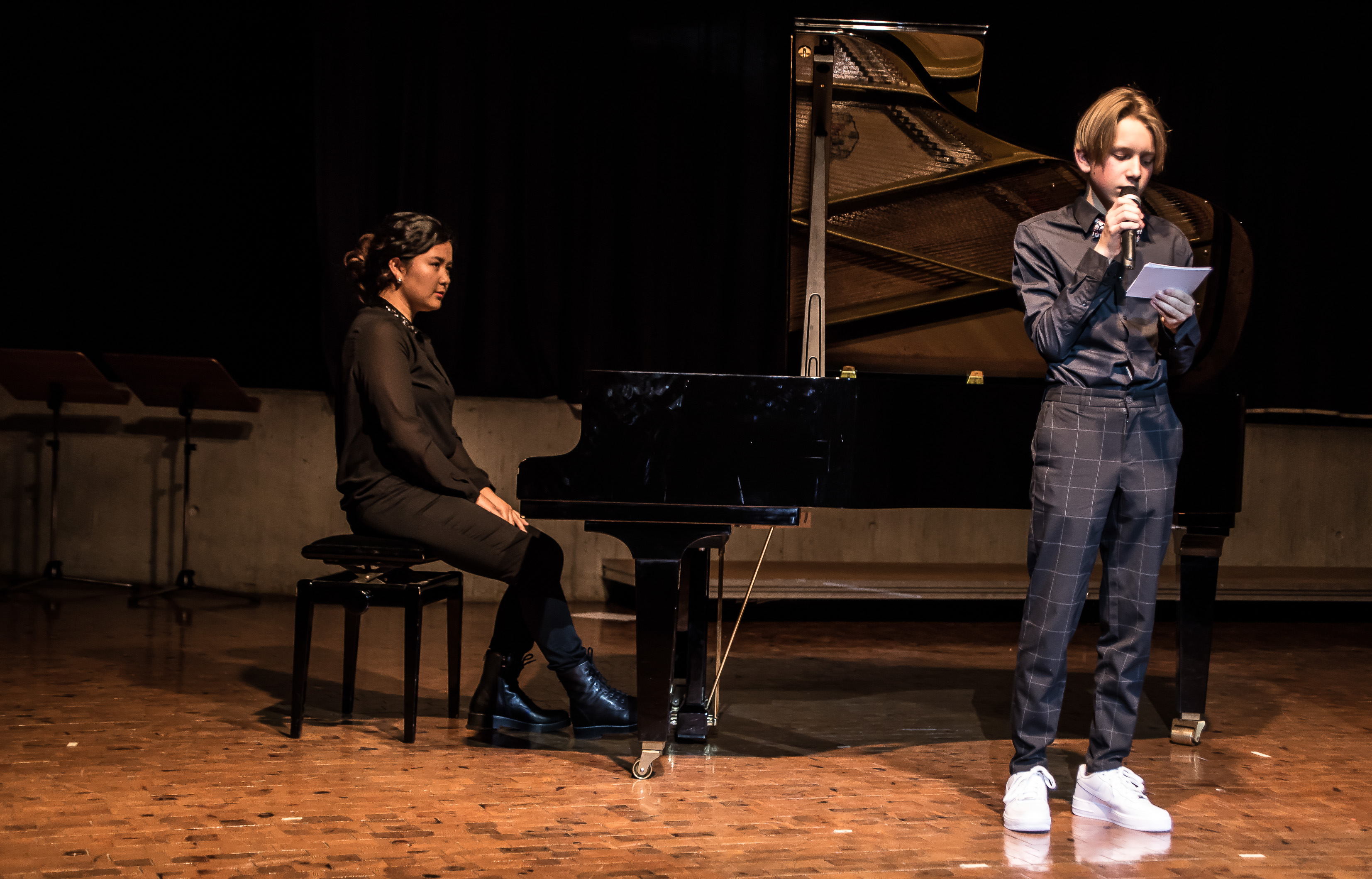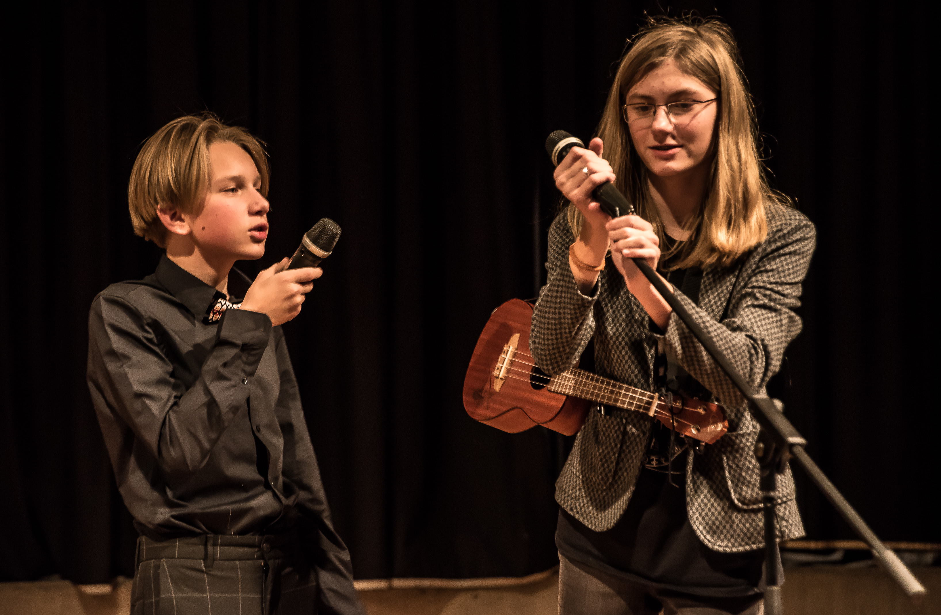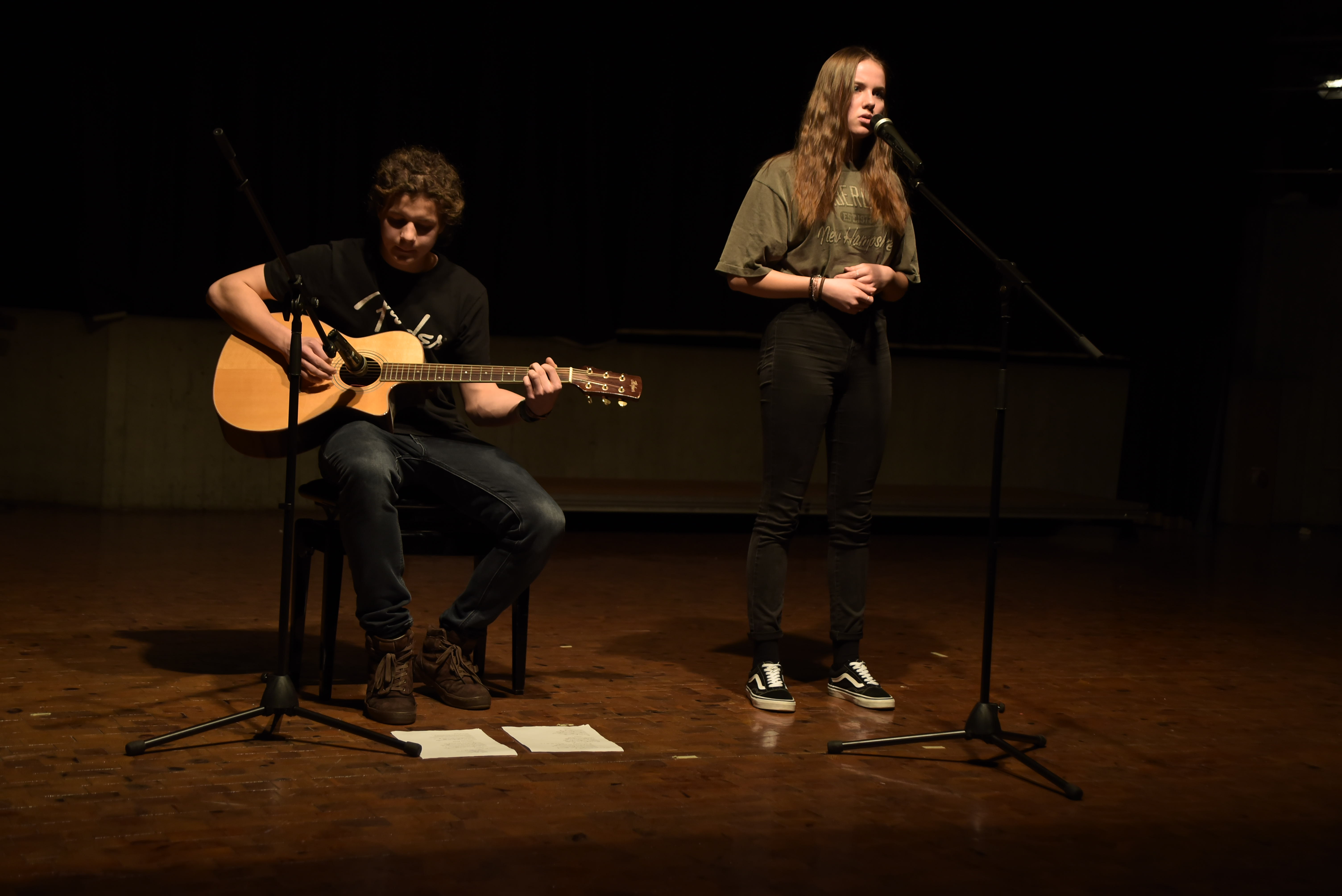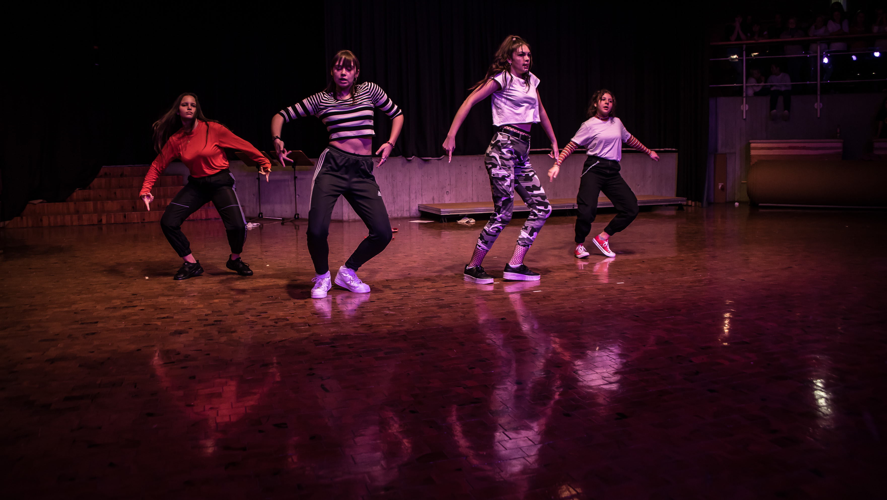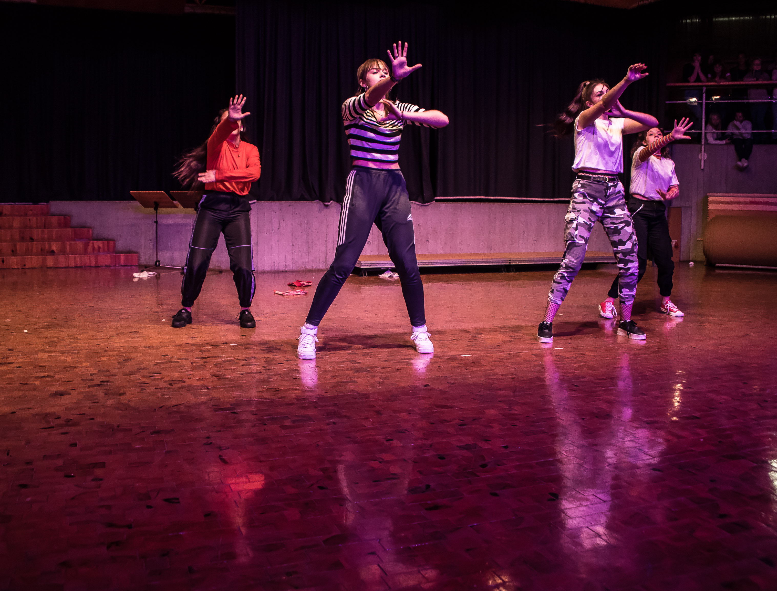 Nach der musikalischen Begrüßung durch die Unterstufenband von Joachim Kocsis und einem Willkommensgruß des Schulleiters übernahm umgehend das charmante Duo Darija Lazic und Fabian Flinner die Moderation und führte das Publikum gekonnt durch den Abend. "Das Spinnenlied" sorgte mit selbst gestalteten Plakaten für einiges Schmunzeln in der Gästereihe, während die Jonglagenummer von Mattis Bühler die Besucher zum Staunen brachte. Angeleitet von Fabian Hess, Peter Hank und Choreographin Dina Tanzmann legten Selina Appel, Nina Kokot, Mona Lakhal, Juliana Richter und Dominika Tajpsz einen gelungenen Auftritt zum Song "Faded" von Alan Walker auf die Fläche. Weihnachtliche Stimmung verbreitete der Unterstufenchor von Helga Weber mit seinen Titeln "Rock my soul" und dem rührenden Song "Wunder gescheh´n". Dina Tanzmann ließ es sich nicht nehmen, als Ehemalige mit dem Chor zu proben und ihn am Abend am Piano zu begleiten.