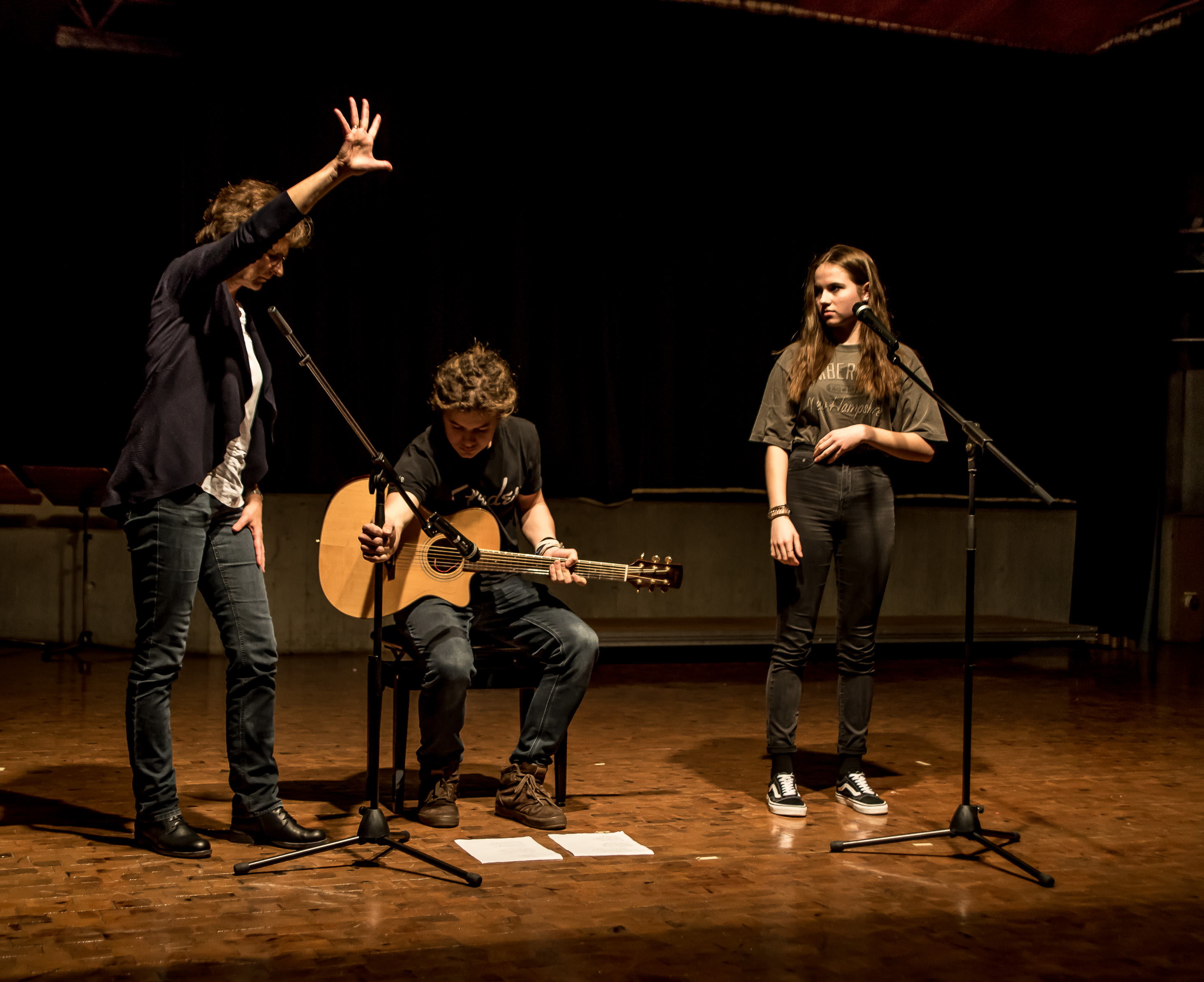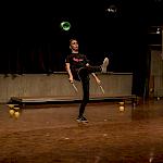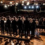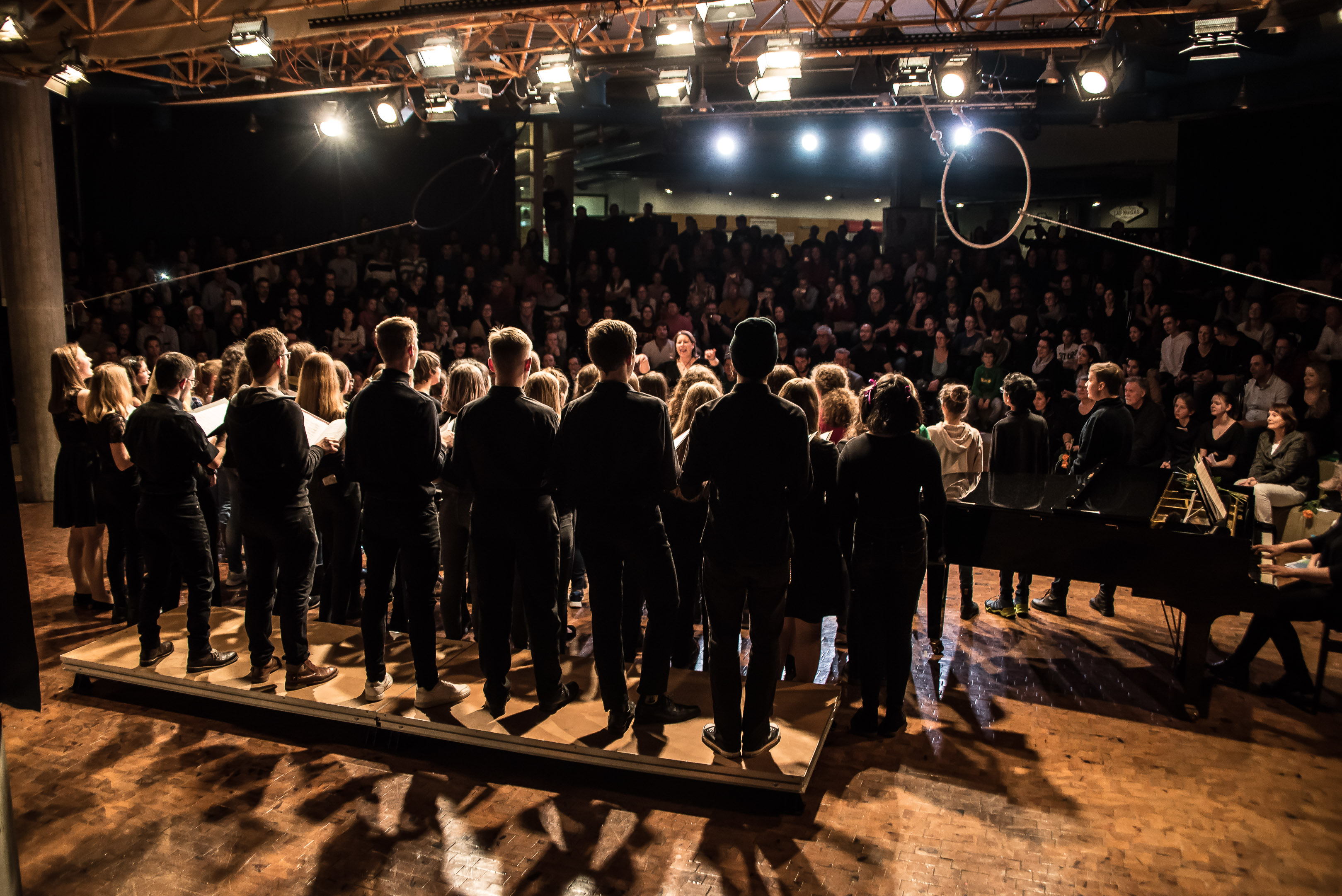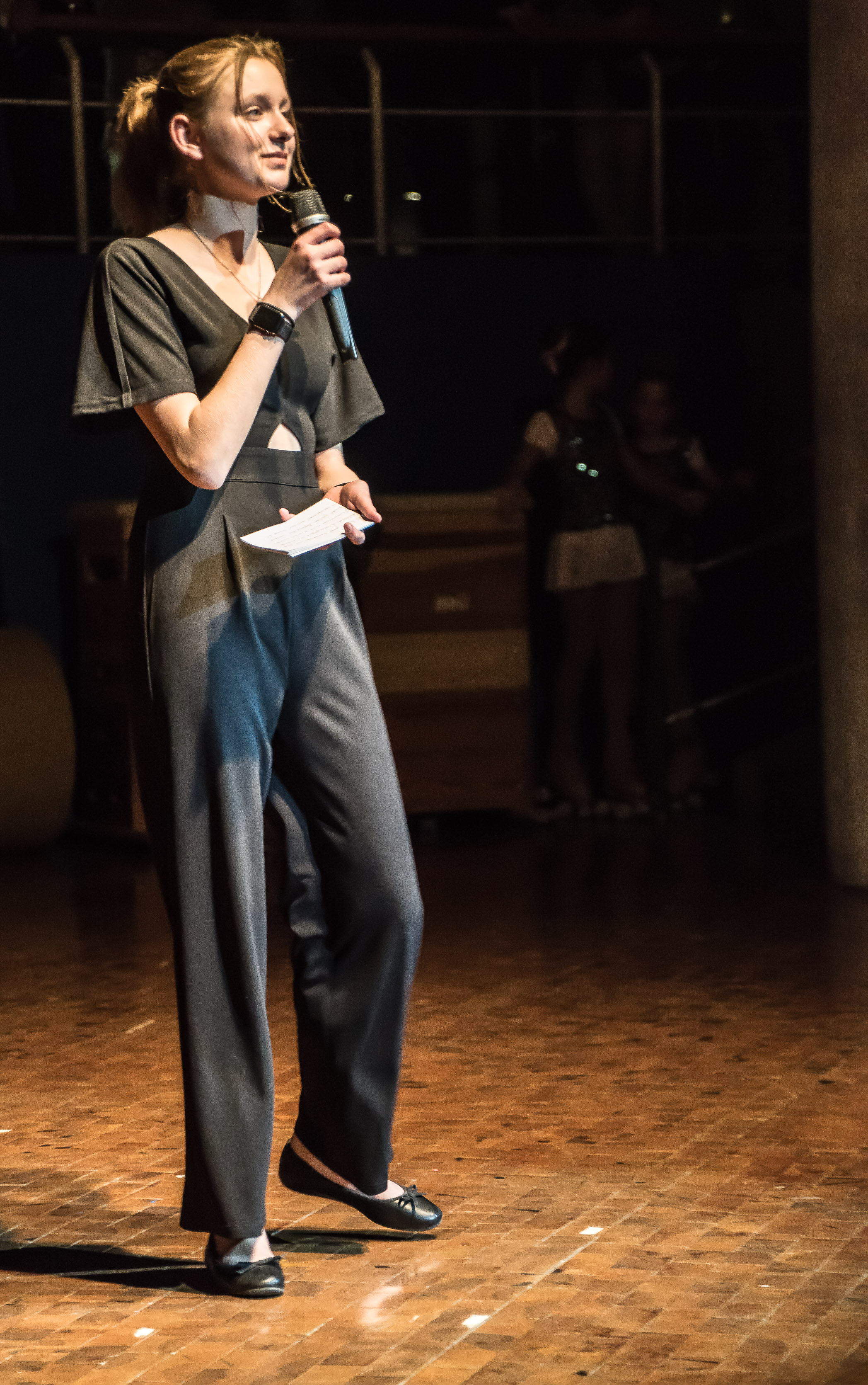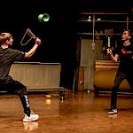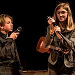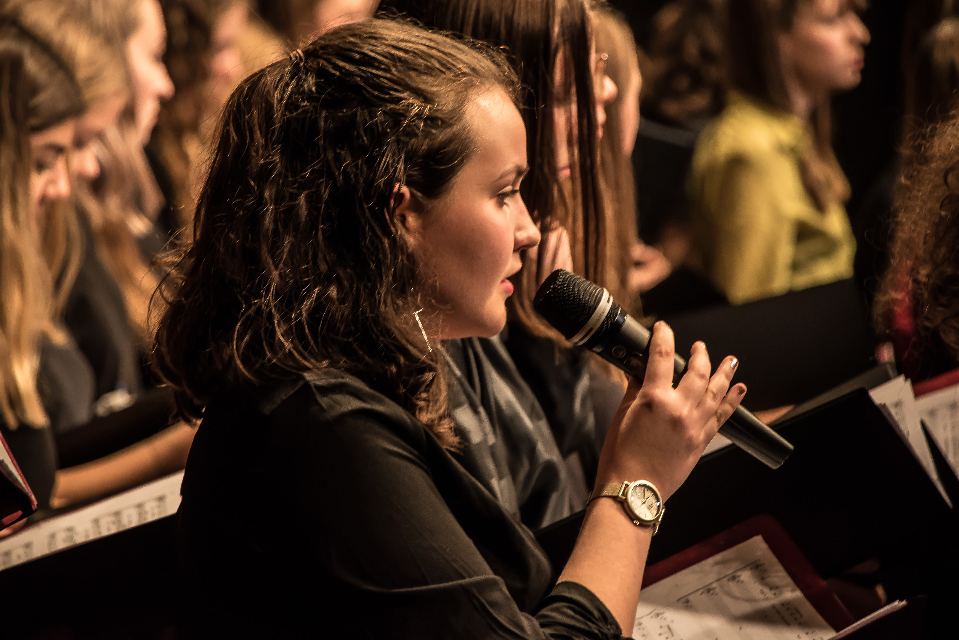 Nach der guten Bewirtung durch Vertreter der achten Klassen wurde der Abend schwungvoll fortgesetzt. Songwriterin Anna Hank, die nicht zum ersten Mal einen selbst geschriebenen Titel vortrug, schaffte es umgehend, die Zurückgekehrten mit "Musizieren" und ihrer authentischen Art einzunehmen. Sie verriet dem Publikum im Interview mit Moderator Fabian Flinner dann auch, wie manchmal Songs entstehen. Es folgte der zweite Auftritt der Sportakrobatinnen Kira Lorenz, Inka Lämmlein, Emma Spack und Nelly Stoltz an Ringen, die man eher vom Hoola-Hoop kennt, wo teils spektakuläre Figuren und Balancefähigkeiten zu sehen waren. Im Anschluss daran zeigte Julian Törke mit einem Poetry-Slam, dass er nicht nur schauspielerisches, sondern auch poetisches Talent besitzt. Die in seinem Text angesprochenen "Minuten in Echtzeit" standen dabei aber im klaren Gegensatz zu dem kurzweiligen Programm, das mit dem virtuosen Vortrag am Flügel von Aylina Ashkenov und den Diabolo-Künstlern Florian Jäger und den Zwillingen Max und Paul Weiß, die ihr Können ebenfalls beim Heidenheimer Sporttheater regelmäßig an neue Grenzen führen und eine tolle Choreographie einstudiert hatten, fortgesetzt wurde. Benjamin Hoster (Gitarre) und Emily Mundt sorgten mit dem gefühlvoll vorgetragenen Titel "Let her go" von Passenger für einen Gänsehautmoment. Dass Sport, Musik und Tanz ganz eng beieinander liegen, konnte man am präzis vorgetragenen Auftritt der Hip-Hop-Tänzerinnen Milena Krieger, Selin Musinoglu, Linda Opitz sowie Alexandra Slavinschi sehen. Der letzte Solo-Auftritt war Tobias Schied mit seiner Tuba vorbehalten, der einmal mehr mit einem Augenzwinkern unterschiedliche Facetten seines Instrumentes demonstrierte. Vor der Verabschiedung und dem Dank an alle Mitwirkenden wusste am Ende des viel zu schnell vorübergegangenen Abends der Große Chor unter Leitung von Tina Greulich und Julia Strasser am Flügel mit dem Titel "This is me" stimmlich zu überzeugen.