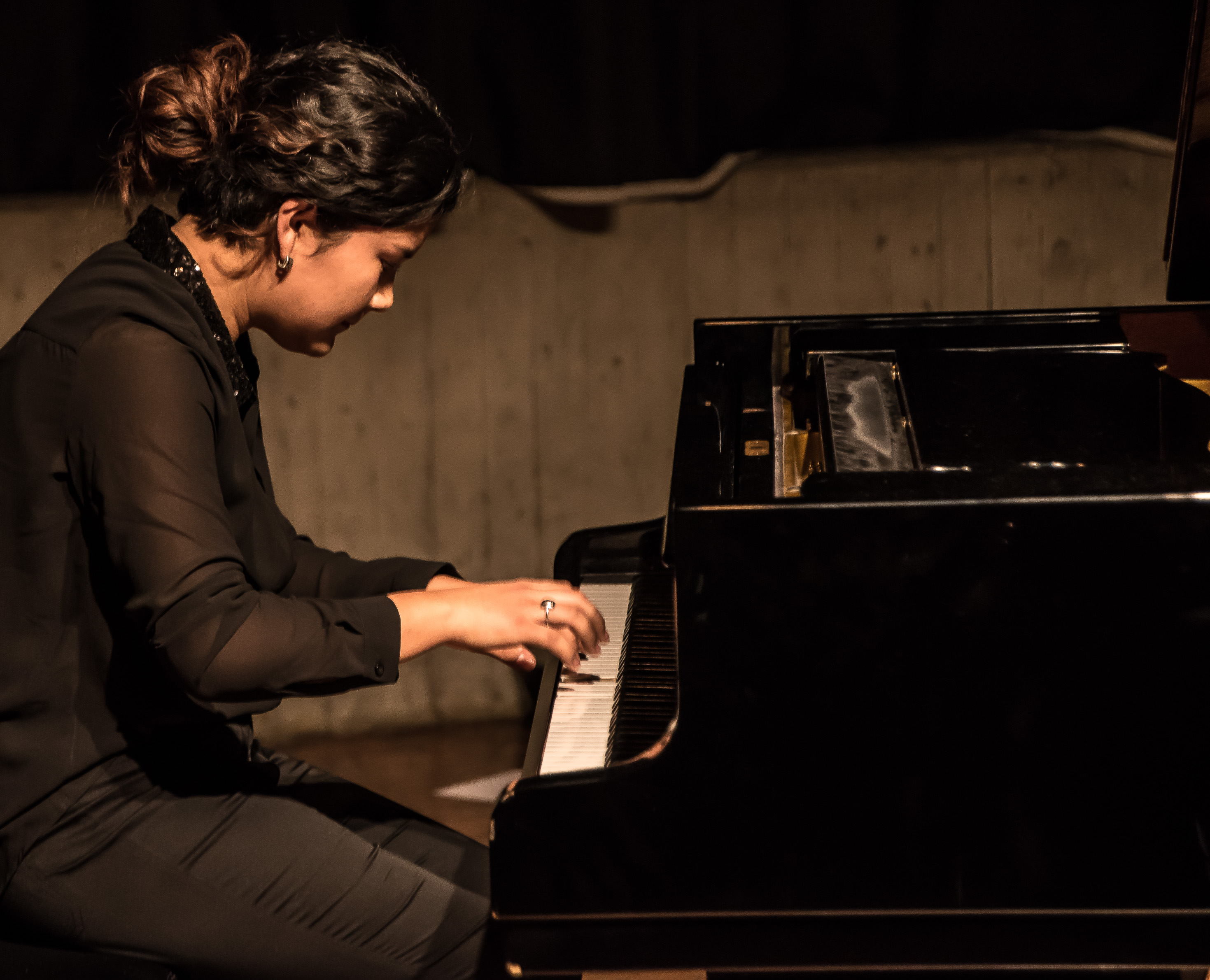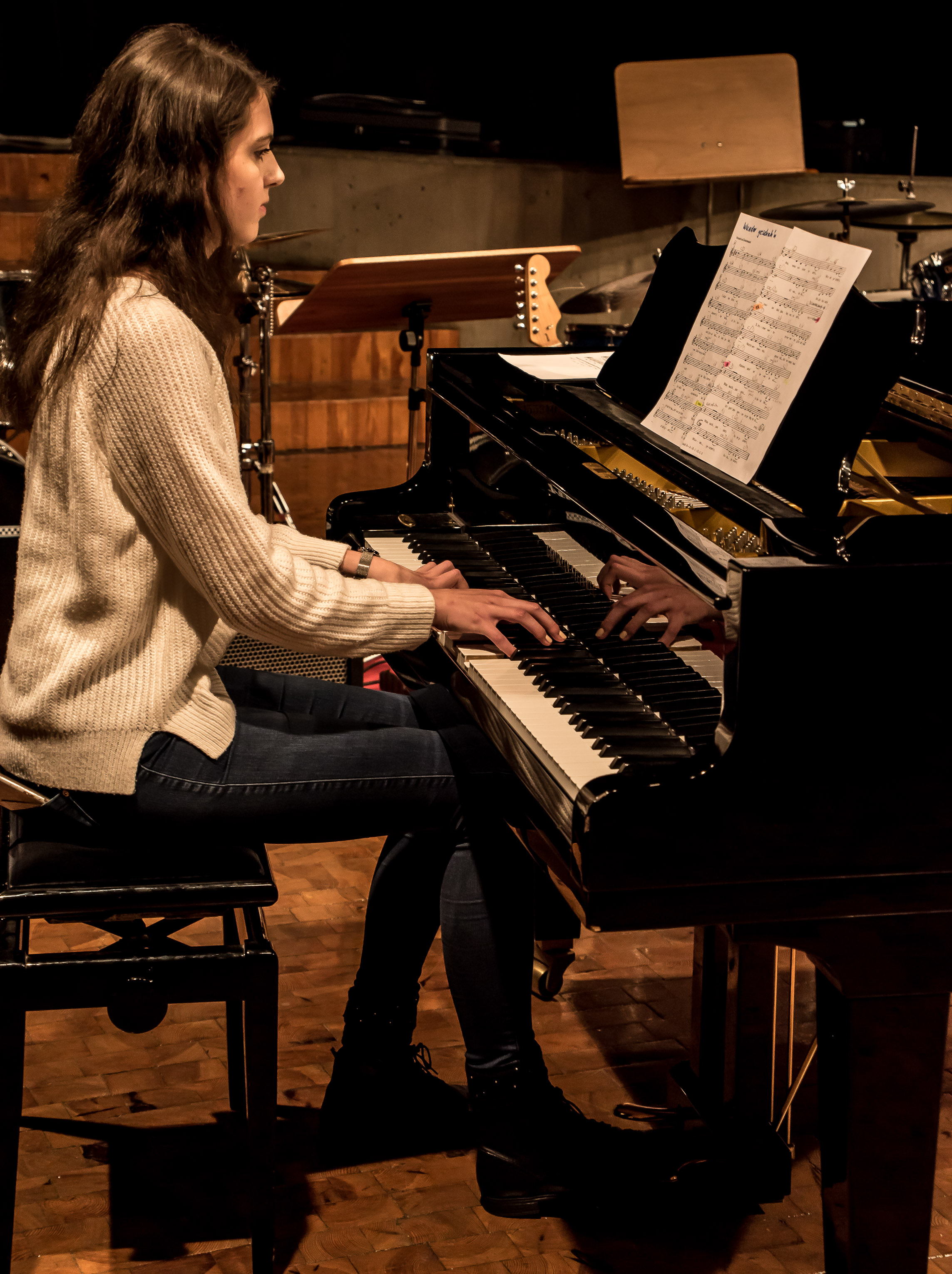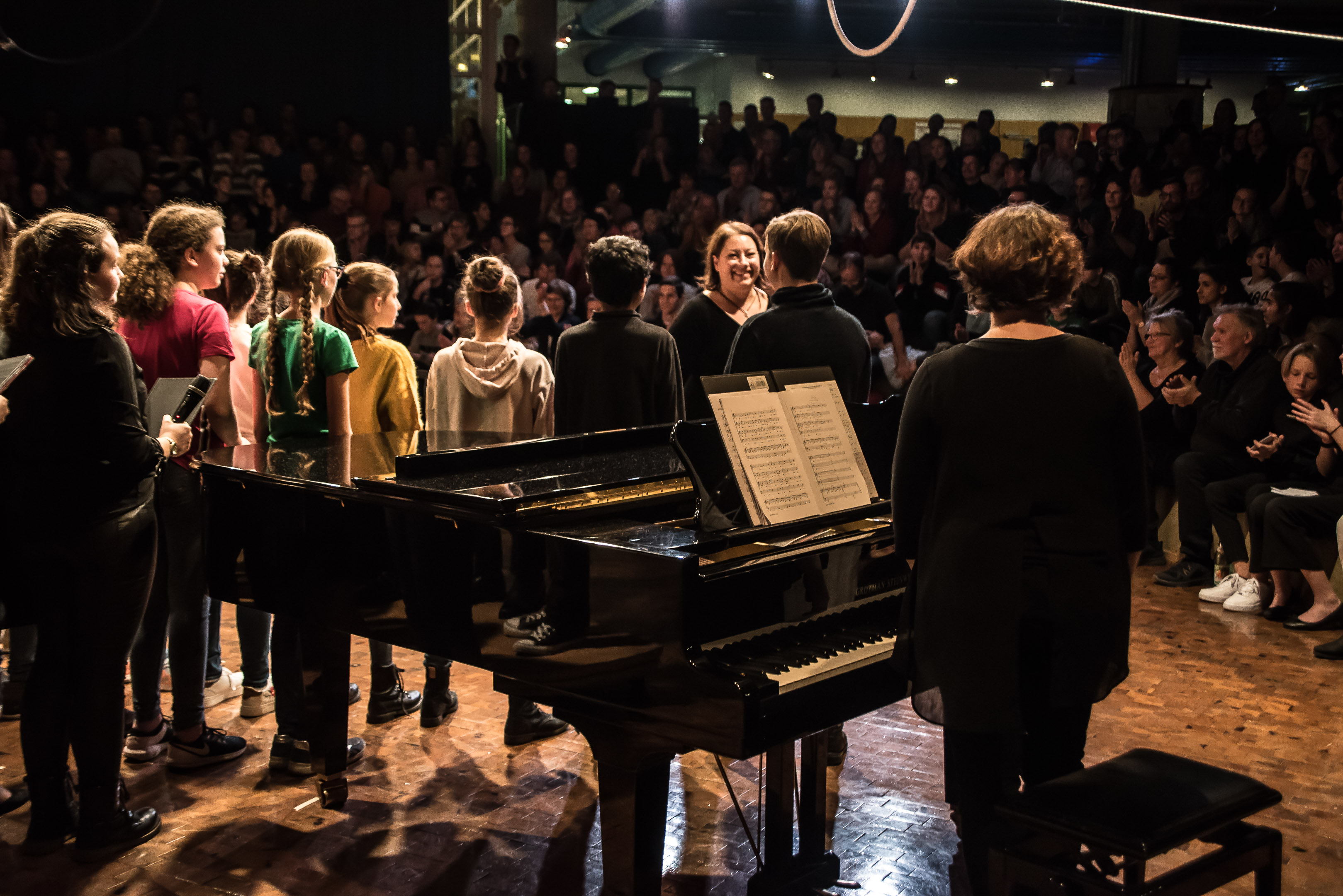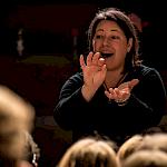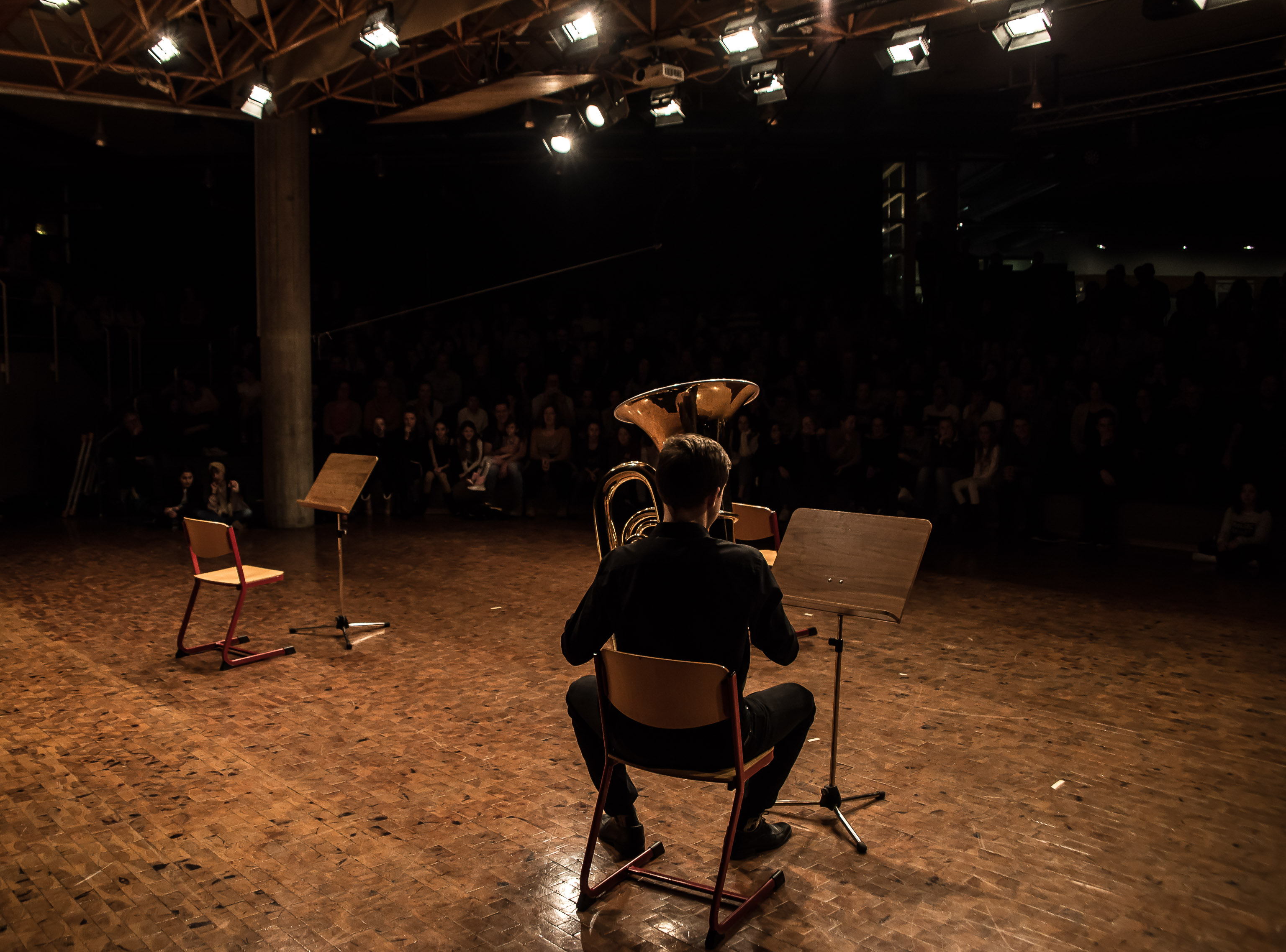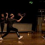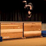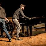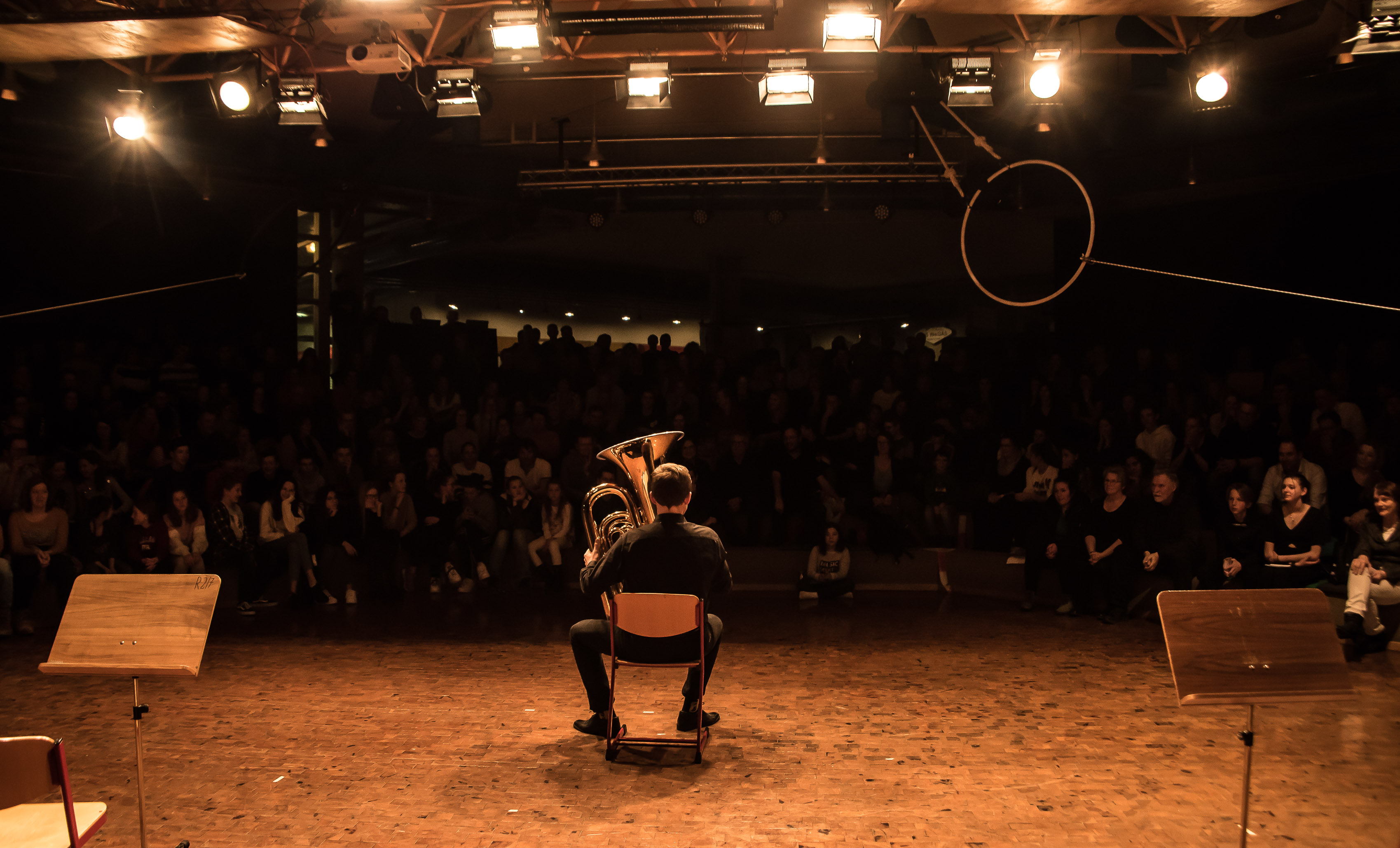 Nach der guten Bewirtung durch Vertreter der achten Klassen wurde der Abend schwungvoll fortgesetzt. Songwriterin Anna Hank, die nicht zum ersten Mal einen selbst geschriebenen Titel vortrug, schaffte es umgehend, die Zurückgekehrten mit "Musizieren" und ihrer authentischen Art einzunehmen. Sie verriet dem Publikum im Interview mit Moderator Fabian Flinner dann auch, wie manchmal Songs entstehen. Es folgte der zweite Auftritt der Sportakrobatinnen Kira Lorenz, Inka Lämmlein, Emma Spack und Nelly Stoltz an Ringen, die man eher vom Hoola-Hoop kennt, wo teils spektakuläre Figuren und Balancefähigkeiten zu sehen waren. Im Anschluss daran zeigte Julian Törke mit einem Poetry-Slam, dass er nicht nur schauspielerisches, sondern auch poetisches Talent besitzt. Die in seinem Text angesprochenen "Minuten in Echtzeit" standen dabei aber im klaren Gegensatz zu dem kurzweiligen Programm, das mit dem virtuosen Vortrag am Flügel von Aylina Ashkenov und den Diabolo-Künstlern Florian Jäger und den Zwillingen Max und Paul Weiß, die ihr Können ebenfalls beim Heidenheimer Sporttheater regelmäßig an neue Grenzen führen und eine tolle Choreographie einstudiert hatten, fortgesetzt wurde. Benjamin Hoster (Gitarre) und Emily Mundt sorgten mit dem gefühlvoll vorgetragenen Titel "Let her go" von Passenger für einen Gänsehautmoment. Dass Sport, Musik und Tanz ganz eng beieinander liegen, konnte man am präzis vorgetragenen Auftritt der Hip-Hop-Tänzerinnen Milena Krieger, Selin Musinoglu, Linda Opitz sowie Alexandra Slavinschi sehen. Der letzte Solo-Auftritt war Tobias Schied mit seiner Tuba vorbehalten, der einmal mehr mit einem Augenzwinkern unterschiedliche Facetten seines Instrumentes demonstrierte. Vor der Verabschiedung und dem Dank an alle Mitwirkenden wusste am Ende des viel zu schnell vorübergegangenen Abends der Große Chor unter Leitung von Tina Greulich und Julia Strasser am Flügel mit dem Titel "This is me" stimmlich zu überzeugen.