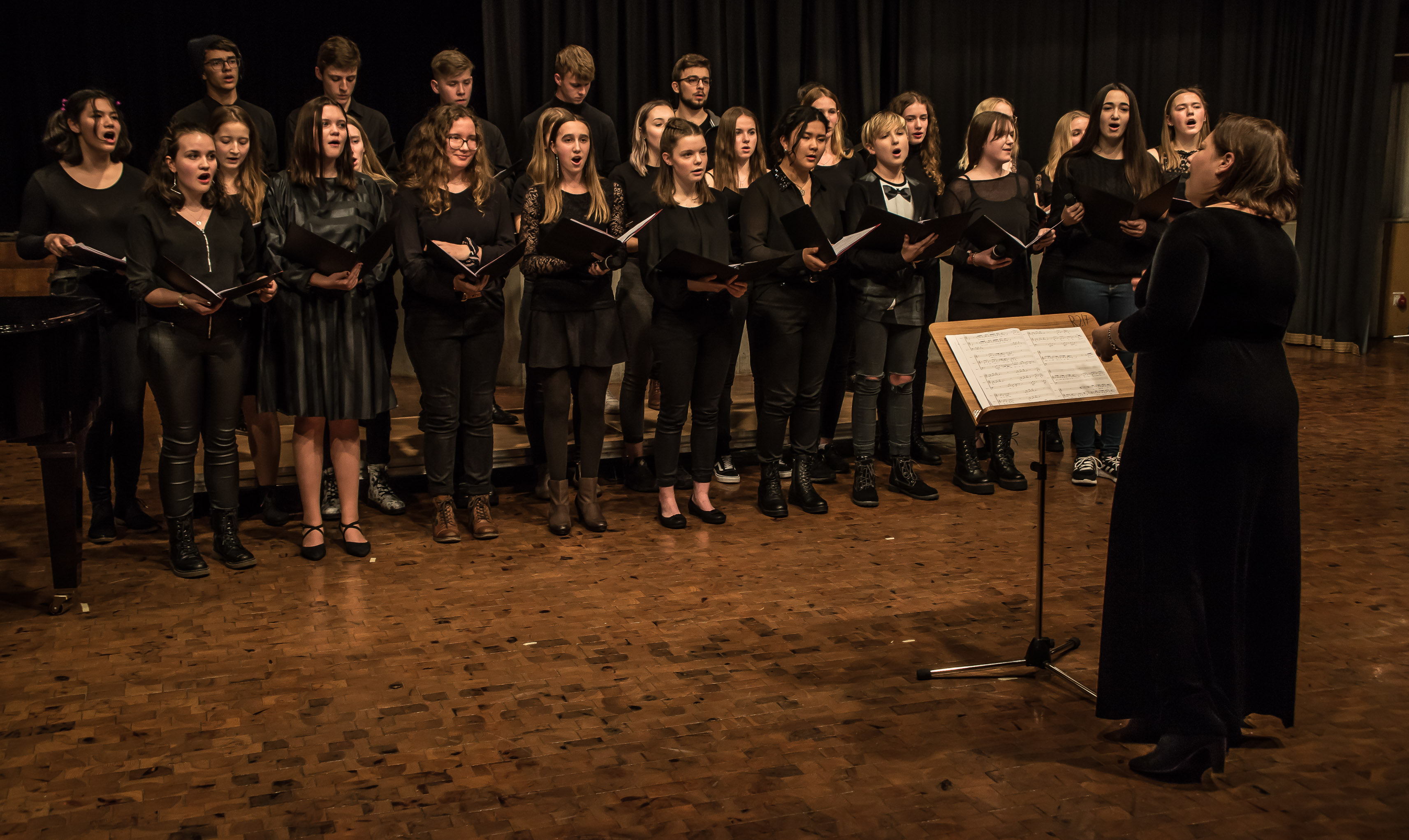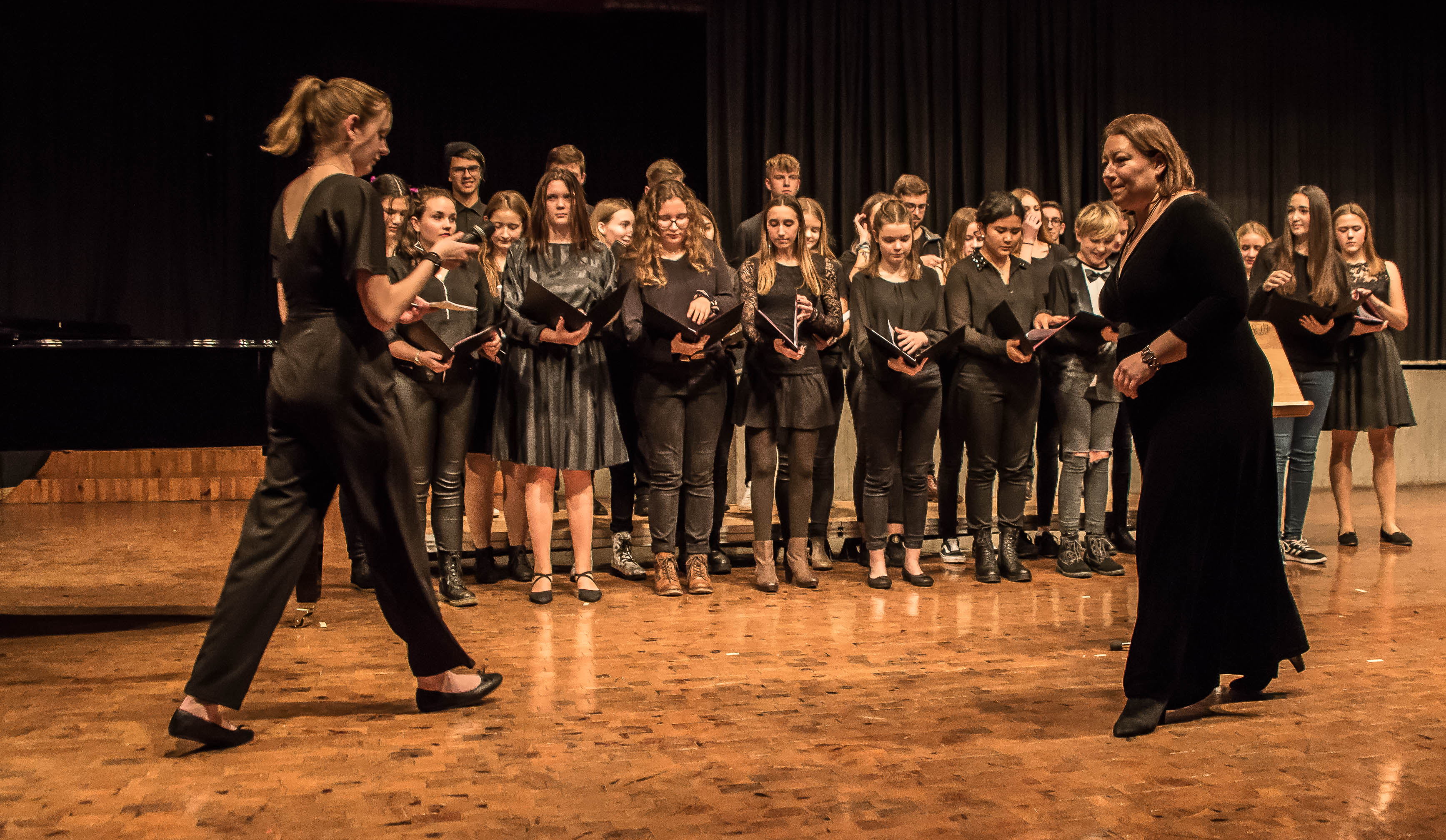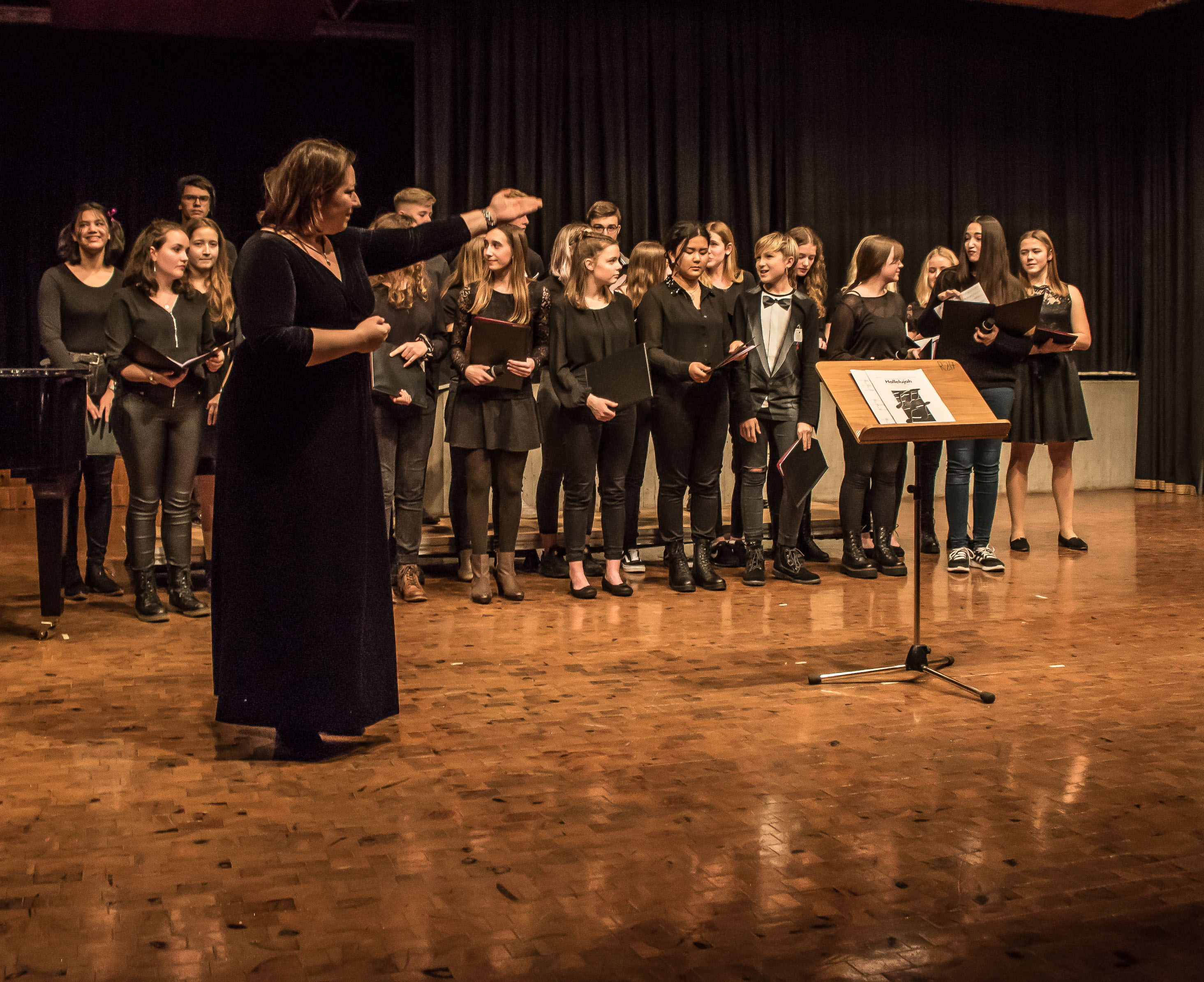 Beim großen Finale war dann die Bühne gefüllt mit dem Unterstufenchor und dem Großen Chor, die alle Zuhörer mit dem stimmungsvollen "Hallelujah" von Leonard Cohen in die letzte Vorweihnachtswoche entließen.