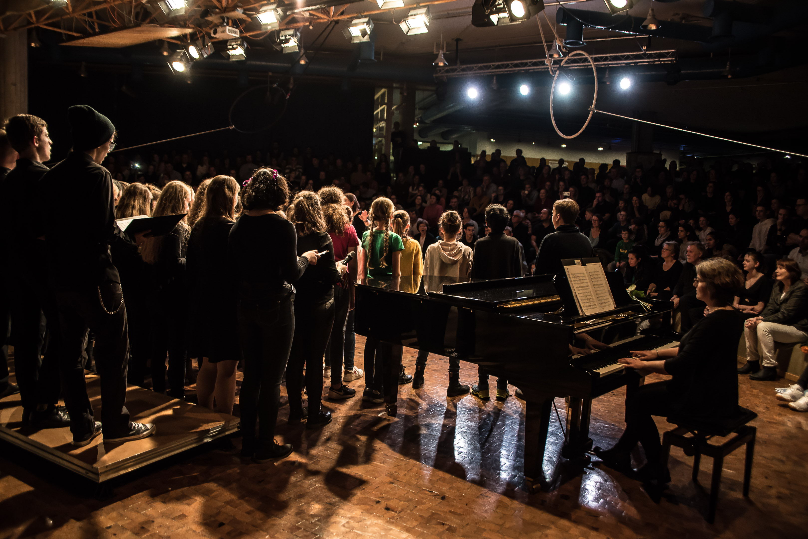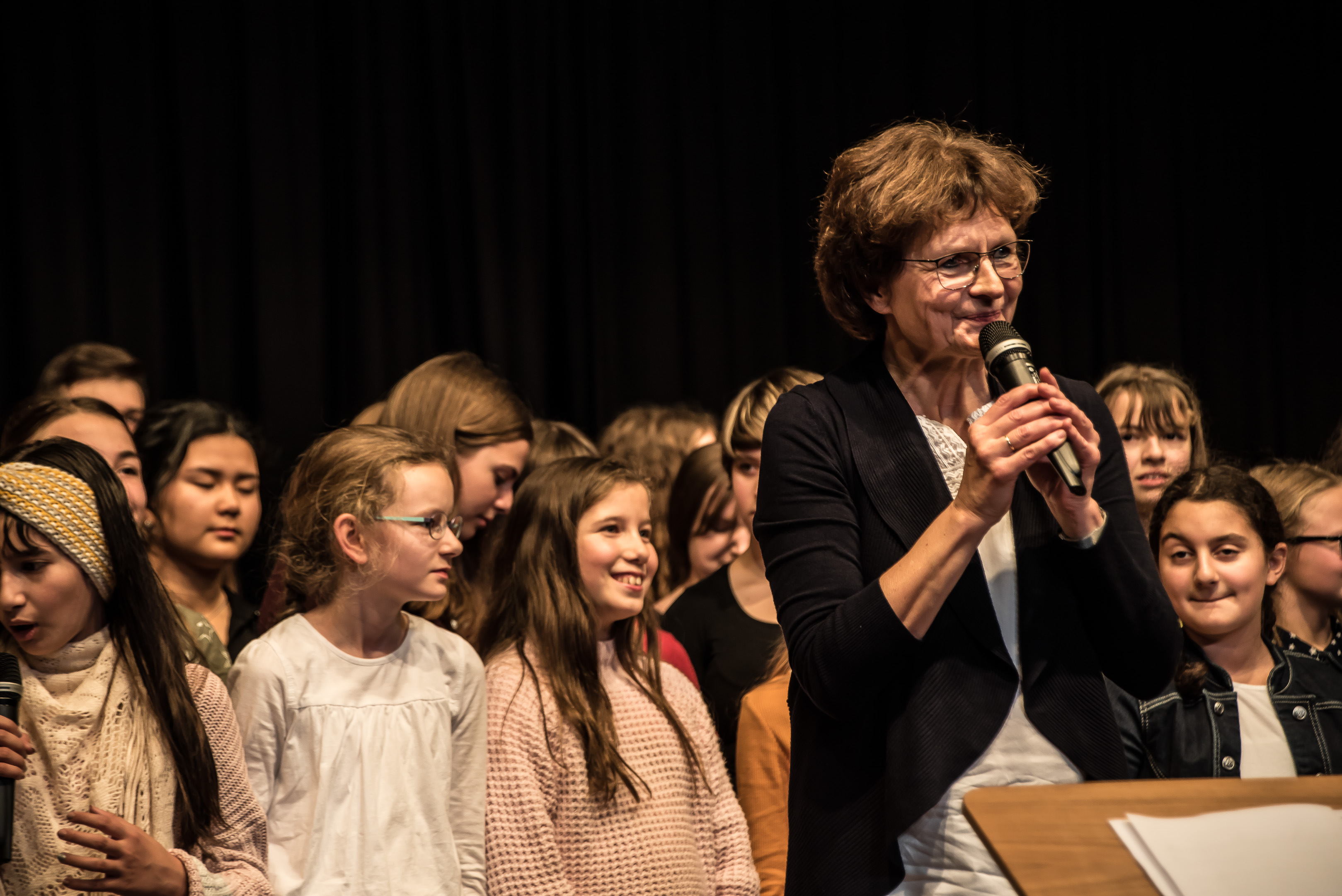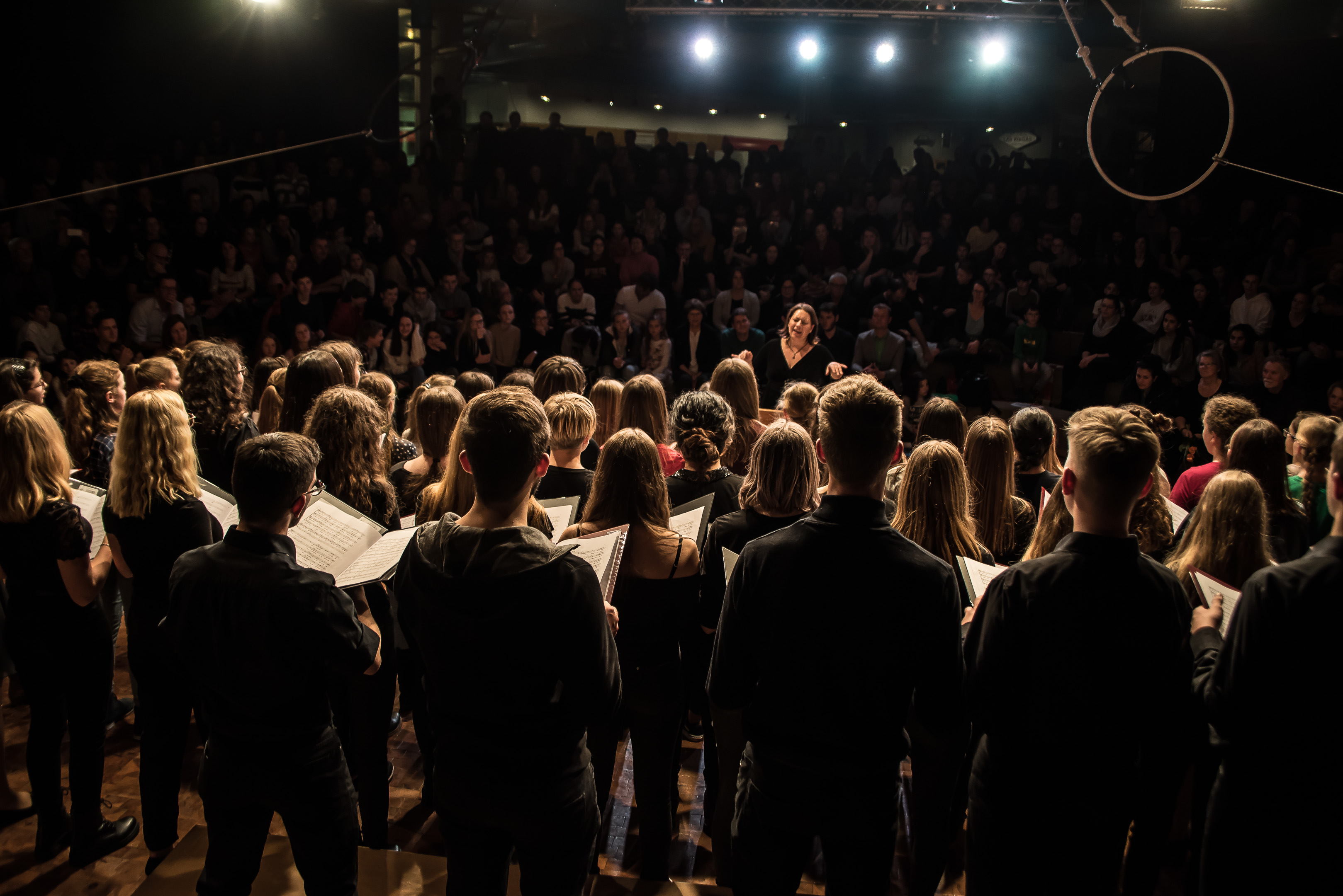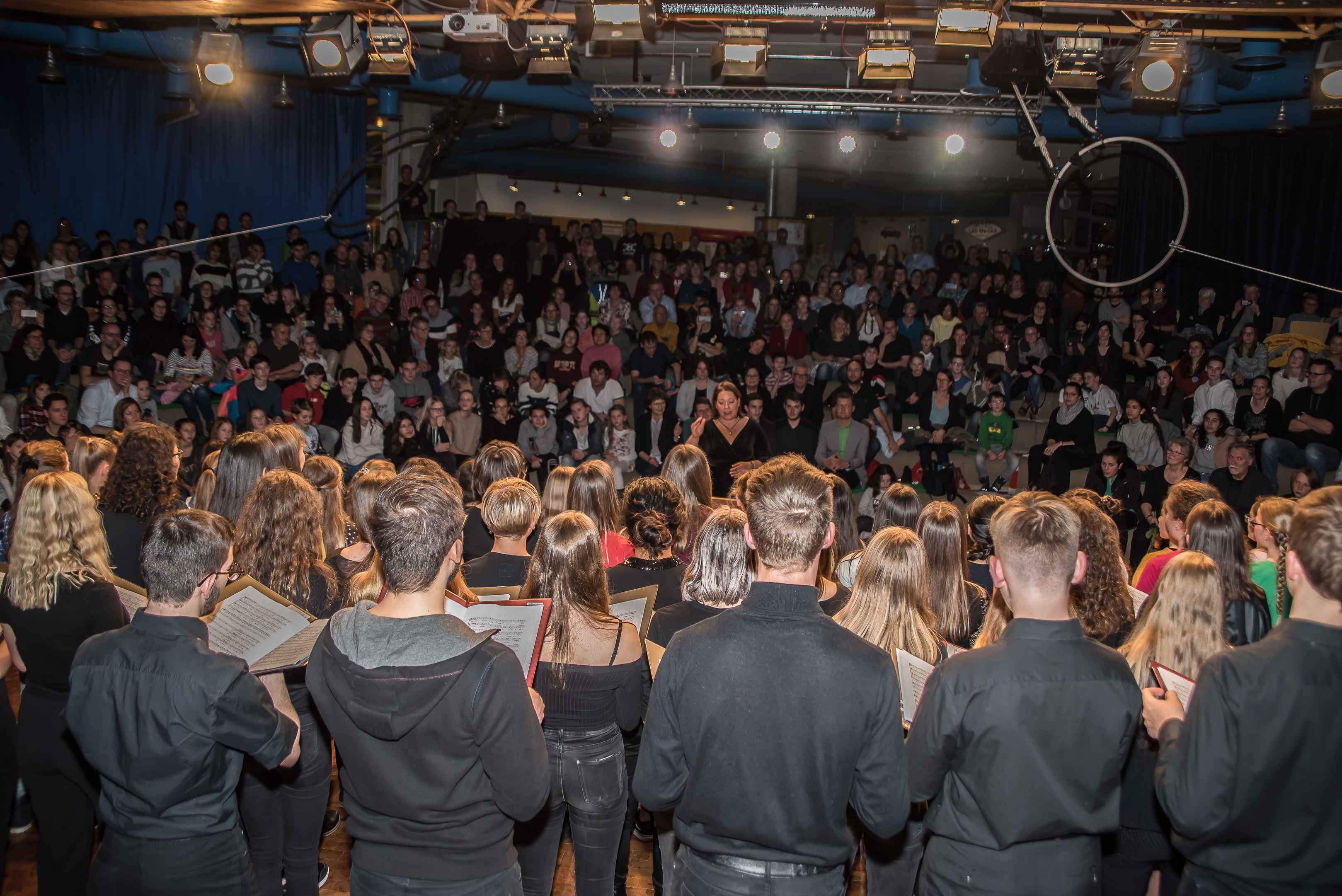 Beim großen Finale war dann die Bühne gefüllt mit dem Unterstufenchor und dem Großen Chor, die alle Zuhörer mit dem stimmungsvollen "Hallelujah" von Leonard Cohen in die letzte Vorweihnachtswoche entließen.