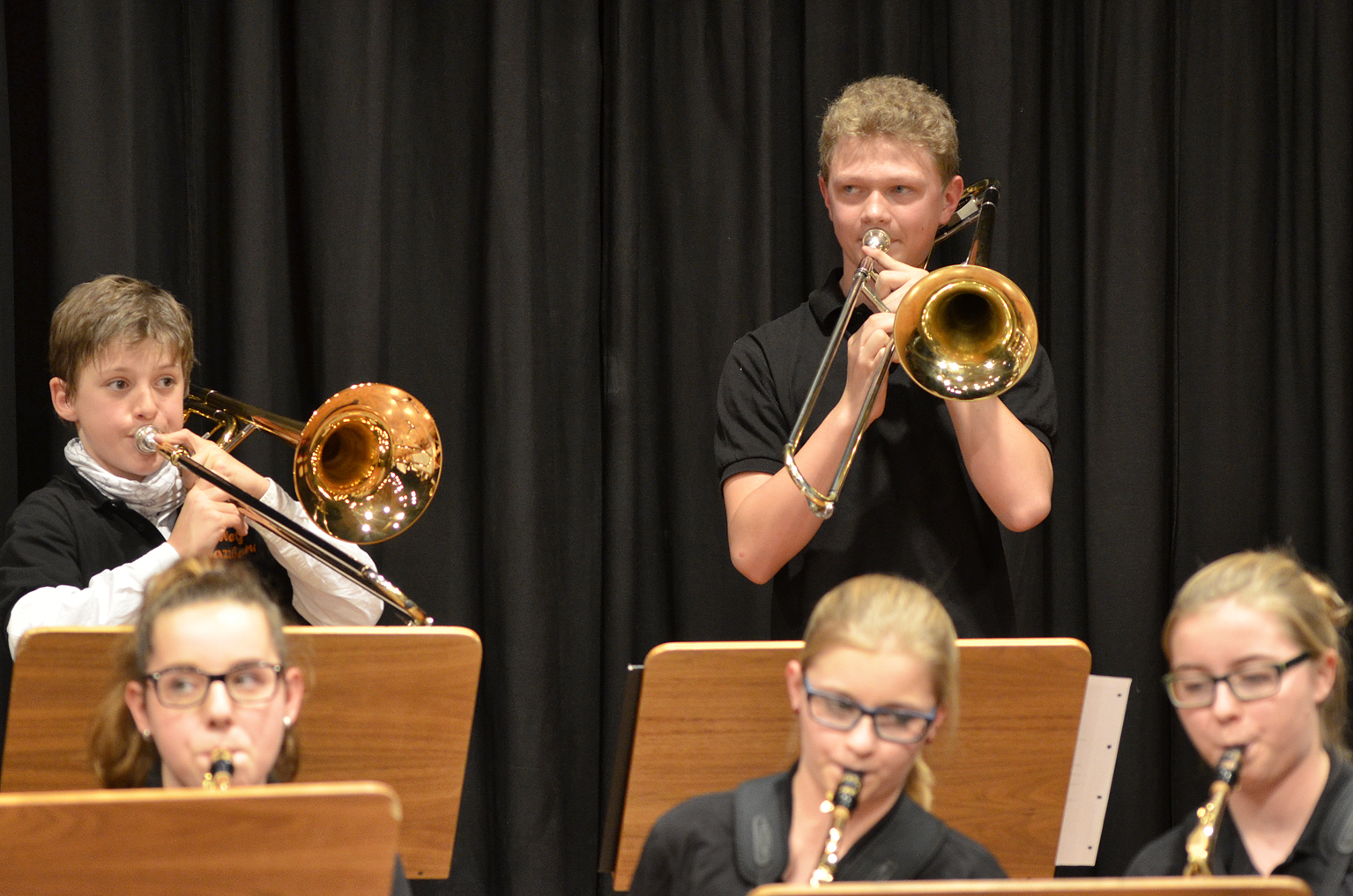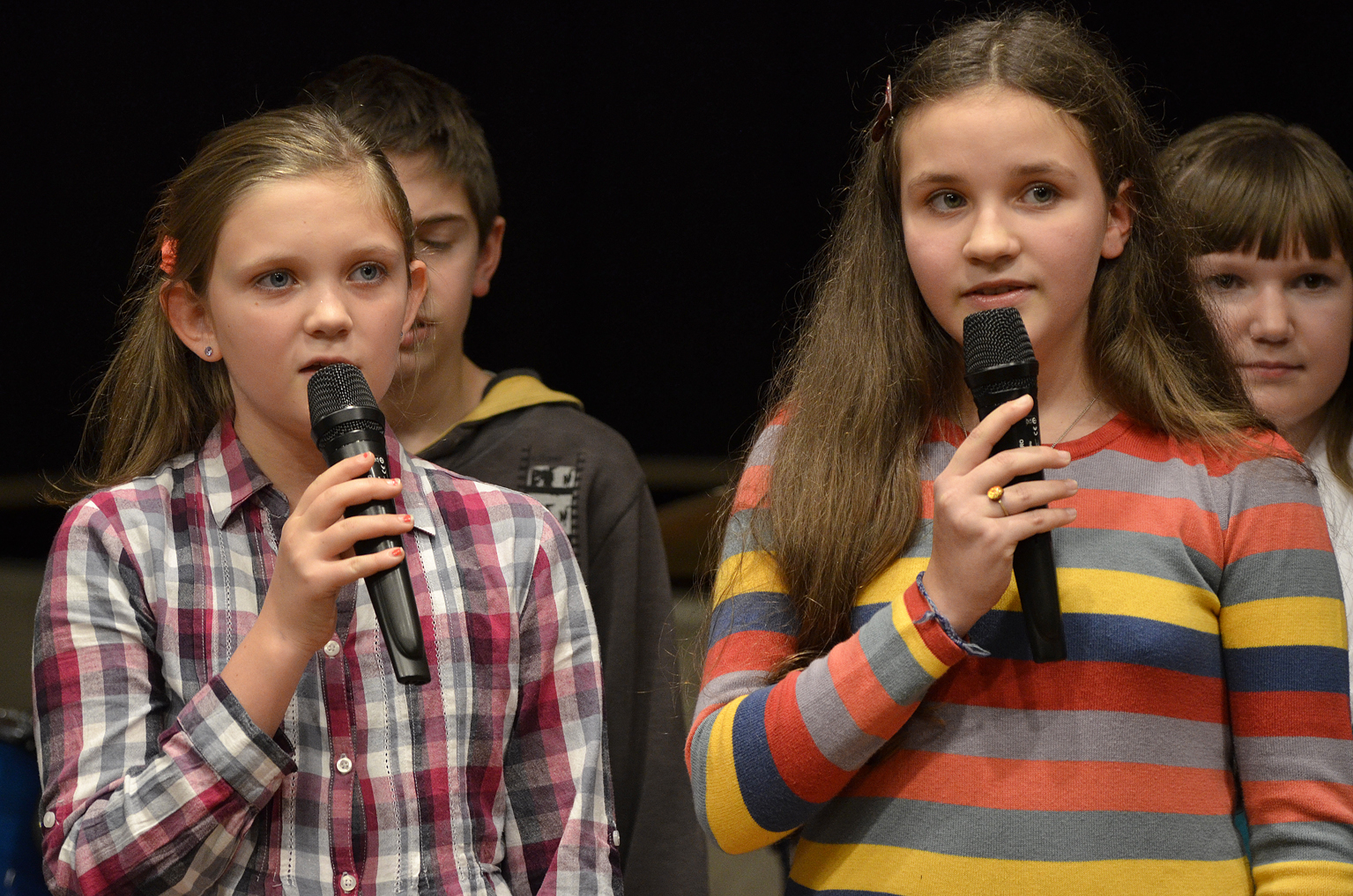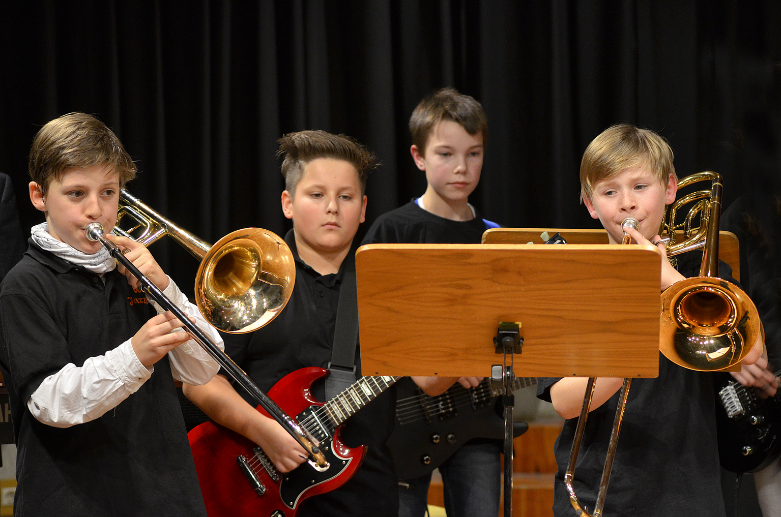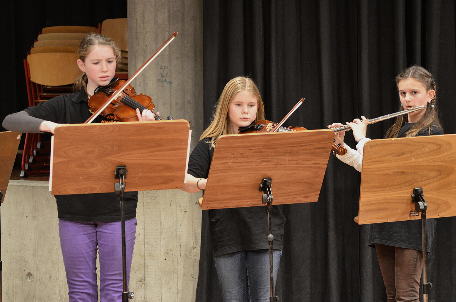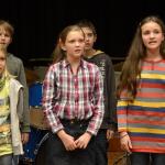 Zum traditionellen „Abend der kleinen Stücke“ hatten dieses Jahr die Musikpädagogen Helga Weber, Tina Greulich, Julia Strasser und Joachim Kocsis, unterstützt von Riccarda Rickert, Eberhard Rottler und Theaterpädagoge Marco Graša eingeladen und mit rund 100 Schülerinnen und Schülern ein vielfältiges und besonders kurzweiliges Programm vorbereitet. Und so wunderte es nicht allzu sehr, dass es keine Sitzplätze mehr gab und bereits zu Beginn zum Zusammenrücken aufgefordert wurde. Dass dennoch weiterhin einige Gäste stehen mussten, tat der Stimmung keinen Abbruch.