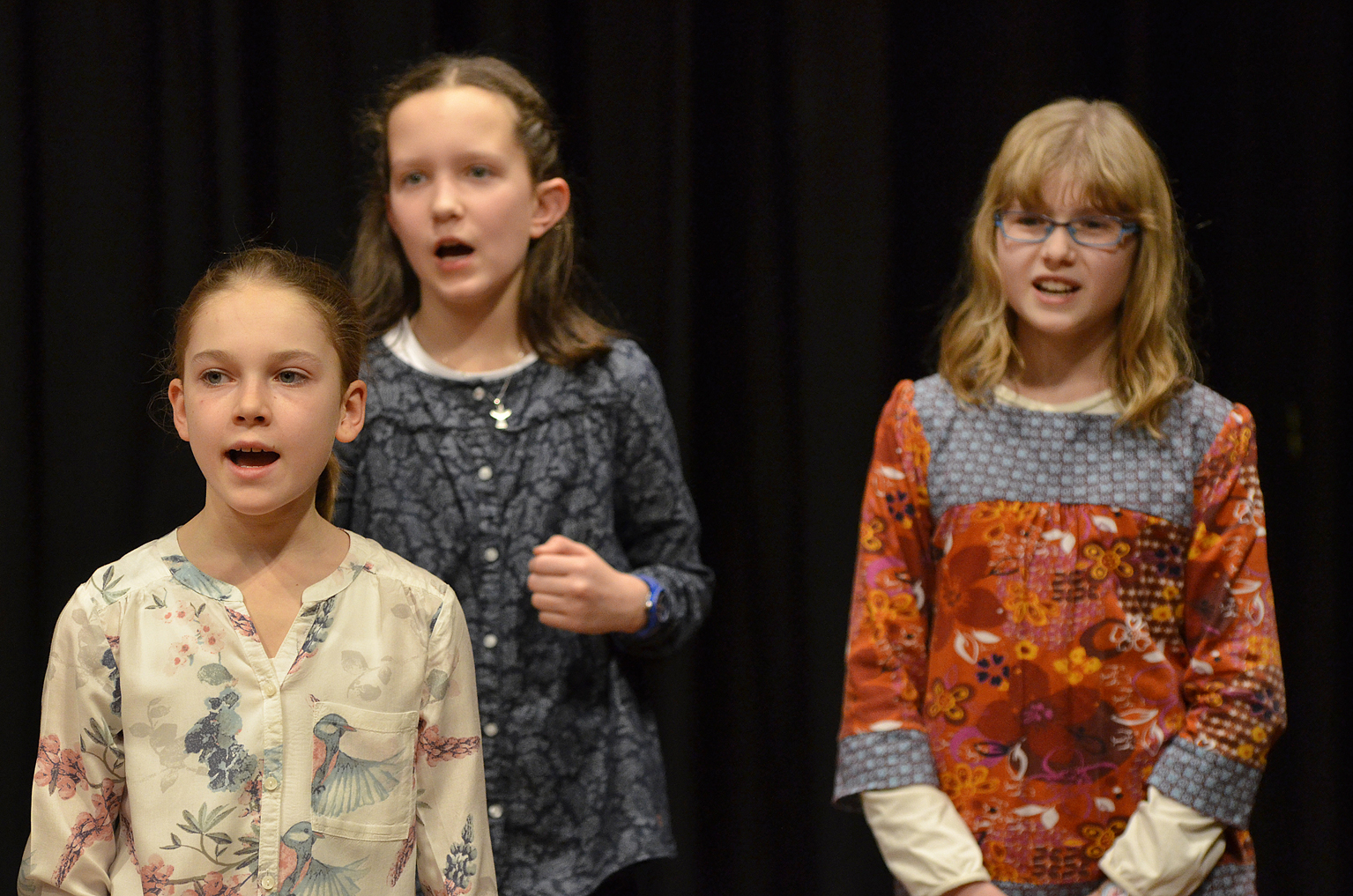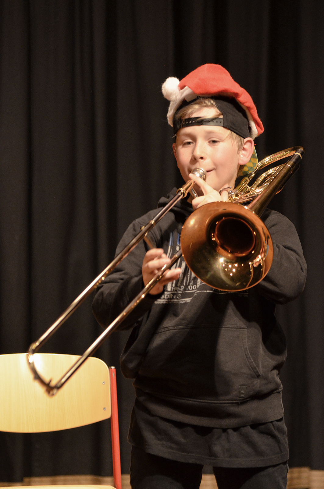 Weiter ging´s mit einer ersten Vorschau auf das diesjährige Pool-Musical „Schlaraffentheater“, das von den siebten Klassen einstudiert wird und dem Auftritt der Geschwister Jonathan und Tobias Schied, die einen weihnachtlichen Sketch mit Posaune und Tuba vorführten. Der Unterstufenchor (begleitet von Julia Strasser) glänzte gleich mit drei Stücken und hoher stimmlicher Präsenz. Er verbreitete echte vorweihnachtliche Stimmung mit den geistlichen Liedern „This little light of mine“, „Maria durch ein Dornwald ging“ und „Sei behütet“. Die bezaubernde Laureen Sturm sorgte dann mit zwei Stücken auf ihrem Instrument für ein Novum: Noch nie war eine Harfe in der Kulturmulde zu sehen. Ebenso beeindruckend war die gesangliche Einlage von Dina Tanzmann, die am Flügel von Helga Weber begleitet wurde.