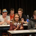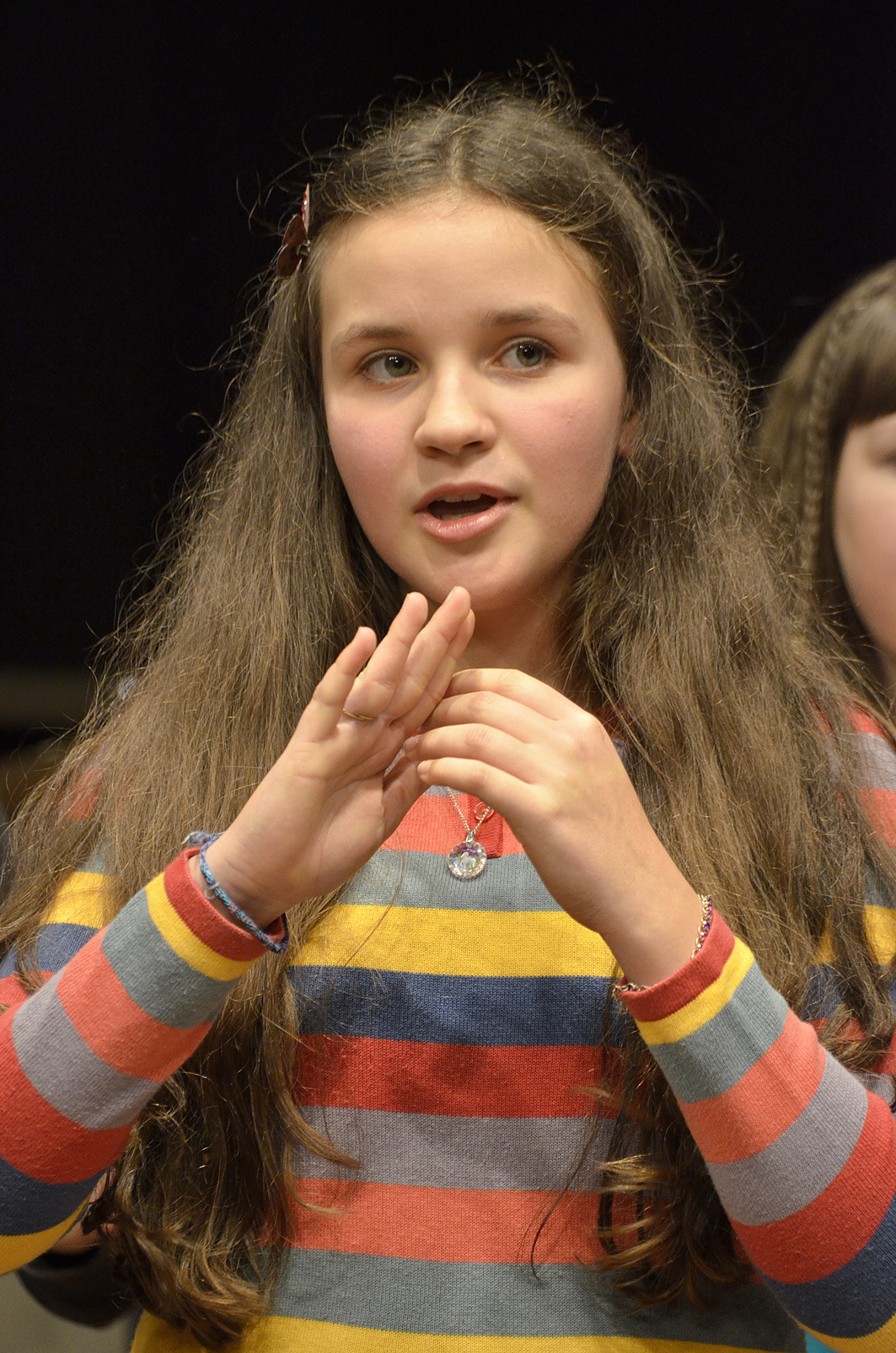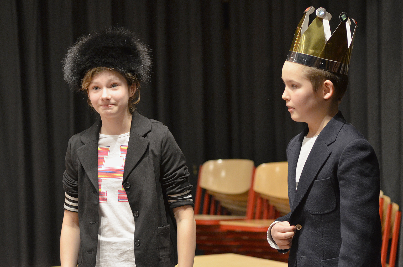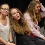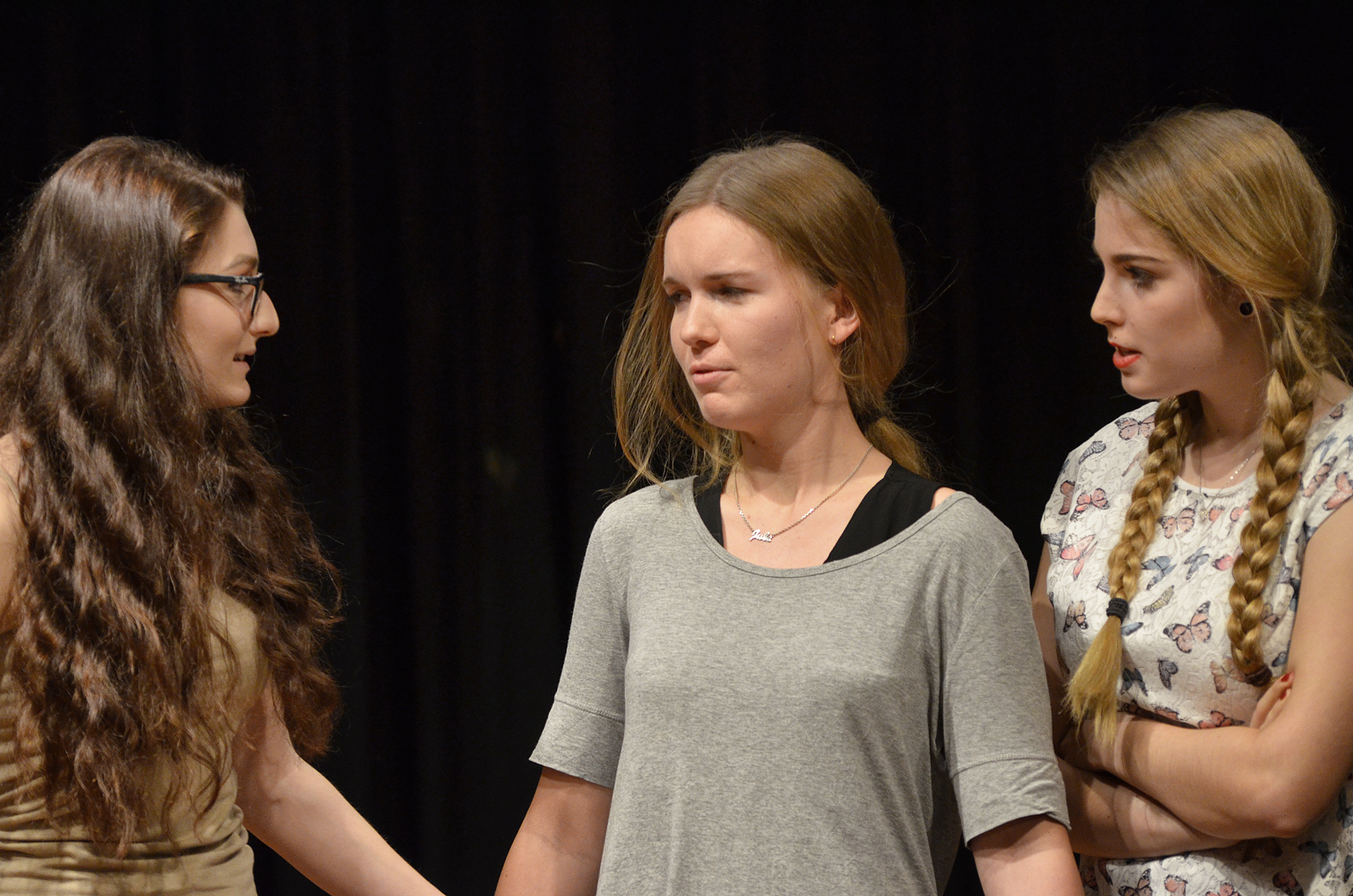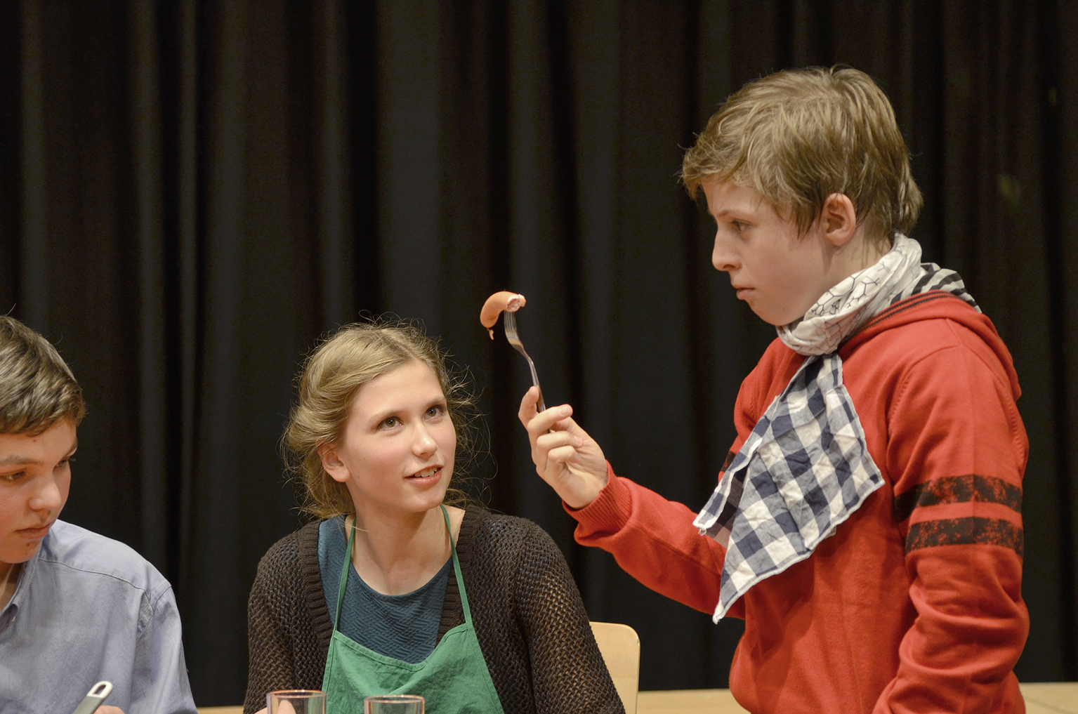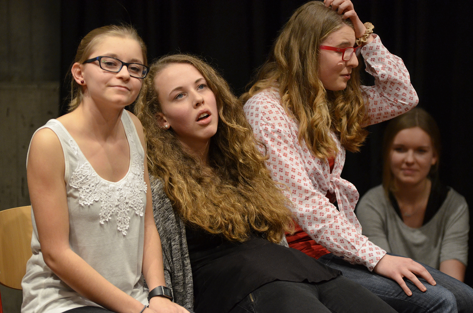 Der Kurs Literatur und Theater präsentierte humorvoll und spielerisch zugleich die vier Elemente Feuer, Wasser, Luft und Erde, gefolgt von den nicht minder verspielten Musikkurslern Tina Greulichs, die zeigten, wie man ein gewöhnliches Klassenzimmer in einen Rhythmuspalast umwandelt und für ihr Stück „Stampede“ lediglich Hände, Füße und etwas Mobiliar benötigten.