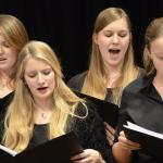 Im Anschluss entführte Aaron Rau mit seinen virtuosen Fertigkeiten am Marimbaphone die Zuhörer in eine andere klangliche Welt und bereitete den Teppich für den Großen Chor unter Leitung von Tina Greulich, mit „Hallelujah“ aus dem Film „Shrek“, dem Bond-Titel „Golden eye“ sowie „Always look on the bright side of life“ aus dem Monty-Python-Klassiker „The life of Brian“, die allesamt Vorfreude und Lust auf mehr beim Chorkonzert im Lokschuppen am 31. Januar auslösten.