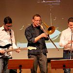 Unter den Dozenten waren zudem Martin Sörös, der das selbst komponierte Stück „Take the 2nd way“ und „Summertime“ von Gershwin mit seinen Teilnehmern einstudierte. Leider konnte er am Abschlusskonzert nicht dabei sein, was für die Mitglieder seines Ensembles aufgrund ihres selbstständigen Kommunizierens jedoch kein Problem darstellte. Die 4. Combo wurde von Markus Ambrosi geleitet und spielte das Stück „Gonna Fly Now“ aus dem Film Rocky und „Sometimes“ von Sebastian Jäger.