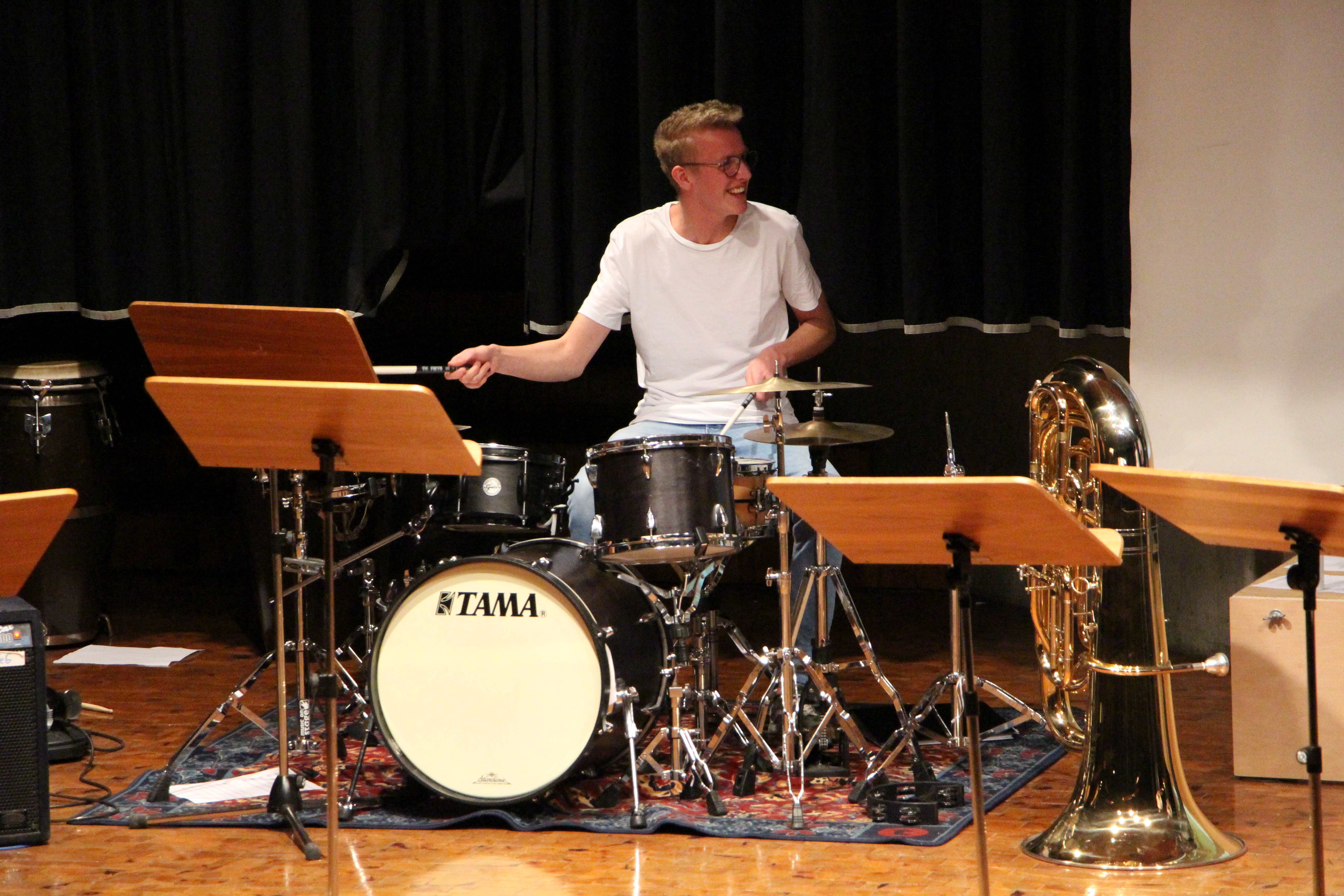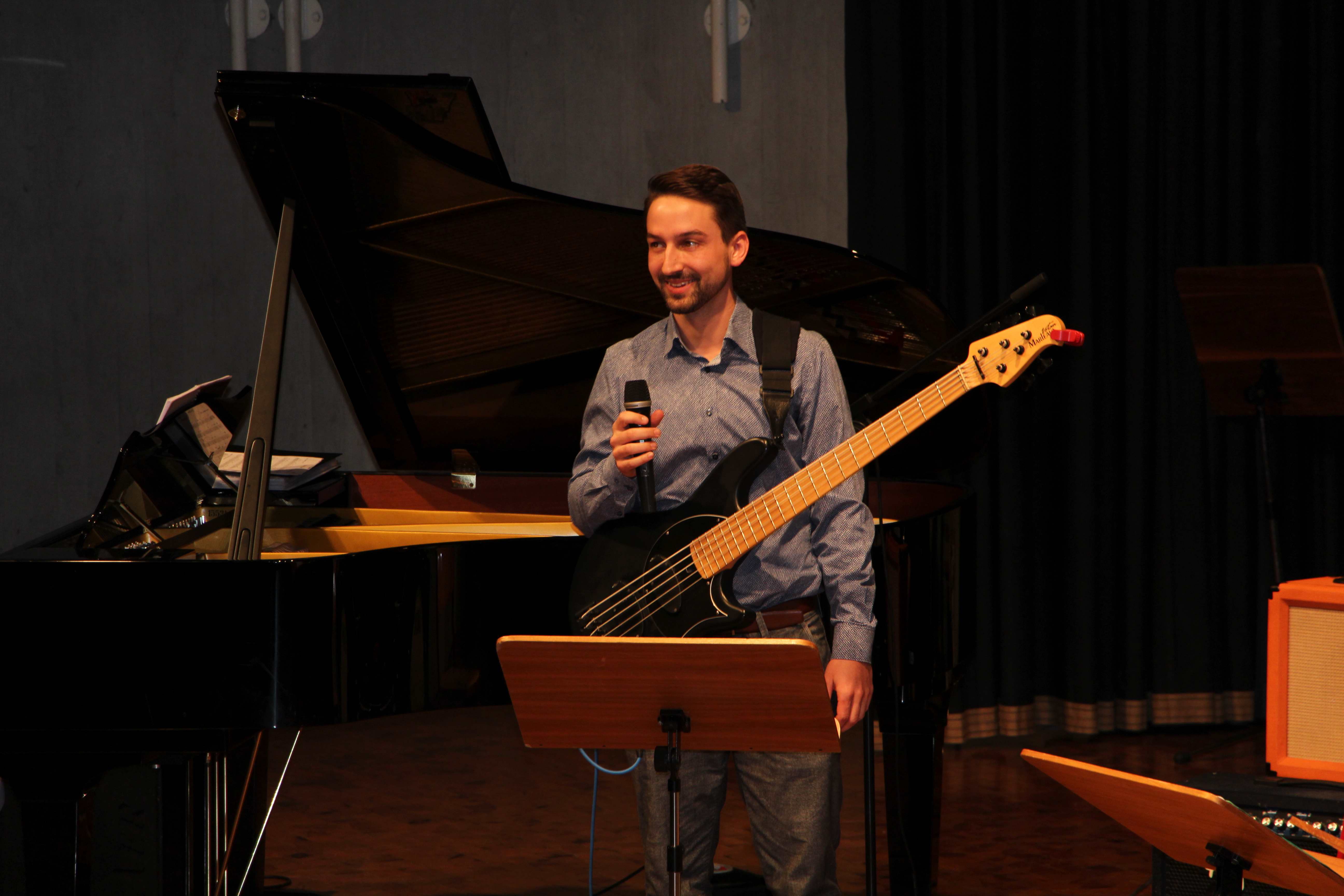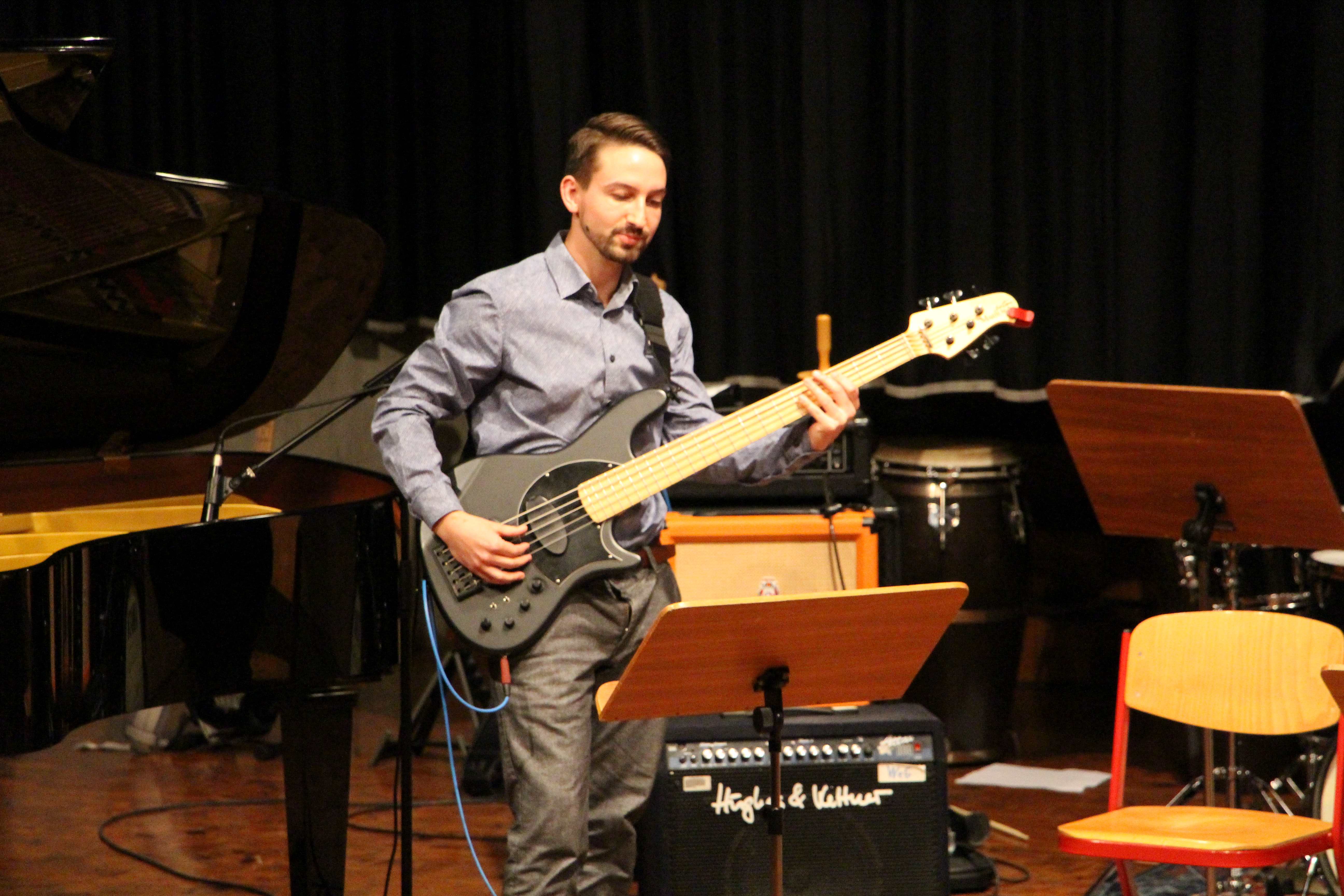 Gemeinsam mit seiner Combo führte Andreas Schmid beim Abschlusskonzert „Softly as in a morning sunrise“ von Sigmund Romberg und den Titel „Song for Bilbao“ von Pat Metheny auf. Auch Jan Jäger gab seine Begeisterung für den Jazz an seine Workshopteilnehmer weiter: Mit seinem ausgewählten Titel von Herbie Hancock „Watermelon Man“ gab er die perfekte Improvisationsgrundlage für die Musiker. Er ermutigte auch die jungen Schülerinnen und Schüler sich an ihre ersten Improvisationen zu wagen.