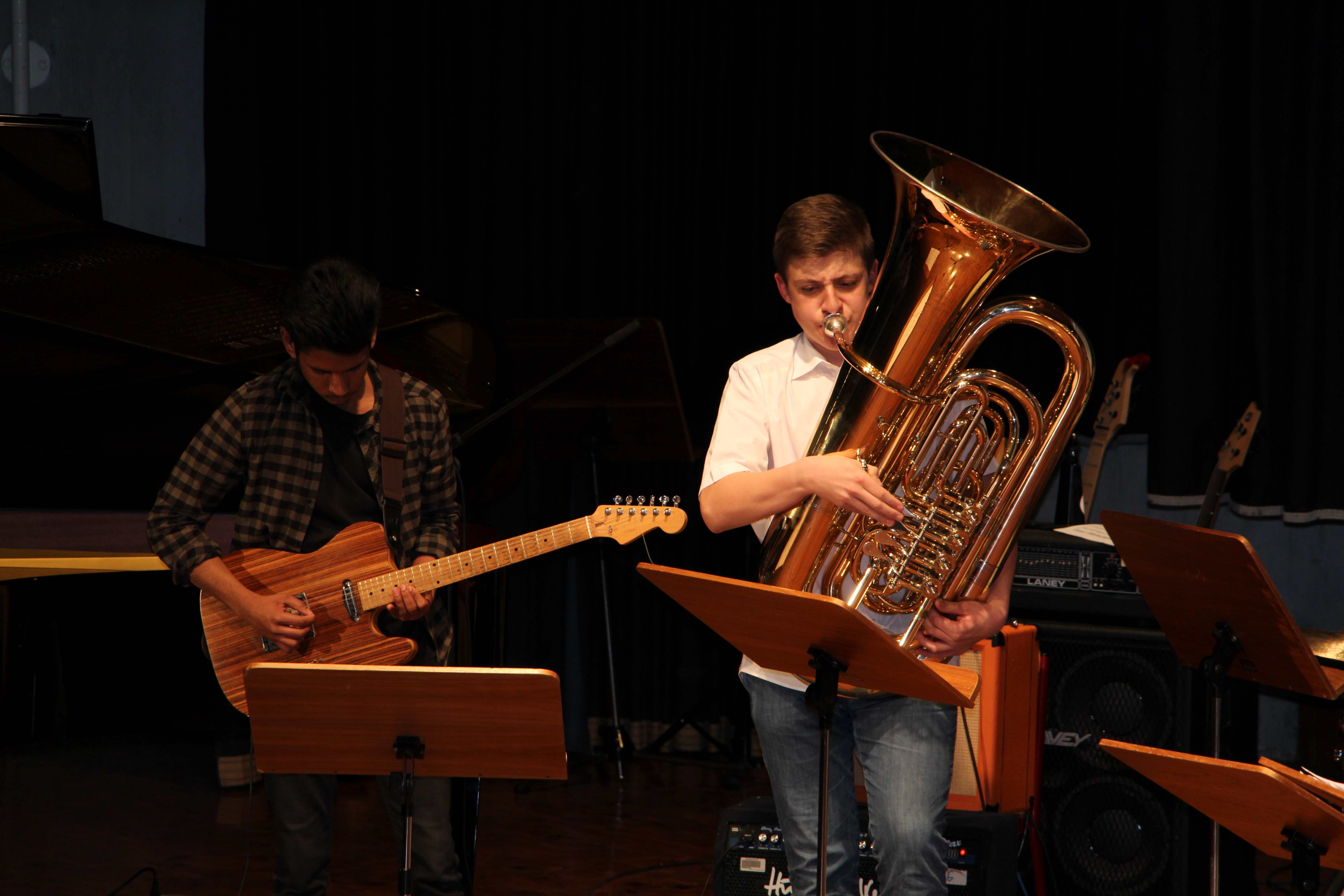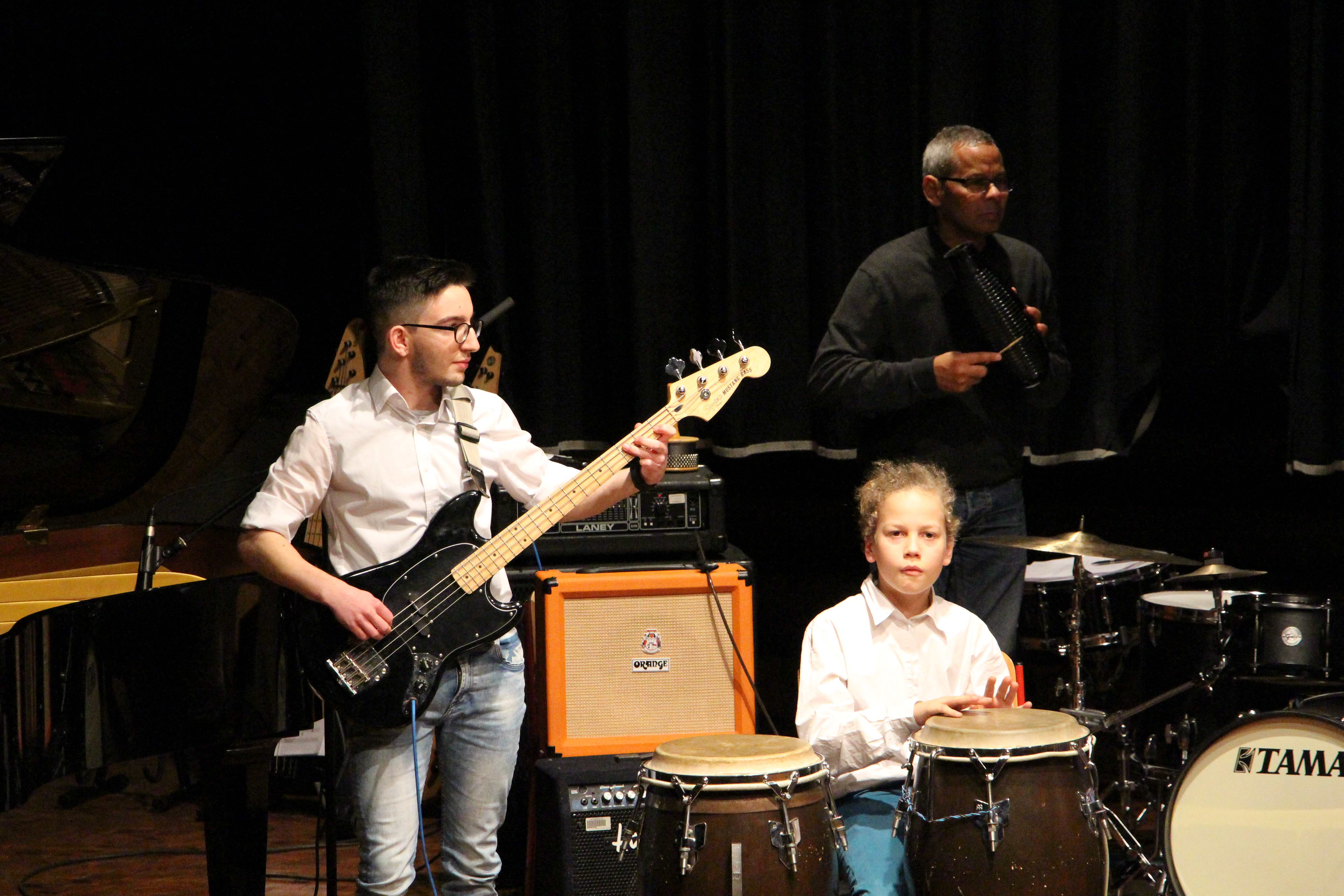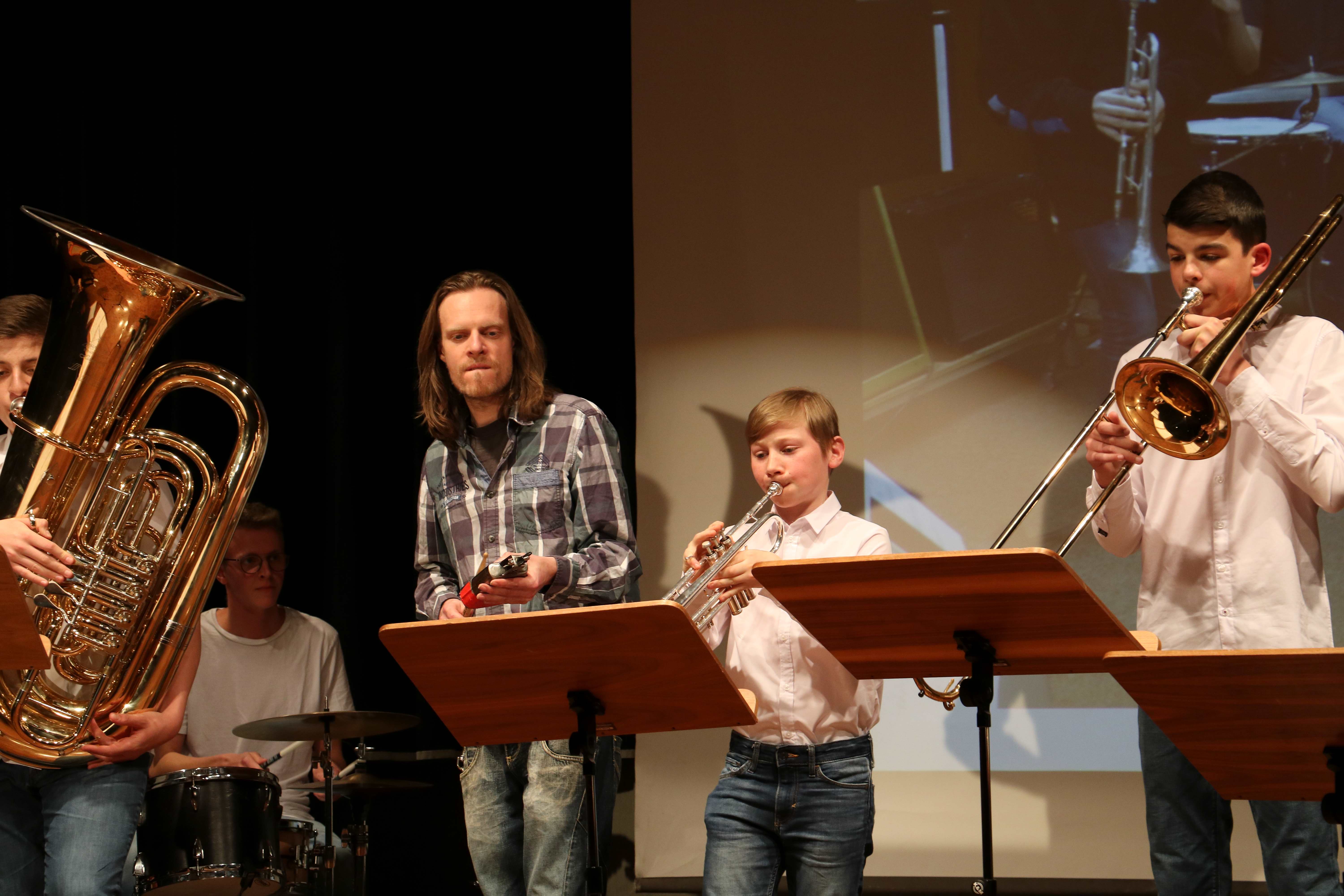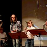 Gemeinsam mit seiner Combo führte Andreas Schmid beim Abschlusskonzert „Softly as in a morning sunrise“ von Sigmund Romberg und den Titel „Song for Bilbao“ von Pat Metheny auf. Auch Jan Jäger gab seine Begeisterung für den Jazz an seine Workshopteilnehmer weiter: Mit seinem ausgewählten Titel von Herbie Hancock „Watermelon Man“ gab er die perfekte Improvisationsgrundlage für die Musiker. Er ermutigte auch die jungen Schülerinnen und Schüler sich an ihre ersten Improvisationen zu wagen.