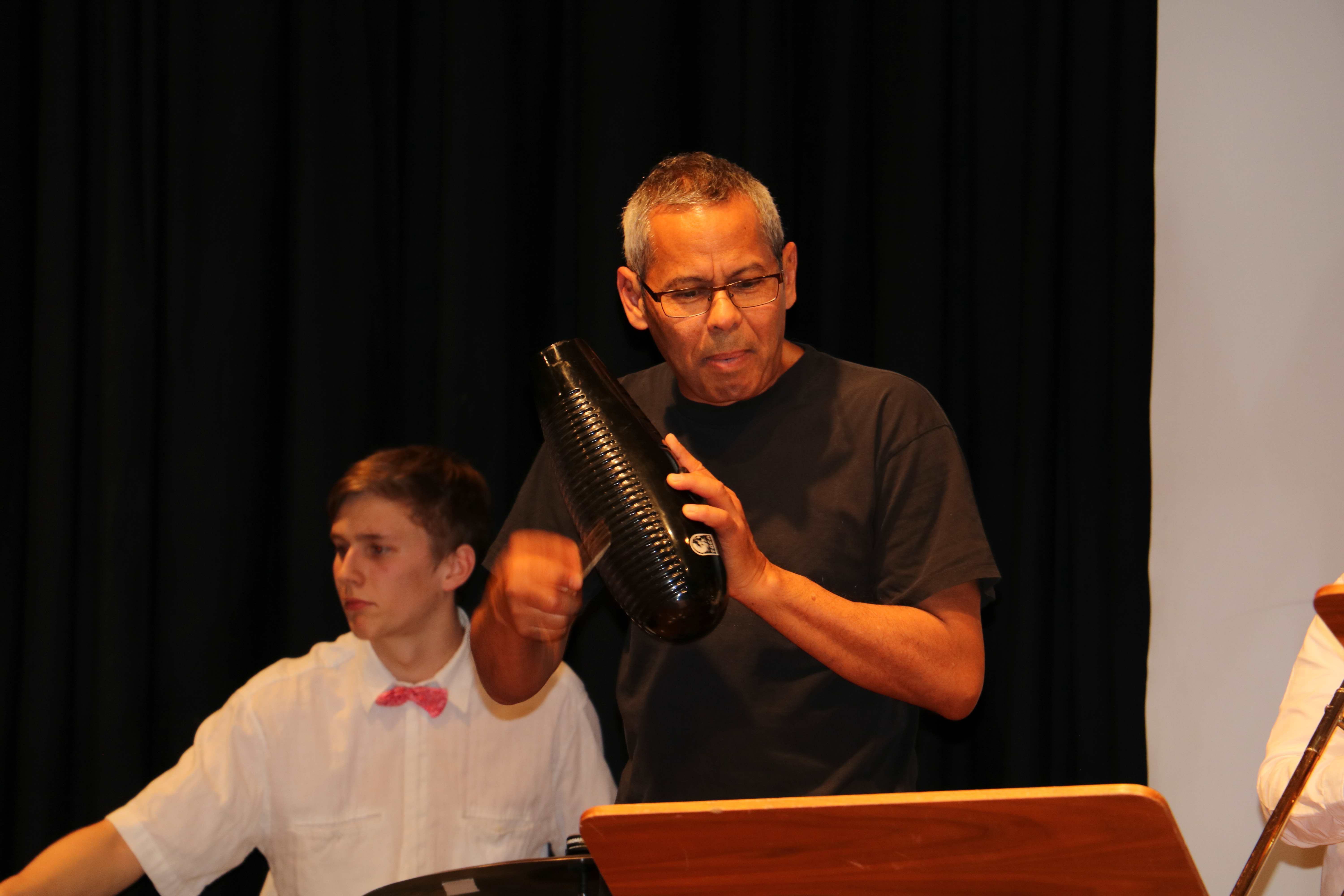 Am 21. Workshop stand Percussion im Vordergrund. Prof. Tomás Peréz, der als Percussionist tätig ist, brachte den Schülerinnen und Schülern Grundlagen der Percussion bei. Seine Combo führte die Stücke „Sabor“, von Joe Donato und „Afro Blue“ von Mango Santamaría auf. Zum Schluss beeindruckte die „Elefantenbigband“ mit den gemeinsamen Stücken „Caravan“ und dem Gesangsstück „A day in the life of a fool“, gesungen von Yamur Tanriverdi. Auch das Publikum wurde beim Abschlusskonzert mit einbezogen. Bei dem Stück “Guantanamera” durfte kräftig mitgesungen und mitgeklatscht werden. Nach dieser gelungenen Vorstellung verabschiedeten sich alle Mitwirkenden unter großem Beifall und bedankten sich für die Unterstützung durch die Landesbank Baden-Württemberg, die Hanns Voith Stiftung und die Heidenheimer Volksbank eG. Mit dem motivierten Nachwuchs hat auch die 22. Auflage des Workshops nächstes Jahr beste Chancen zur Realisierung.