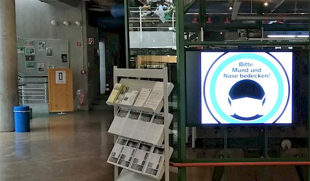 Hier das aktuelle Türschild, das an allen Eingängen hängt.