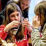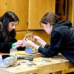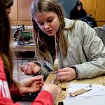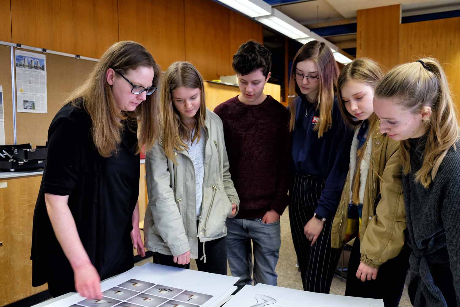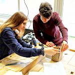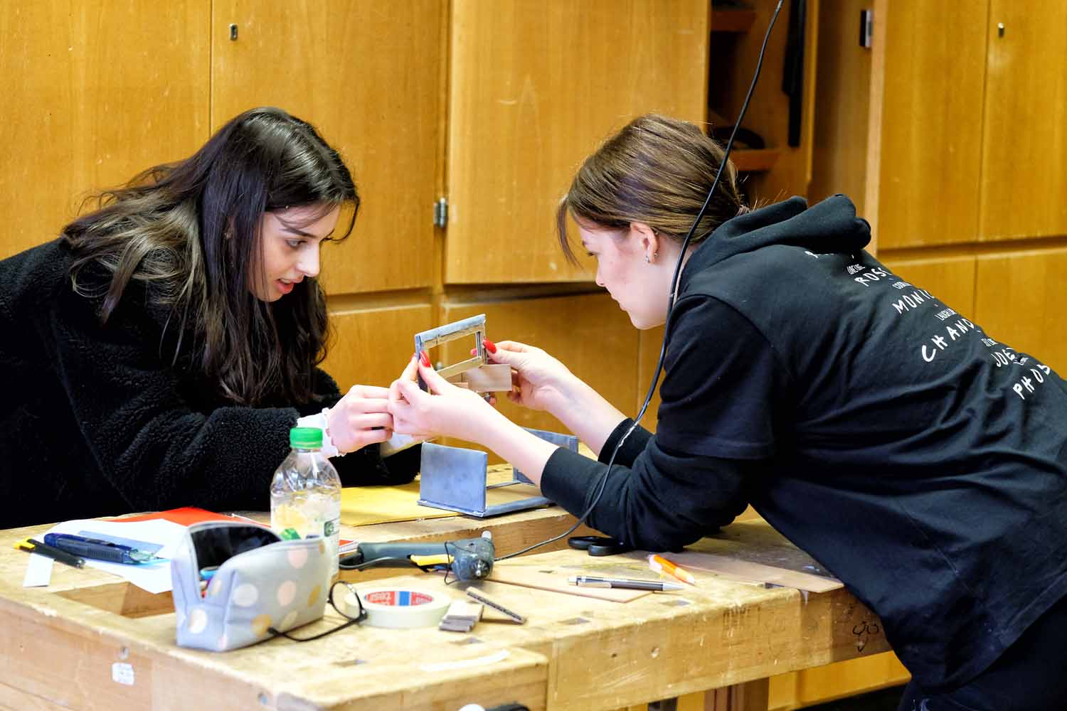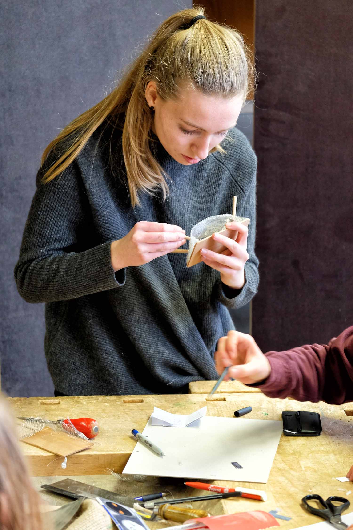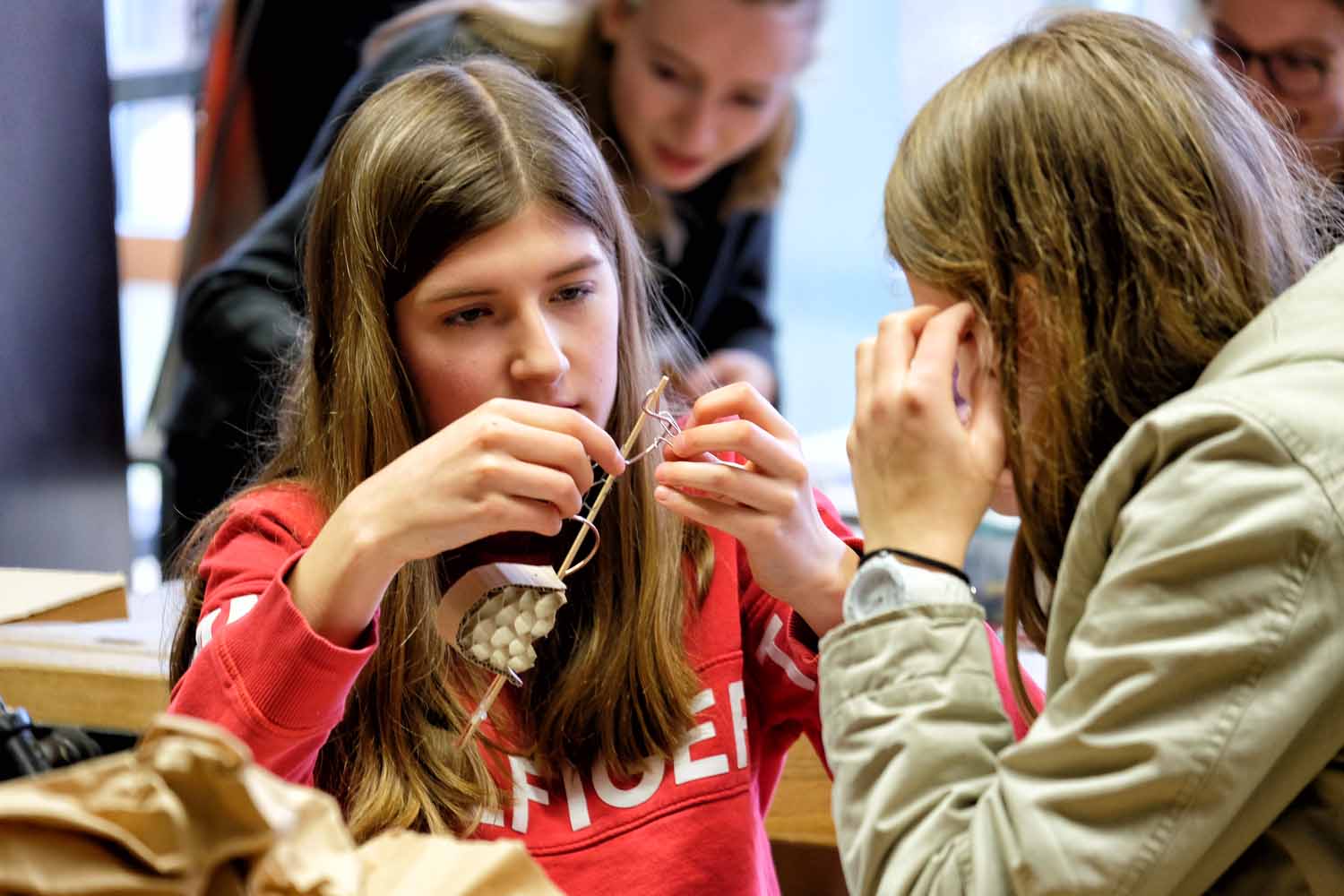 Jeden Tag nehmen wir Produkte in die Hand, die erst dadurch entstanden sind, dass Menschen aus ganz unterschiedlicher Perspektive auf dieses Produkt schauen: Techniker, Materialwissenschaftler, Betriebswirtschaftler, Ingenieure und eben Designer; sie alle sorgen dafür, dass ein Produkt entsteht, das wir gerne in die Hand nehmen, das das erfüllt, was Verbraucher erwarten. Und gerade in diesem Entwicklungsprozess leisten Produktdesignende Enormes, weil Funktion und Ästhetik in ein ideales Verhältnis zu bringen sind. Steffi Moser, im ALUMNI Netzwerk bereits zum zweiten Mal aktiv, konfrontierte die Schülerinnen und Schüler darum von Anfang an mit der Situation, in der Produktdesignende heute arbeiten: Ganz aus der Perspektive von Kunden und Anwendenden denkend, stehen am Anfang viele Möglichkeiten, Materialien, Vorgaben und Wünsche. Und so brachte sie denn auch genau diesen Workflow in die Räume des Kurses A mit. Auf den Tischen lagen Materialien aus Holz, Metall, Papier, Glas und Kunststoff und viele Werkzeuge und Gerätschaften. Doch bevor diese zum Einsatz kommen konnten, ging Steffi Moser in ihrer Einführung nochmals auf die professionelle Situation ein, wonach Design jenseits der technischen Notwendigkeiten verzichtbar erscheinen könnte. Doch mit dem Design eines Produkts sei eben mehr verbunden. So transportiere Design immer auch eine Botschaft, ein Gefühl, setze auf eine Beziehung des Anwendenden zum Produkt selbst. Und darum befassten sich die Schülerinnen und Schüler anfangs mit Begriffen, die genau diese weiche, diese Gefühlsebene zum Produkt beschreiben. Und dann machten sich die Schülerinnen und Schülern ans Werk, klebten und leimten, sägten und bogen, formten und schnitten, probierten aus und verwarfen bereits Entstandenes wieder. Am Ende war der kreative Output beachtlich. Im teamorientierten Arbeiten konnten alle Schülerinnen und Schüler ganz praktisch erleben, was Produktdesign ausmacht und was es braucht, um zu einem abschließenden Ergebnis in klar begrenzter Zeit zu gelangen. Steffi Moser war am Schluss nicht nur sichtlich zufrieden, sondern auch stolz auf die Ergebnisse der Schülerinnen und Schüler, die im Rahmen einer abschließenden Werkschau ihre Ergebnisse erläuterten und ein differenziertes Feedback bekamen. Für die Schülerinnen und Schüler war dies sicherlich ein doppelter Gewinn, den Studiengang Produktdesign von seiner beruflichen Realität her wahrzunehmen und andererseits in Steffi Moser eine Expertin für die Fragen zu Studium und Beruf im Bereich des Produktdesigns erlebt zu haben. Frank Keller, Koordinator für die Berufs- und Studienorientierung am Werkgymnasium, bedankte sich bei sehr zufriedenen Schülerinnen und Schülern für deren engagiertes Arbeiten, bei seinem Kollegen Alexander Spohn für dessen Betreuung des Workshops und bei der Produktdesignerin Steffi Moser, die mit ihrem Workshop im Rahmen des Alumni Netzwerkes erneut einen herausragenden Beitrag geleistet habe.