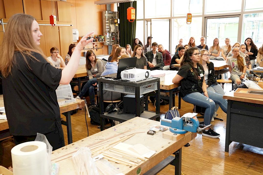 Steffi Moser, Abitur 2005 am Werkgymnasium, lässt Schülerinnen und Schüler in den Alltag der Produktdesignerin eintauchen