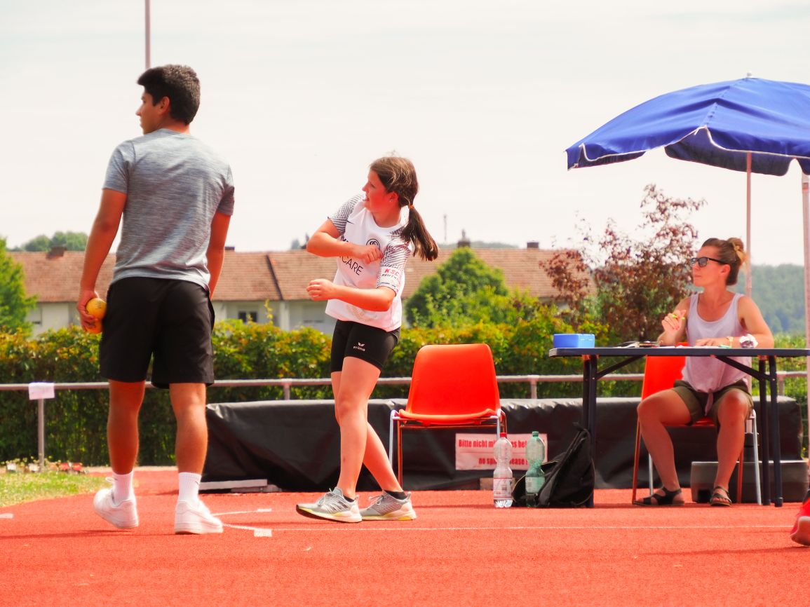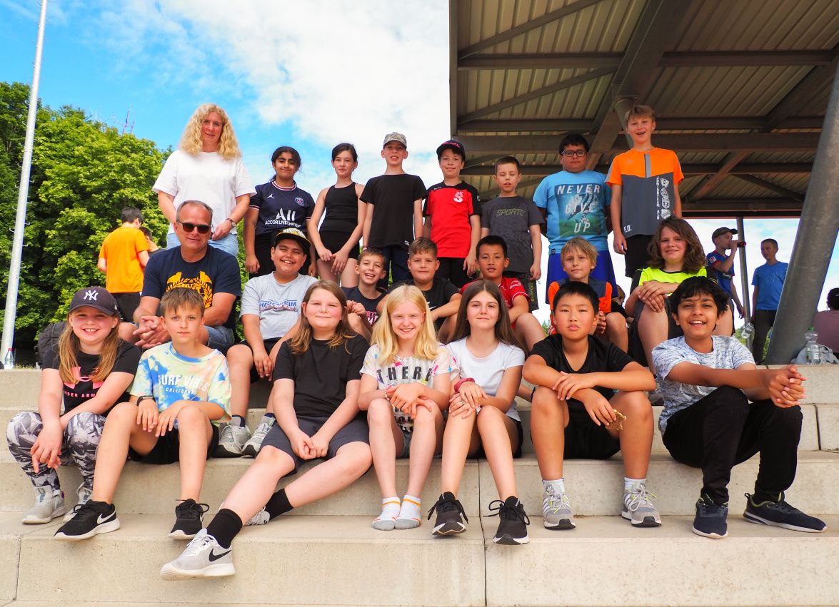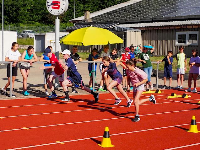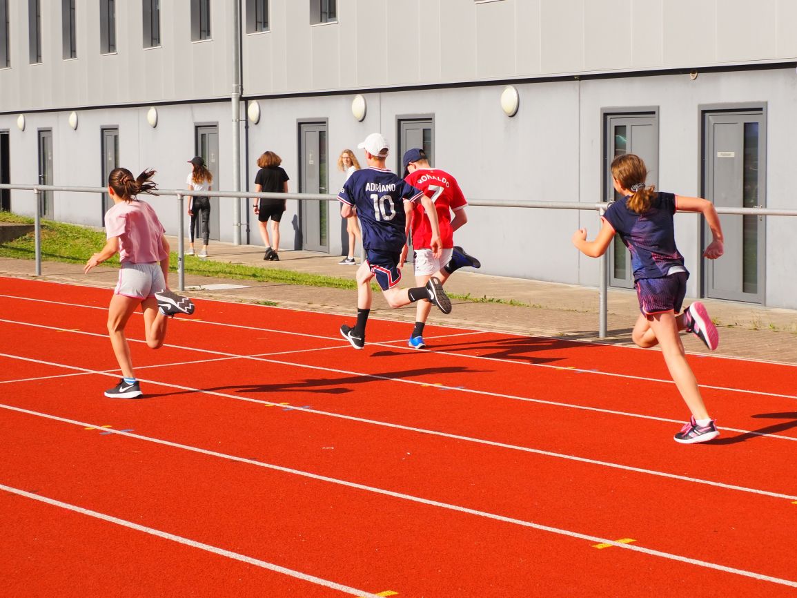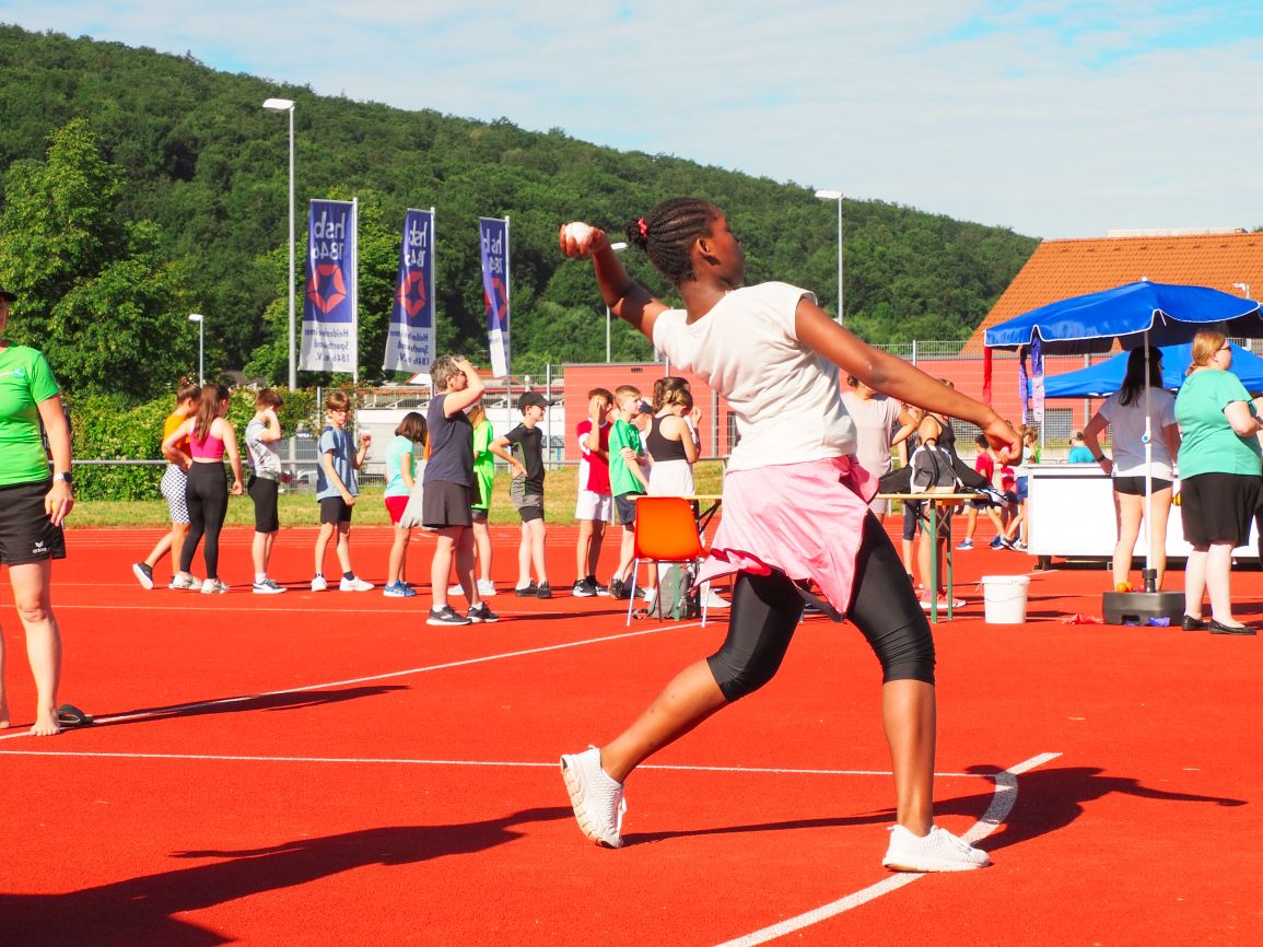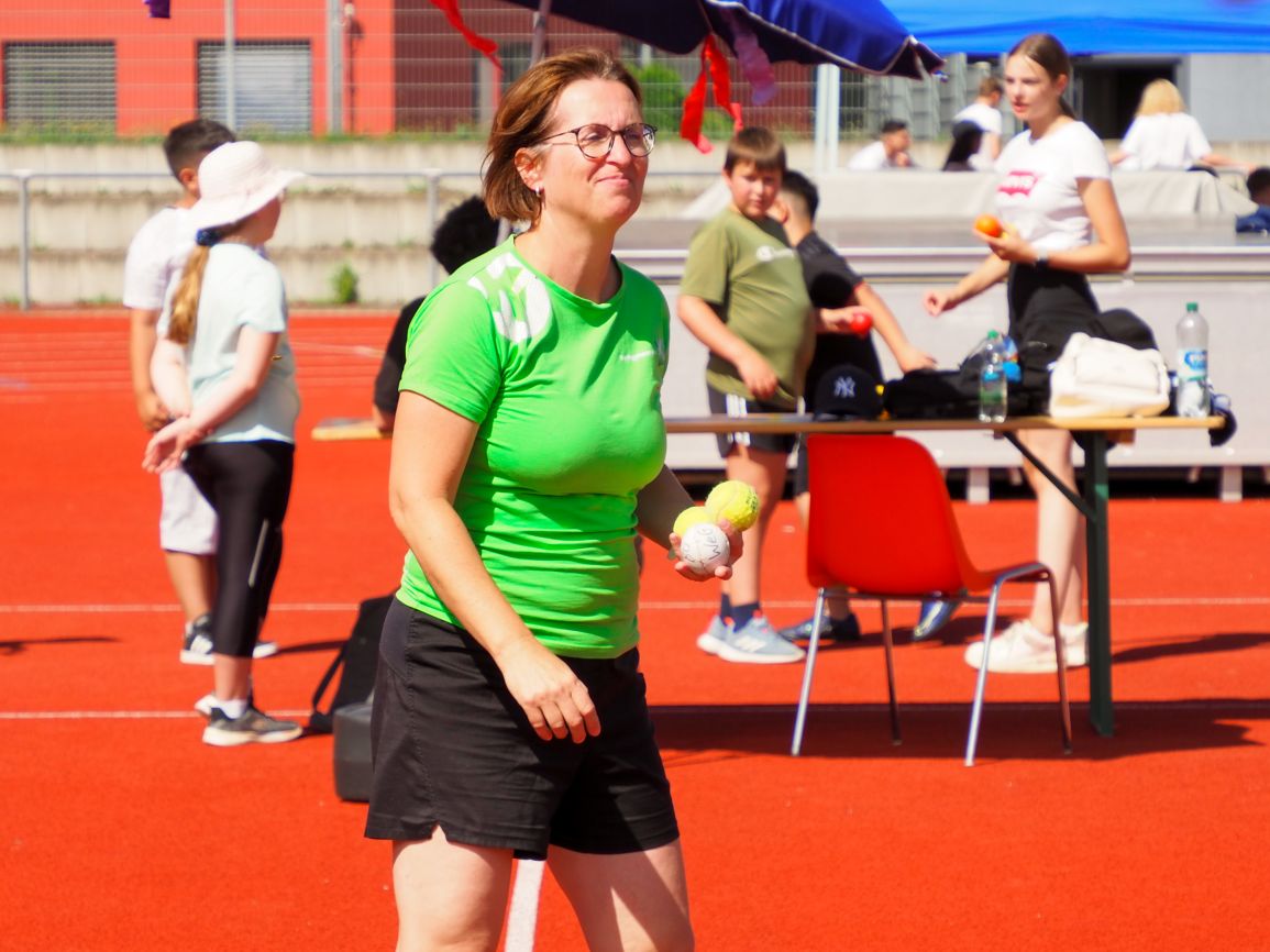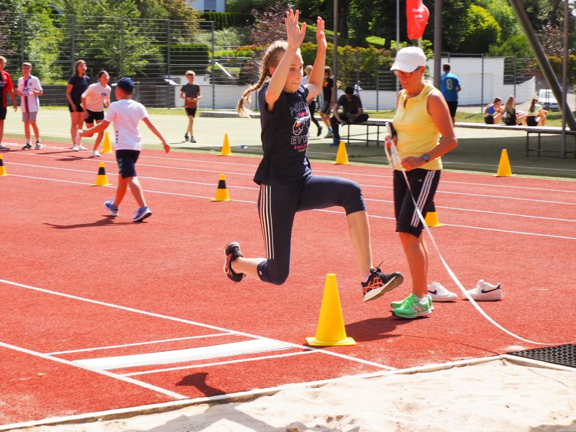 Nachdem coronabedingt die Bundesjugendspiele 2020 und 2021 ausfallen mussten, wurde die Organisation in diesem Jahr zu einer besonderen Herausforderung. Immerhin sollten an diesem 13. Juli, einem Mittwochvormittag, insgesamt elf Klassen aus den Klassenstufen 5 bis 7 in einem straffen Zeitplan die vier Disziplinen Schlagballweitwurf, 800-m- bzw. 1000-m-Lauf, Weitsprung und den Sprint über Strecken 50 oder 75 Meter absolvieren. Zum Abschluss gab es noch Staffelwettkämpfe, bei denen sich die einzelnen Klassenstufen lautstark miteinander messen konnten.