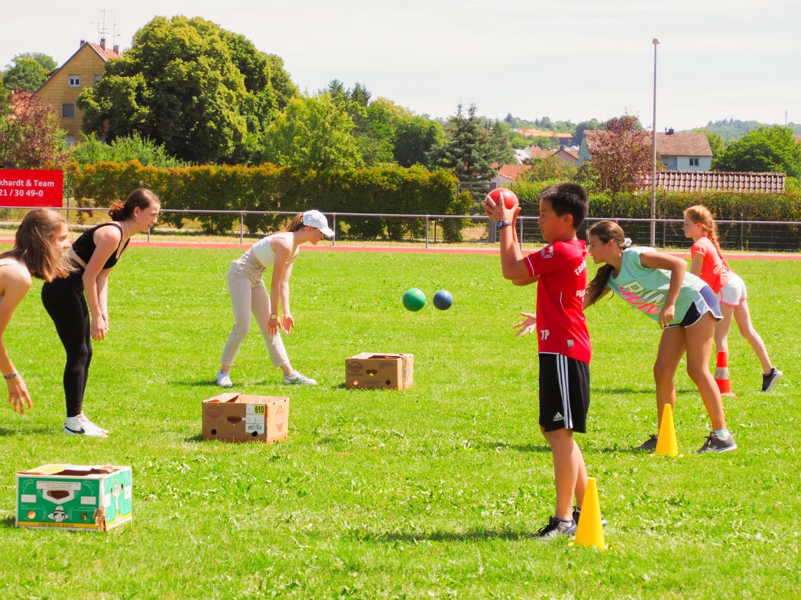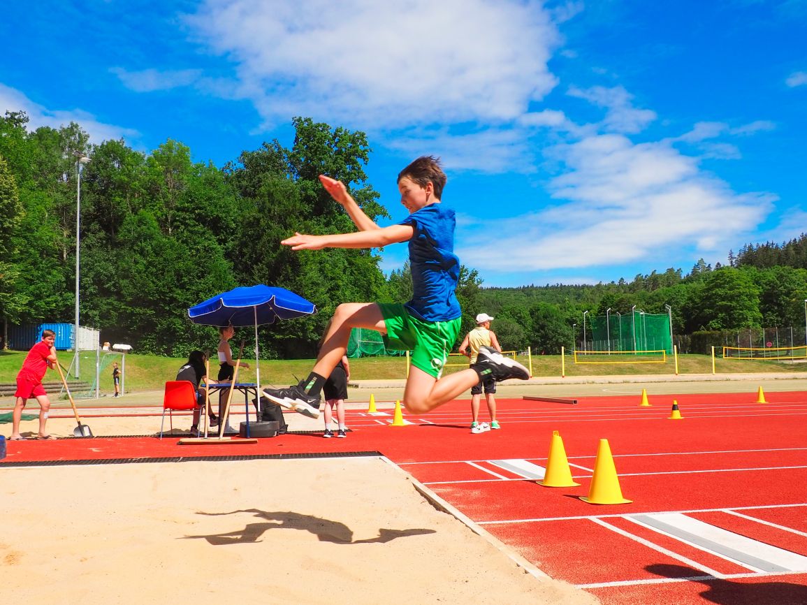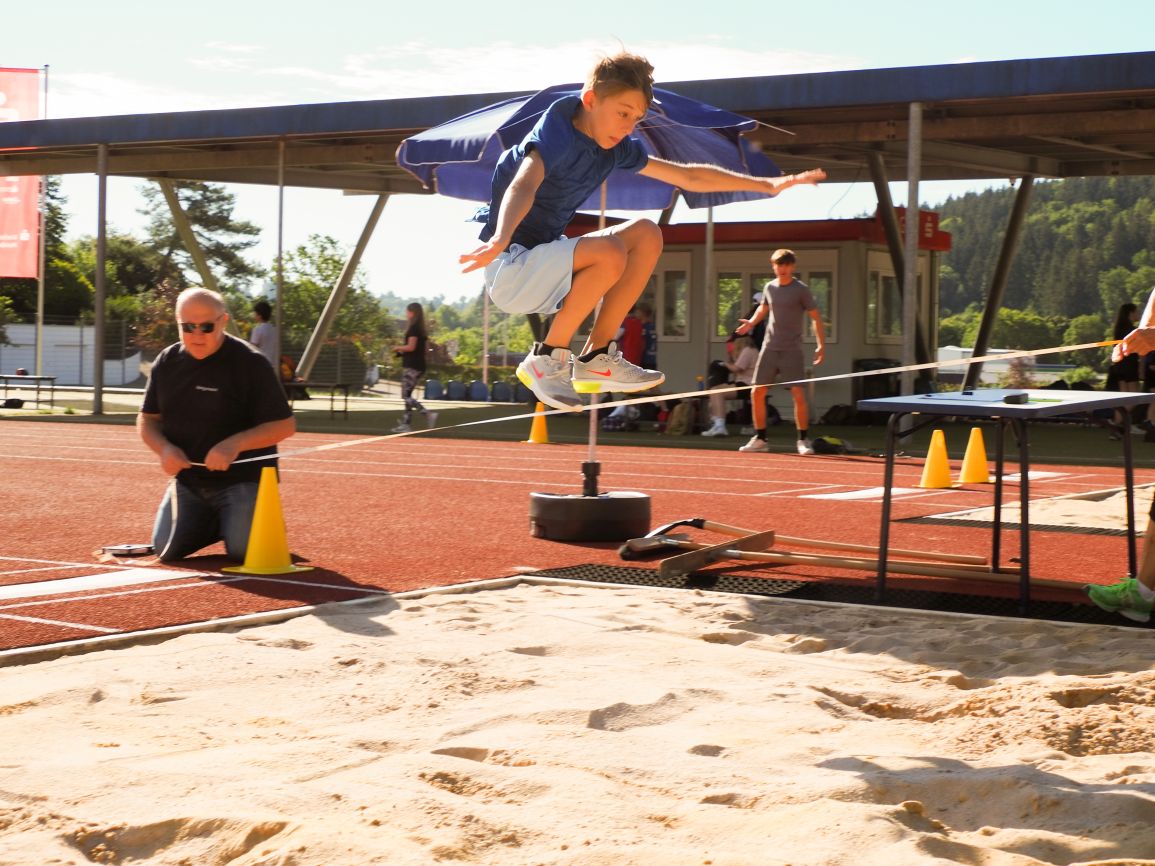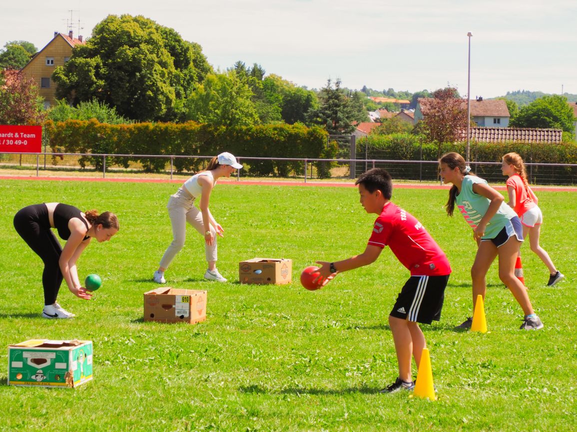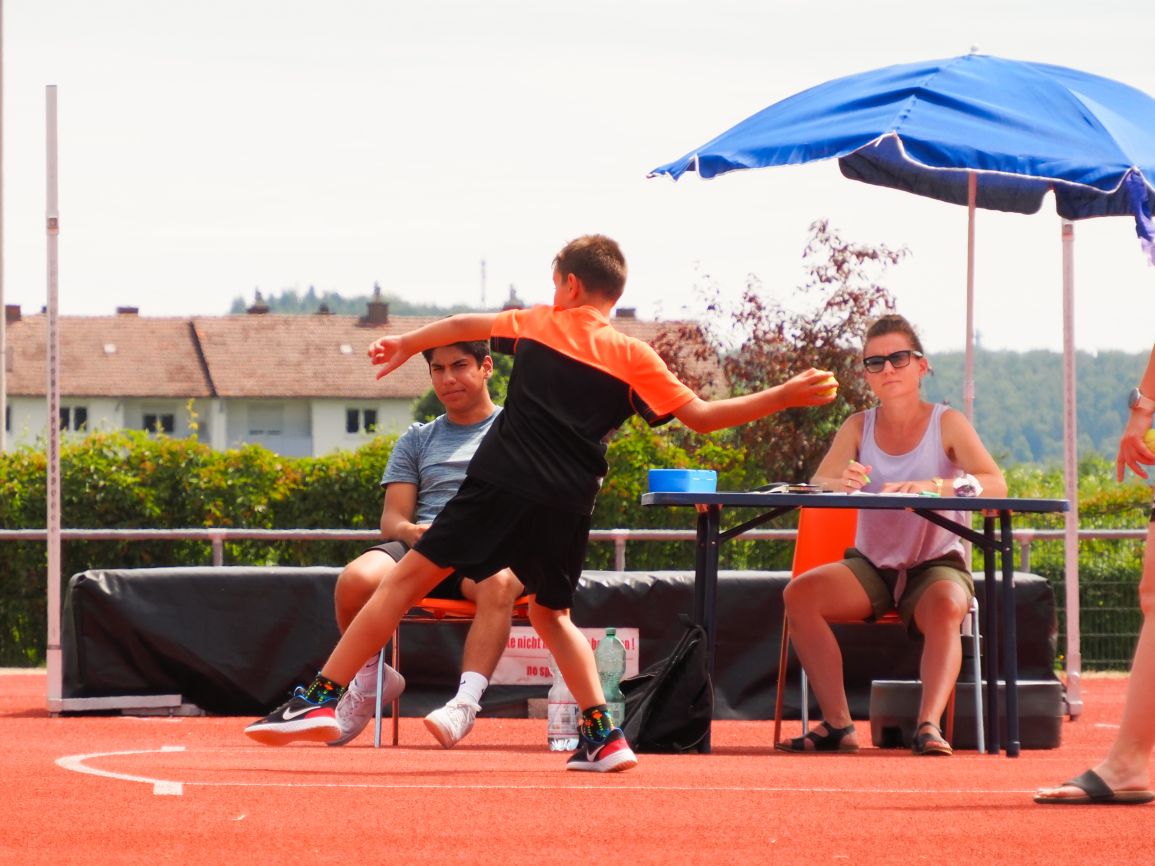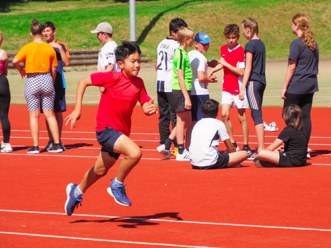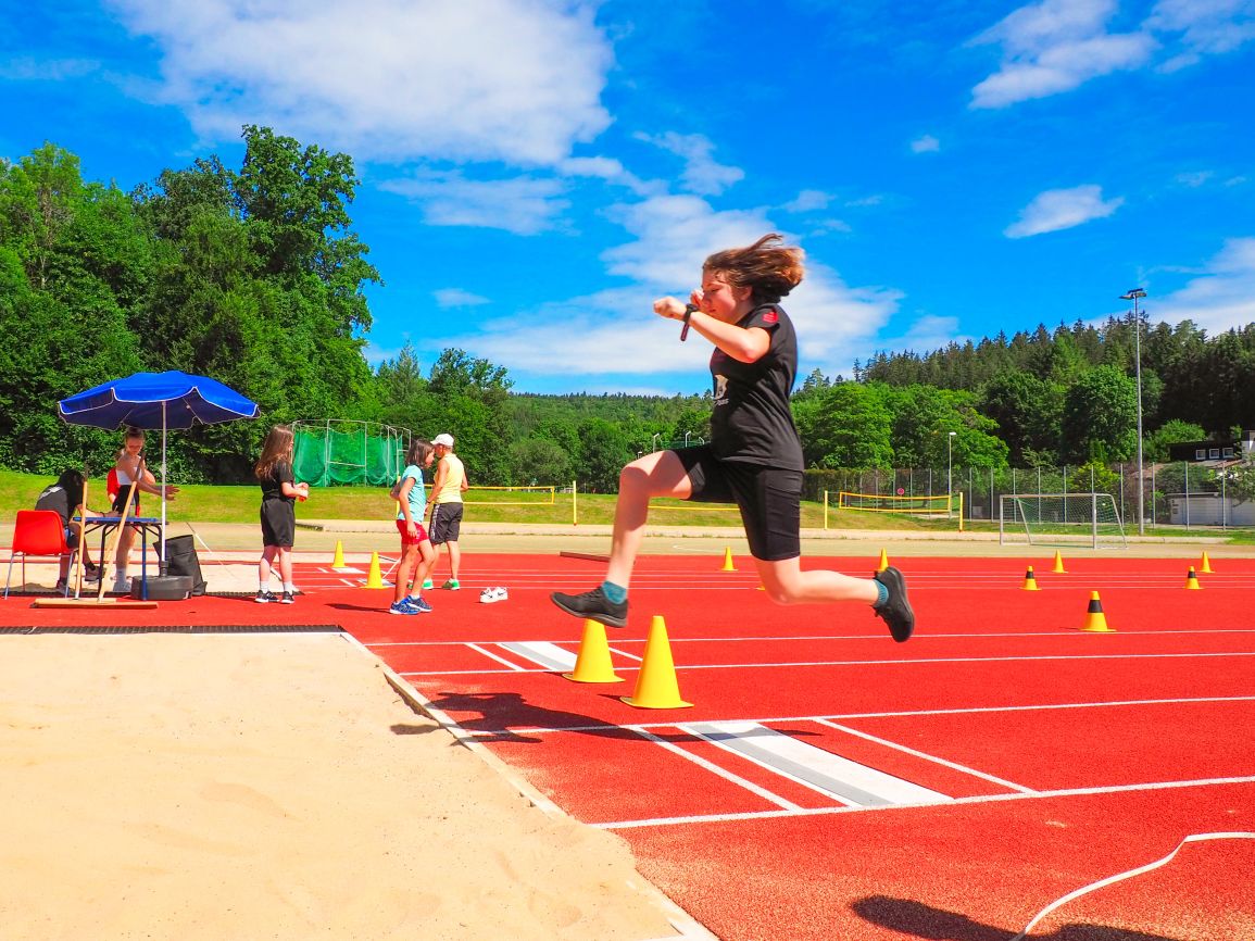 Nachdem coronabedingt die Bundesjugendspiele 2020 und 2021 ausfallen mussten, wurde die Organisation in diesem Jahr zu einer besonderen Herausforderung. Immerhin sollten an diesem 13. Juli, einem Mittwochvormittag, insgesamt elf Klassen aus den Klassenstufen 5 bis 7 in einem straffen Zeitplan die vier Disziplinen Schlagballweitwurf, 800-m- bzw. 1000-m-Lauf, Weitsprung und den Sprint über Strecken 50 oder 75 Meter absolvieren. Zum Abschluss gab es noch Staffelwettkämpfe, bei denen sich die einzelnen Klassenstufen lautstark miteinander messen konnten.