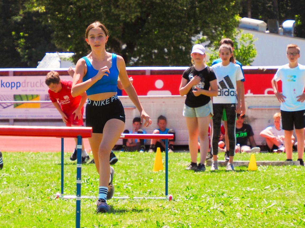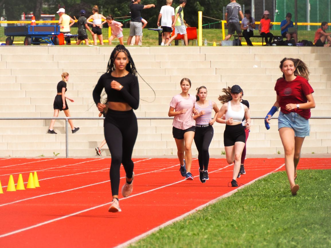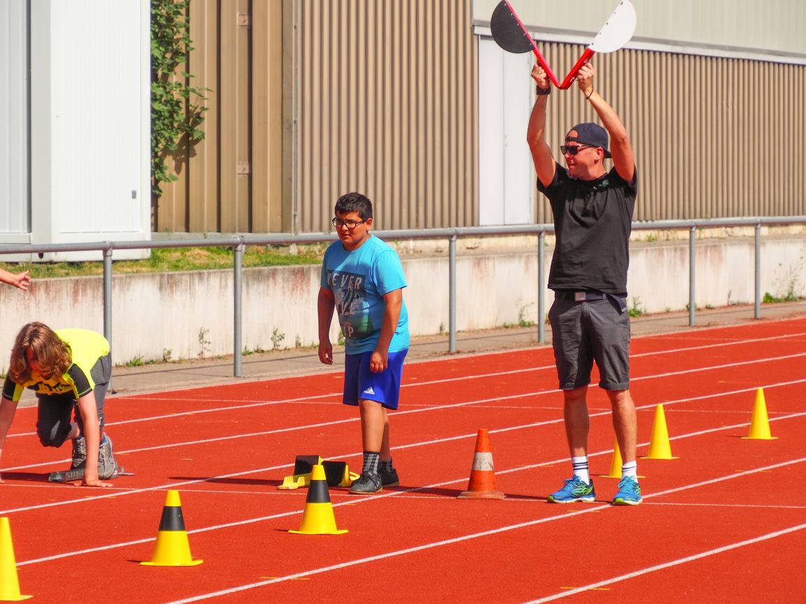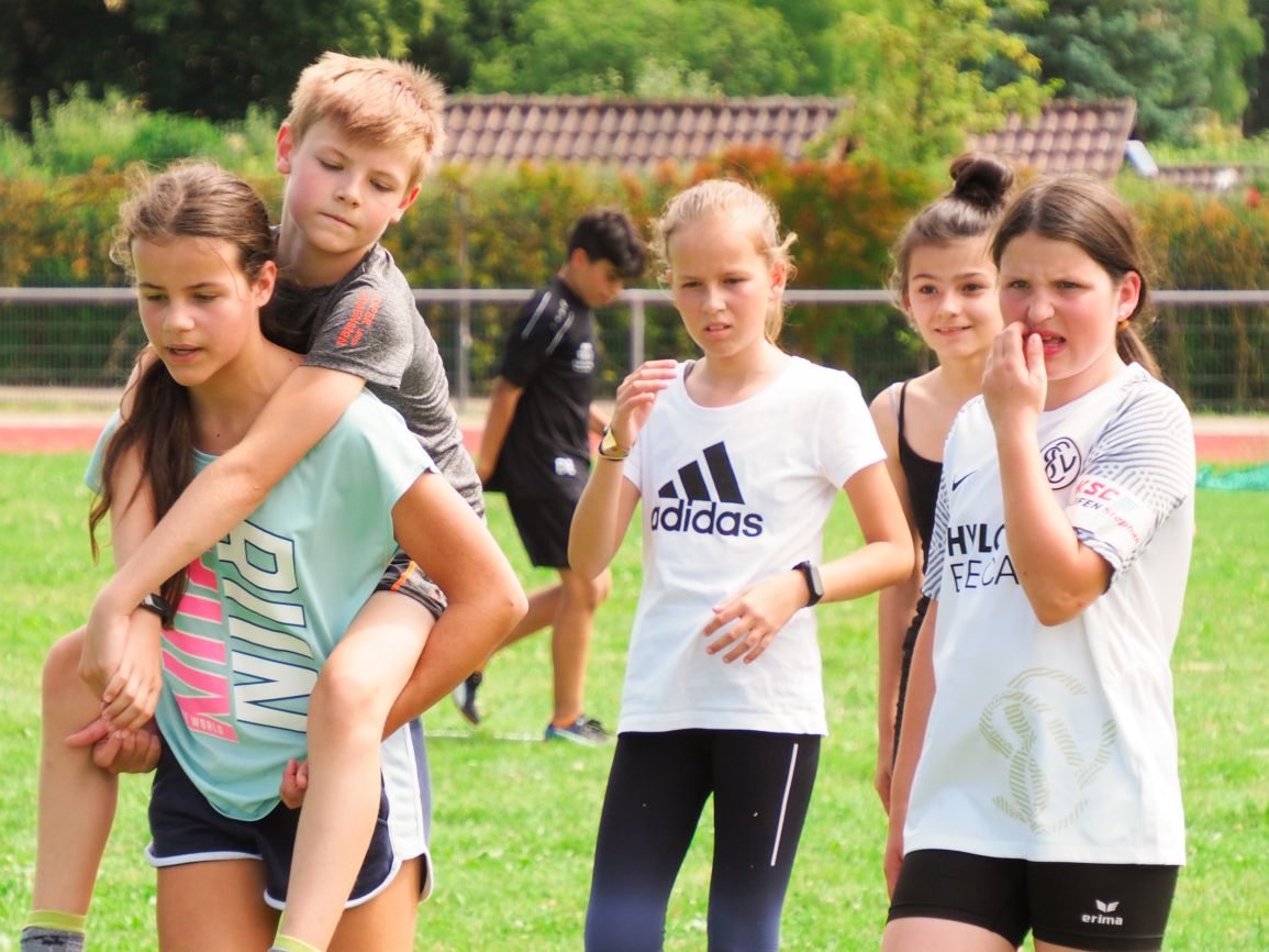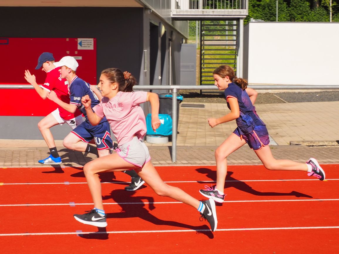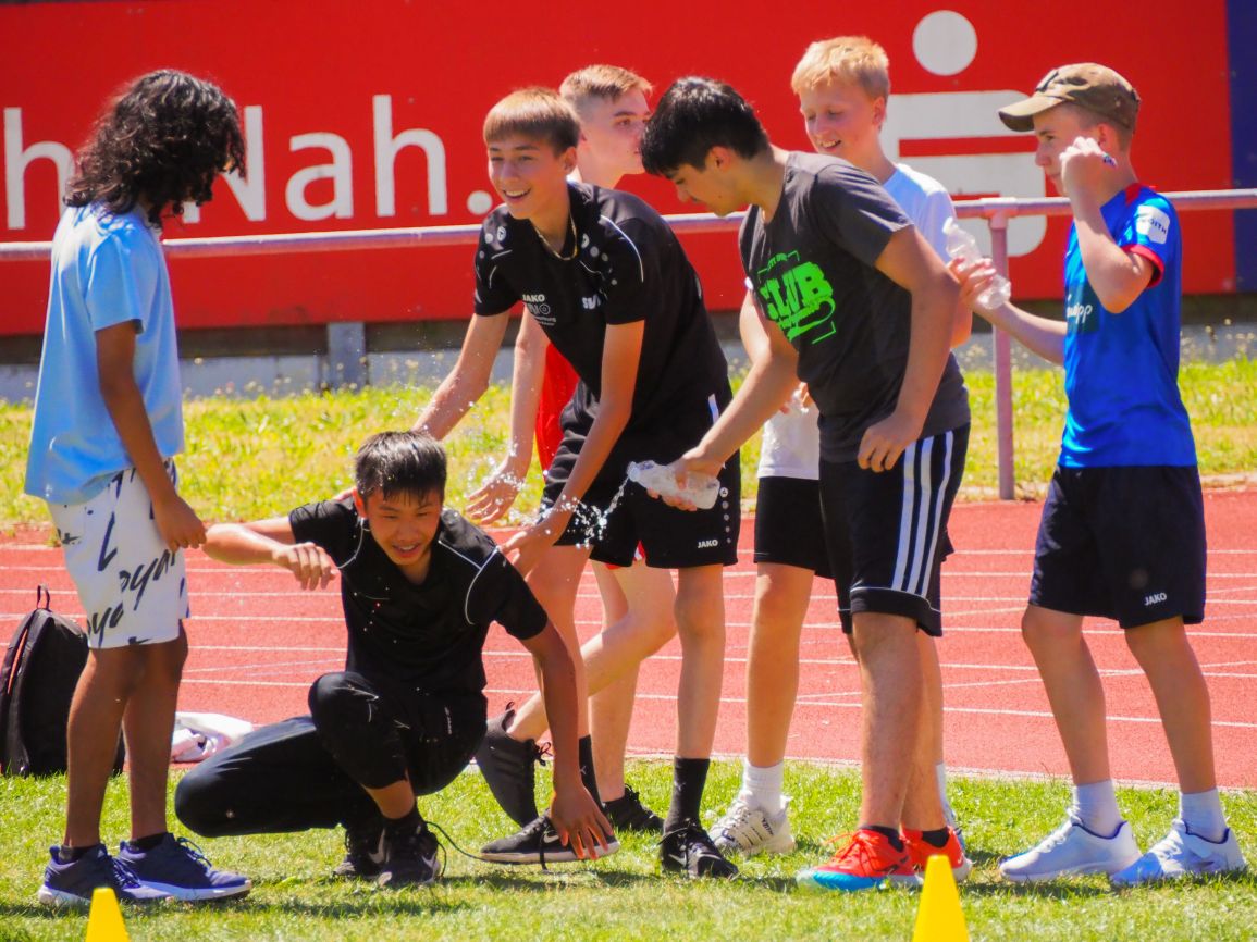 Nachdem coronabedingt die Bundesjugendspiele 2020 und 2021 ausfallen mussten, wurde die Organisation in diesem Jahr zu einer besonderen Herausforderung. Immerhin sollten an diesem 13. Juli, einem Mittwochvormittag, insgesamt elf Klassen aus den Klassenstufen 5 bis 7 in einem straffen Zeitplan die vier Disziplinen Schlagballweitwurf, 800-m- bzw. 1000-m-Lauf, Weitsprung und den Sprint über Strecken 50 oder 75 Meter absolvieren. Zum Abschluss gab es noch Staffelwettkämpfe, bei denen sich die einzelnen Klassenstufen lautstark miteinander messen konnten.