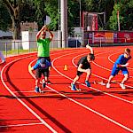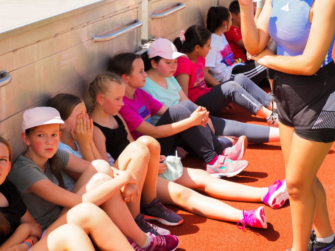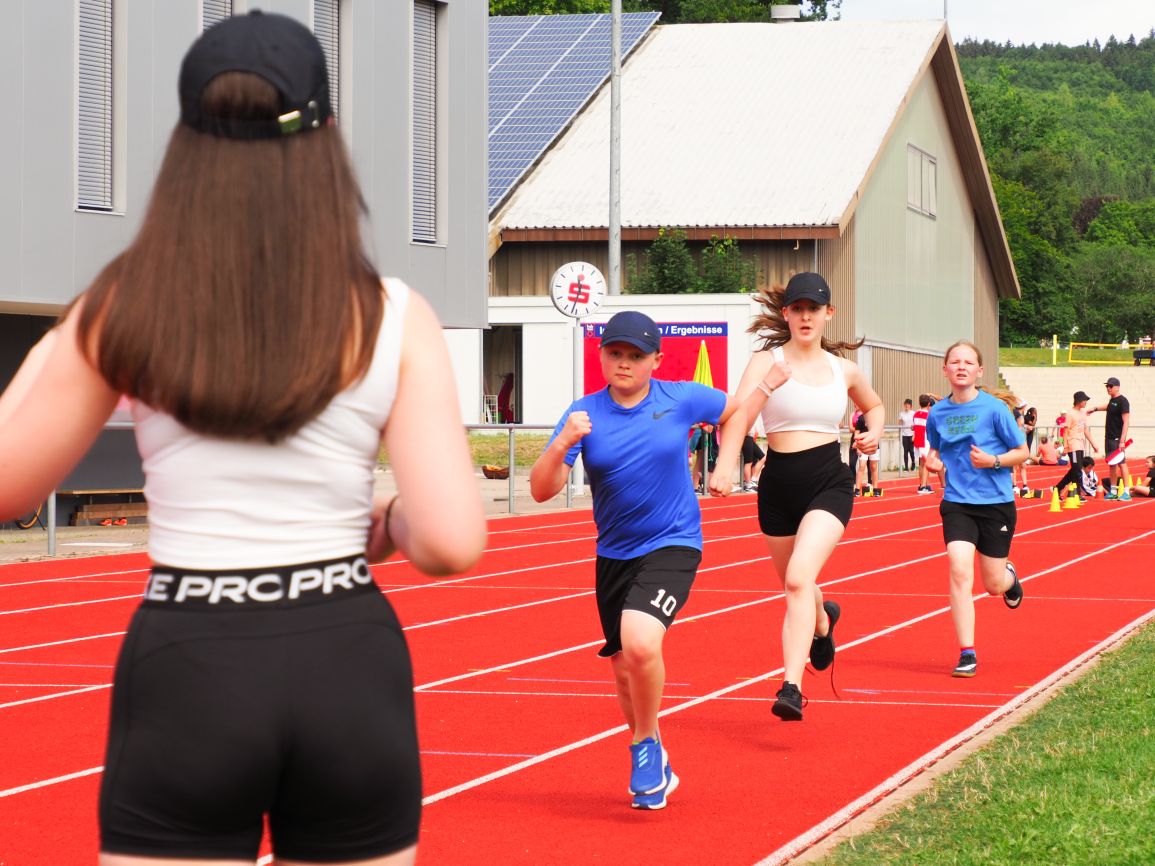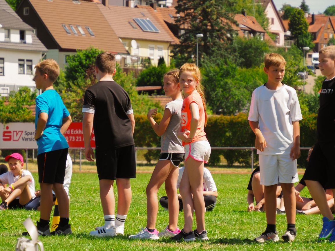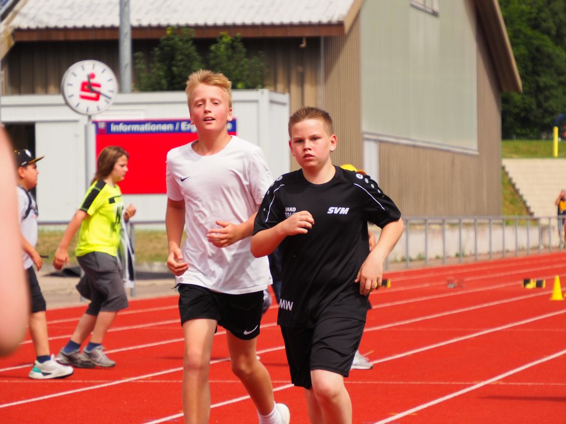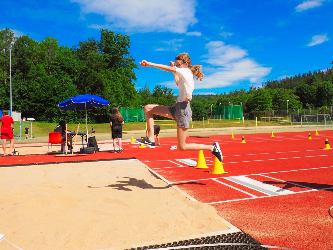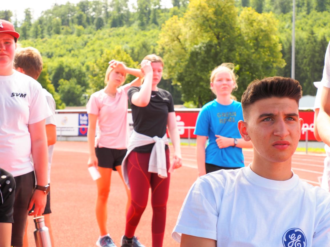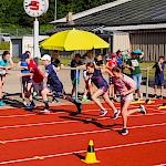 Nachdem coronabedingt die Bundesjugendspiele 2020 und 2021 ausfallen mussten, wurde die Organisation in diesem Jahr zu einer besonderen Herausforderung. Immerhin sollten an diesem 13. Juli, einem Mittwochvormittag, insgesamt elf Klassen aus den Klassenstufen 5 bis 7 in einem straffen Zeitplan die vier Disziplinen Schlagballweitwurf, 800-m- bzw. 1000-m-Lauf, Weitsprung und den Sprint über Strecken 50 oder 75 Meter absolvieren. Zum Abschluss gab es noch Staffelwettkämpfe, bei denen sich die einzelnen Klassenstufen lautstark miteinander messen konnten.