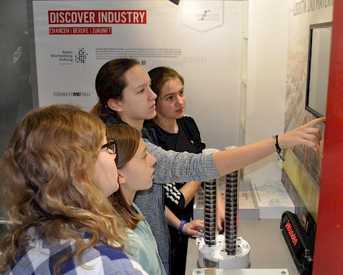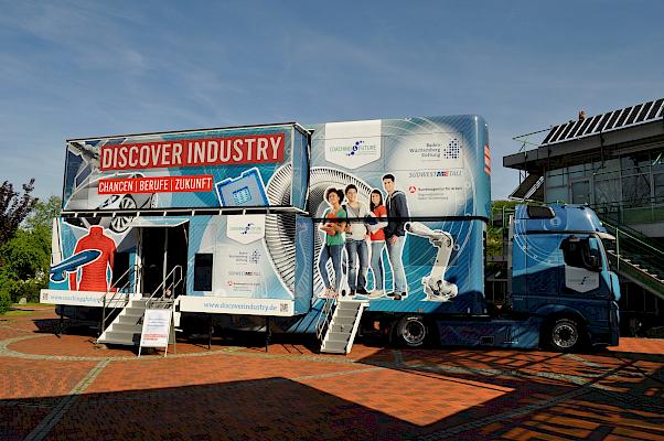 Am 23. und 24. Mai steht das mobile Informationscenter „Discover Industry Truck“ auf unserem Schulhof. Die Klassenstufen 8 und 9 durchlaufen verschiedene Stationen, in denen interaktiv neueste technologische Prozesse und Anwendungen im Bereich MINT vorgestellt werden. Es werden zudem Workshops im „Obergeschoss“ des Trucks besucht, beispielsweise mit dem Thema „Wie programmiere ich eine App“. Im Fokus steht die Präsentation der ingenieurwissenschaftlichen und technischen Berufsbilder vor dem Hintergrund der zunehmenden Digitalisierung. So leistet das Projekt einen wichtigen Beitrag zur Nachwuchsförderung und zur Berufs- und Studienorientierung im MINT-Bereich. Das Netzwerk COACHING4FUTURE stellt das Angebot zur Verfügung. Auftraggeber sind die Baden-Württemberg Stiftung gGmbH und SÜDWESTMETALL – Verband der Metall- und Elektroindustrie Baden-Württemberg e.V. Die Regionaldirektion Baden-Württemberg der Bundesagentur für Arbeit ist wichtiger Kooperationspartner.