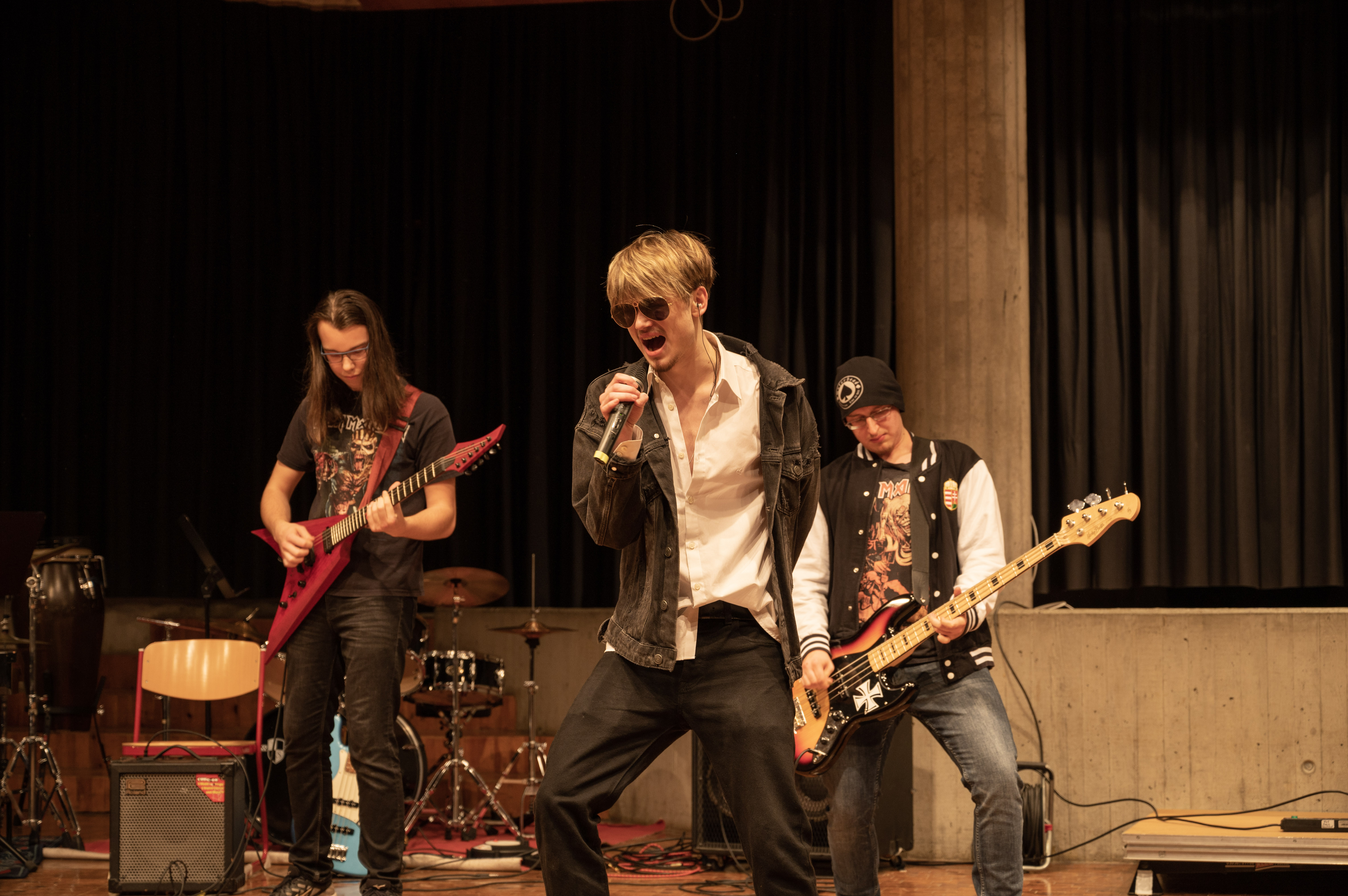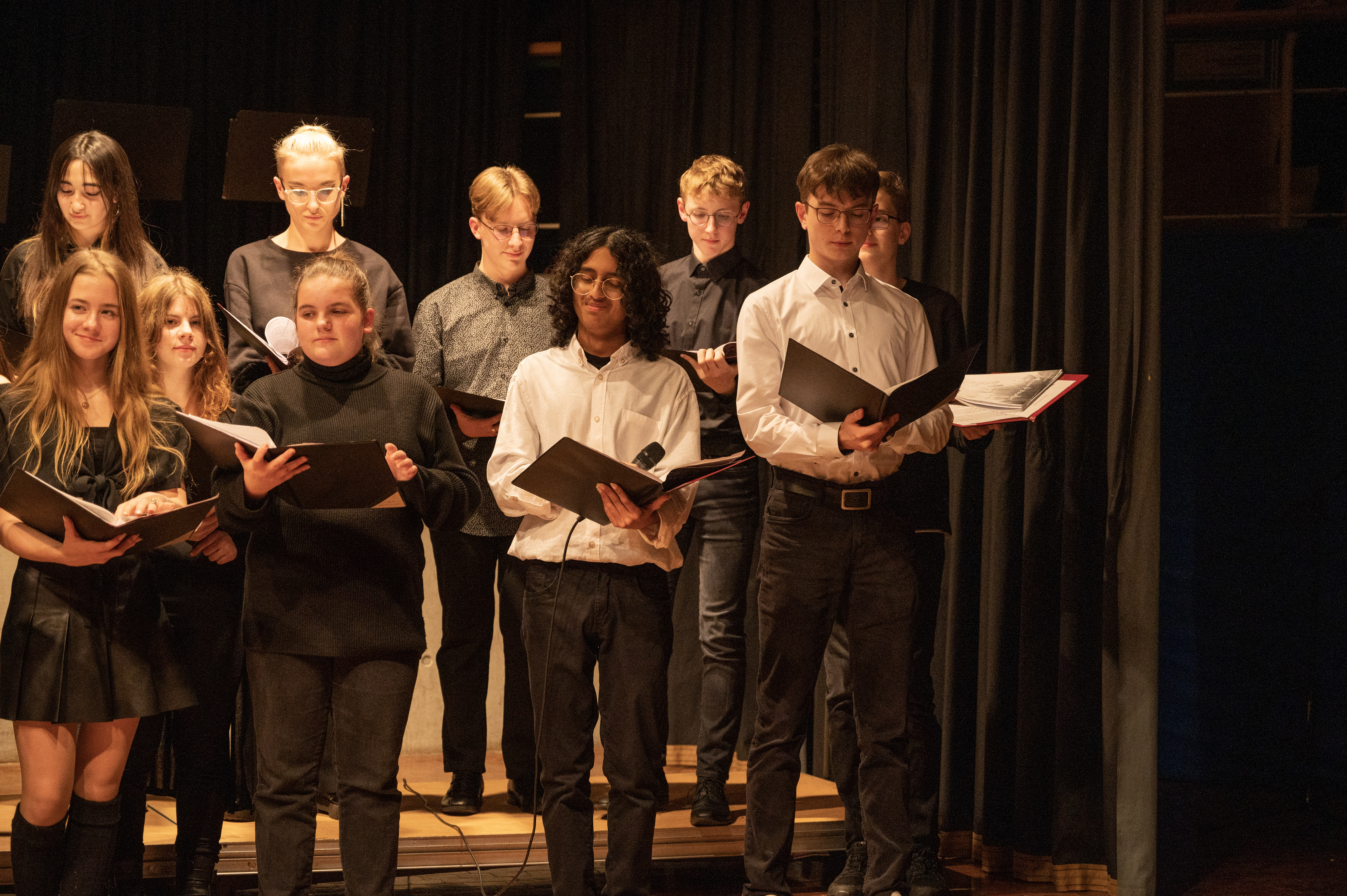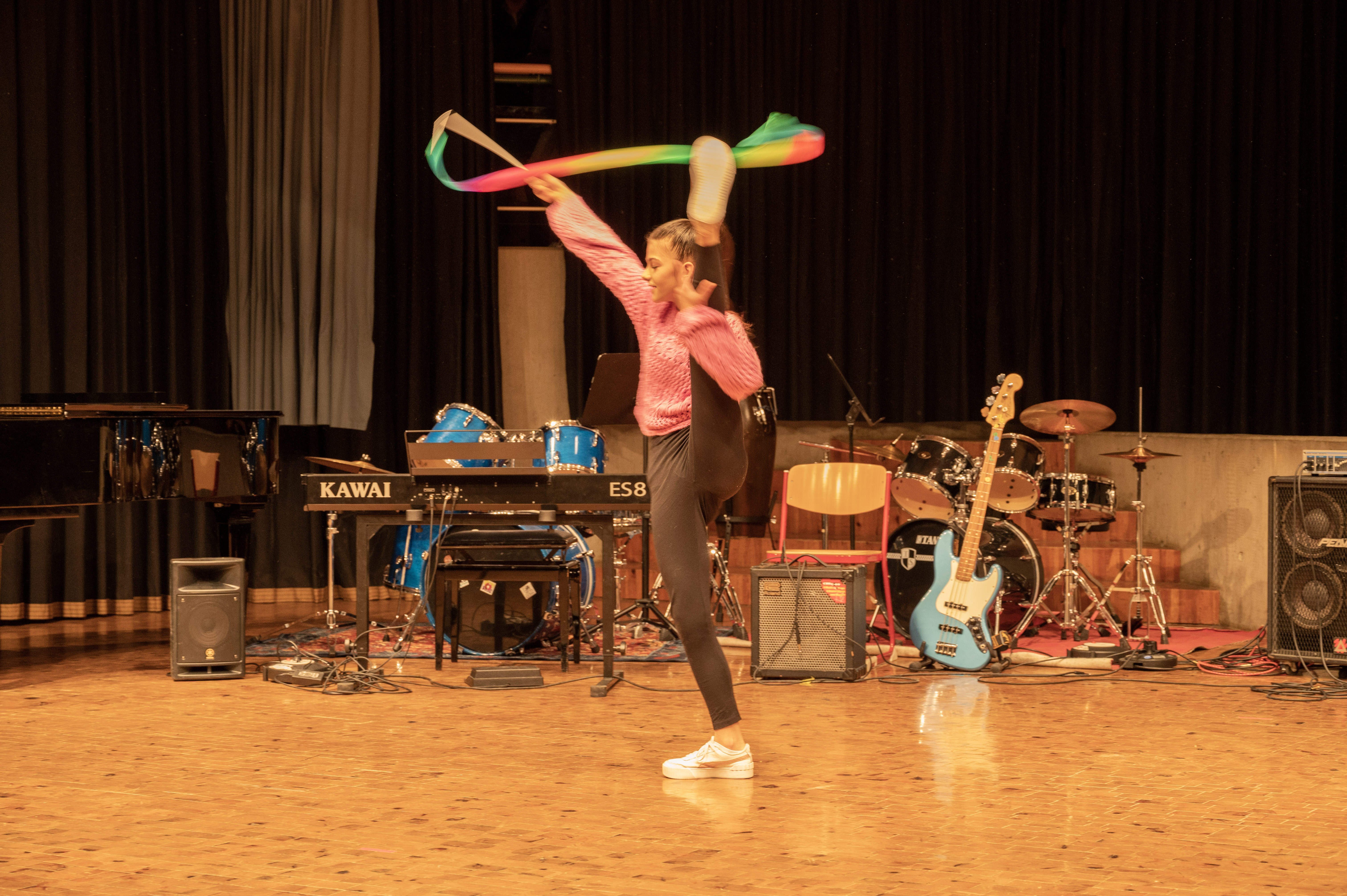 Endlich war es wieder soweit: Nach drei Jahren Pause konnte der Abend der kleinen Stücke wieder stattfinden, ein absolutes Highlight im werkgymnasialen Terminkalender. Das Besondere: Jeder, der möchte und sich traut, kann sein Können unter Beweis stellen und die mit Eltern und Freunden voll besetzte Kulturmulde in Staunen versetzen. Daraus ergibt sich eine ungeheure Vielfalt an Darbietungen, angefangen von Kindern aus der fünften Klasse, die ein selbst ausgedachtes kleines Theaterspiel vorführten, bis hin zu ehemaligen Schülern, die die Kulturmulde mit selbst geschriebenen Songs rockten. Klar durften auch die Routiniers der Jazzband nicht fehlen. Beeindruckend waren aber vor allem auch die vielen jungen Künstlerinnen und Künstler, die allein oder zu zweit ihr musikalisches oder sportliches Können unter Beweis stellten. Geradezu atemberaubend war die Vorführung an den Vertikaltüchern, bei der einem schon einmal der Atem stockte. Für besonders weihnachtliche Stimmung sorgten die beiden 10.-Klässlerinnen, die mit ihren LED-Flügeln das Publikum begeisterten, und die Darbietungen des Kleinen und Großen Chors, die den Weihnachtsgedanken mit den Liedern „Leuchte mein Licht“ und „Ring Christmas Bells“ nachhaltig aufleben und es einem warm ums Herz werden ließen. Besonders gelungen war auch der Abschluss, als sich ohne Ausnahme alle Akteure auf der Bühne versammelten und das begeisterte Publikum mit der gemeinsamen Darbietung „Rock My Soul“ in den Abend entließen.
