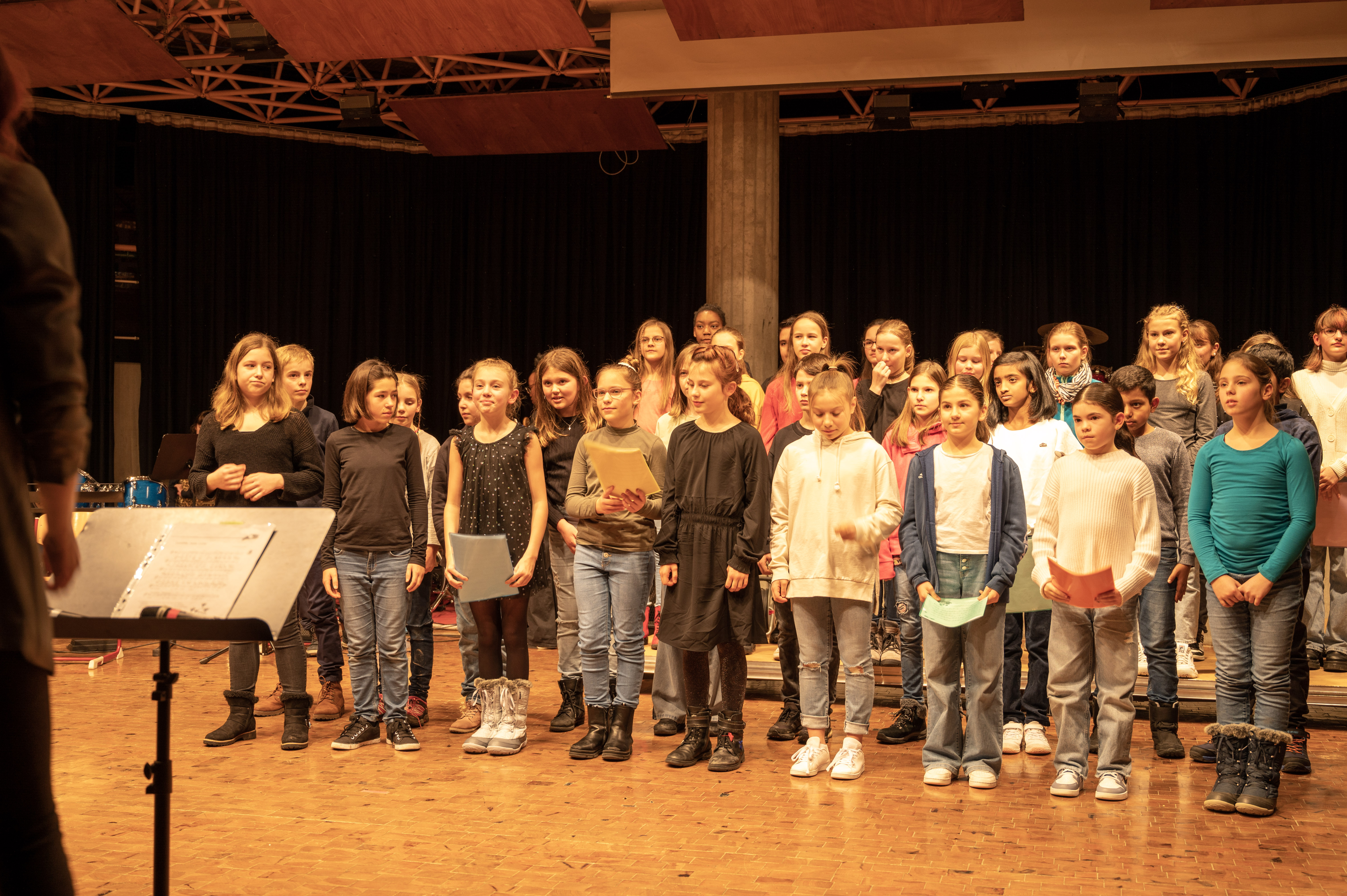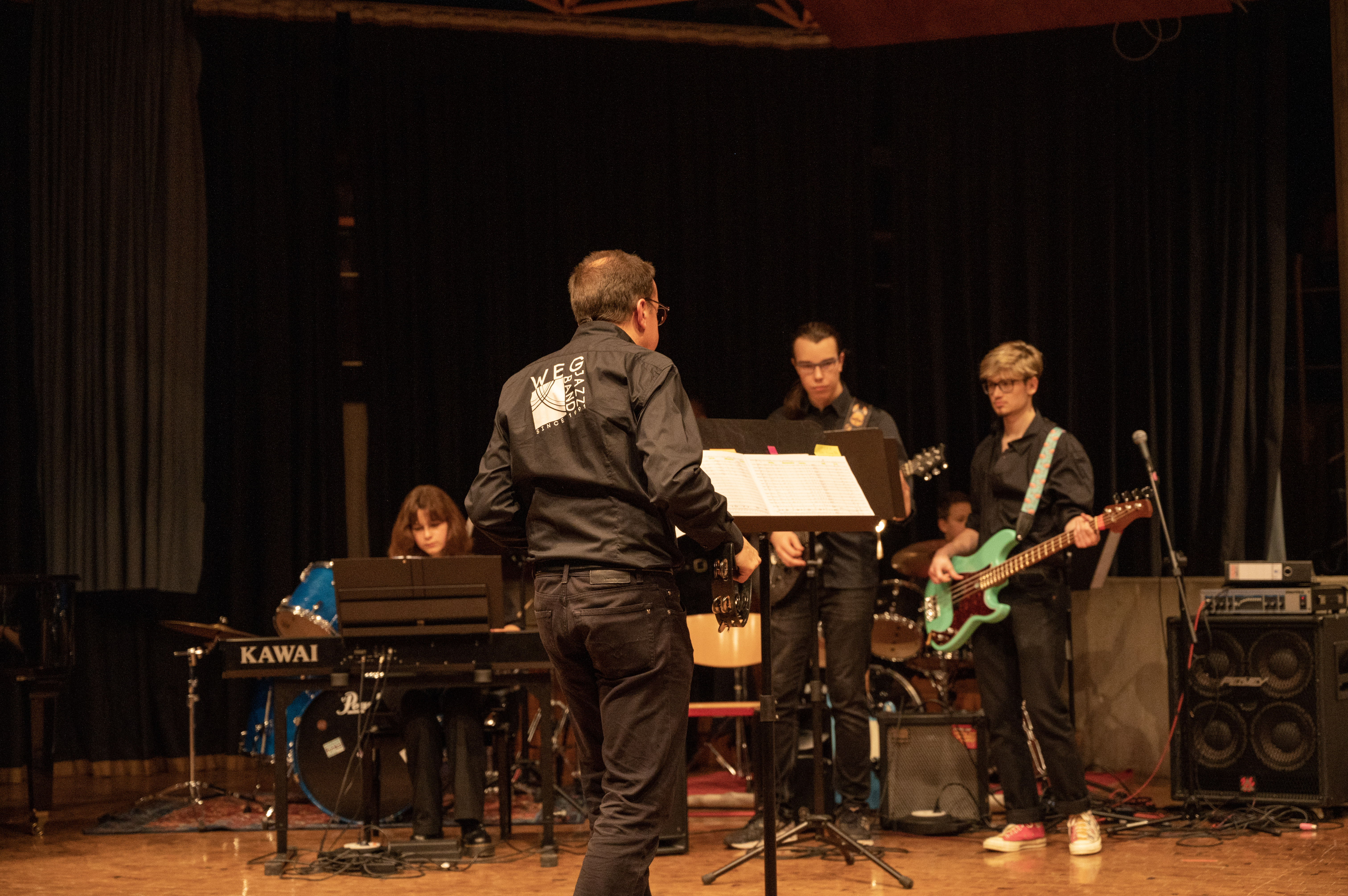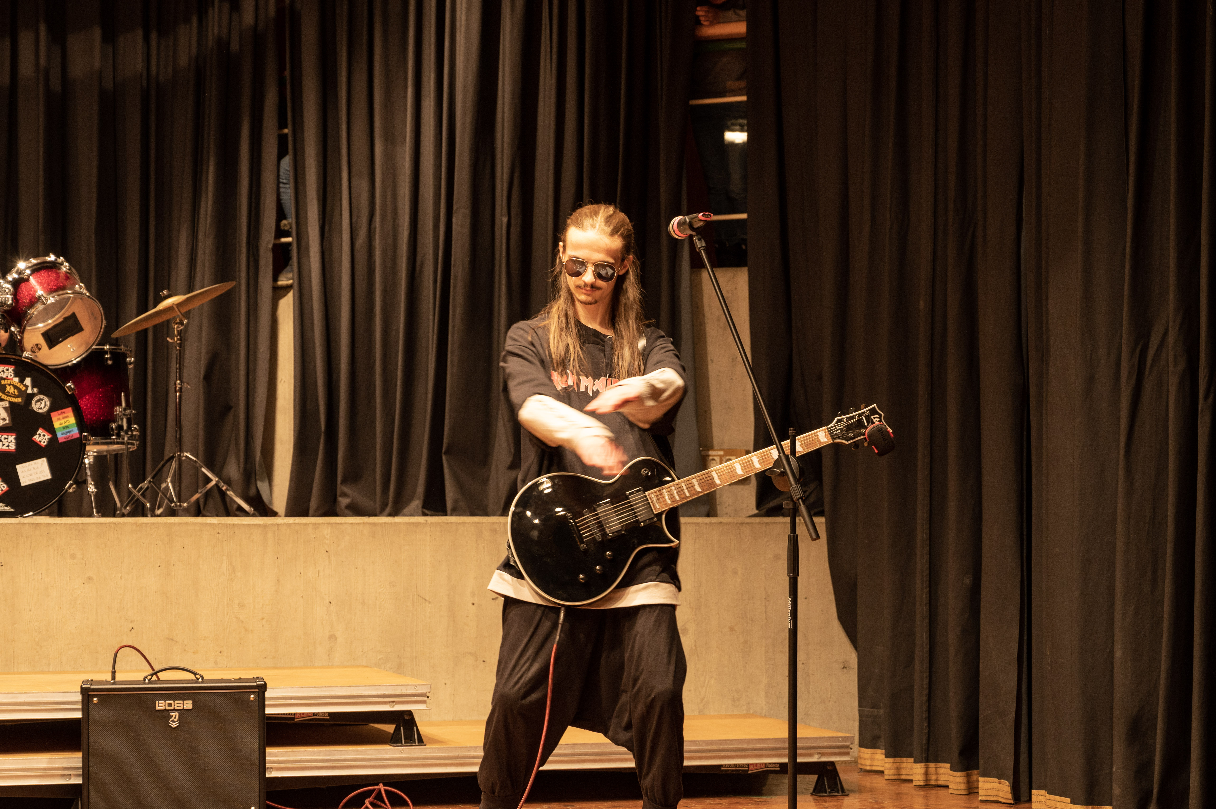 Endlich war es wieder soweit: Nach drei Jahren Pause konnte der Abend der kleinen Stücke wieder stattfinden, ein absolutes Highlight im werkgymnasialen Terminkalender. Das Besondere: Jeder, der möchte und sich traut, kann sein Können unter Beweis stellen und die mit Eltern und Freunden voll besetzte Kulturmulde in Staunen versetzen. Daraus ergibt sich eine ungeheure Vielfalt an Darbietungen, angefangen von Kindern aus der fünften Klasse, die ein selbst ausgedachtes kleines Theaterspiel vorführten, bis hin zu ehemaligen Schülern, die die Kulturmulde mit selbst geschriebenen Songs rockten. Klar durften auch die Routiniers der Jazzband nicht fehlen. Beeindruckend waren aber vor allem auch die vielen jungen Künstlerinnen und Künstler, die allein oder zu zweit ihr musikalisches oder sportliches Können unter Beweis stellten. Geradezu atemberaubend war die Vorführung an den Vertikaltüchern, bei der einem schon einmal der Atem stockte. Für besonders weihnachtliche Stimmung sorgten die beiden 10.-Klässlerinnen, die mit ihren LED-Flügeln das Publikum begeisterten, und die Darbietungen des Kleinen und Großen Chors, die den Weihnachtsgedanken mit den Liedern „Leuchte mein Licht“ und „Ring Christmas Bells“ nachhaltig aufleben und es einem warm ums Herz werden ließen. Besonders gelungen war auch der Abschluss, als sich ohne Ausnahme alle Akteure auf der Bühne versammelten und das begeisterte Publikum mit der gemeinsamen Darbietung „Rock My Soul“ in den Abend entließen.