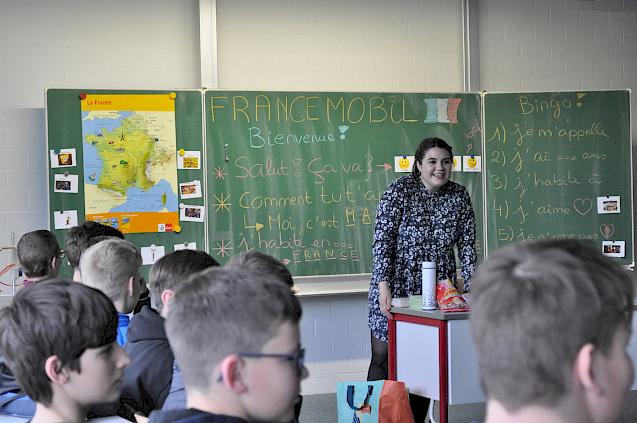 Bereits zum fünften Mal machte das französische "Kulturinstitut auf Rädern", das Francemobil des Institut français Stuttgart, am Werkgymnasium Station. Seine Fahrerin, die temperamentvolle Animateurin Margot Donadio, brachte südfranzösisches Flair in die Klassenstufen 7 und 8 und zeigte den Schülern, wie es ist, bei einer Muttersprachlerin einmal ganz anderen Unterricht zu erleben. Für einen abwechslungsreichen Vormittag war gesorgt und die Französischkollegen unserer Schule freuen sich darauf, bald wieder einmal das Francemobil hier zu Gast zu haben.