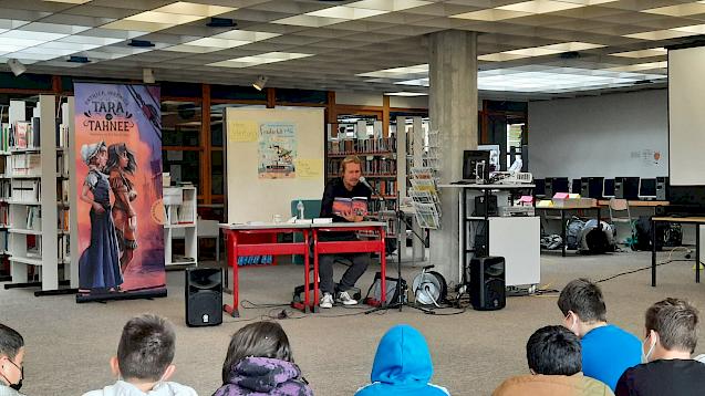 Am Dienstag, den 26.Oktober, war der Kinder- und Jugendbuchautor Patrick Hertweck am Werkgymnasium. Zu Beginn der Autorenlesung hat er uns von seinen Büchern erzählt und wie er auf die Geschichten kam. Insgesamt hat Herr Hertweck vier Bücher geschrieben, von denen aber nur drei veröffentlicht sind. Uns hat er das Buch „Tara und Tahnee - Verloren im Tal des Goldes“ vorgestellt. Die anderen zwei Bücher heißen „Maggie und die Stadt der Diebe“ und „Der letzte Rabe des Empire“.