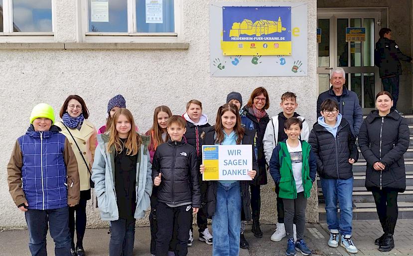 Die Idee, den Verein „Heidenheim-fuer-Ukraine“ durch eine Sammelaktion von Kerzen, haltbaren Nahrungsmitteln und Hygieneartikeln zu unterstützen, kam spontan im Reliunterricht auf und voller Tatendrang machten sich die Schülerinnen und Schüler der 6a und 6b daran, durch Plakate, die sie im Schulhaus aufhängten und einen Infobrief, den sie in ihrer Jahrgangsstufe verteilten, um diese Spenden zu bitten.