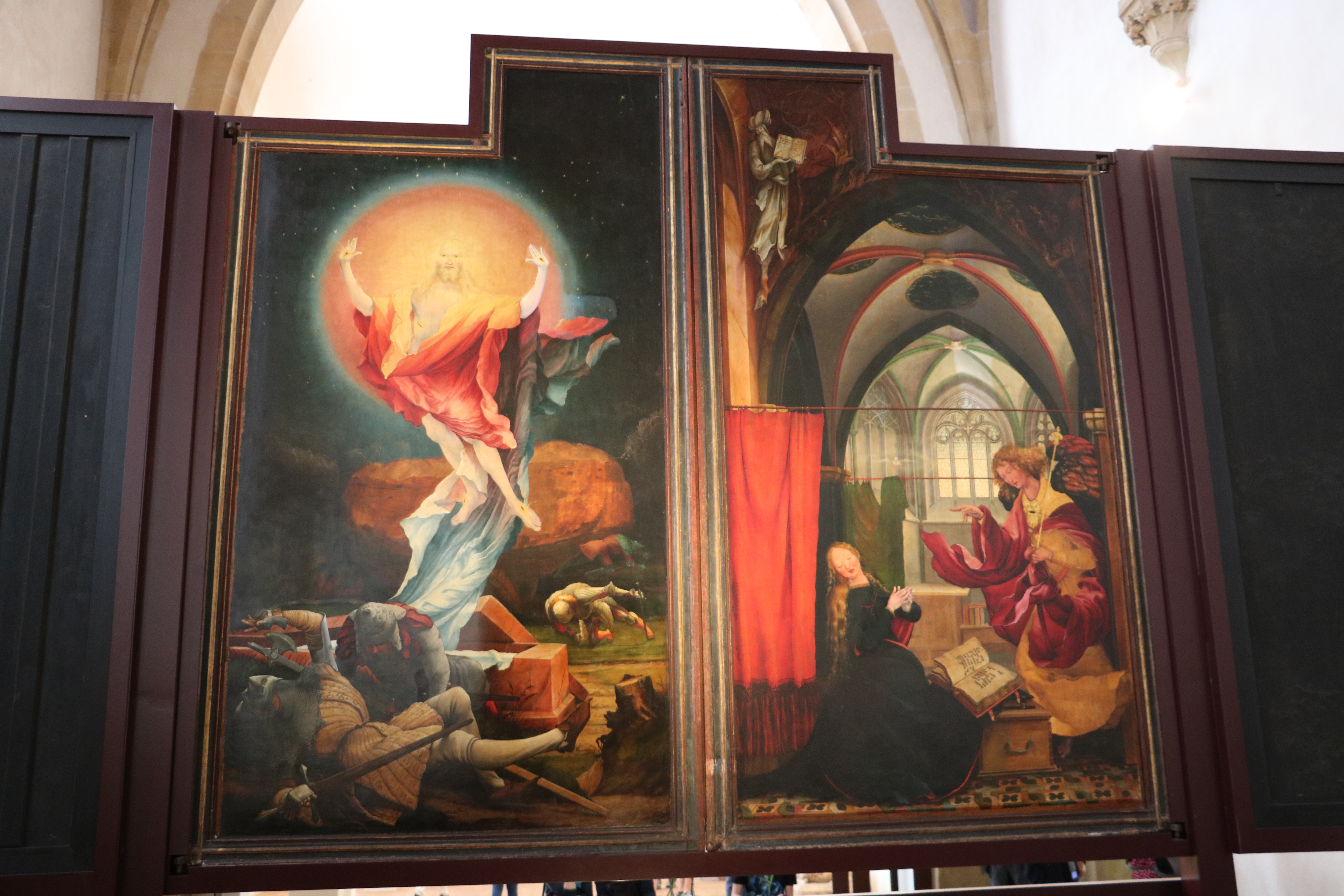 Am darauffolgenden Tag stand Colmar auf dem Programm. Dort besichtigten wir zuerst das Musée Unterlinden mit dem Isenheimer Altar. Neu restauriert beeindruckten uns bei diesem berühmten Wandelaltar von Matthias Grünewald die kräftigen Farben und Motive. Herr Kocsis schickte uns anschließend mit einem Stadtquiz auf Besichtigungstour durch die Altstadt Colmars. Mittags begeisterte die WeG-Jazzband bei bestem Wetter die Zuschauer mit einem Open-Air Konzert im Musikpavillon der Stadt.