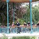 Am Samstag fuhren wir schon früh nach Rust in den Europapark. Dort hatten wir freien Eintritt und konnten sämtliche Fahrgeschäfte genießen und ausprobieren: ein Riesenspaß! Zum geplanten Auftritt auf der italienischen Freilichtbühne kam es leider nicht, denn der Regen machte uns einen gewaltigen Strich durch die Rechnung.