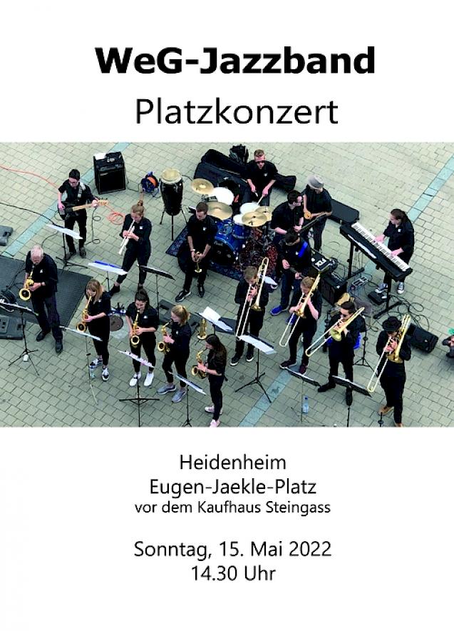 Immer wieder neue Wege geht die "WeG-Jazzband": Im Mai 2022 führt das Ensemble die Probentage im JUFA Sporthotel Wangen im Allgäu durch und bereitet sich dort auf eine Platzkonzert Tournee vor. So werden die Schülerinnen und Schüler mit ihrem Leiter Joachim Kocsis am Freitag, 13. Mai 2022, um 10.00 Uhr auf dem Postplatz in Wangen i. A. vor dem historischen Rathaus und um 16.00 Uhr auf der Seepromenade am Seehafen Lindau vor idyllischem Bodenseepanorama auftreten. Nach dem Transfer und einer Übernachtung in der Graf-Zeppelin Jugendherberge Friedrichshafen ist das Schüerensemble am Samstag eingeladen, um 11.00 Uhr auf dem dortigen Schlemmermarkt aufzutreten. Der Auftritt am Sonntag, 15. Mai 2022, um 14.30 Uhr auf dem Eugen-Jaekle-Platz vor dem Modehaus Steingass bildet quasi als Heimspiel den Abschluss der Tournee. Als Sängerin wirkt in bewährter Manier Ricarda Rickert mit, die das abwechslungsreiche Programm der Jazzband ergänzt. So darf man auch dieses Mal wieder gespannt darauf sein, was die Band musikalisch zu bieten hat.