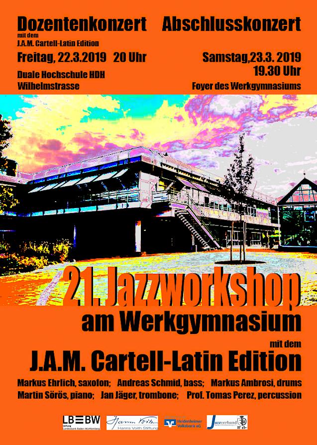 Am Freitagabend, 22. März 2019, werden die Dozenten in der Cafeteria der Berufsakademie (Wilhelmstraße) um 20.00 Uhr ein Dozentenkonzert veranstalten und dabei ihr Können zeigen. Die Ergebnisse der verschiedenen Workshops werden dann am Samstagabend um 19.30 Uhr im Foyer des Werkgymnasiums als „Abschlusskonzert“ dargeboten.