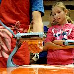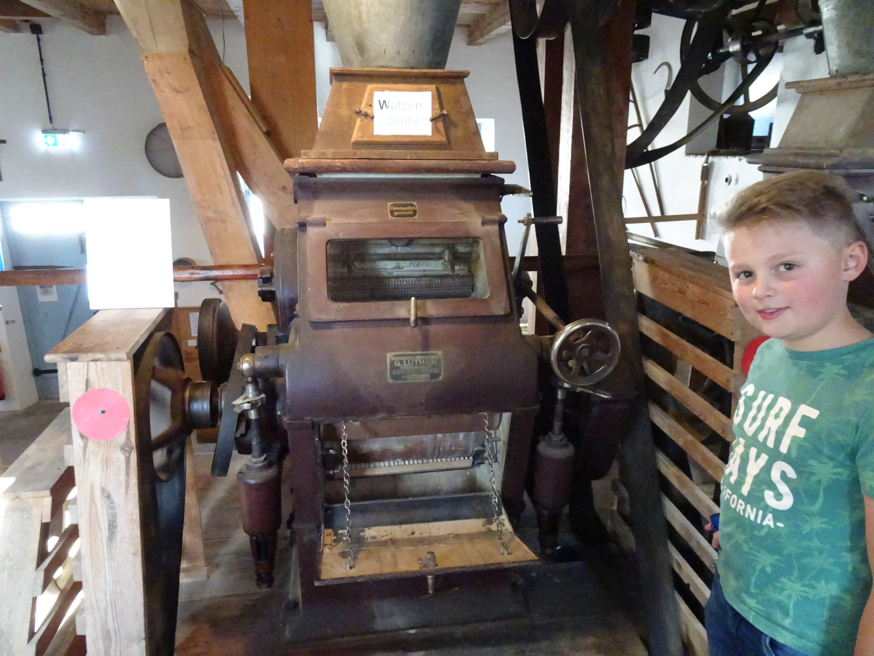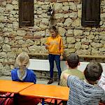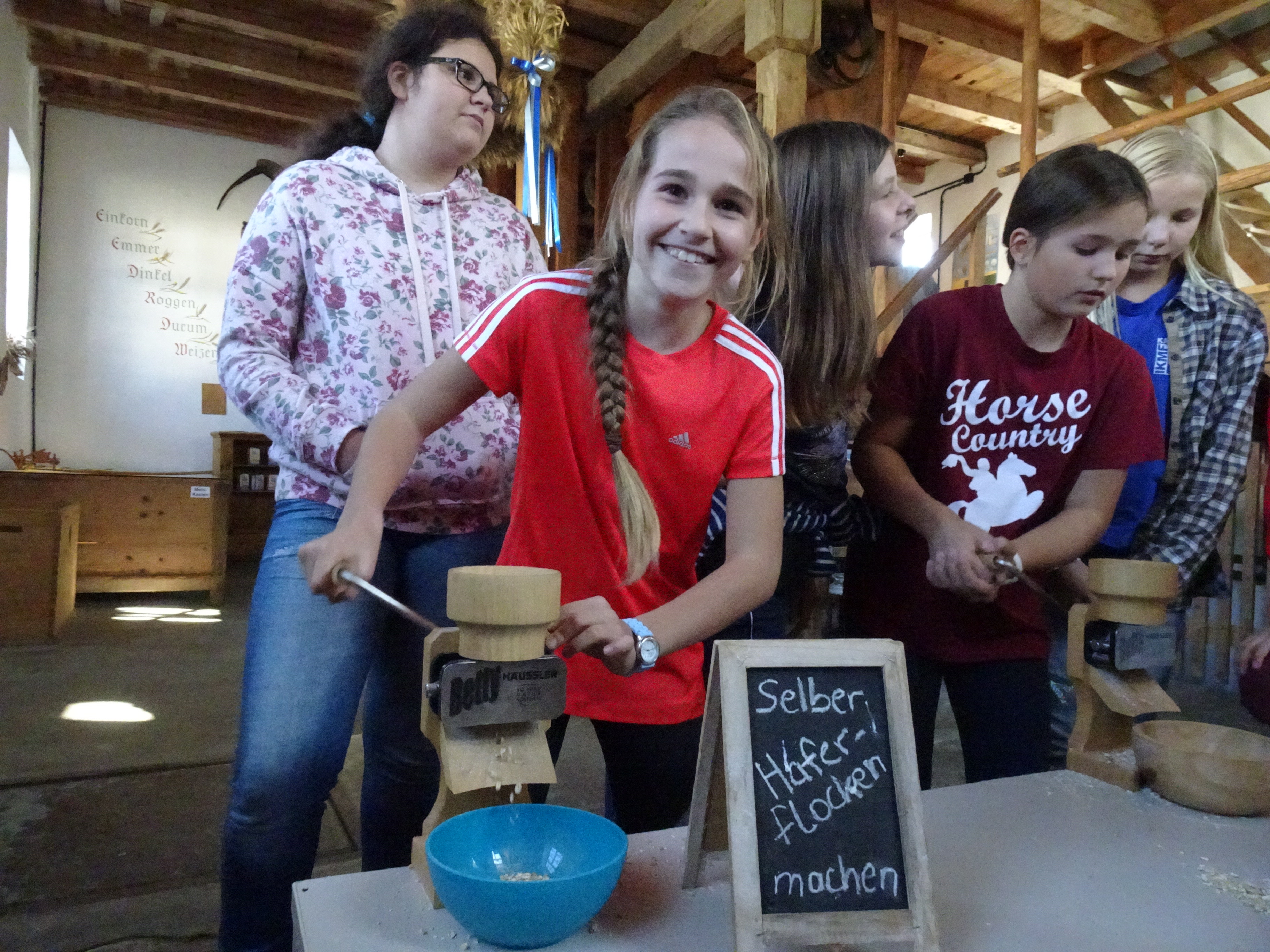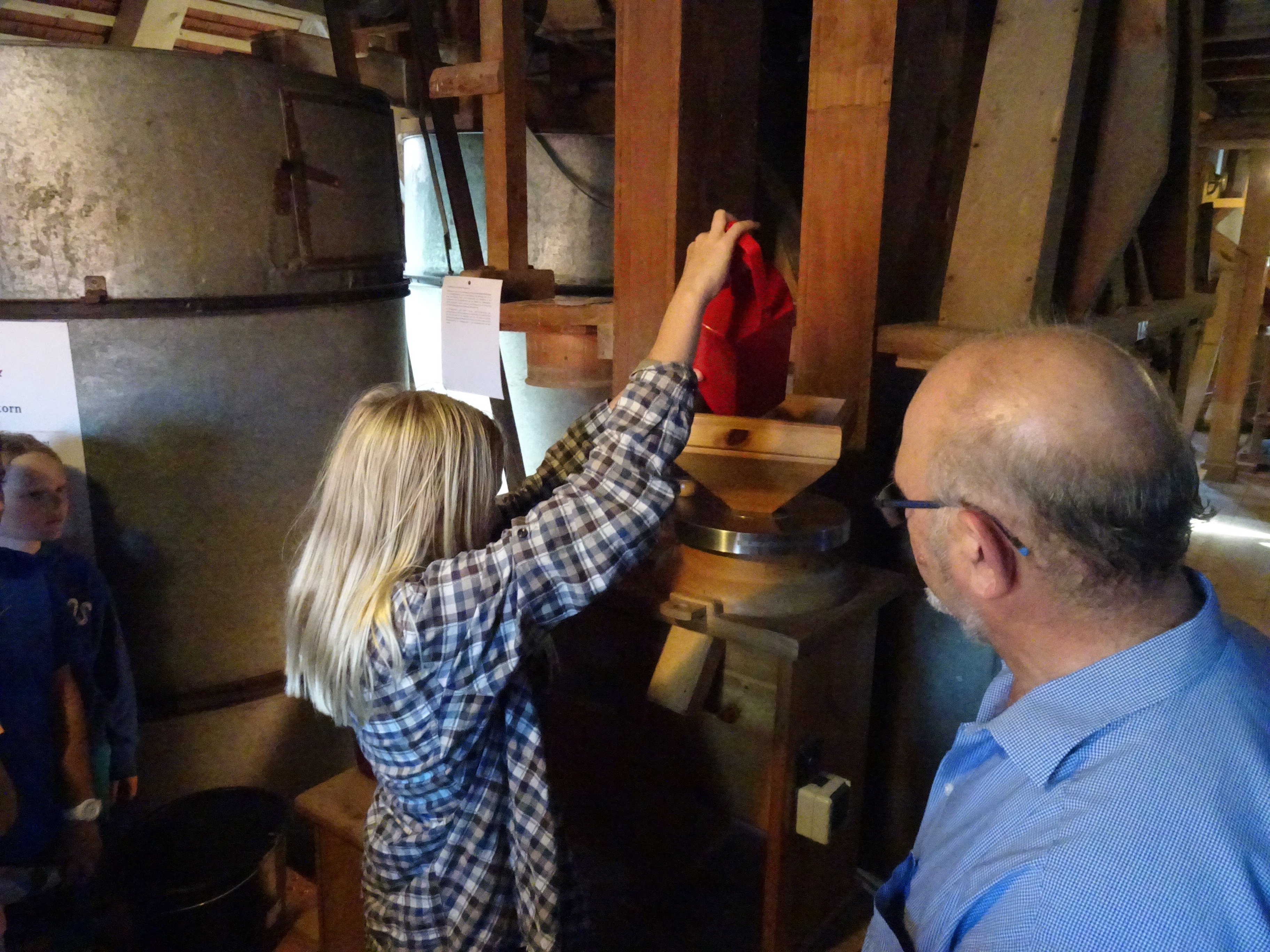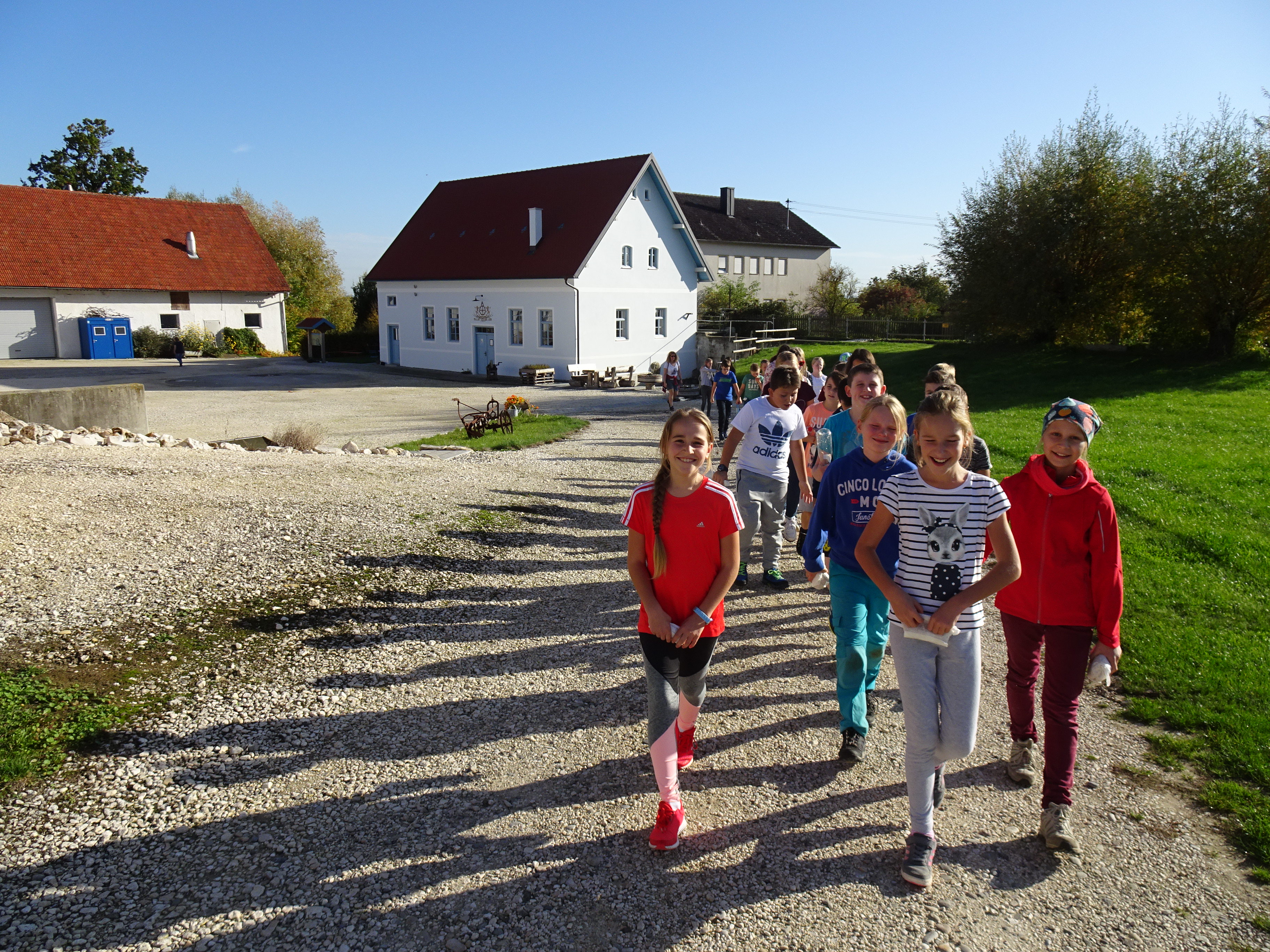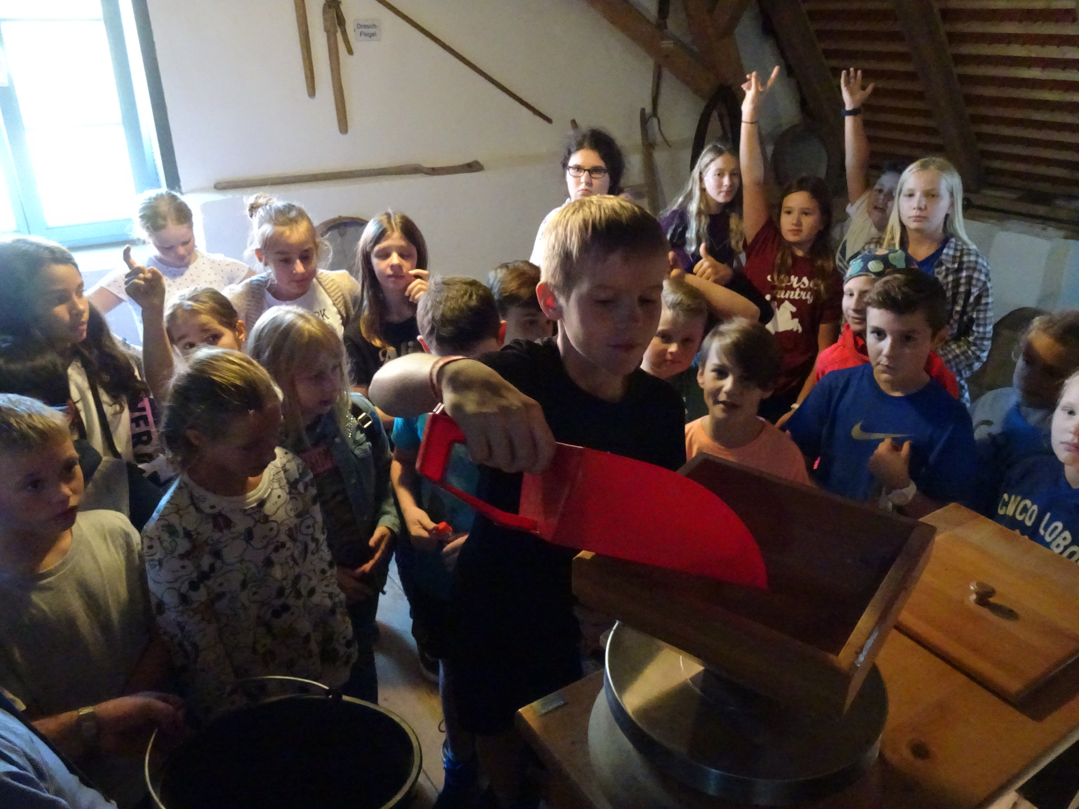 Nach der Ankunft in Mödingen wurde man durch eine Hofführung mit den örtlichen Begebenheiten vertraut gemacht und die Zimmer wurden bezogen. Dann ging es schon los mit dem ersten informativen Programmpunkt, der Mühlenführung. Hier erfuhren die Kinder so einiges über das Müllerhandwerk und durften auch selbst mit anfassen oder ausprobieren. Zur Belohnung gab es ein Bauernhofeis und eine Fahrt mit dem Traktor (s. Foto). Nach einem Fußmarsch und dem Abendessen, wurde gespielt und zum Abschluss eine Nachtwanderung veranstaltet.