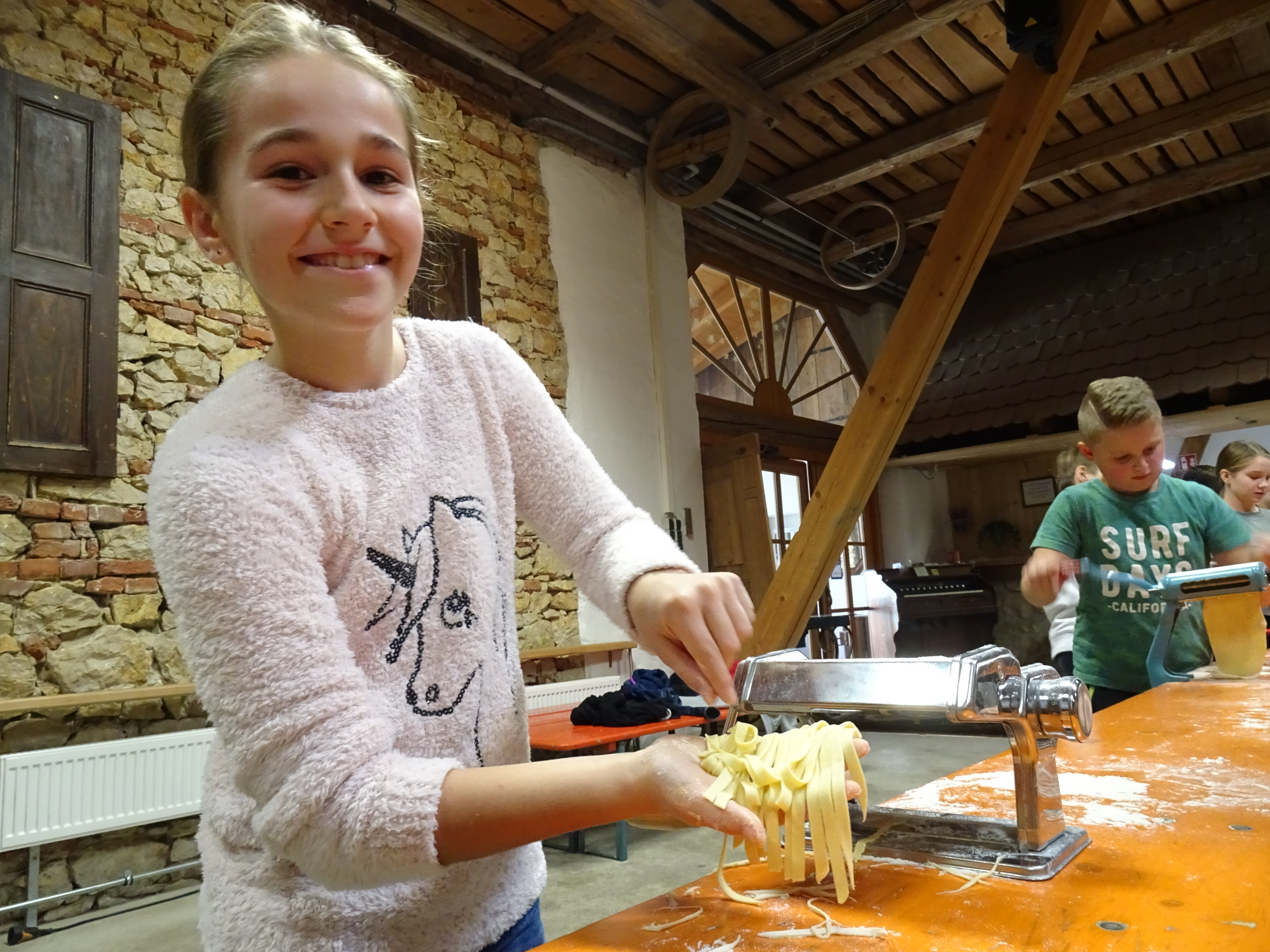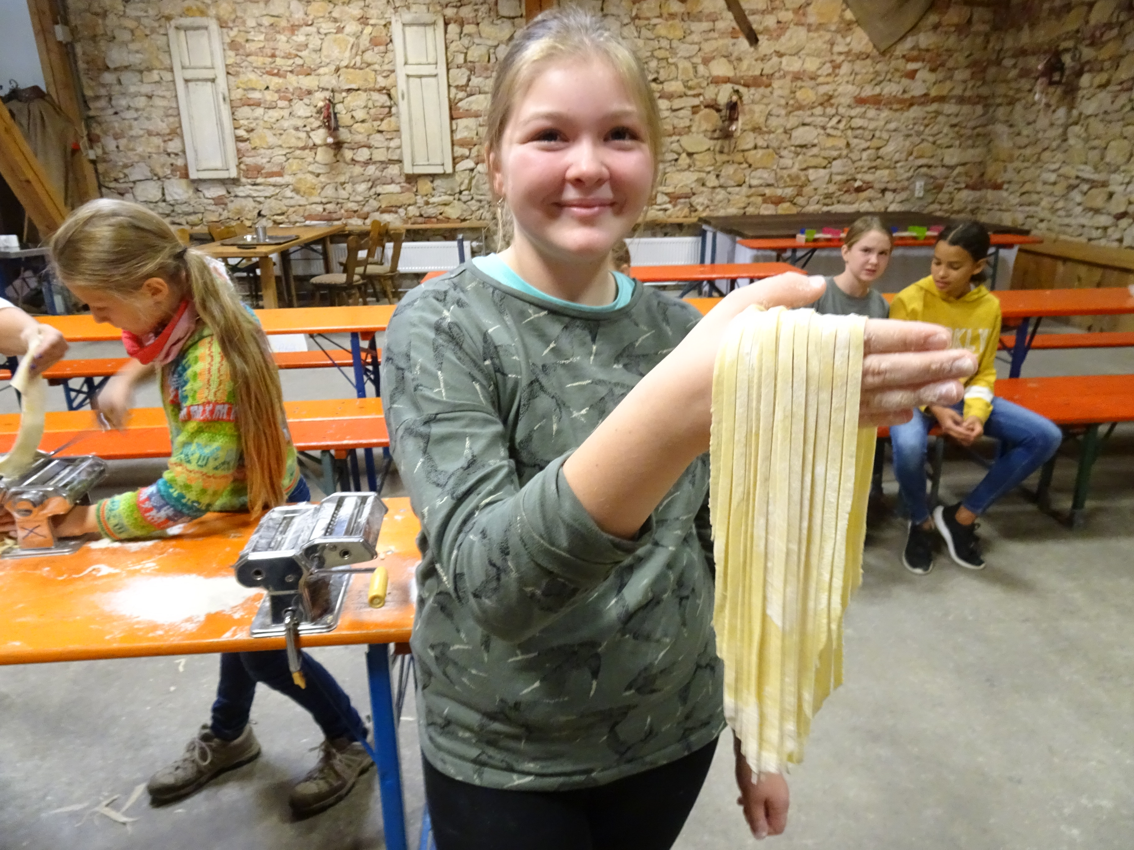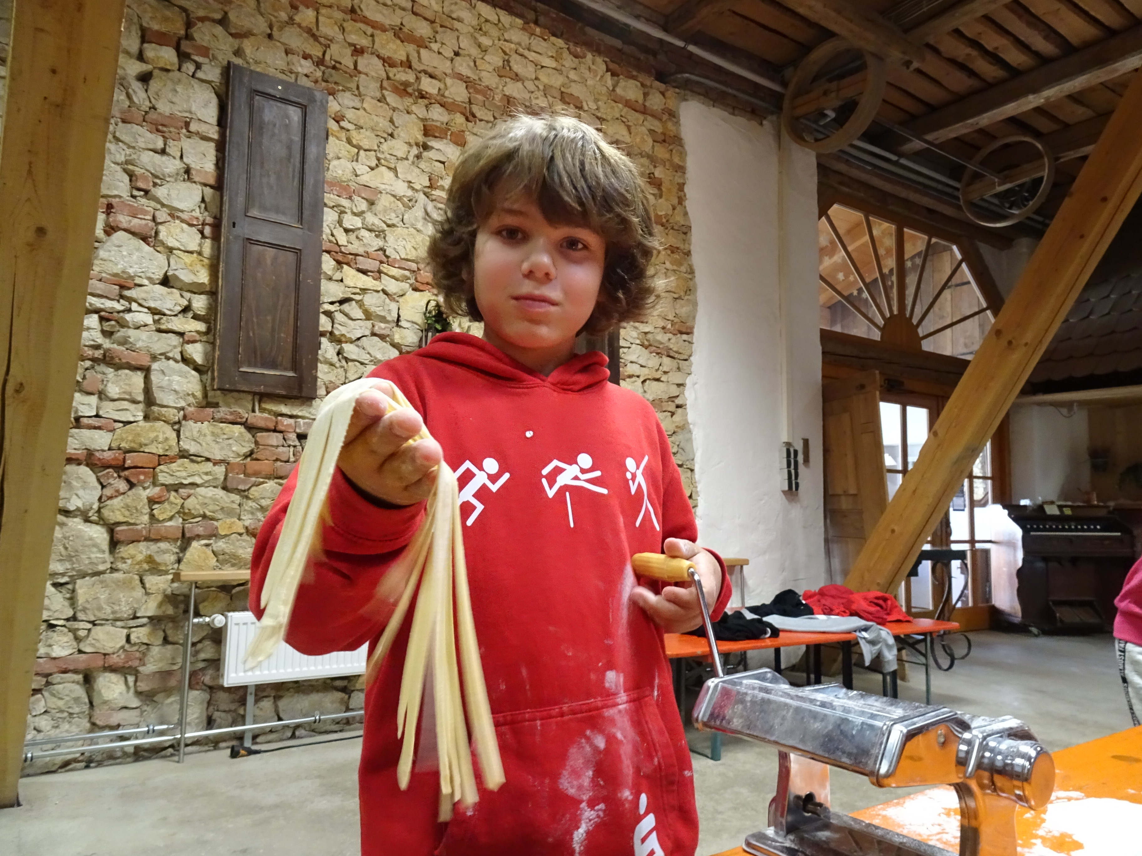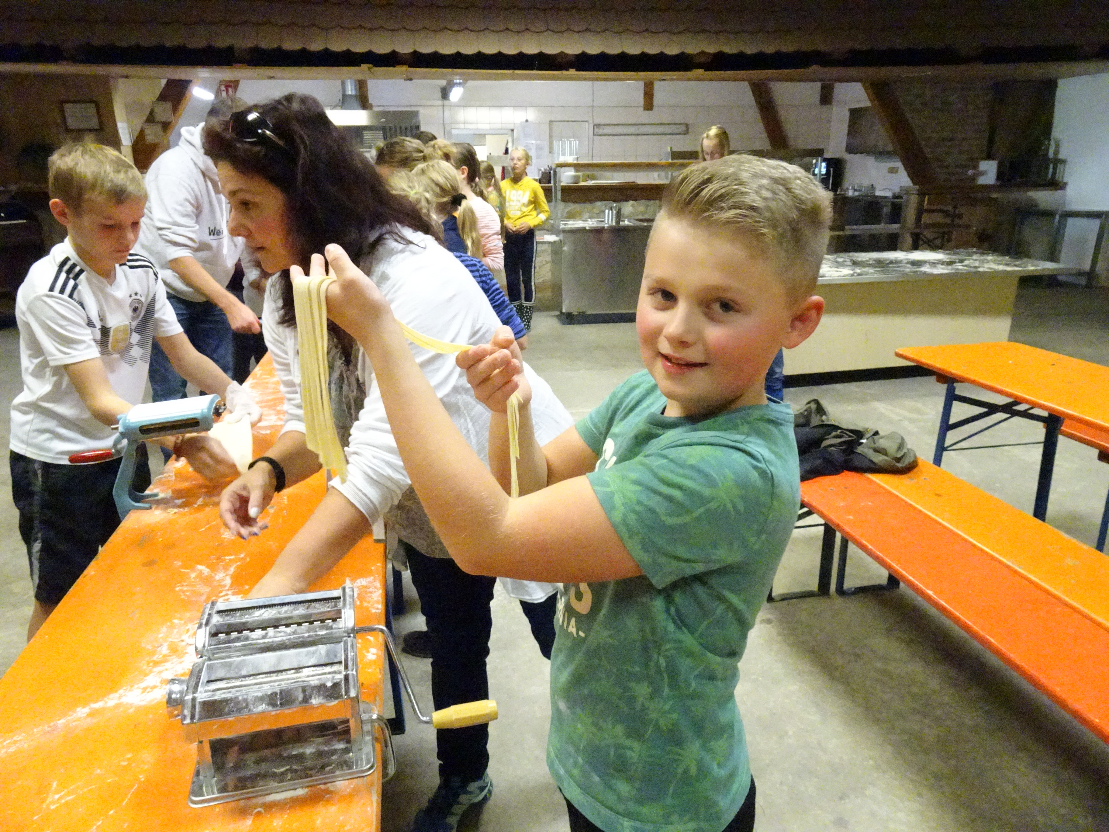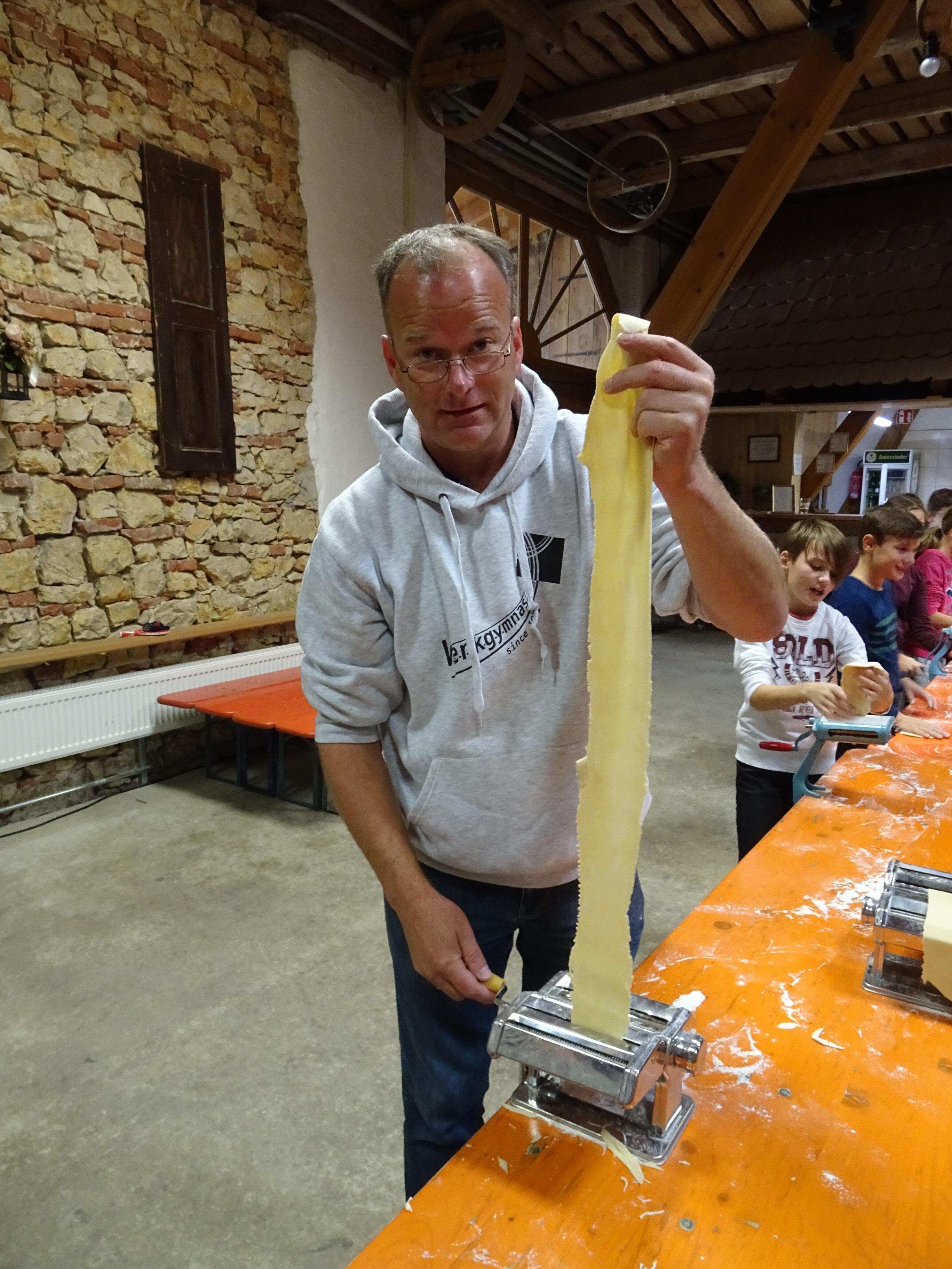Am zweiten Tag ging alles "Rund ums Ei". Hier durften sich alle als Nudelmacher betätigen und selbstgemachte Teigwaren produzieren. Das restliche Programm wurde von den Sozialpädagogen um Frau Pfitzner gestaltet, wo die Klassengemeinschaft im Vordergrund stand und die Wahl zum Klassensprecher vorbereitet wurde.