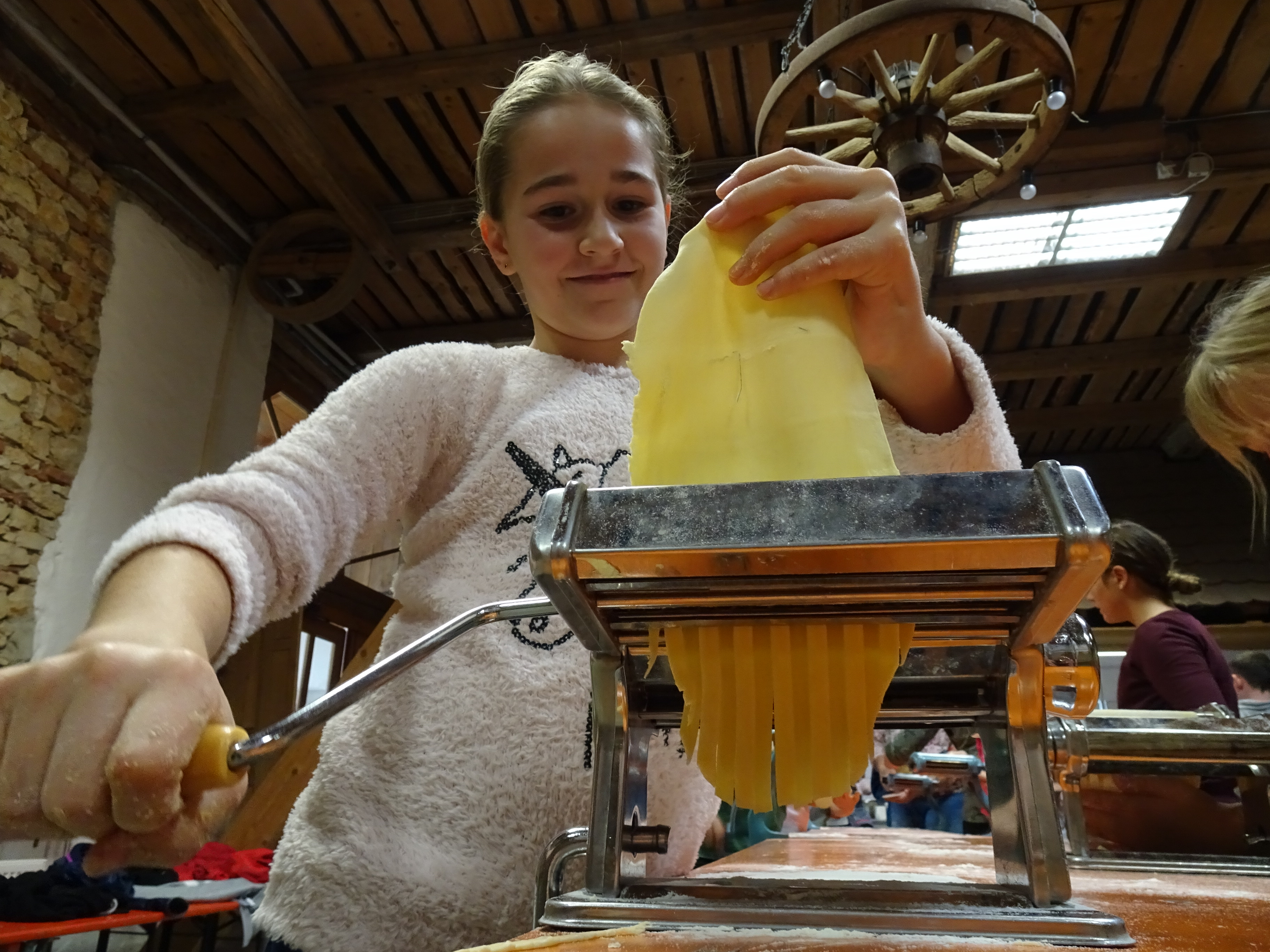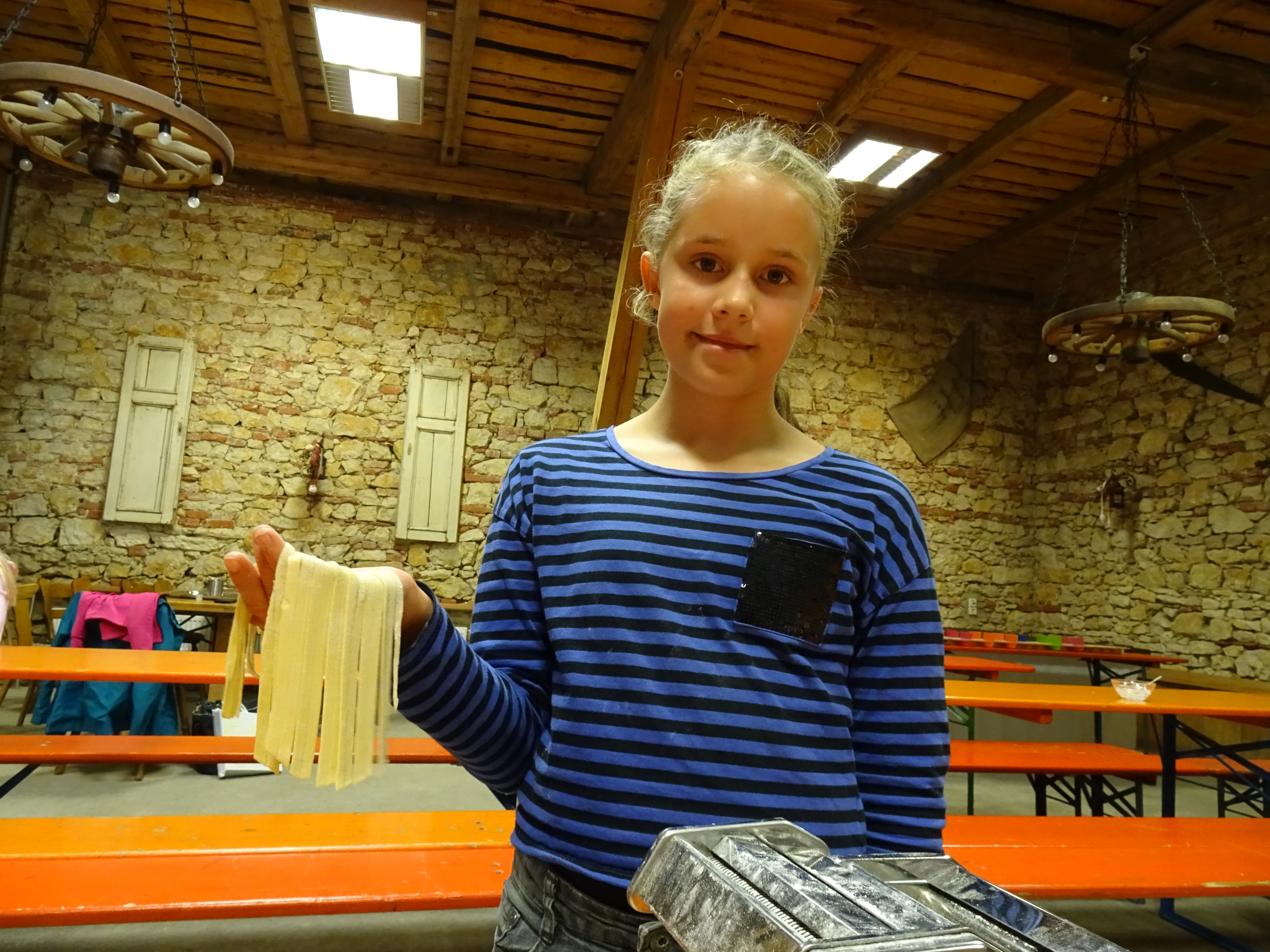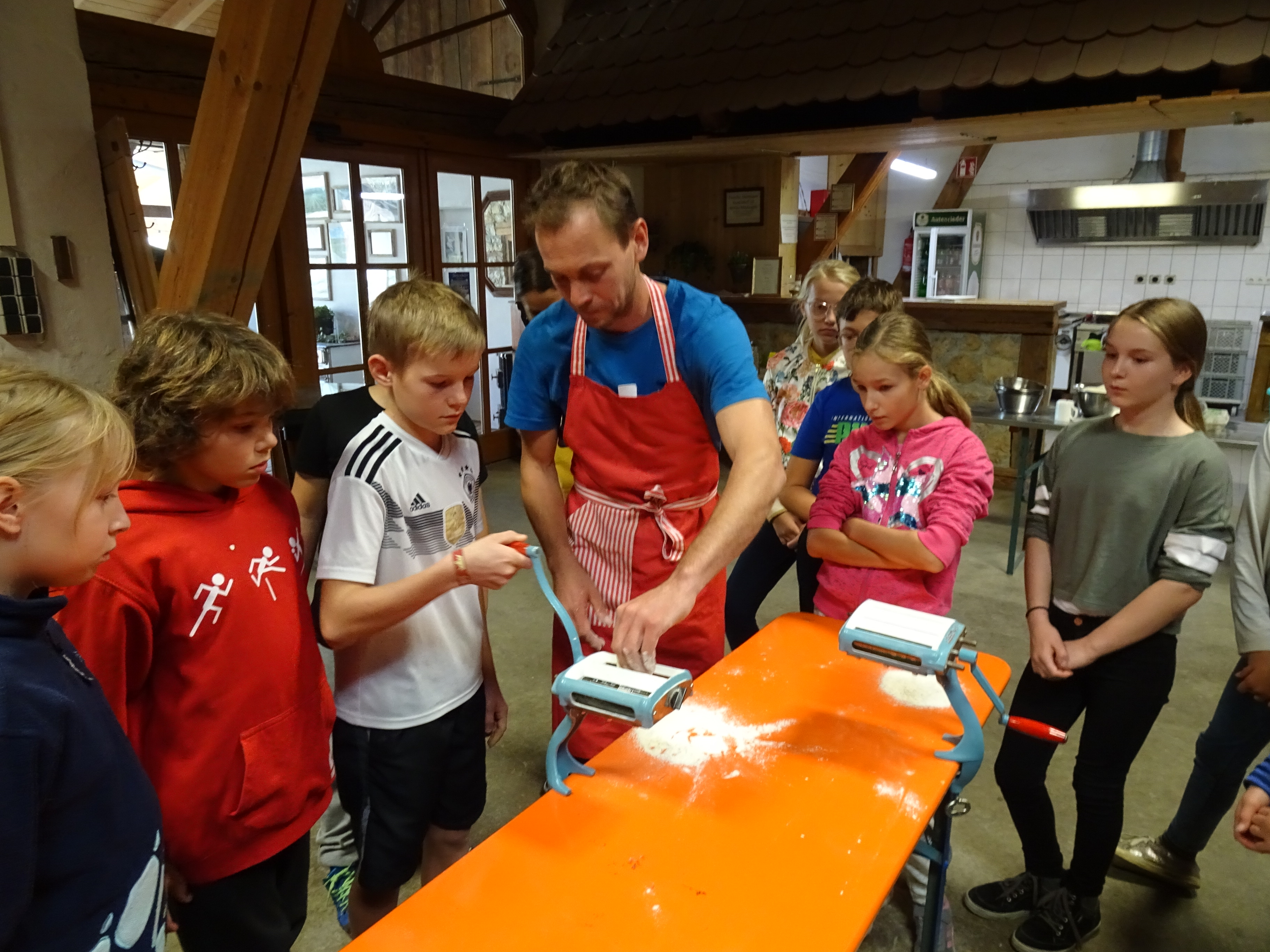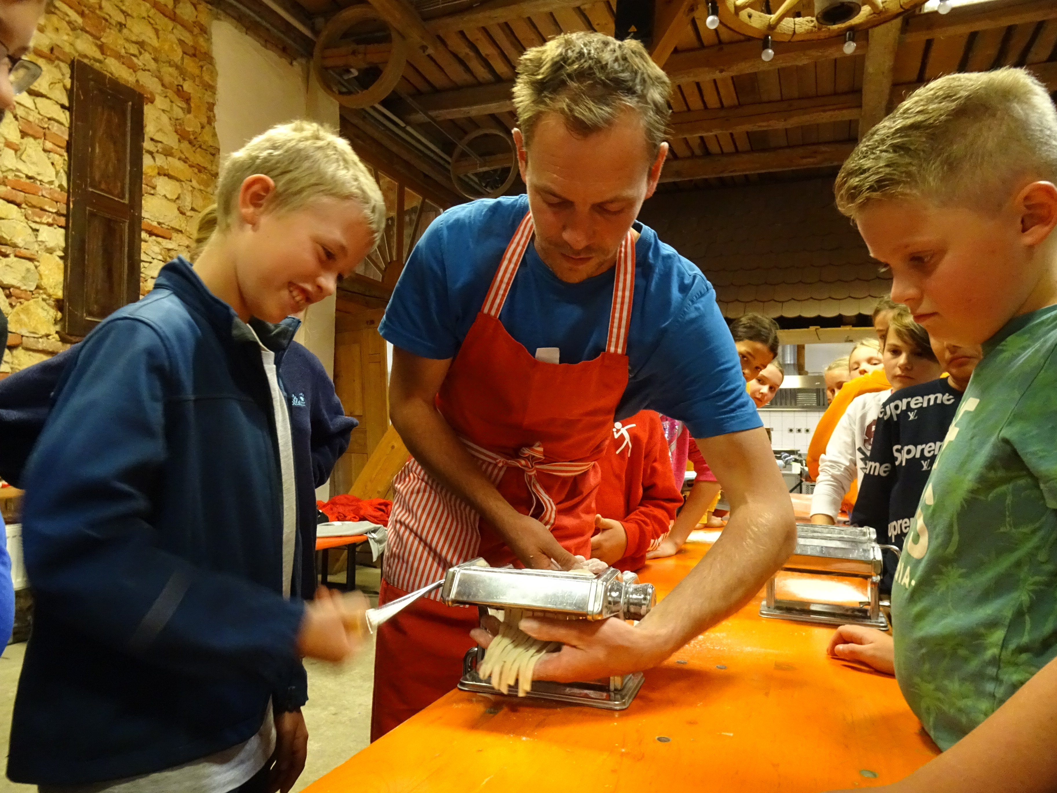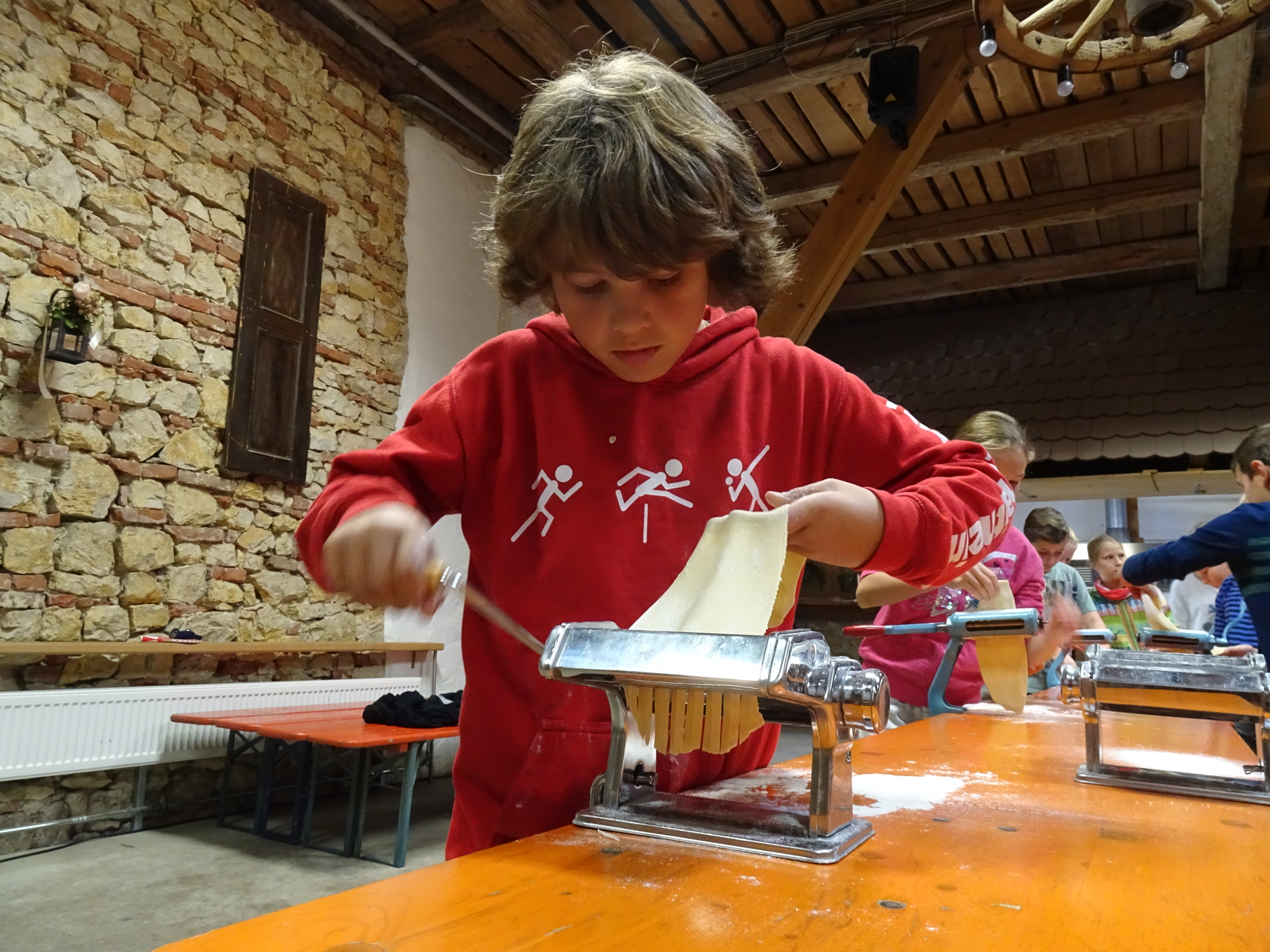Am zweiten Tag ging alles "Rund ums Ei". Hier durften sich alle als Nudelmacher betätigen und selbstgemachte Teigwaren produzieren. Das restliche Programm wurde von den Sozialpädagogen um Frau Pfitzner gestaltet, wo die Klassengemeinschaft im Vordergrund stand und die Wahl zum Klassensprecher vorbereitet wurde.
