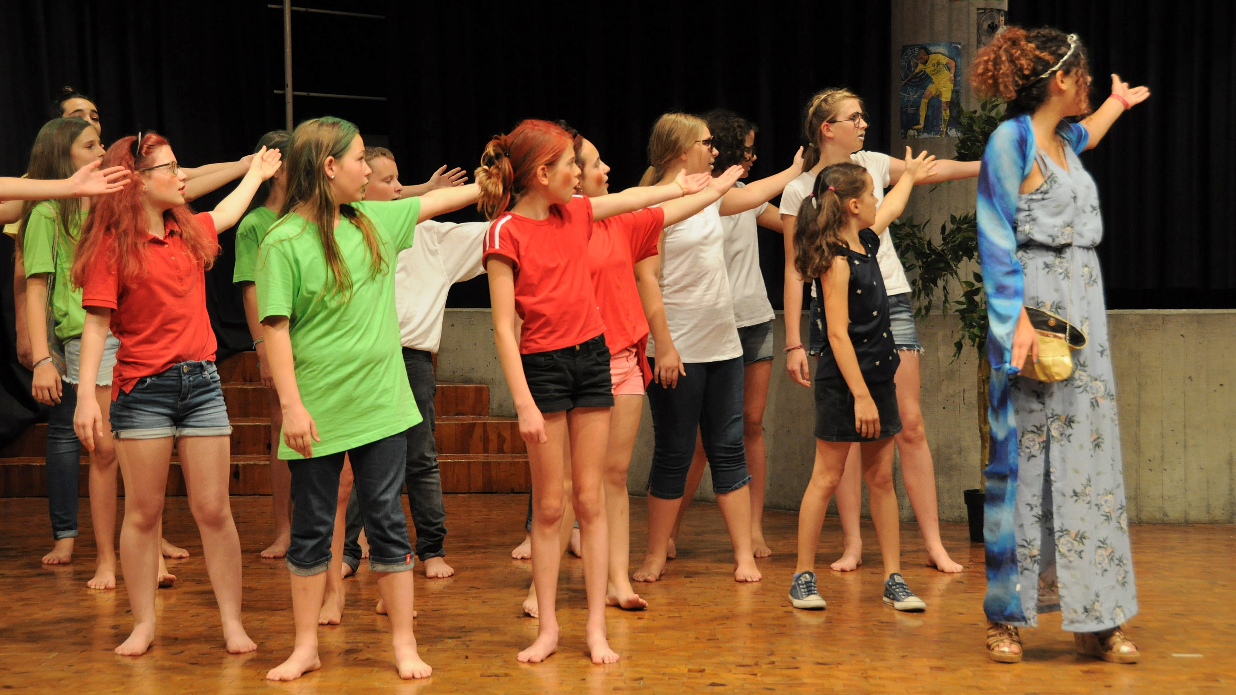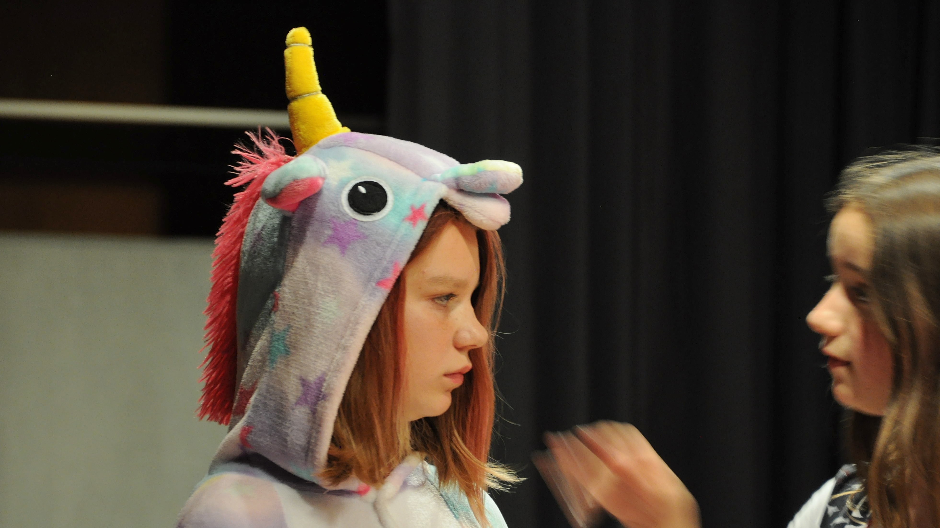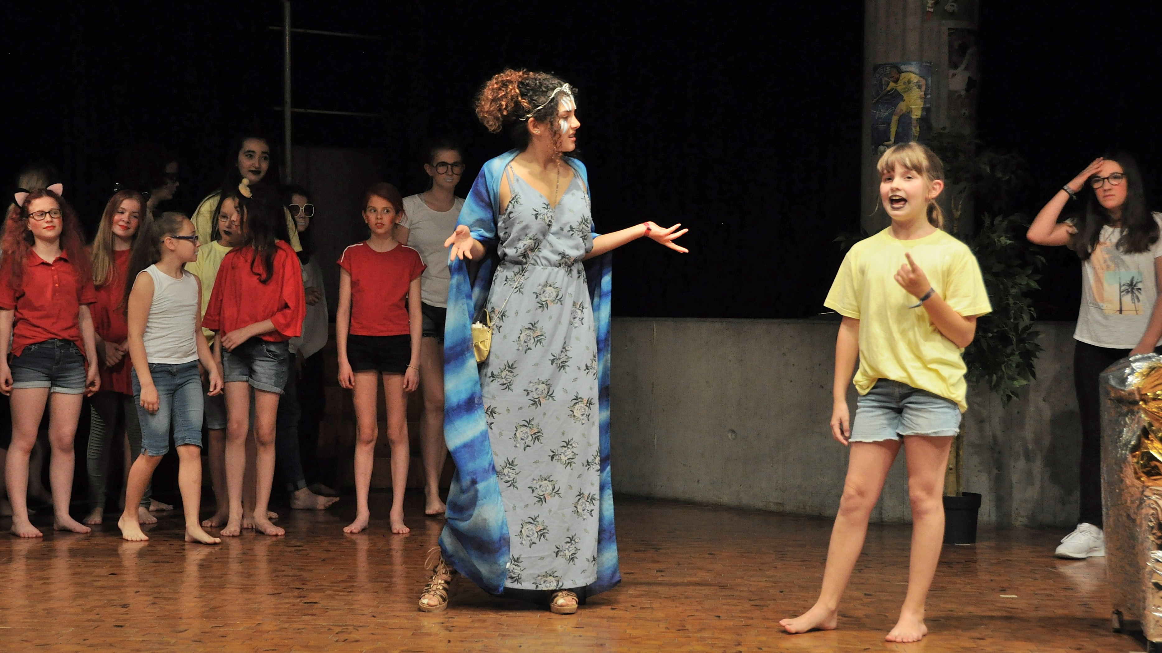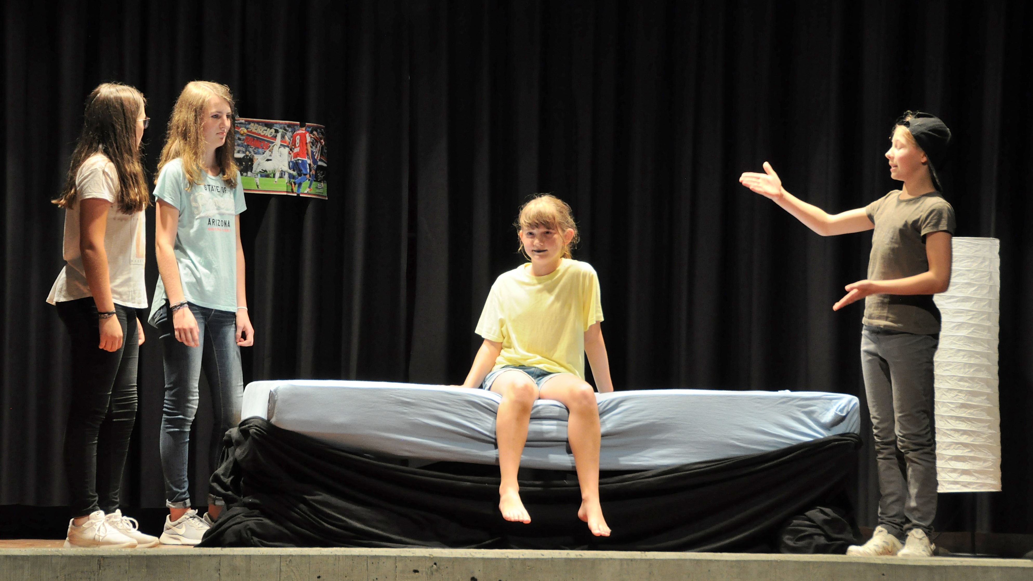 Die Idee und der Text des Theaterstücks stammen von Sara-Lina Gerstlauer aus der Jahrgangsstufe 8, die Leitung hatte Helga Weber, die bei der Regie unterstützt wurde von Dina Tanzmann aus der Jahrgangstufe 1.