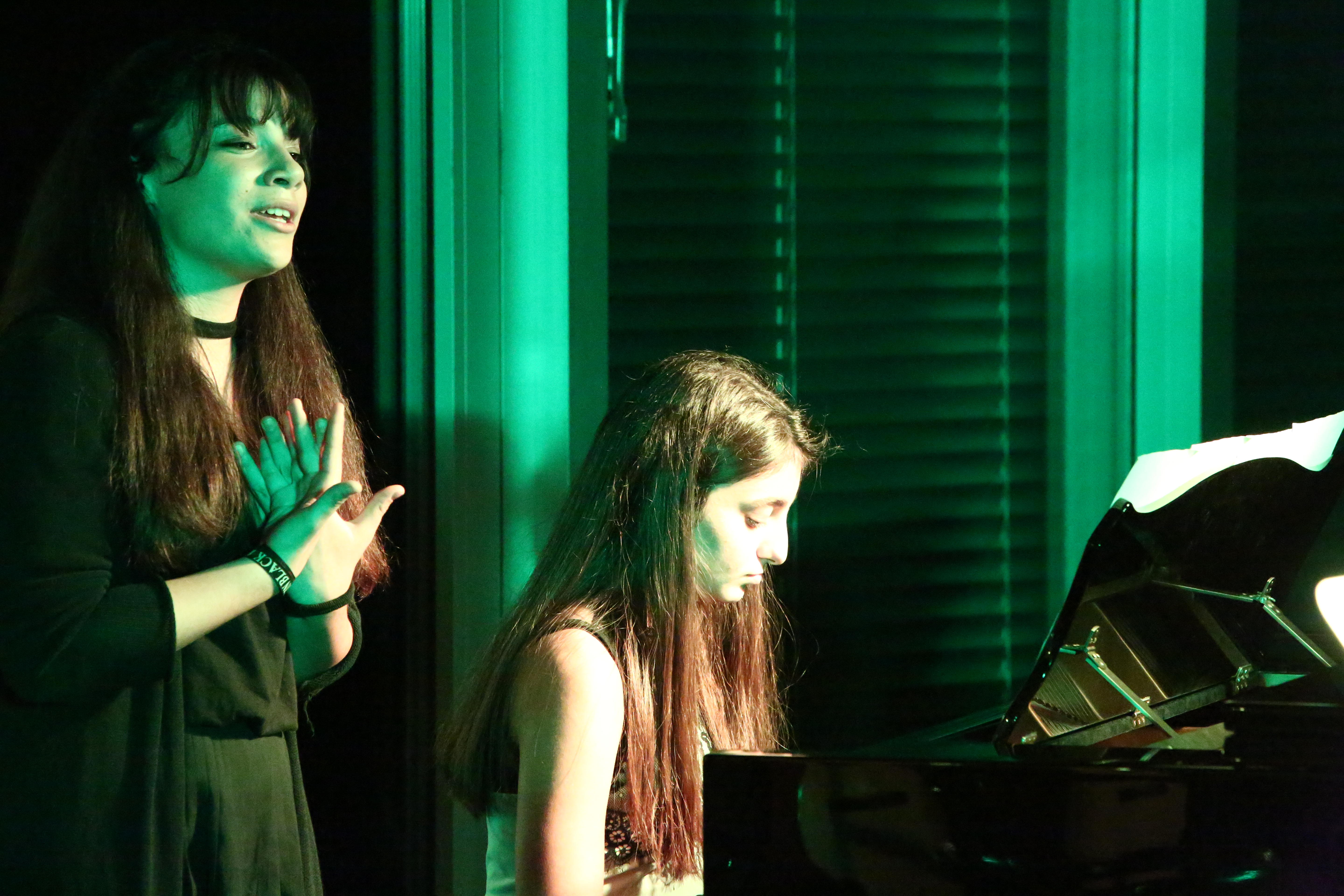 Für einen ersten Gänsehautmoment sorgte Anna Hank, eine Schülerin der 6. Klasse, mit ihrer Darbietung des wohl mit am häufigsten gecoverten Cohen-Liedes „Hallelujah“. Dass Schüler an diesem Abend teilnehmen, ist eine noch junge Tradition, die sich aber großer Beliebtheit erfreut. Daher waren an diesem Abend mit Danae Mavragani und Dicle Ilkan auch 2 Schülerinnen der 9. Klasse mit ihren Versionen der beiden moderneren Popsongs „Say something“ und „Royals“ beteiligt. Vor 3 Jahren wurde dieser Punkt auf Initiative von Gesangsvirtuosin Ricarda Rickert in den Programmablauf integriert. Und seitdem konnten zahlreiche junge Talente Bühnenerfahrung sammeln.