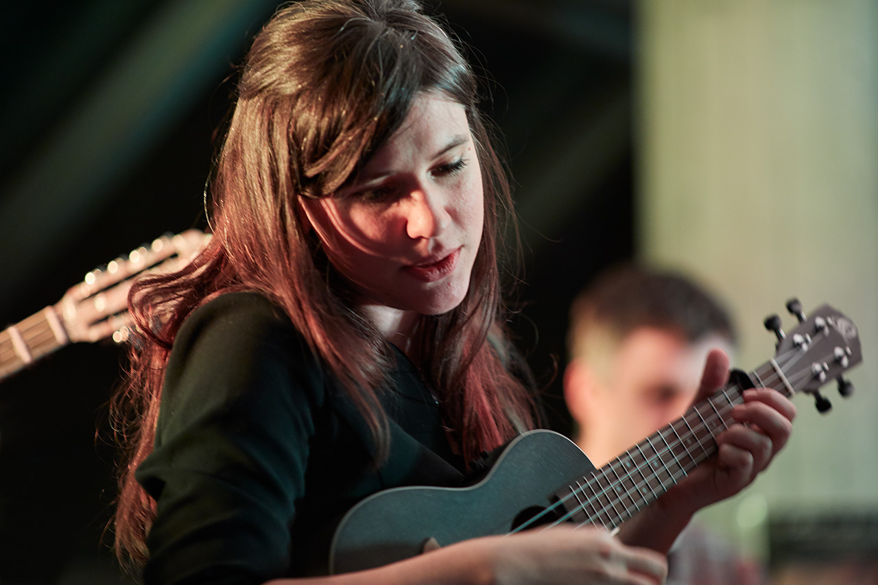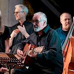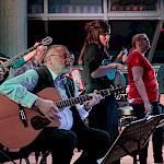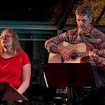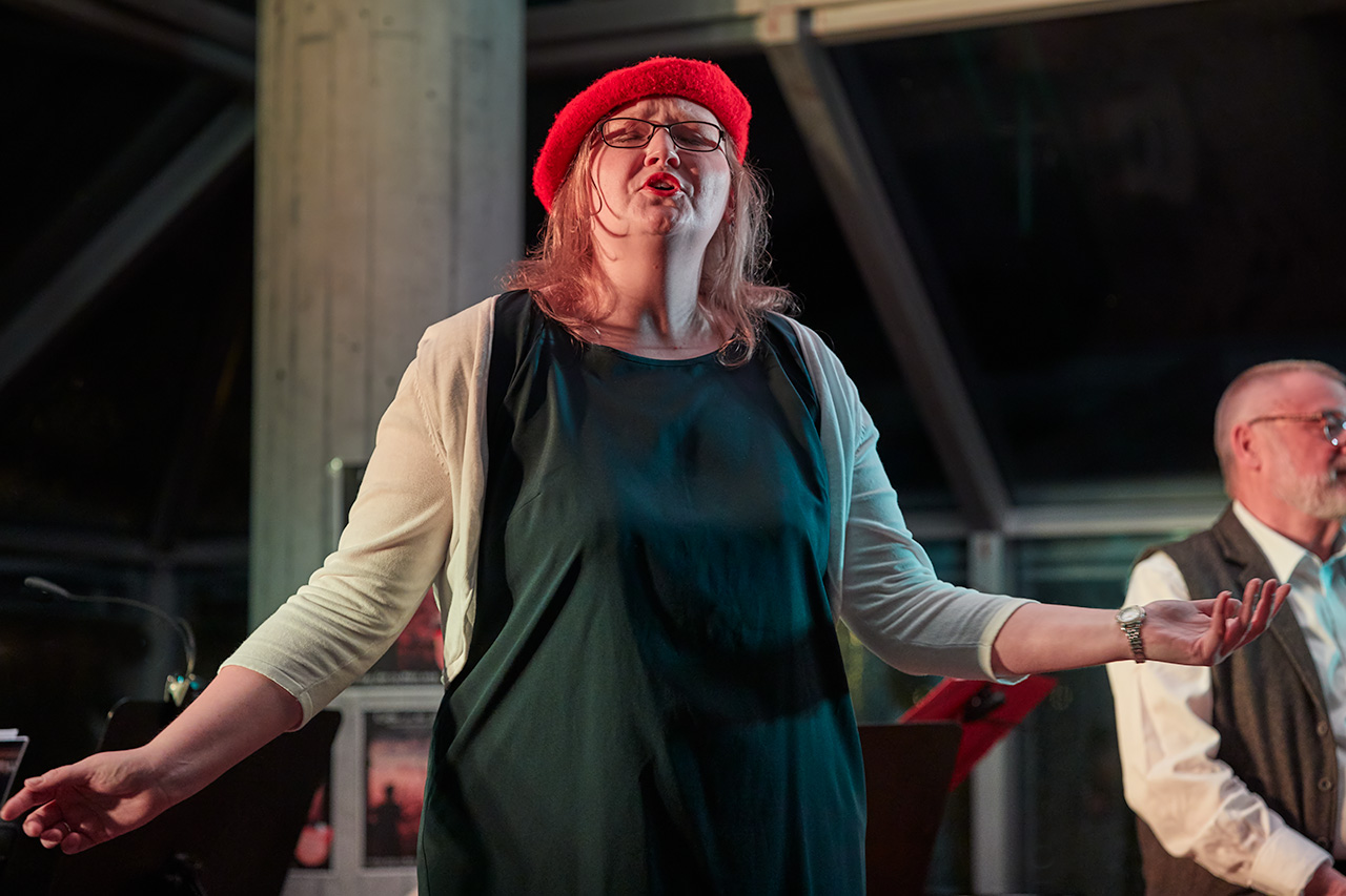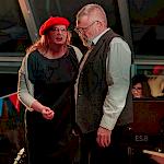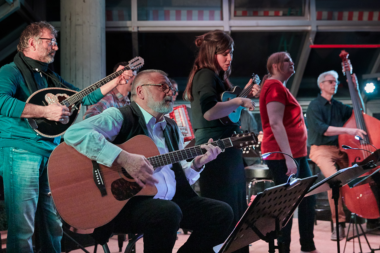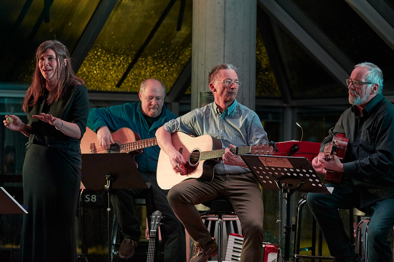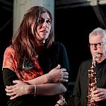 Für die „live lyrics“ sorgte Michael Loessin, der auch den Abend moderierte. Die griechischen Wurzeln Moustakis machte Vassilios Jakovidis mit seiner Bouzuki hörbar und einen sanften Klangteppich legte das Akkordeon von Antje Hofmann, die zusammen mit Gerd Schock am Kontrabass auch den Klassiker „Je ne regrette rien“ von Edith Piaf begleitete, den Petra Schwab souverän präsentierte. Dann übernahmen Ricarda Rickert den Gesangspart und eine Combo aus Andreas Antoniuk, Werner Lehmann und Alexander Spohn die Begleitung. Die enorme Bandbreite der Sängerin zeigte sich in so verschiedenen Titeln wie „On était beau“ von Louane, „Que vendra" vom neuen Album von Zaz und Michel Polnareffs Klassiker aus den 60ern: „La poupée qui fait non“.